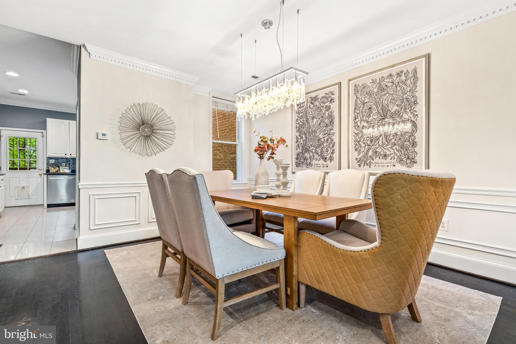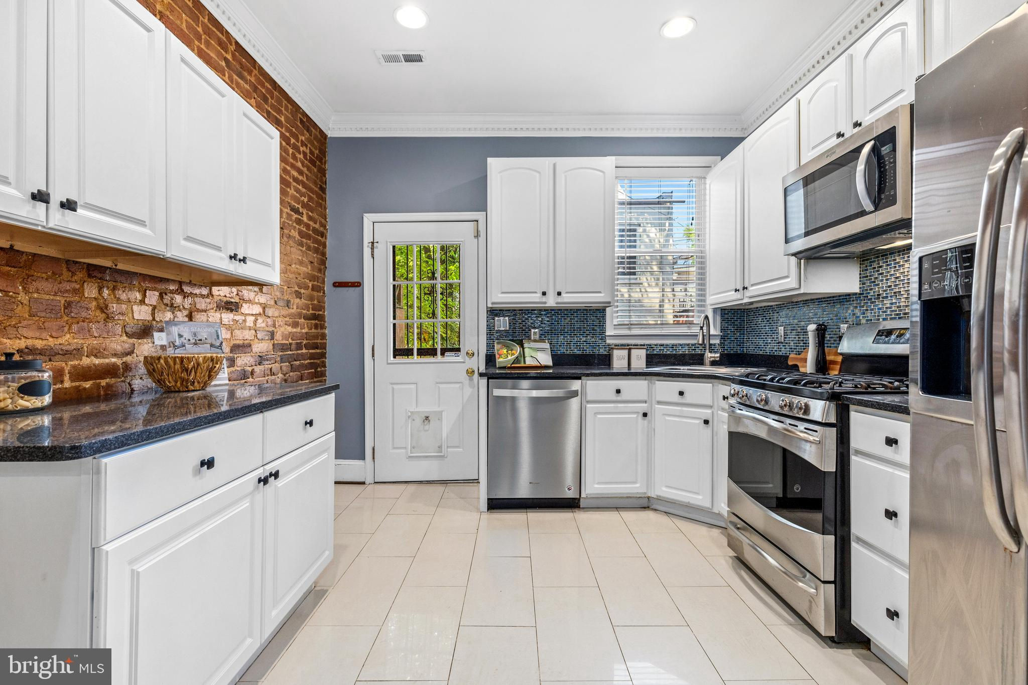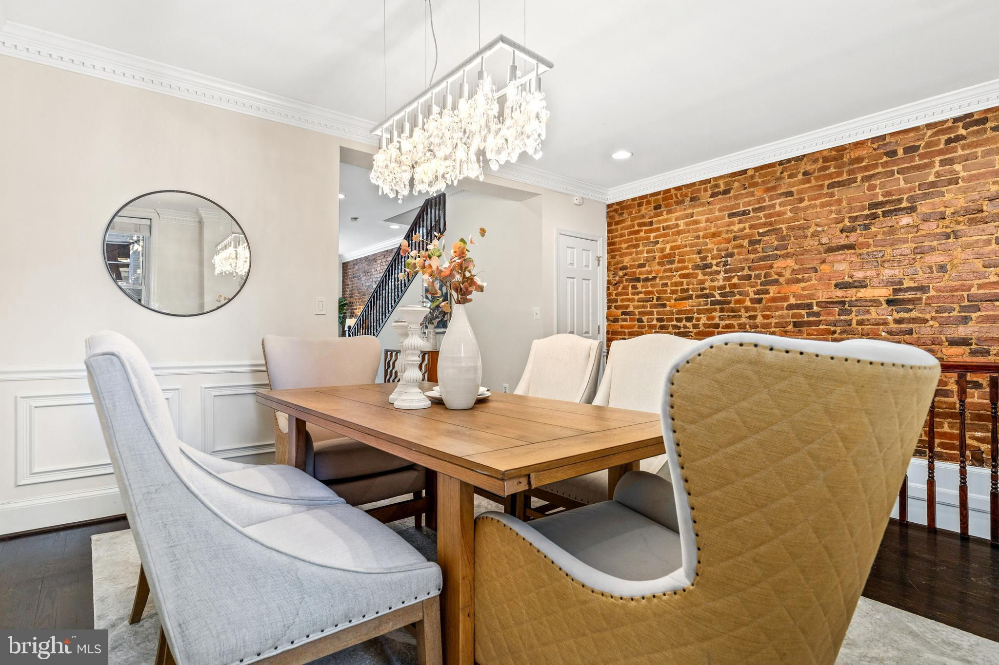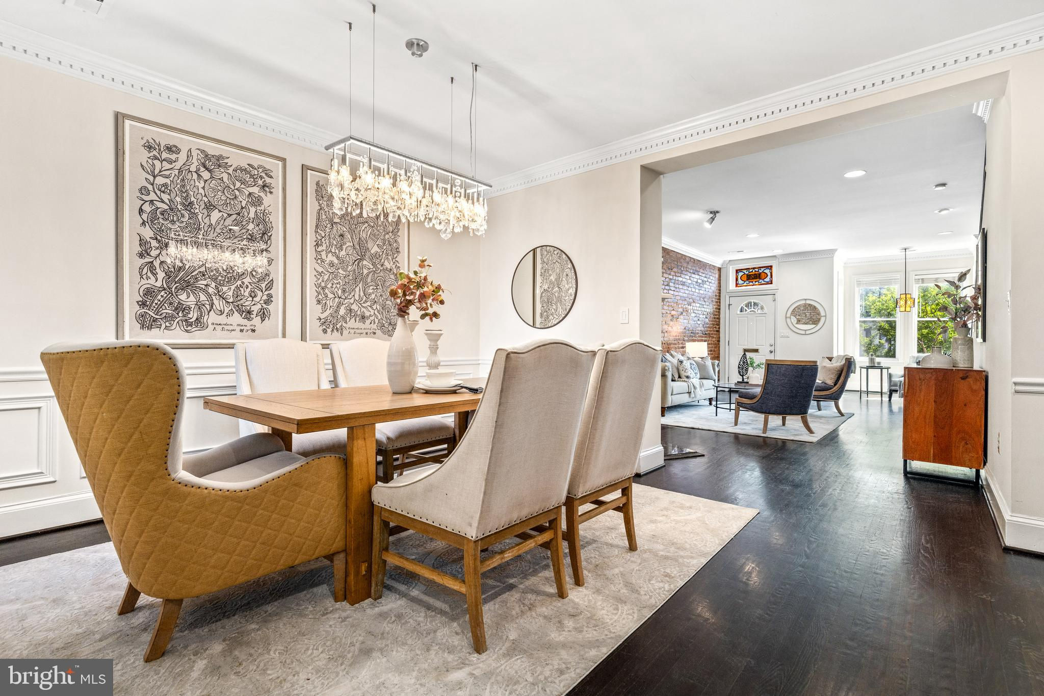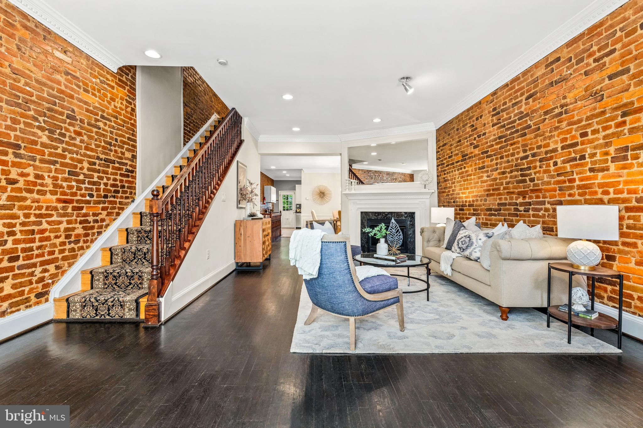 Welcome to this 4 bedroom, 3.5 bath row home featuring a Detached Garage/Carriage House and potential income generating lower level with its own separate front entrance. This transitional floor plan blends traditional and modern design elements that create a clean, timeless, and classic home. Upon entering, you’re greeted by the warm ambiance of the interior, featuring rich hardwood floors, exposed brick walls and high ceilings that create an inviting atmosphere. The main level is designed for entertaining with a spacious living room centered by a gas fireplace adding instant charm. The large, separate dining room is the perfect space for both formal and family dinners. Don’t miss the storage under the main steps. The kitchen has plenty of cabinets, gas cooking, stainless steel appliances. From the kitchen, step out onto the hardscape patio for dinners al fresco. There is a half bath conveniently located on the main level. Retreat to the tranquil primary suite on the upper level which boasts another gas fireplace and en-suite bathroom with separate tub and shower. Two bedrooms complete the upper level along with another full bathroom. The bonus feature is the potential income generating English basement with a separate entrance that has a full kitchen, bedroom, bathroom, living area with a 3rd gas fireplace, and equal access to the laundry room. This is an ideal space for Airbnb, au-pair suite, or an office space for the work from home professionals. Commuting could not be easier with secure parking in the detached garage. The garage/carriage house has electricity and lighting which provides many options for its use. The garage/carriage house conveys as is. Just steps to the Shaw and Metro Station and surrounded by restaurants, boutiques, and shops. Easy access to the City Market at O St.