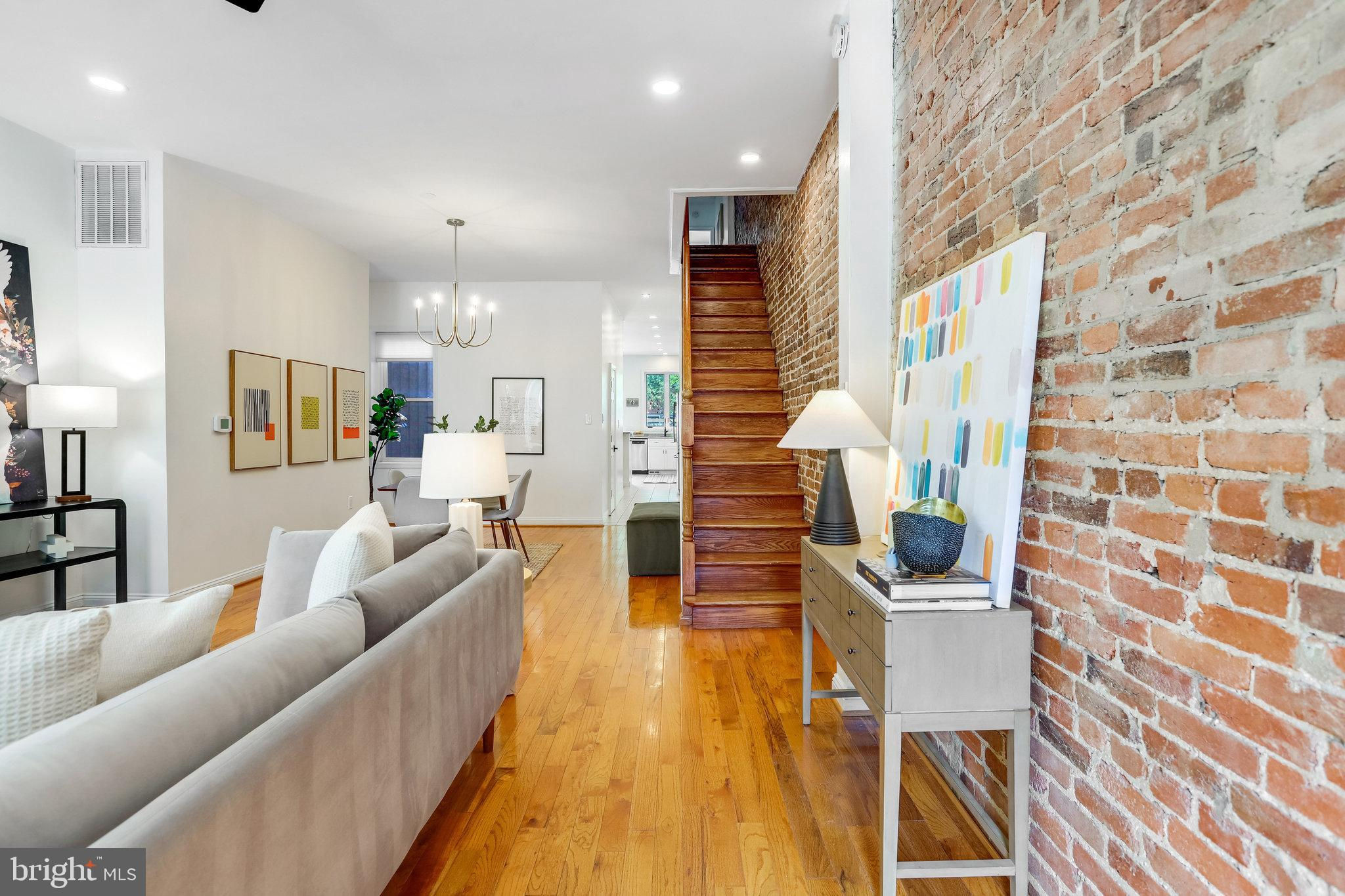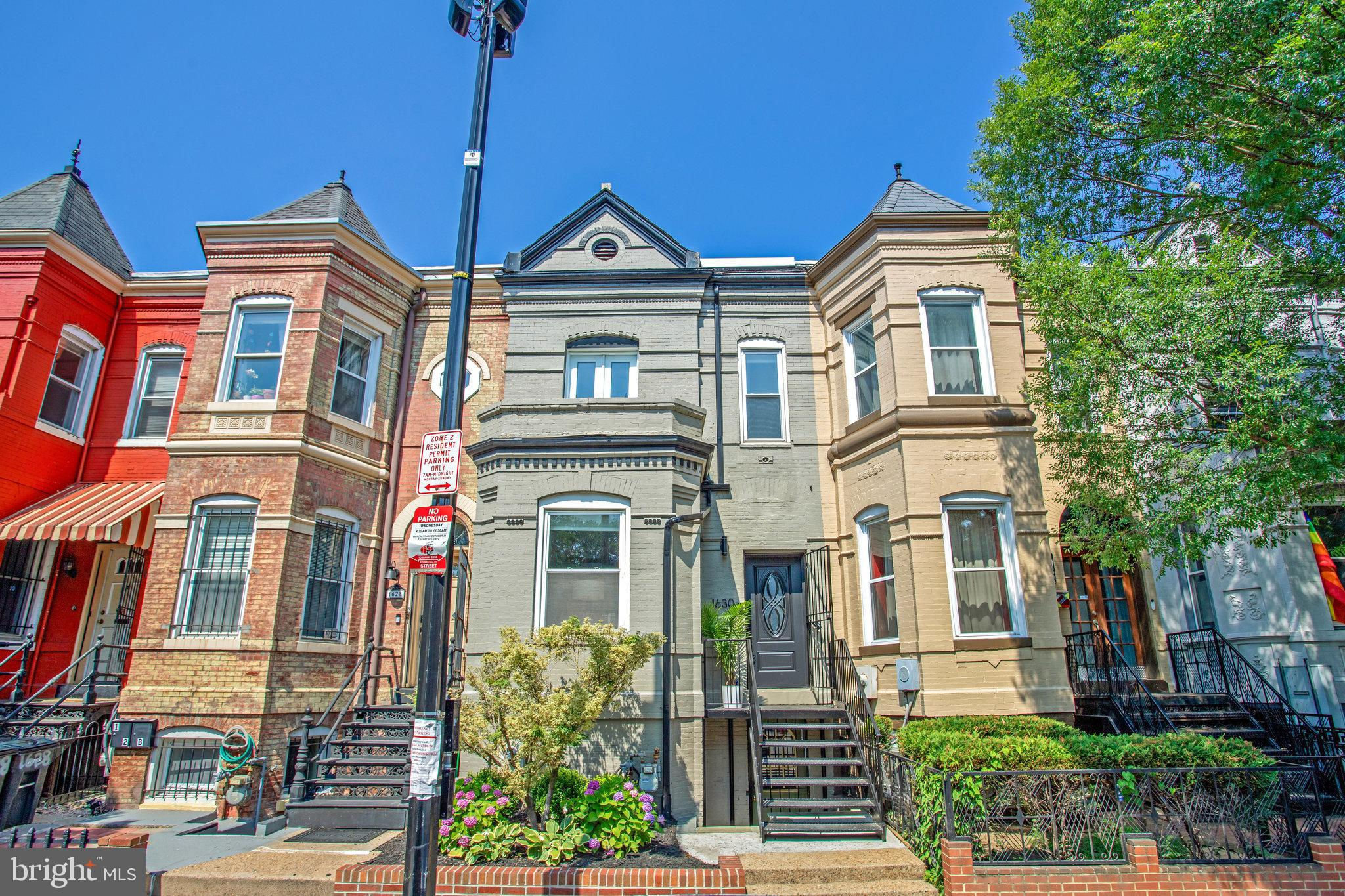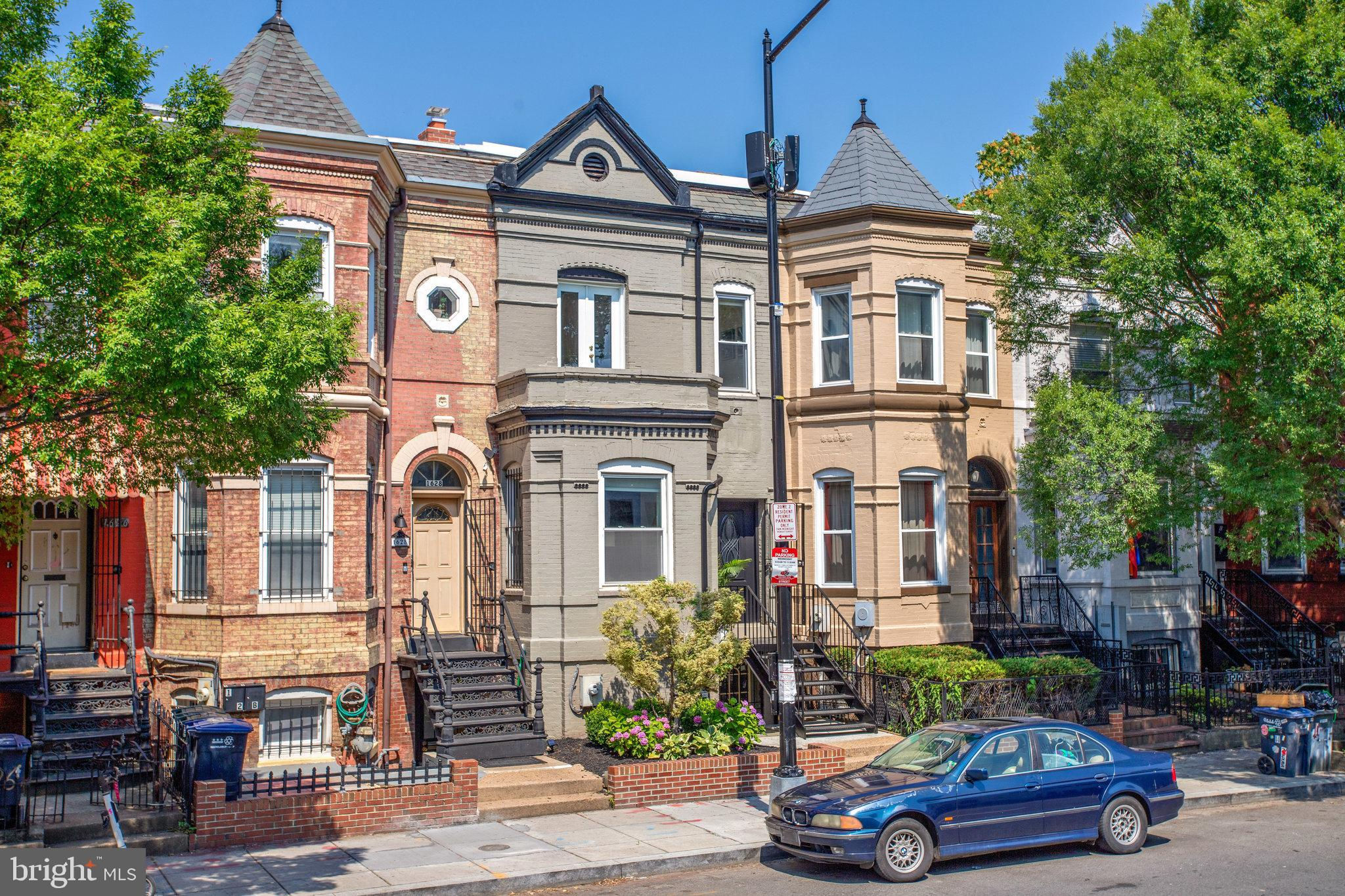 Designed by distinguished Washington DC architect George S. Cooper and built circa 1889, this historic townhouse located in the crux of the vibrant neighborhoods of Shaw, Logan Circle, and U St seamlessly blends classic charm with modern convenience. Brick Victorian facade adorned with decorative trim work, a charming 2nd story Juliet balcony, and traditional iron steps adorn a functional 3-Bedroom plus Bonus Room/2 Bath home. Upon entering, you'll be greeted by a spacious main floor Living Room with bay window and a gorgeous decorative mantle, which effortlessly transitions into the Dining Area featuring an elegant chandelier. A Full Bath with glass shower, and a Coat Closet and Pantry for ample storage flank the hallway leading to the large bright chef’s Kitchen, complete with a breakfast bar, granite counters, and plenty of cabinet space and storage drawers. A sunny casement window above the sink overlooks the expansive rear Patio ready for a green thumb, as well as PARKING for 3+ cars! Upstairs, you'll find 3 BRs plus a BONUS room, and a full Bathroom. The generously sized front Primary Bedroom with a sweet decorative Juliet Balcony boasts multiple closets and built-in shelving and drawers, easily accommodating a king-sized bed. A bright, spacious 2nd Bedroom and a large tiled Full Bathroom are just down the hall, followed by a versatile BONUS room Den/Office/flex space, and then a 3rd rear Bedroom with 2 windows and a new fan/light fixture. Lastly, the unfinished Basement housing the utilities presents excellent storage space, and/or the potential to finish it off for future expansion or to make it into an accessory unit. Conveniently situated within 3 blocks of the Shaw Metro, Bikeshares, Giant Food, several parks, the Watha T. Daniel Library and a fabulous array of bars, restaurants, shops and cafes, this townhouse offers location, history, comfort and charm all wrapped up in one tidy package. Come see for yourself! (Note that SF figures shown are not to be used for valuations.)
