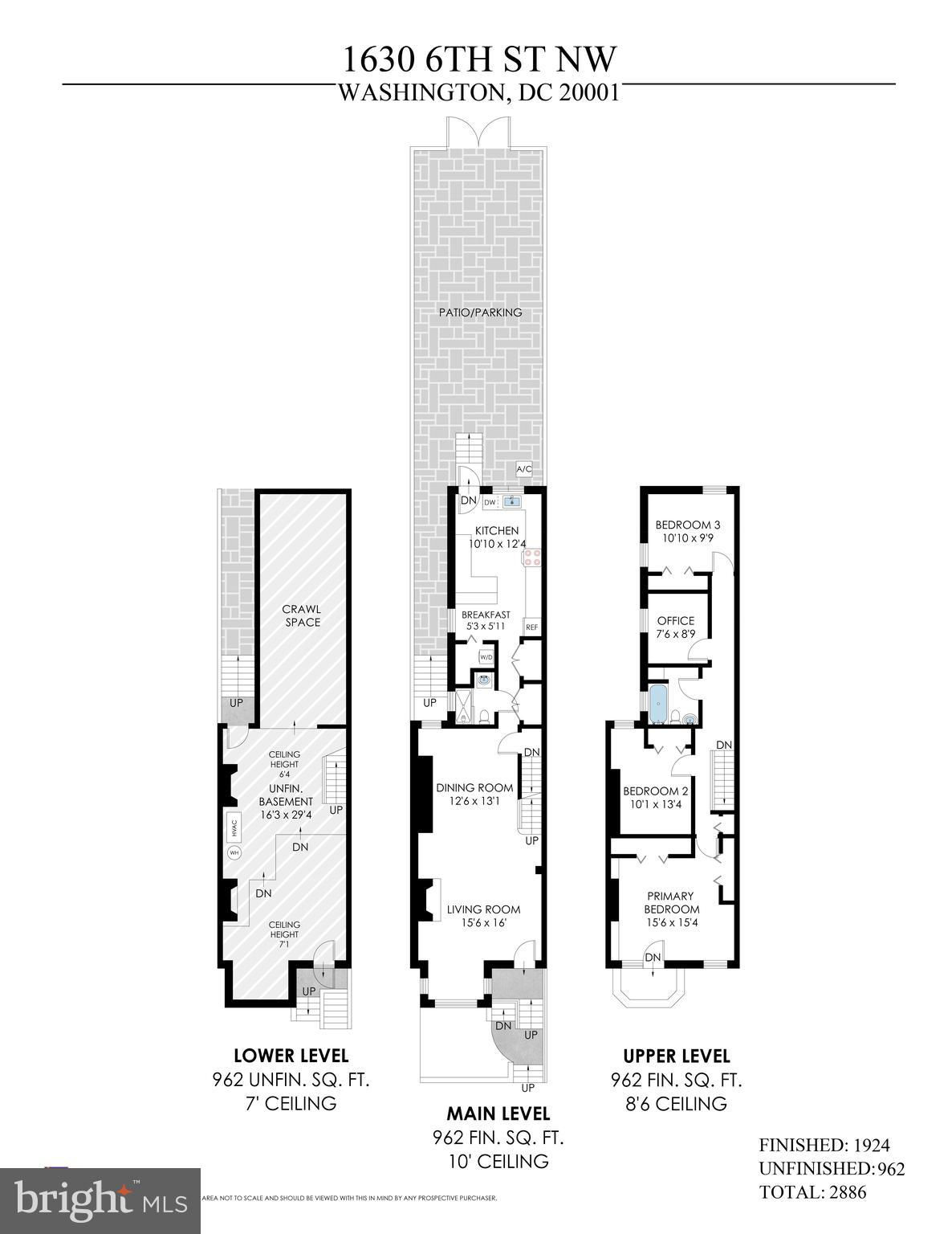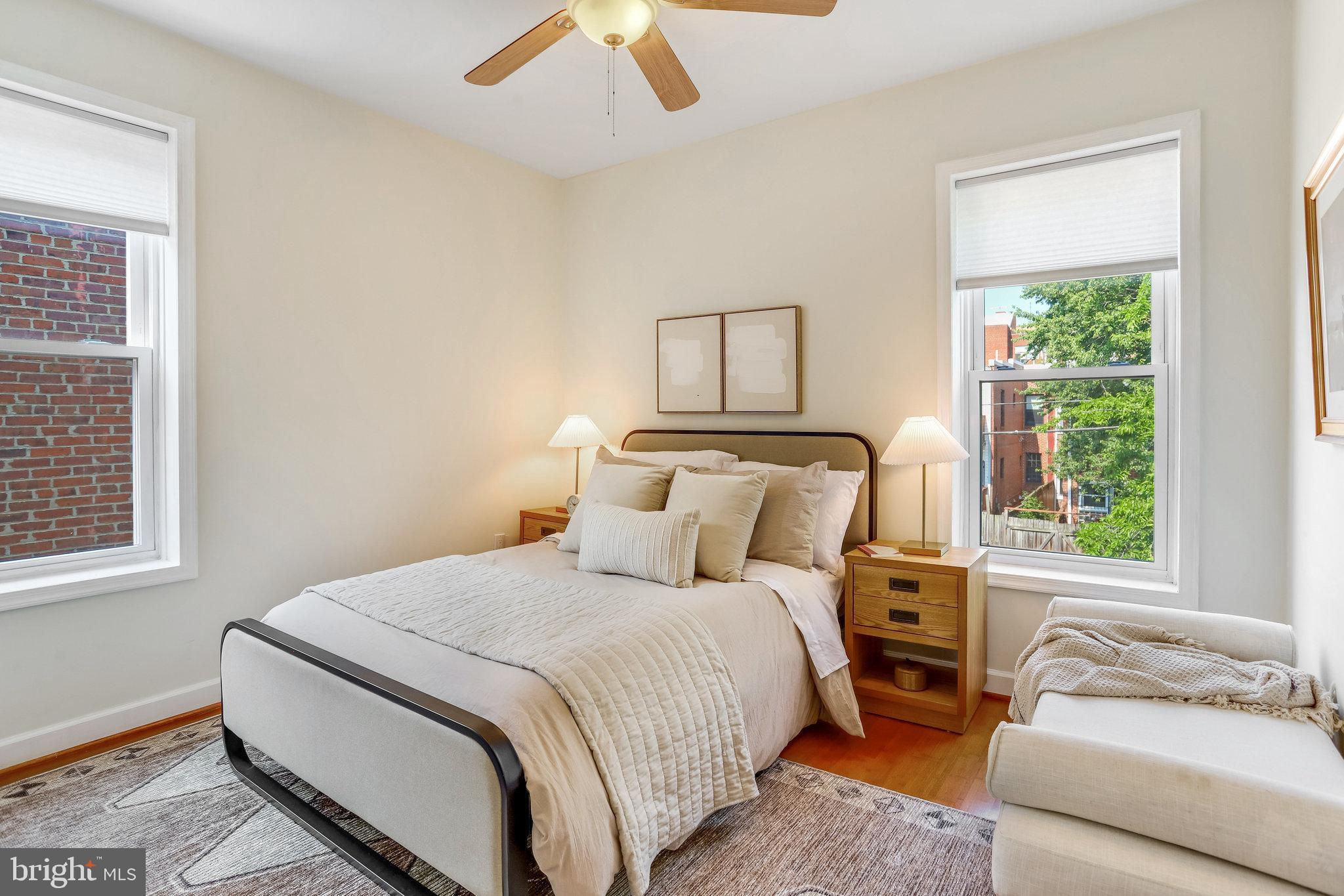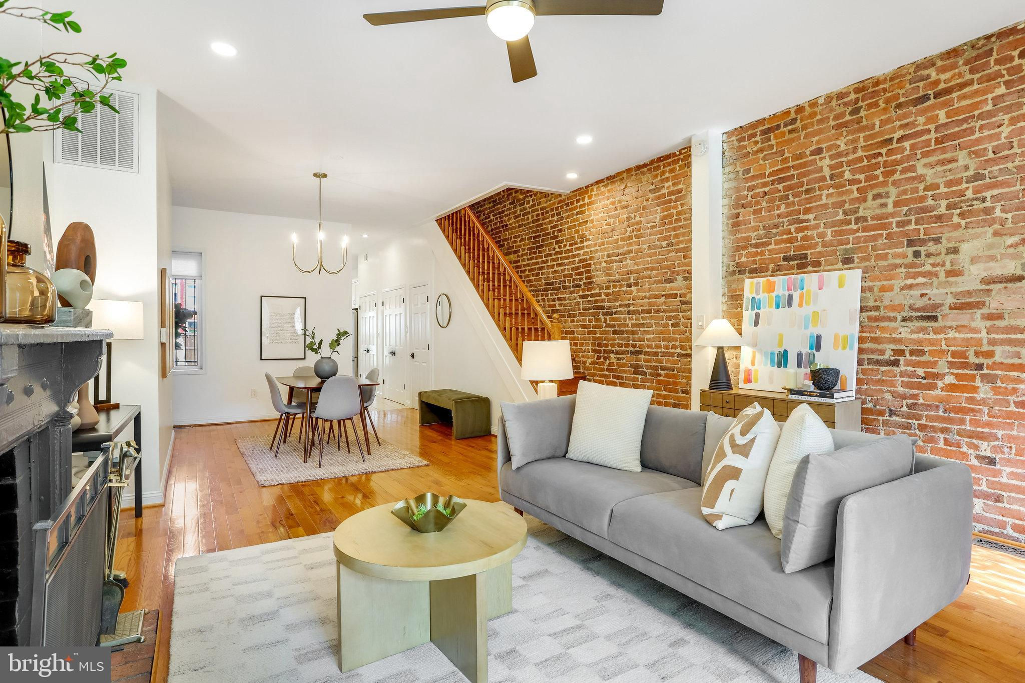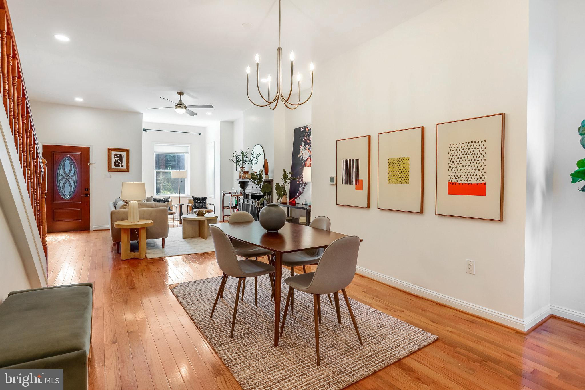 Designed by distinguished Washington DC architect George S. Cooper and built circa 1889, this historic townhouse located in the crux of the vibrant neighborhoods of Shaw, Logan Circle, and U St seamlessly blends classic charm with modern convenience. Brick Victorian facade adorned with decorative trim work, a charming 2nd story Juliet balcony, and traditional iron steps adorn a functional 3-Bedroom plus Bonus Room/2 Bath home. Upon entering, you'll be greeted by a spacious main floor Living Room with bay window and a gorgeous decorative mantle, which effortlessly transitions into the Dining Area featuring an elegant chandelier. A Full Bath with glass shower, and a Coat Closet and Pantry for ample storage flank the hallway leading to the large bright chef’s Kitchen, complete with a breakfast bar, granite counters, and plenty of cabinet space and storage drawers. A sunny casement window above the sink overlooks the expansive rear Patio ready for a green thumb, as well as PARKING for 3+ cars! Upstairs, you'll find 3 BRs plus a BONUS room, and a full Bathroom. The generously sized front Primary Bedroom with a sweet decorative Juliet Balcony boasts multiple closets and built-in shelving and drawers, easily accommodating a king-sized bed. A bright, spacious 2nd Bedroom and a large tiled Full Bathroom are just down the hall, followed by a versatile BONUS room Den/Office/flex space, and then a 3rd rear Bedroom with 2 windows and a new fan/light fixture. Lastly, the unfinished Basement housing the utilities presents excellent storage space, and/or the potential to finish it off for future expansion or to make it into an accessory unit. Conveniently situated within 3 blocks of the Shaw Metro, Bikeshares, Giant Food, several parks, the Watha T. Daniel Library and a fabulous array of bars, restaurants, shops and cafes, this townhouse offers location, history, comfort and charm all wrapped up in one tidy package. Come see for yourself! (Note that SF figures shown are not to be used for valuations.)