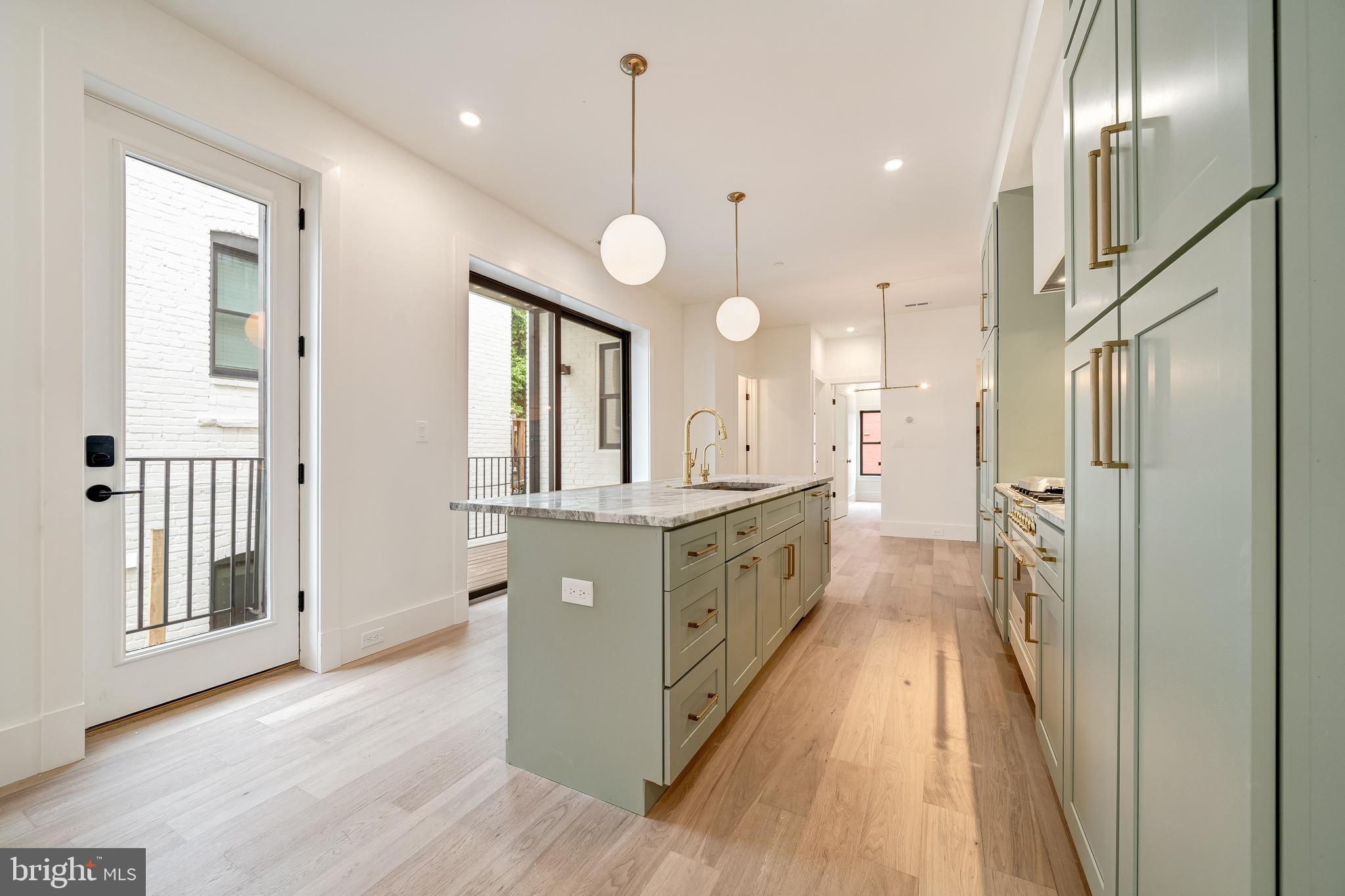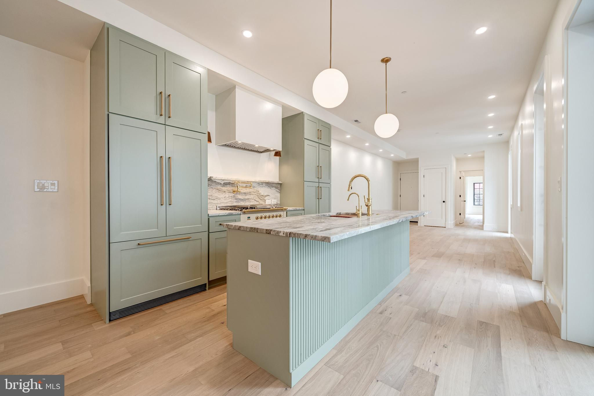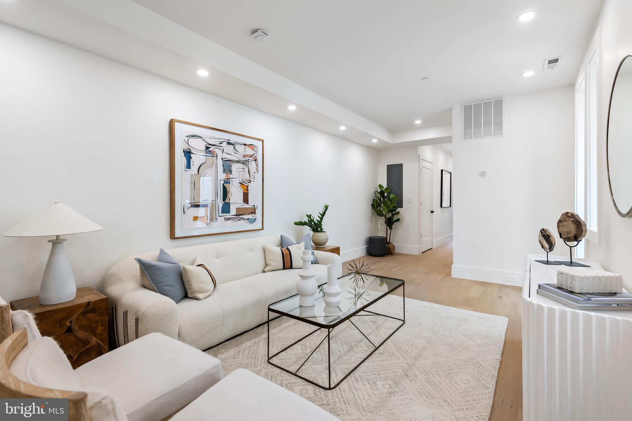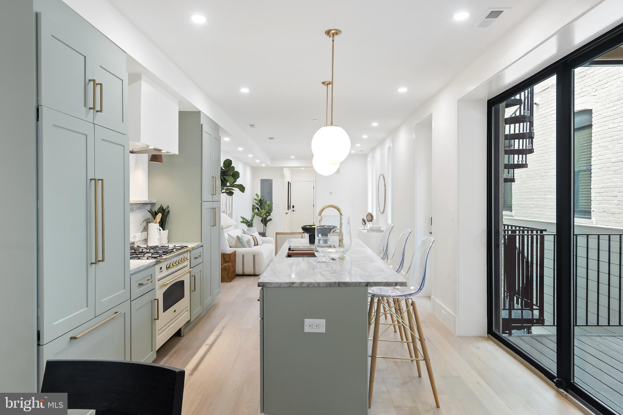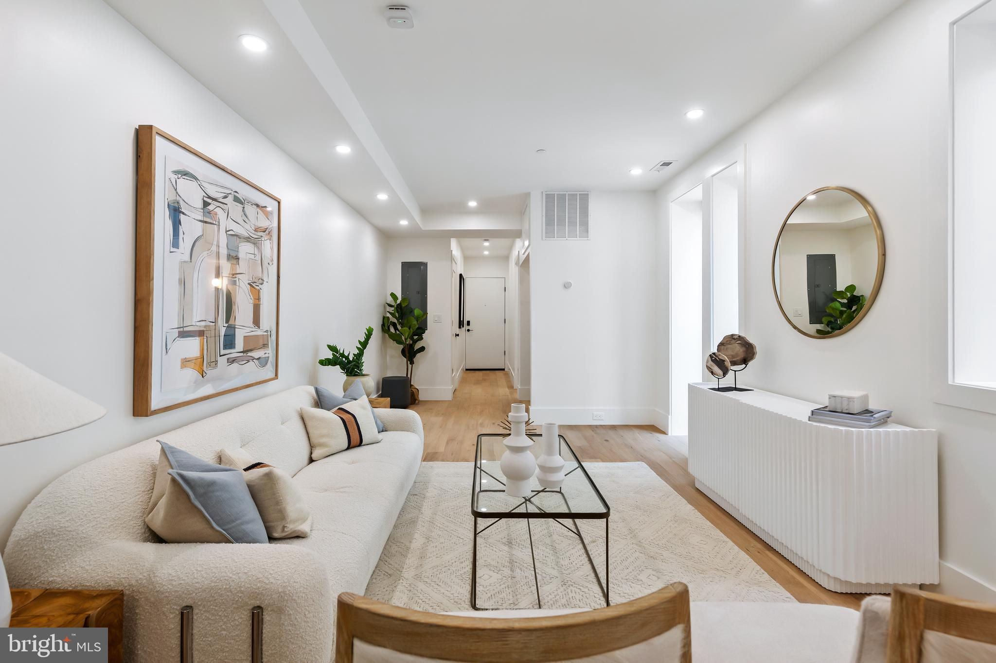 Welcome to this exquisite light filled 3-bedroom, 2-bathroom residence located in The Topanga located in the heart of Logan Circle - a collaboration between Half Drop Studio and 1606 Strategies Development, blending natural materials with curated design for effortless luxury. Indulge in the gourmet kitchen, featuring a stunning matte white gas range and oven, Newport Brass unlacquered brass pot filler and fixtures, and a Fisher and Paykel paneled refrigerator. Custom painted cabinetry; honed natural quartzite stone counters, and a paneled Bosch dishwasher complete this culinary haven. Open the expansive glass-paneled doors to the terrace, perfect for alfresco dining or enjoying morning coffee and evening wines. Retreat to the spacious primary bedroom and en-suite bathroom, boasting a large walk-in closet, brass Phylrich fixtures, hand-pressed checkerboard shower tiles, and a floating wood vanity with quartz counters. A private toilet room, built-in paneled laundry hamper, and spa-like shower add to the luxury. The second and third bedrooms, along with the second bath, continue the theme of luxury with custom tile, high ceilings, and abundant natural light—ideal for guests or a home office. Enjoy the outdoors on your private balcony adjacent to your gourmet kitchen for al fresco dining or morning coffee or your dedicated roof top terrace with gas line and water spigot for evening BB-Qs! Located in Logan Circle, steps away from Whole Foods, shopping, dining, and nightlife, this stunning condominium offers the ultimate in-town residence. Parking with direct access to your unit is available for purchase at the rear of the home. Welcome home to unparalleled sophistication and urban living.