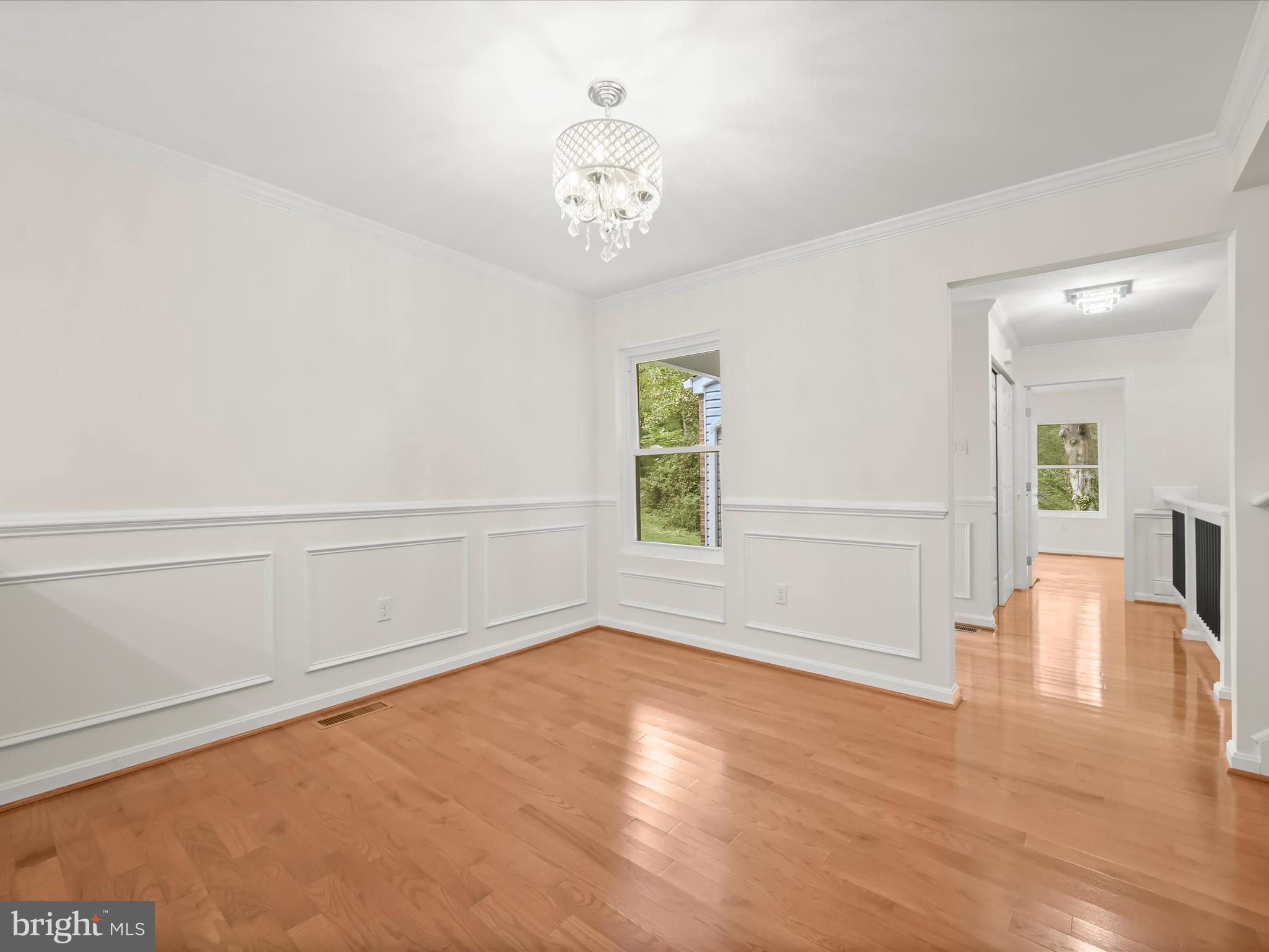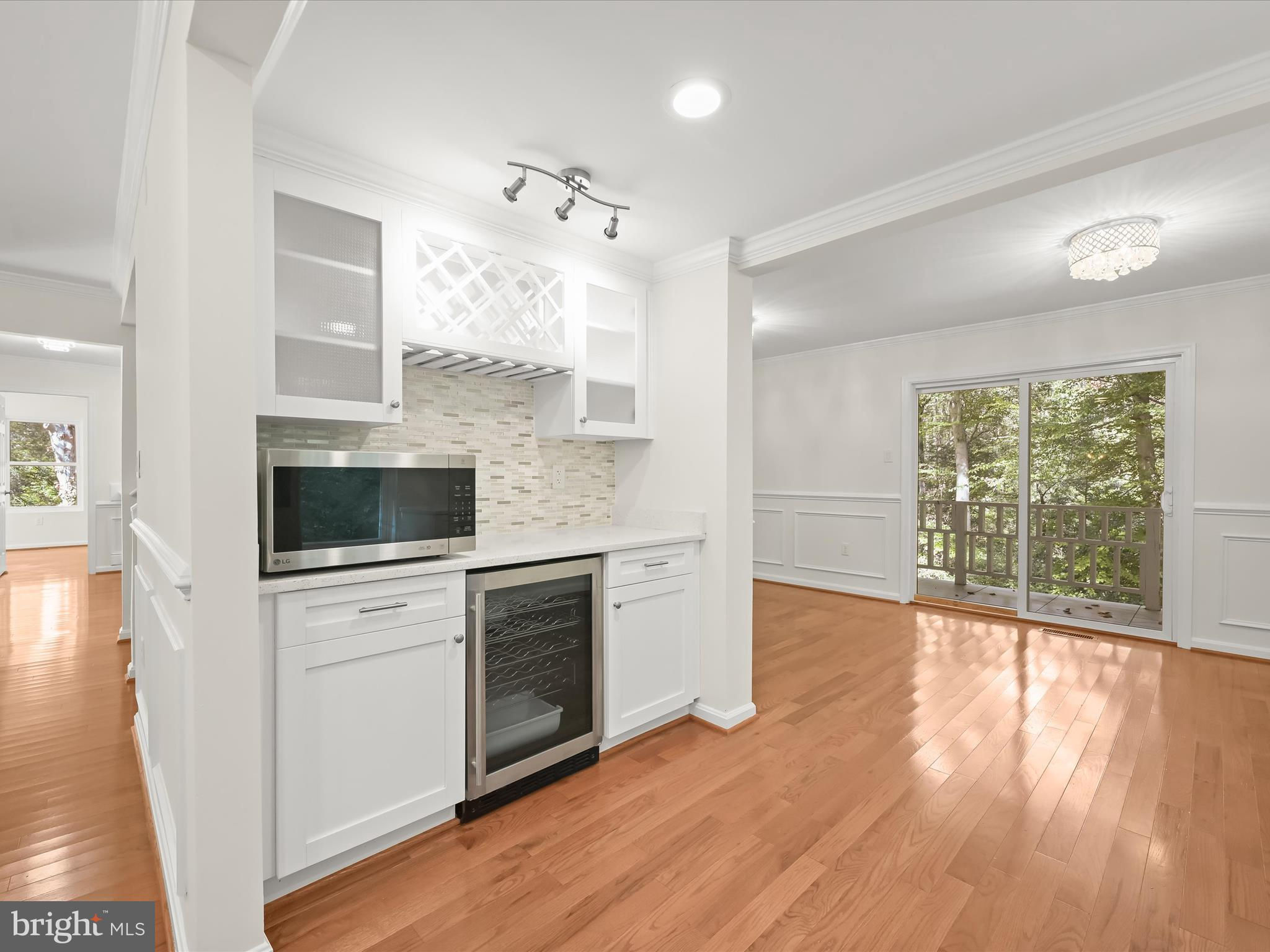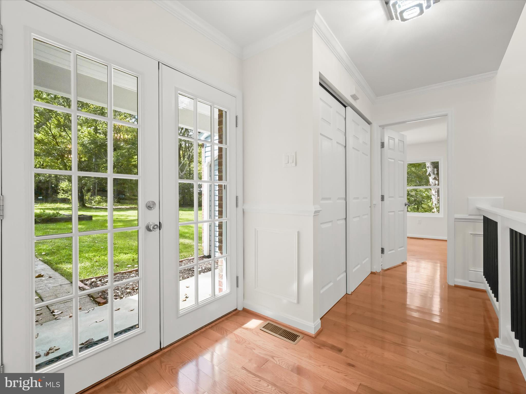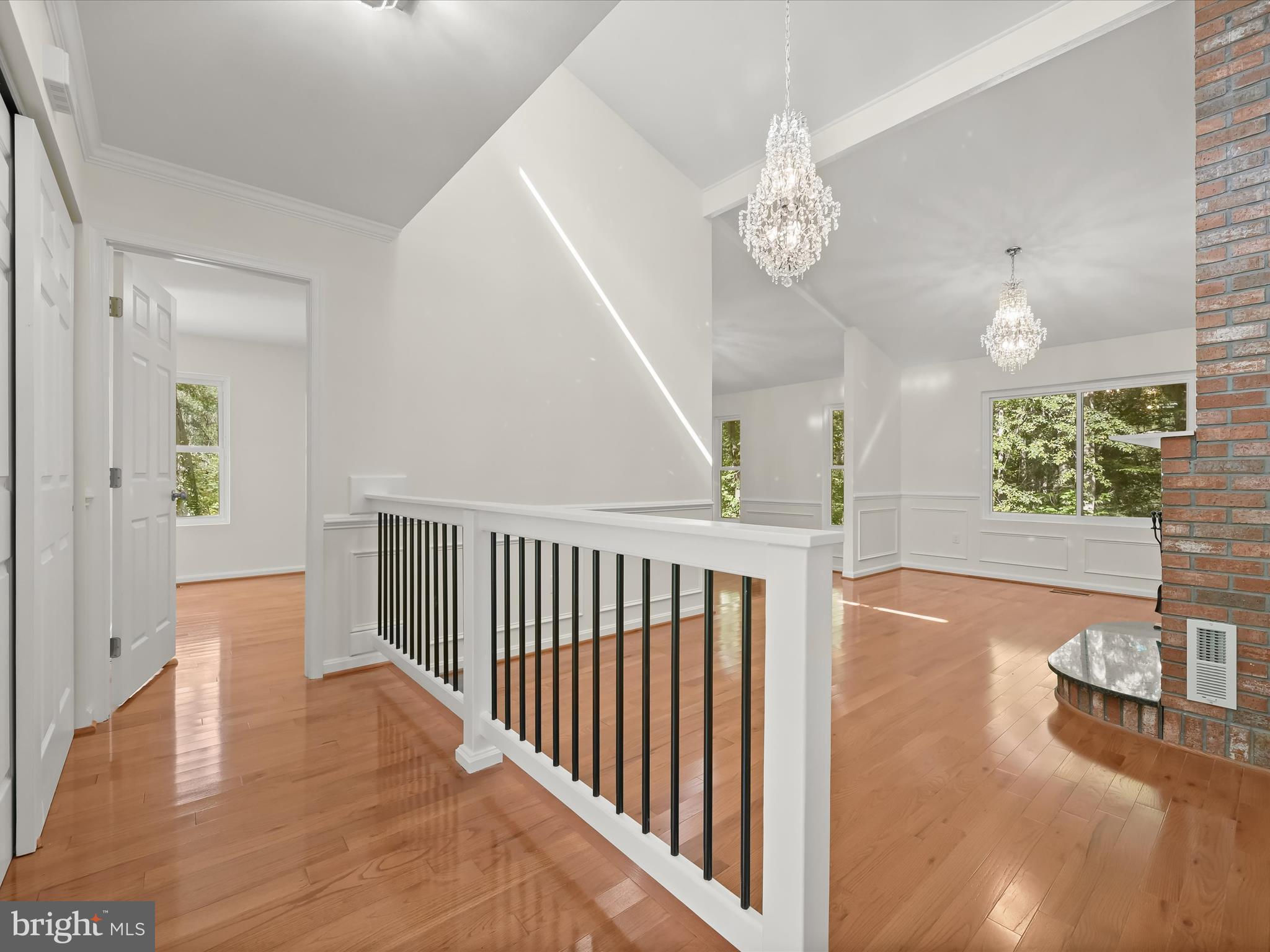 Nestled on a wooded cul-de-sac in the serene Forest Hills subdivision, this stunning brick Colonial has been meticulously renovated in 2020, seamlessly blending timeless elegance with modern luxury. Spanning over 3,000 square feet across three finished levels, the home offers 4 spacious bedrooms and 4.5 bathrooms, providing ample space for both relaxation and entertaining. Step inside to discover a harmonious mix of hardwood flooring, stylish lighting fixtures, and architectural details including crown moldings and box wainscoting that elevate the living spaces. The living room welcomes you with soaring vaulted ceilings, a floor-to-ceiling brick fireplace, and glamorous chandeliers, creating an impressive focal point for gatherings. Adjacent, the den features matching wainscoting and abundant natural light, offering a distinguished space for work or leisure. The chef-inspired kitchen is a showpiece, complete with stainless steel appliances, double ovens, an induction cooktop, sparkling quartz countertops, and an expansive island perfect for casual dining or culinary creations. A butler’s pantry with a wine cooler and charming window seat enhances functionality, while the dining area, with a sliding glass door leading to the balcony, provides a seamless indoor-outdoor connection for entertaining or grilling. Retreat to the main-level primary suite, a private haven with a walk-in closet and a luxurious en-suite bath featuring upgraded countertops with modern vessel sinks, and a tiled tub/shower surround accented by marble-look tile and mosaic inlay. Upstairs, one bedroom enjoys an en-suite bath, while the other two share a beautifully updated full hall bath. The fully finished basement expands the home’s living and entertaining options, offering an expansive family room with a second brick fireplace and sliding glass access to the backyard. A recreation area with a granite wet bar and mini refrigerator is perfect for entertaining or cozy movie nights. The lower level also includes a laundry room and a third full bath. Outside, the property sits on a generous two-acre lot backing to lush parkland and trees, offering a tranquil escape. The balcony provides picturesque views, and the included additional two-acre lot expands the total property to four acres. With an attached two-car garage and ample driveway parking, convenience and accessibility are unmatched. Bowie, MD provides a variety of amenities for every lifestyle. Residents enjoy shopping and dining at Bowie Town Center, Hilltop Plaza, and Bowie Plaza, as well as recreational opportunities at Allen Pond Park and the Bowie Community Center. Major highways ensure easy access to Washington, D.C., Baltimore, and Annapolis, combining small-town charm with city convenience. This exquisite home is a rare find, offering luxurious interior finishes, expansive outdoor spaces, and a serene, private setting, a perfect sanctuary for those seeking elegance and comfort. PROPERTY includes two tax IDs for a total of 4 acres.