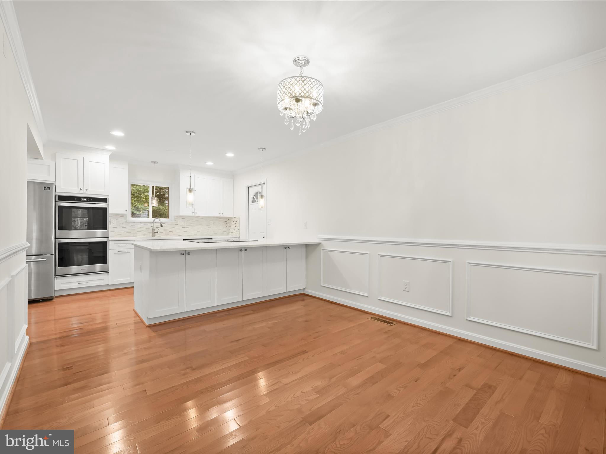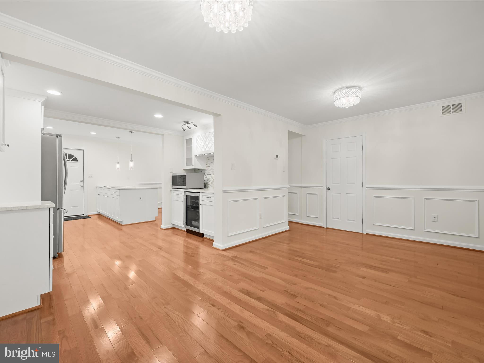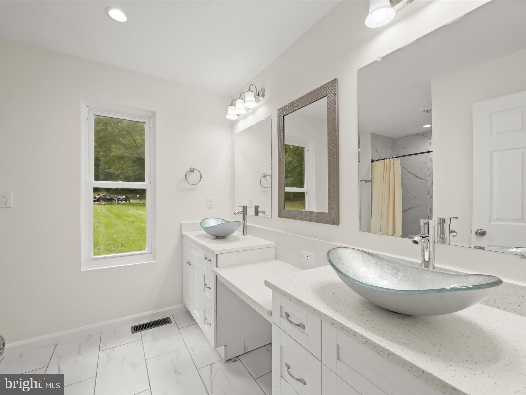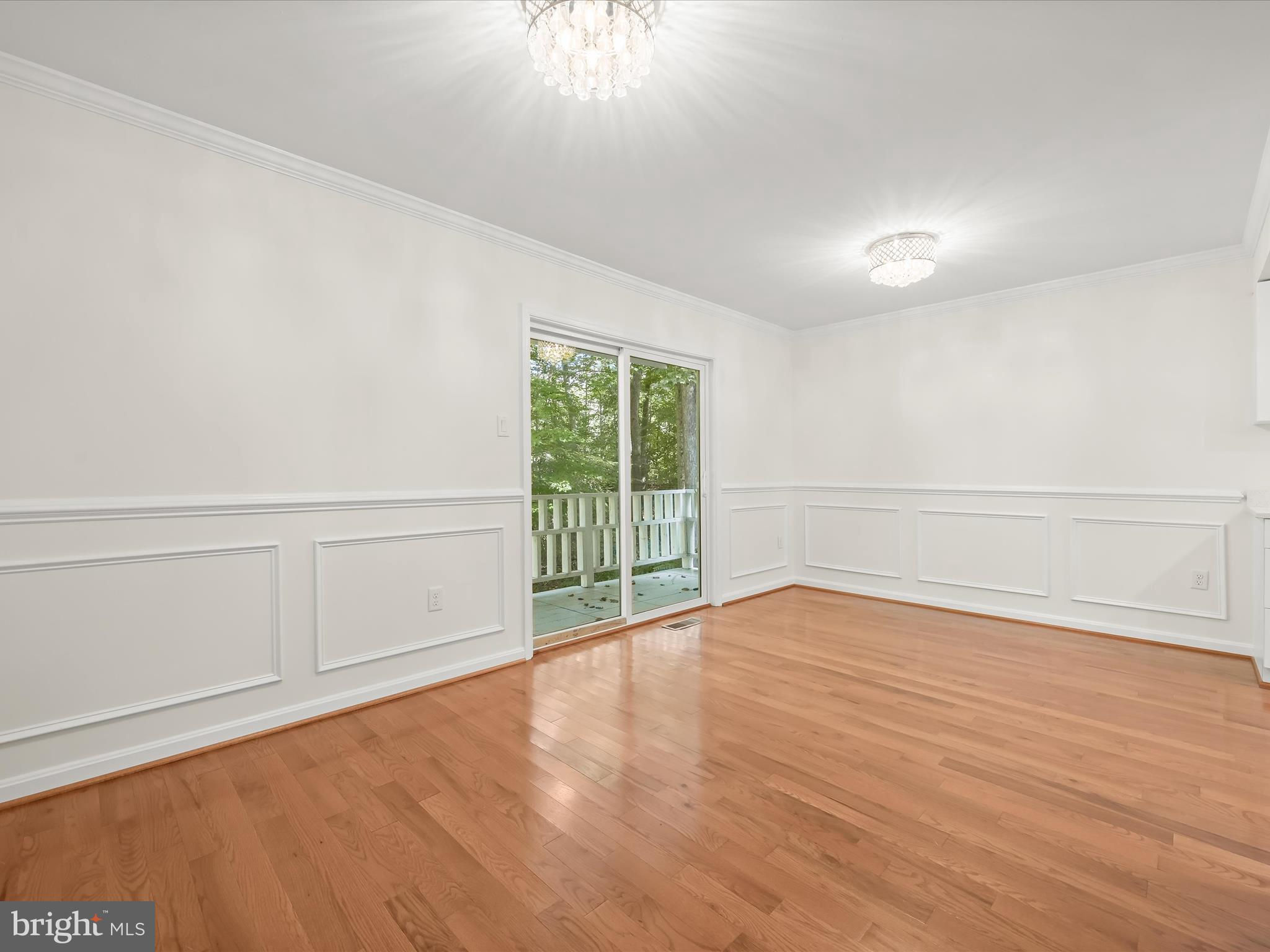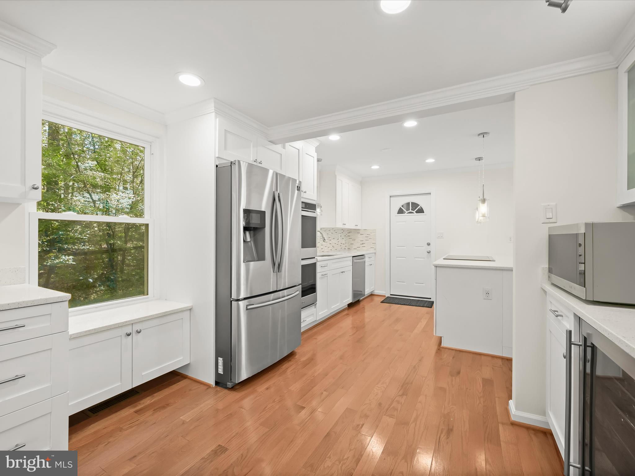 Nestled on a wooded cul-de-sac in the serene Forest Hills subdivision, this stunning brick Colonial has been meticulously renovated in 2020, seamlessly blending timeless elegance with modern luxury. Spanning over 3,000 square feet across three finished levels, the home offers 4 spacious bedrooms and 4.5 bathrooms, providing ample space for both relaxation and entertaining. Step inside to discover a harmonious mix of hardwood flooring, stylish lighting fixtures, and architectural details including crown moldings and box wainscoting that elevate the living spaces. The living room welcomes you with soaring vaulted ceilings, a floor-to-ceiling brick fireplace, and glamorous chandeliers, creating an impressive focal point for gatherings. Adjacent, the den features matching wainscoting and abundant natural light, offering a distinguished space for work or leisure. The chef-inspired kitchen is a showpiece, complete with stainless steel appliances, double ovens, an induction cooktop, sparkling quartz countertops, and an expansive island perfect for casual dining or culinary creations. A butler’s pantry with a wine cooler and charming window seat enhances functionality, while the dining area, with a sliding glass door leading to the balcony, provides a seamless indoor-outdoor connection for entertaining or grilling. Retreat to the main-level primary suite, a private haven with a walk-in closet and a luxurious en-suite bath featuring upgraded countertops with modern vessel sinks, and a tiled tub/shower surround accented by marble-look tile and mosaic inlay. Upstairs, one bedroom enjoys an en-suite bath, while the other two share a beautifully updated full hall bath. The fully finished basement expands the home’s living and entertaining options, offering an expansive family room with a second brick fireplace and sliding glass access to the backyard. A recreation area with a granite wet bar and mini refrigerator is perfect for entertaining or cozy movie nights. The lower level also includes a laundry room and a third full bath. Outside, the property sits on a generous two-acre lot backing to lush parkland and trees, offering a tranquil escape. The balcony provides picturesque views, and the included additional two-acre lot expands the total property to four acres. With an attached two-car garage and ample driveway parking, convenience and accessibility are unmatched. Bowie, MD provides a variety of amenities for every lifestyle. Residents enjoy shopping and dining at Bowie Town Center, Hilltop Plaza, and Bowie Plaza, as well as recreational opportunities at Allen Pond Park and the Bowie Community Center. Major highways ensure easy access to Washington, D.C., Baltimore, and Annapolis, combining small-town charm with city convenience. This exquisite home is a rare find, offering luxurious interior finishes, expansive outdoor spaces, and a serene, private setting, a perfect sanctuary for those seeking elegance and comfort. PROPERTY includes two tax IDs for a total of 4 acres.