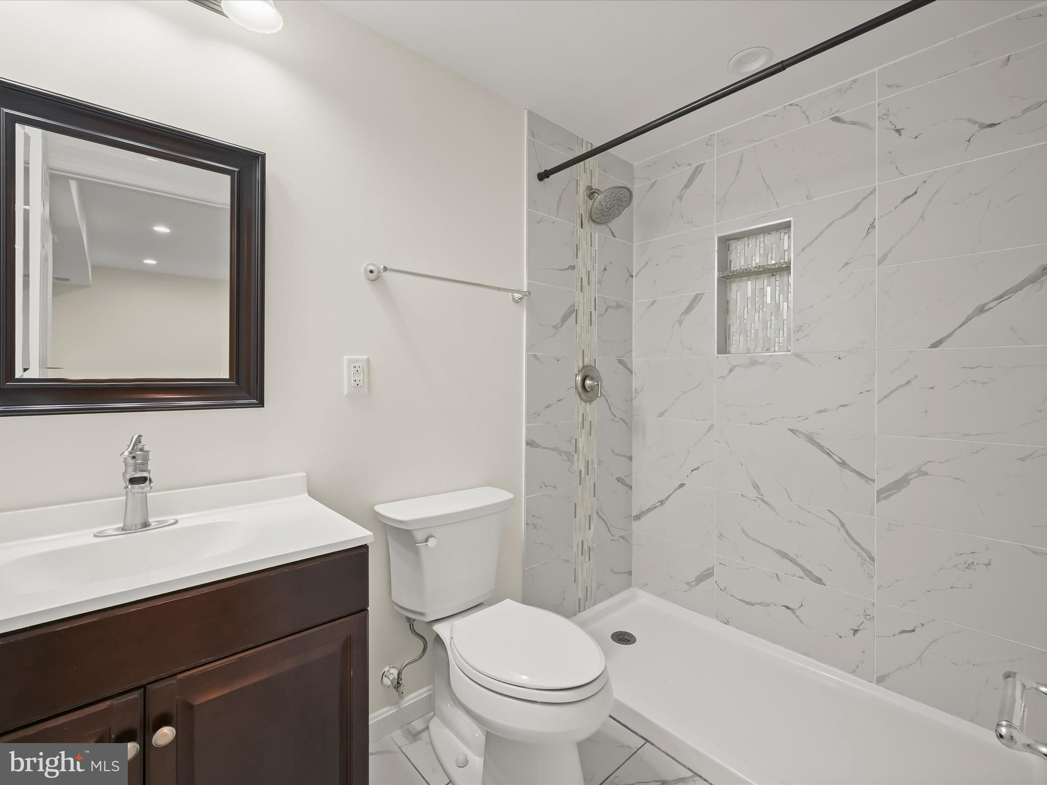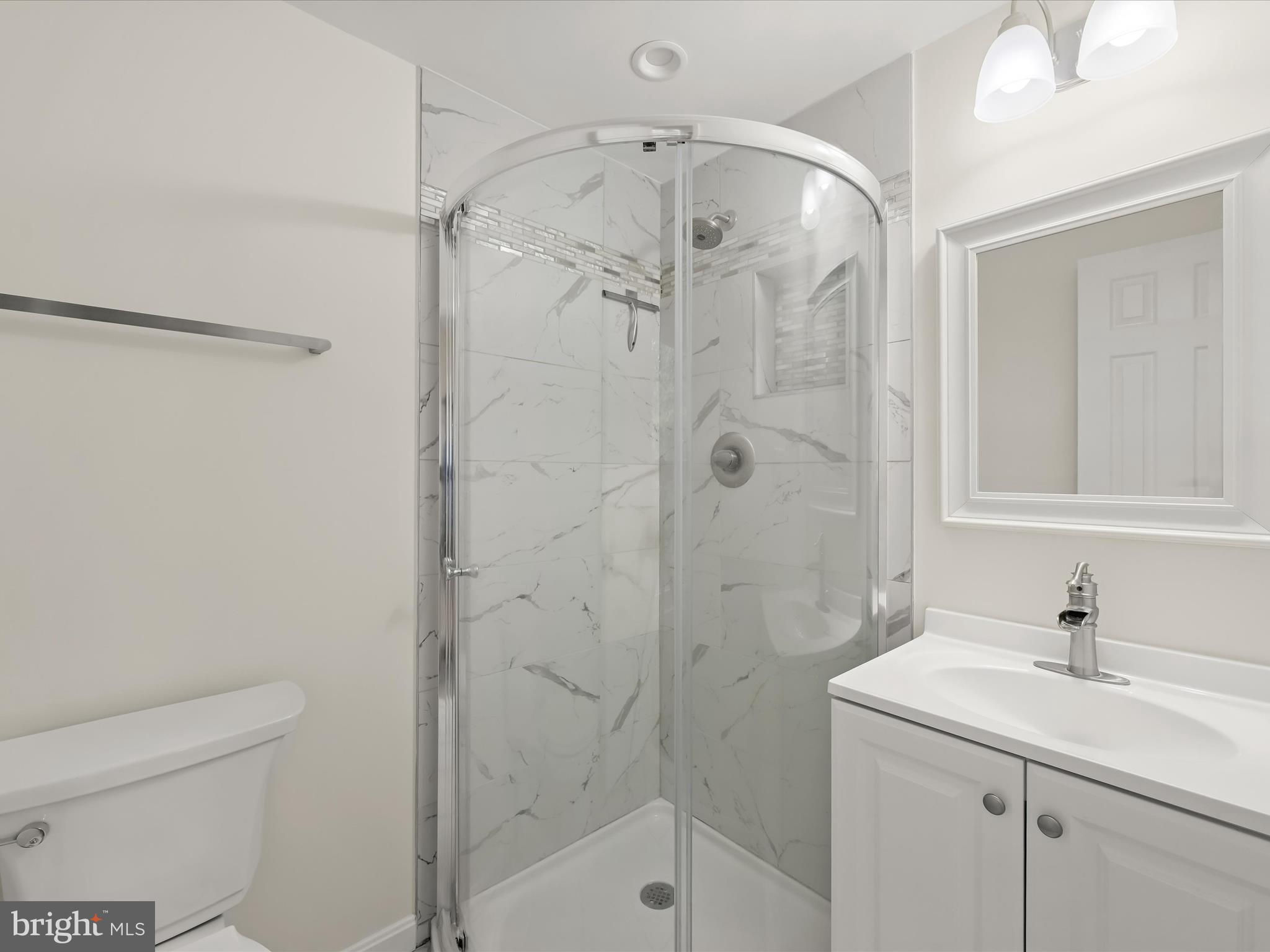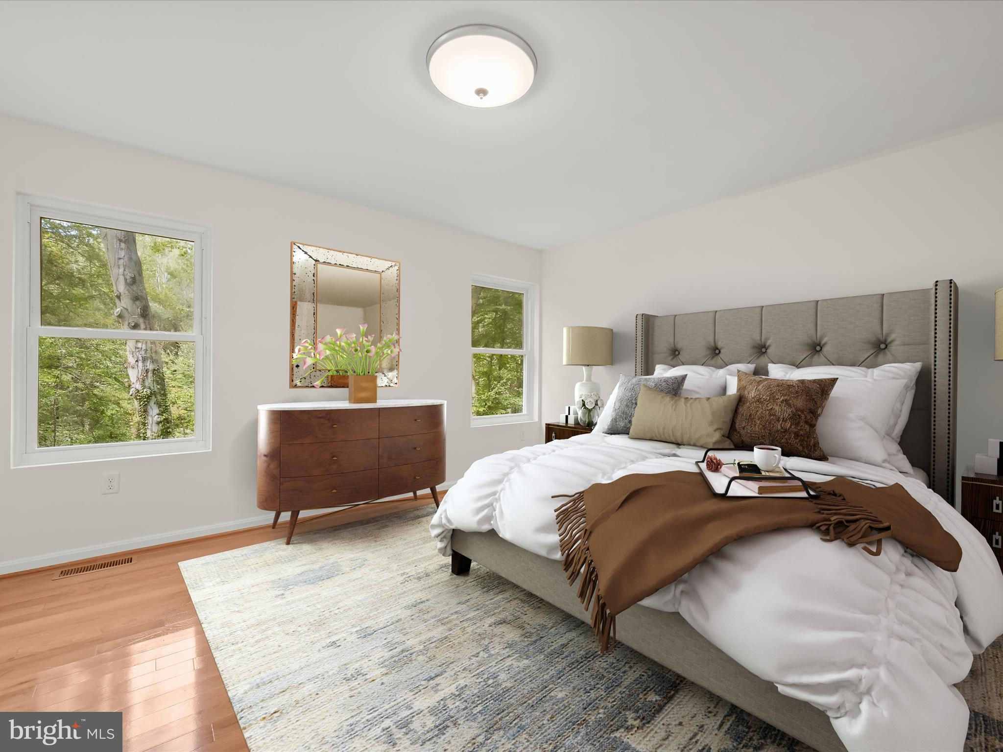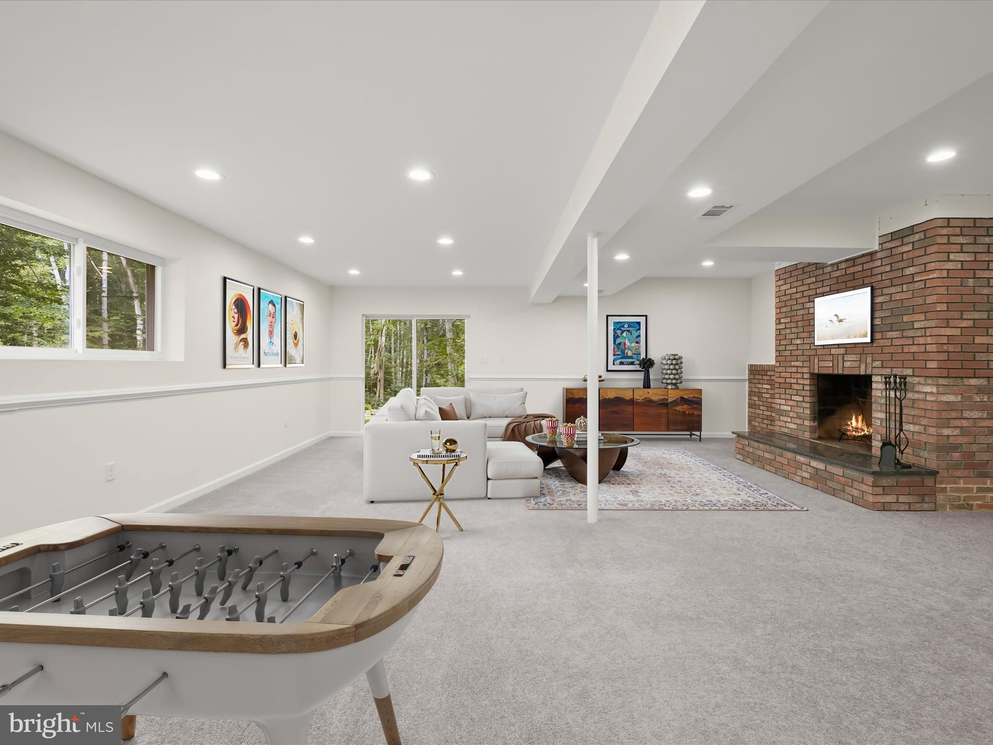 Nestled on a wooded cul-de-sac in the serene Forest Hills subdivision, this stunning brick Colonial has been meticulously renovated in 2020, seamlessly blending timeless elegance with modern luxury. Spanning over 3,000 square feet across three finished levels, the home offers 4 spacious bedrooms and 4.5 bathrooms, providing ample space for both relaxation and entertaining. Step inside to discover a harmonious mix of hardwood flooring, stylish lighting fixtures, and architectural details including crown moldings and box wainscoting that elevate the living spaces. The living room welcomes you with soaring vaulted ceilings, a floor-to-ceiling brick fireplace, and glamorous chandeliers, creating an impressive focal point for gatherings. Adjacent, the den features matching wainscoting and abundant natural light, offering a distinguished space for work or leisure. The chef-inspired kitchen is a showpiece, complete with stainless steel appliances, double ovens, an induction cooktop, sparkling quartz countertops, and an expansive island perfect for casual dining or culinary creations. A butler’s pantry with a wine cooler and charming window seat enhances functionality, while the dining area, with a sliding glass door leading to the balcony, provides a seamless indoor-outdoor connection for entertaining or grilling. Retreat to the main-level primary suite, a private haven with a walk-in closet and a luxurious en-suite bath featuring upgraded countertops with modern vessel sinks, and a tiled tub/shower surround accented by marble-look tile and mosaic inlay. Upstairs, one bedroom enjoys an en-suite bath, while the other two share a beautifully updated full hall bath. The fully finished basement expands the home’s living and entertaining options, offering an expansive family room with a second brick fireplace and sliding glass access to the backyard. A recreation area with a granite wet bar and mini refrigerator is perfect for entertaining or cozy movie nights. The lower level also includes a laundry room and a third full bath. Outside, the property sits on a generous two-acre lot backing to lush parkland and trees, offering a tranquil escape. The balcony provides picturesque views, and the included additional two-acre lot expands the total property to four acres. With an attached two-car garage and ample driveway parking, convenience and accessibility are unmatched. Bowie, MD provides a variety of amenities for every lifestyle. Residents enjoy shopping and dining at Bowie Town Center, Hilltop Plaza, and Bowie Plaza, as well as recreational opportunities at Allen Pond Park and the Bowie Community Center. Major highways ensure easy access to Washington, D.C., Baltimore, and Annapolis, combining small-town charm with city convenience. This exquisite home is a rare find, offering luxurious interior finishes, expansive outdoor spaces, and a serene, private setting, a perfect sanctuary for those seeking elegance and comfort. PROPERTY includes two tax IDs for a total of 4 acres.