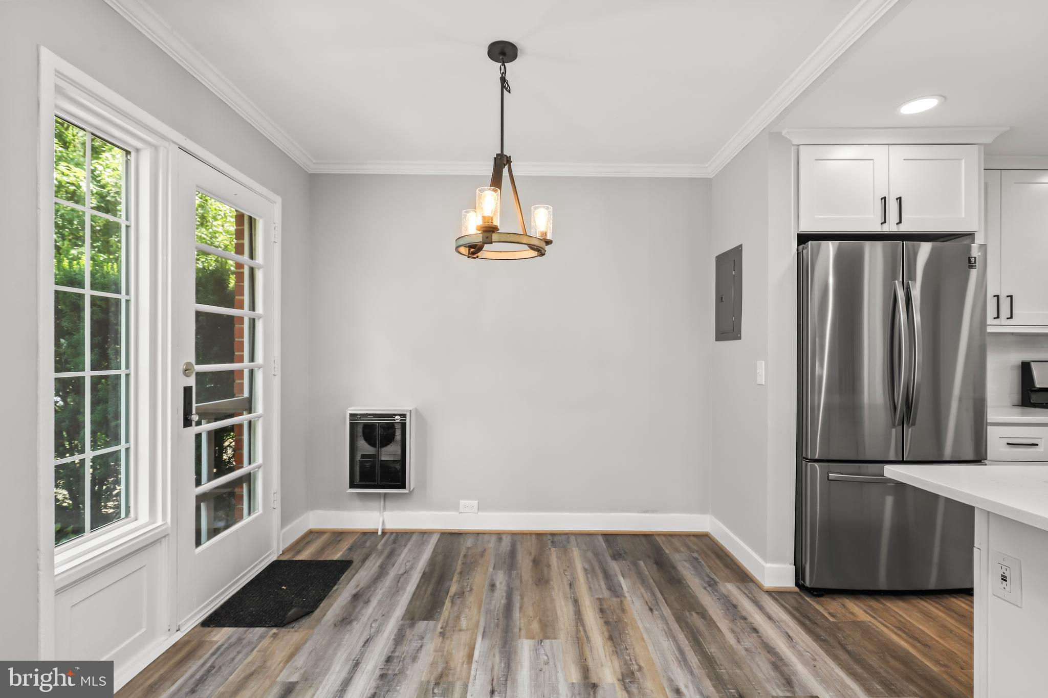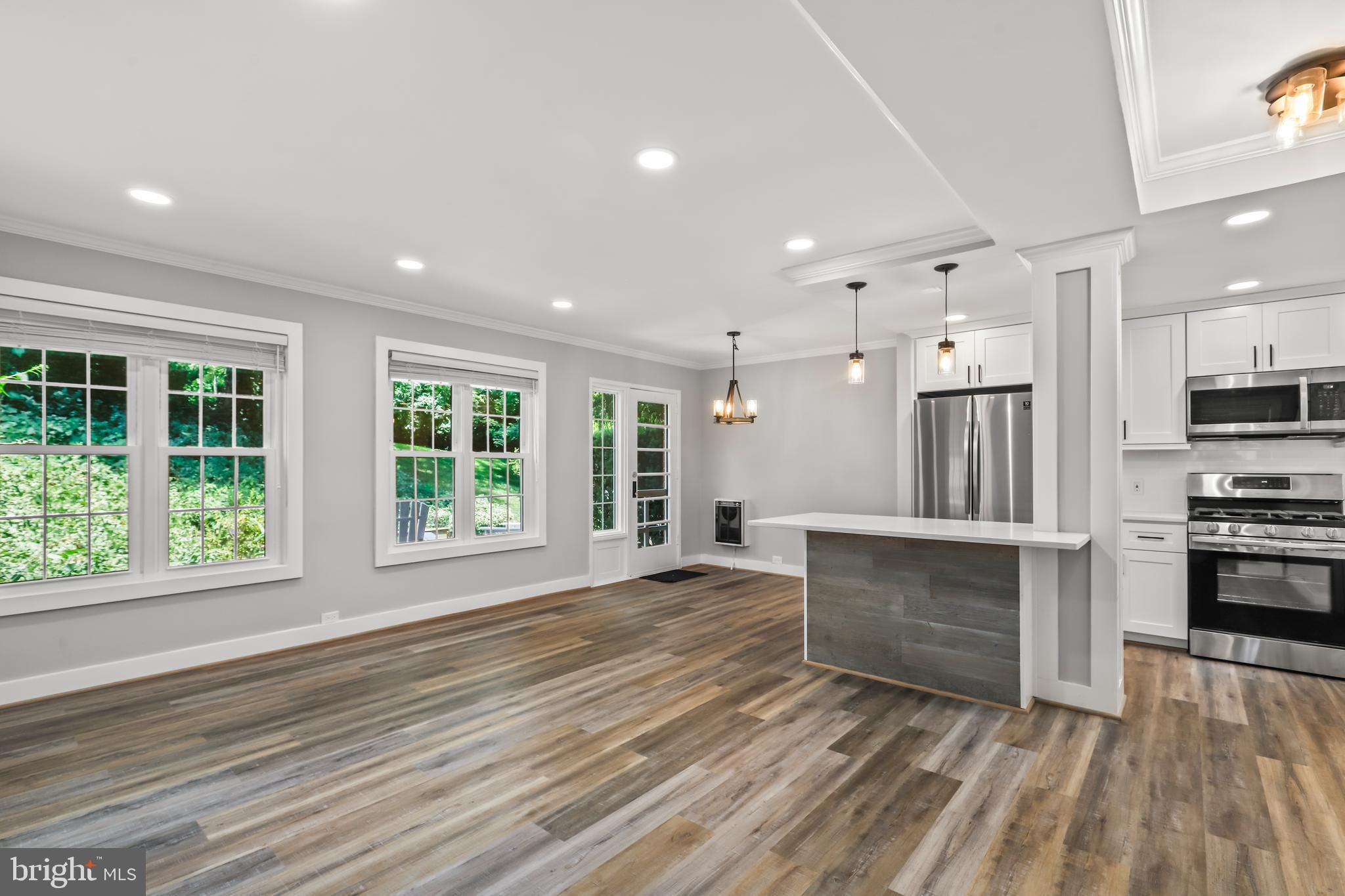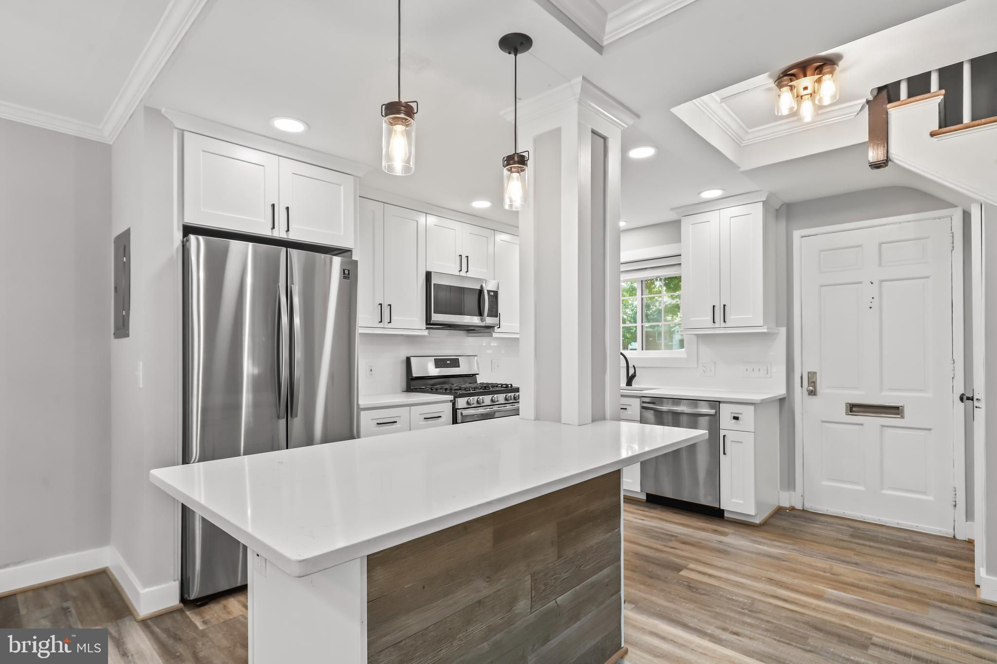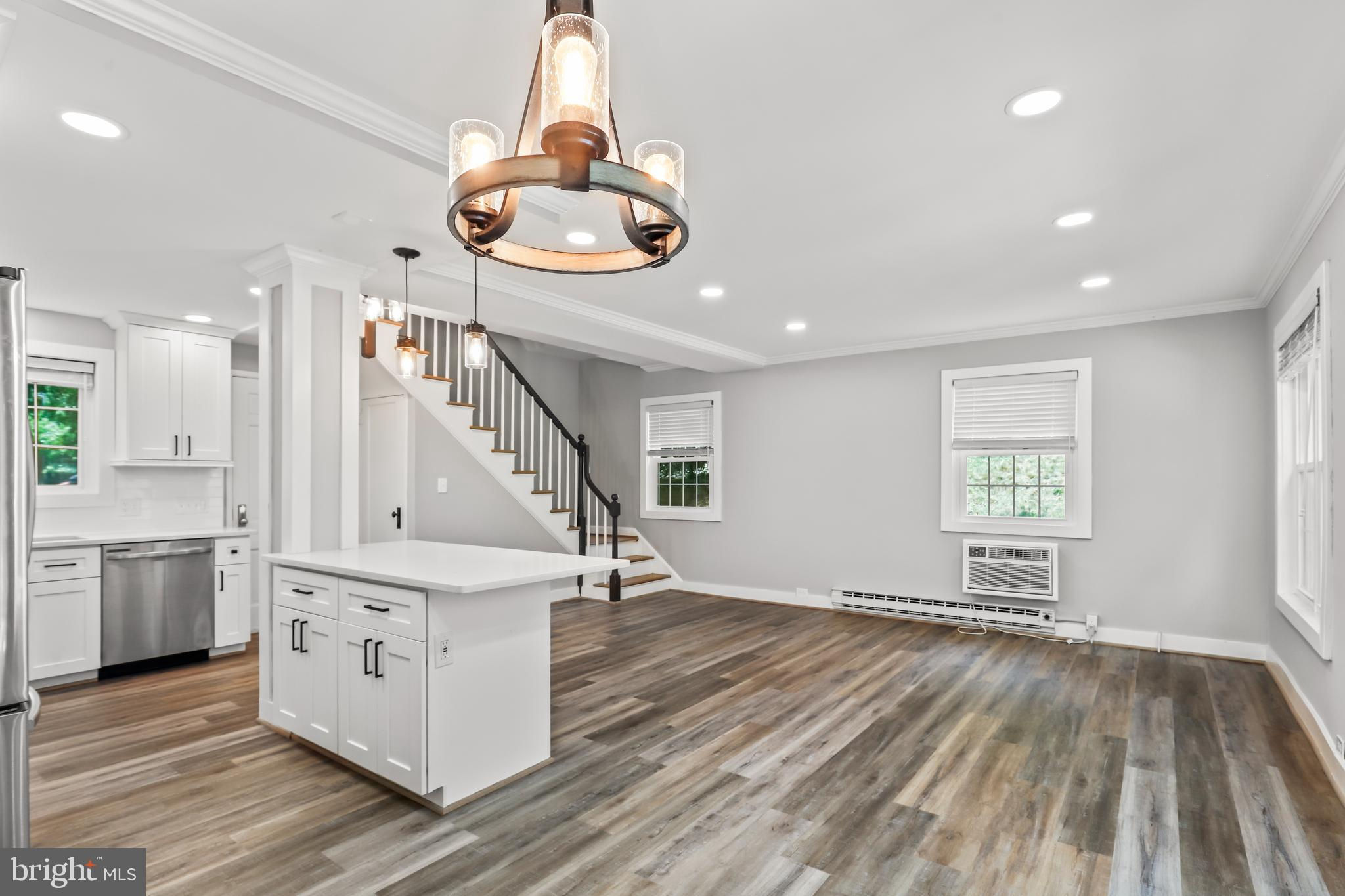 NEW PRICE! Absolutely stunning 2 bed, 1 bath end-unit townhouse, perfect for modern living! Enjoy brand new flooring throughout this beautifully updated home. The kitchen is a chef's dream, featuring sleek stainless steel appliances, a spacious island, updated light fixtures, and elegant white countertops and cabinets. The living area is illuminated by recessed lighting, adding a contemporary touch. Upstairs, you'll find two cozy bedrooms and a shared full bathroom with a gorgeous tiled shower and a chic white vanity. The backyard is a private oasis with a patio, perfect for entertaining. Ideally situated near major commuter routes, this gem is a must-see! Come tour today and fall in love with your new home!