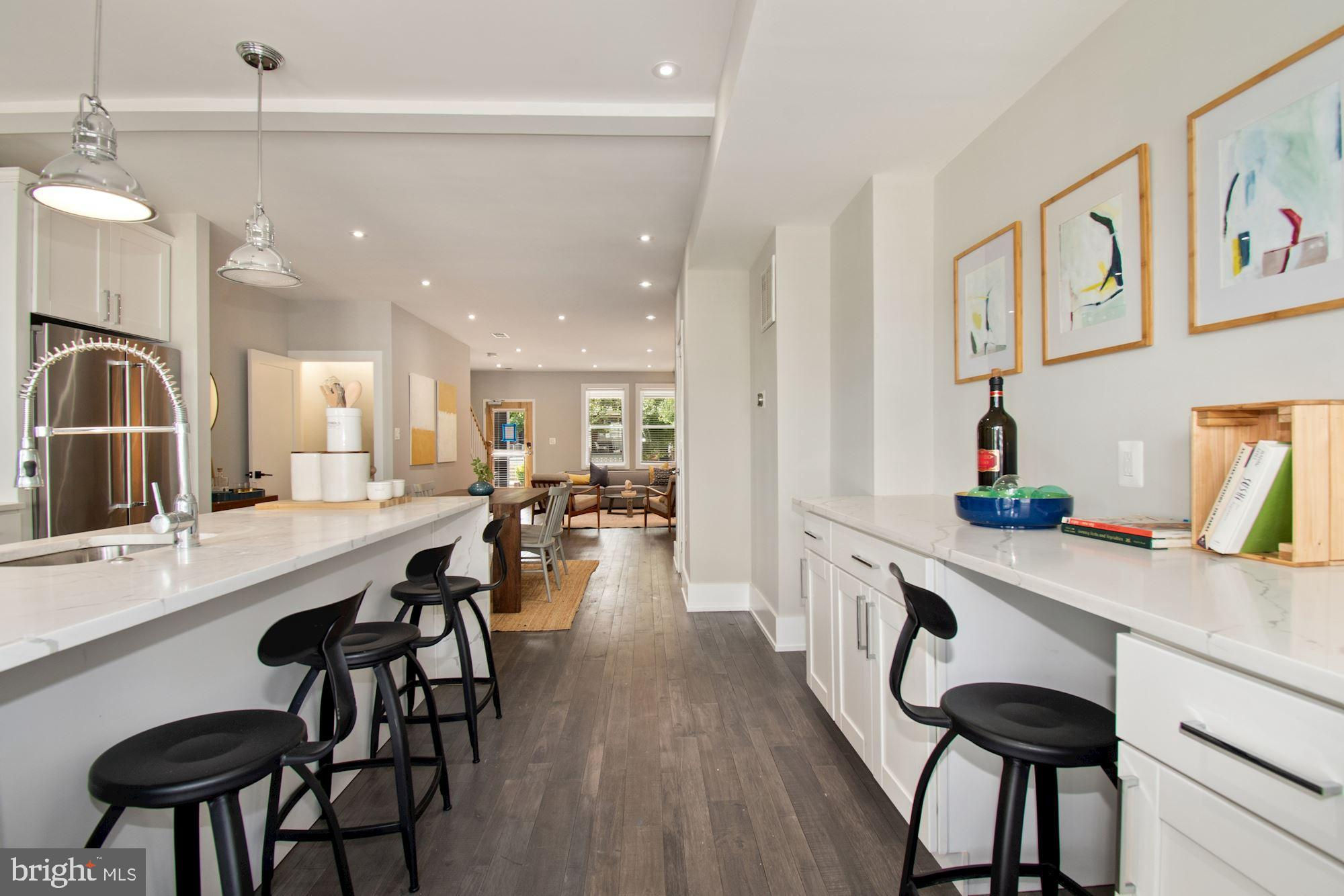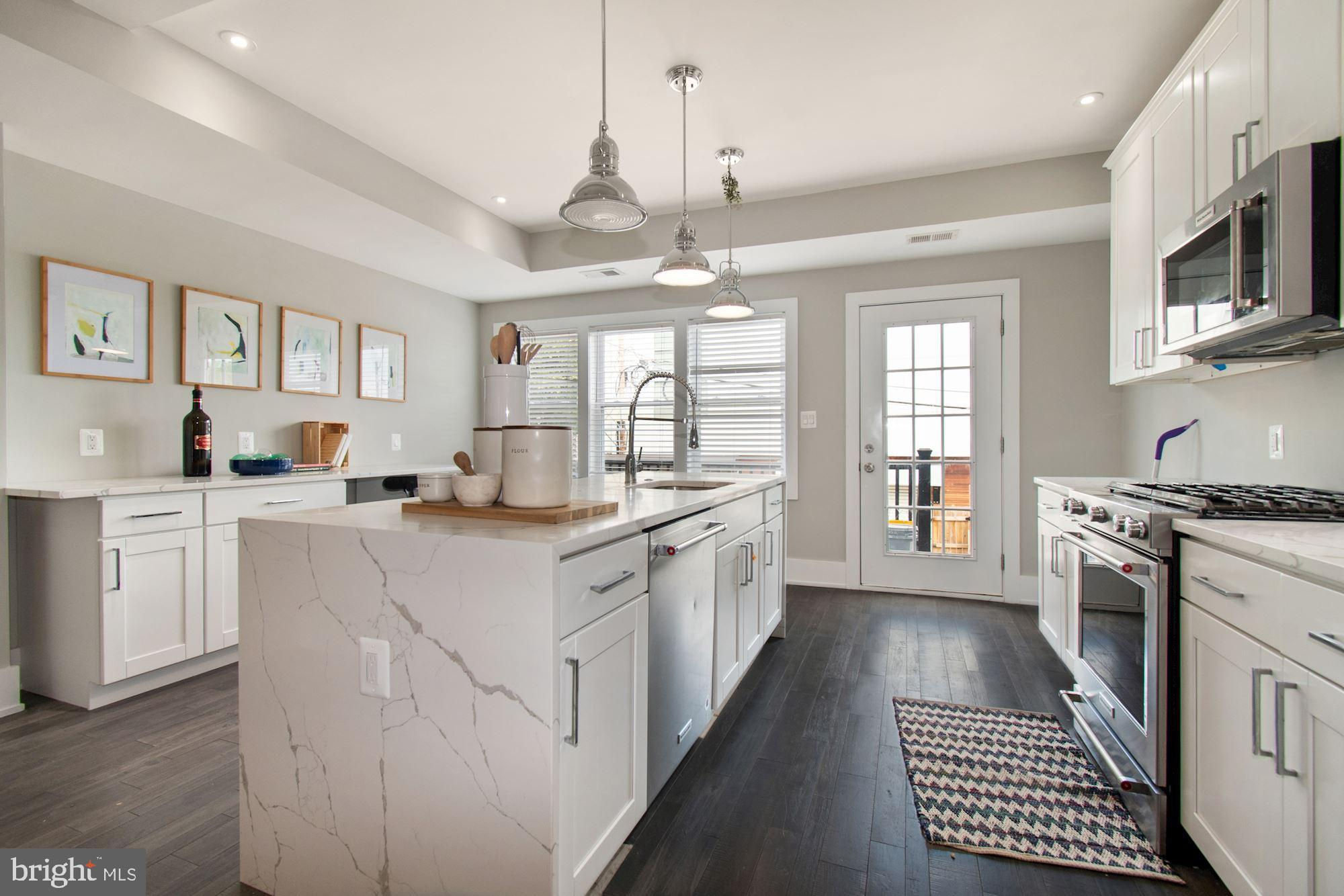 New Price! Meticulously renovated from top to bottom, no detail has been overlooked in this 5 bedroom, 3.5 bathroom home in Capitol Hill East. You are greeted by a charming front porch where you can enjoy your morning coffee. Completely open main level with an airy living room containing a decorative brick fireplace. Continuing through this floor you will find the dining area and expansive kitchen with stainless steel Kitchen Aid appliances. Centerpiece of this eat-in chef’s kitchen is the large island with marble waterfall countertops. The upper level features 3 of the 5 bedrooms, including a fantastic owner’s suite with vaulted ceilings and generous closet space. High windows in the owner’s suite allow for light to pour in, and thoughtful touches of hardwood flooring and select exposed brick make this a space you are unlikely to want to leave. Owner’s bathroom is complete with double marble topped vanity, backlit mirror, and a custom glass tile shower. This floor is rounded off with two guest rooms and another full bathroom, and stacked washer/dryer. Fully finished lower level opens with a large family and recreation room. This level contains two more legal bedrooms and another full bathroom. Kitchenette contains extra storage space, sink, microwave, and dishwasher, making this space flexible for an AuPair Suite. Ideally located in Capitol Hill East - a quick trip to the Stadium-Armory Metro Station, the fields at RFK, Kingman and Heritage Island Park, multiple schools, restaurants, and the very popular Manna Korean BBQ. Off street secured parking for 2 cars!