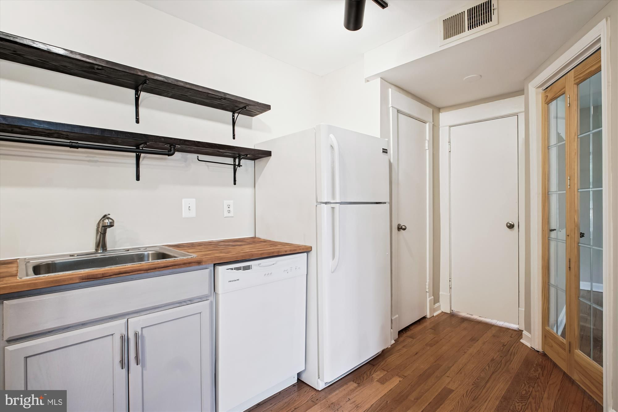 Updated 1 BR main level condo unit in the heart of Del Ray. Alexandria Square is a small condominium complex with 9 low-rise, garden tyle buildings and only 78 units. Private, off-street parking lot for residents, walking to Del Ray's main shopping and restaurant district, and only minutes to Old Town Alexandria and main commuter routes. Laundry room is in the building and this unit also has a large, secured storage unit in the basement level. New closet system in the bedroom, new HVAC, freshly painted interior. Open and bright unit with low monthly condo fees. Plans approved and work is in progress for the outdoor balcony/covered deck above the main entrance of each buildings. The seller paid the assessment for this work in full and in advanced so the new owner has no further obligation just to enjoy the fresh new look when its completed.