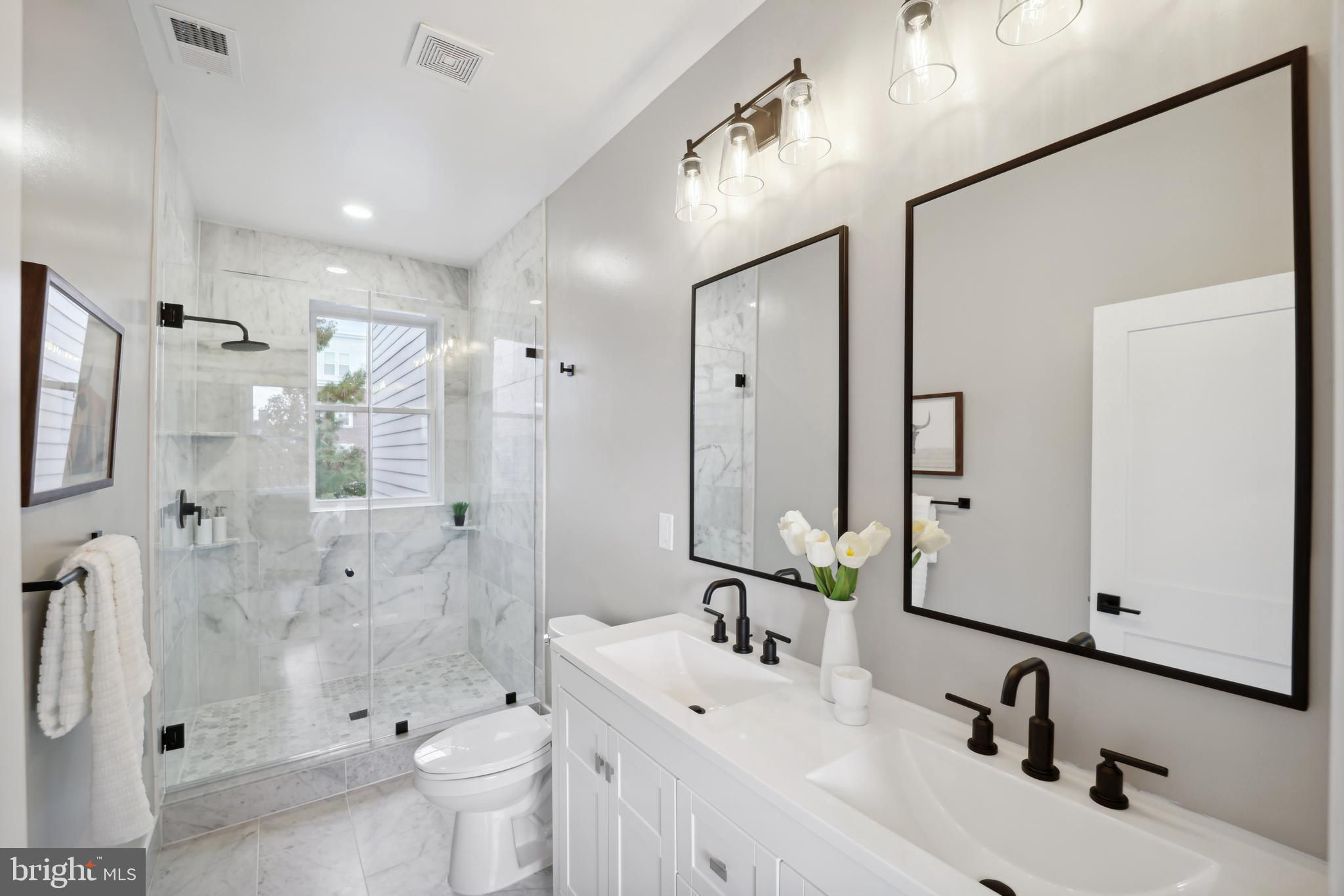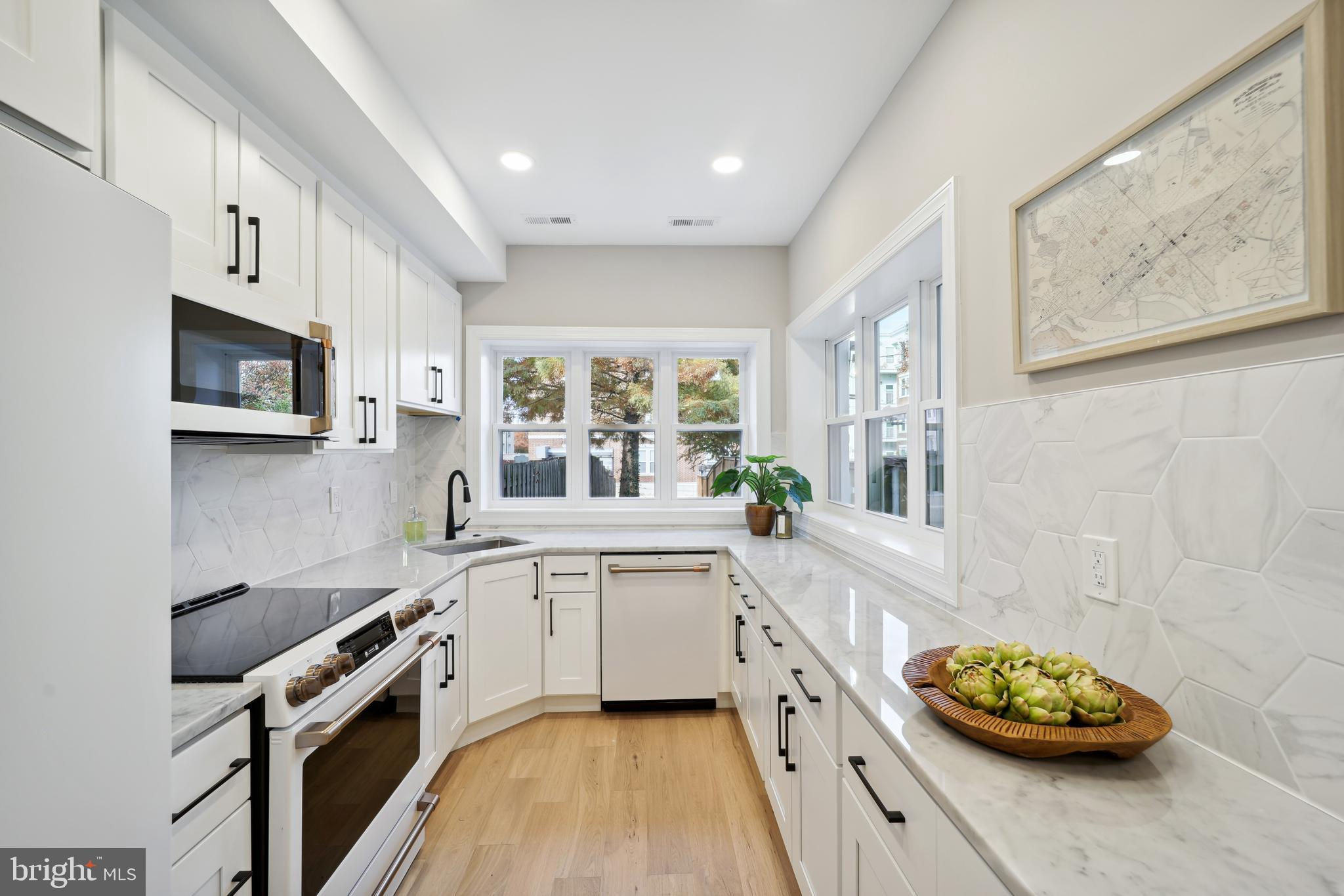 Welcome to 1712 A St. SE, an exquisite urban retreat in the heart of historic Washington, DC. This fully renovated gem offers a perfect blend of classic charm and modern luxury, featuring 2 bedrooms and 2.5 bathrooms. The entire home has new white oak hardwood floors, fresh paint, designer selected lighting, and elegant touches throughout. The kitchen is a culinary haven, fully renovated with new cabinetry, elegant white glacier quartz countertops, and matte white finish appliances. The owner’s suite welcomes abundant natural light through wide windows and offers an expansive space for a wardrobe, complemented by its own brand-new full bath featuring marble tile, new vanity and glass enclosures. Not only is it perfect inside, you have a huge private backyard AND your own parking for 2 cars. The space is perfect for hosting a huge gathering or relaxing on your own. This residence epitomizes contemporary living in a historic setting, providing not just a home but an experience. Don't miss the opportunity to call 1712 A St. SE your own—schedule a viewing today! ACT FAST, WILL NOT LAST!