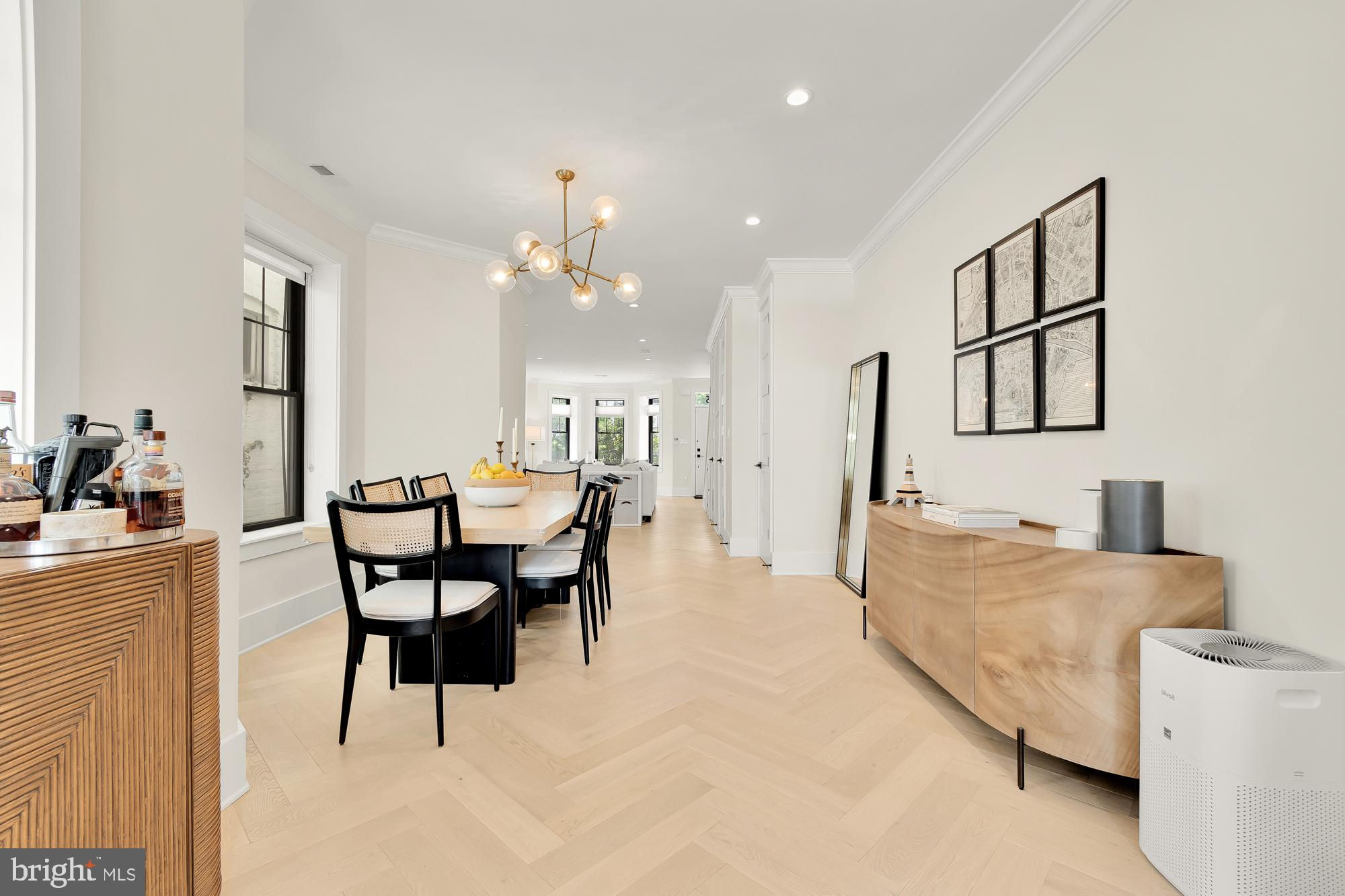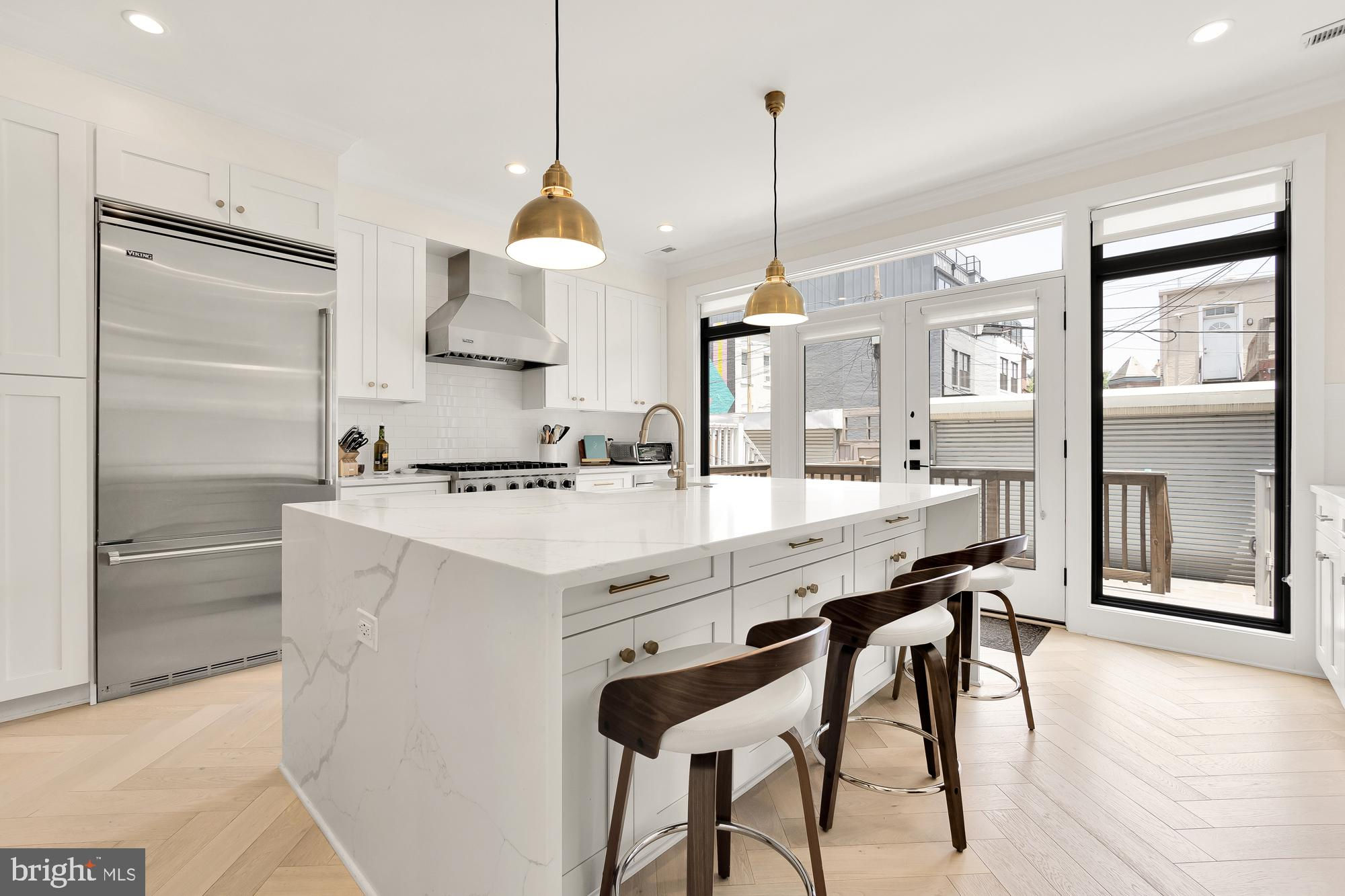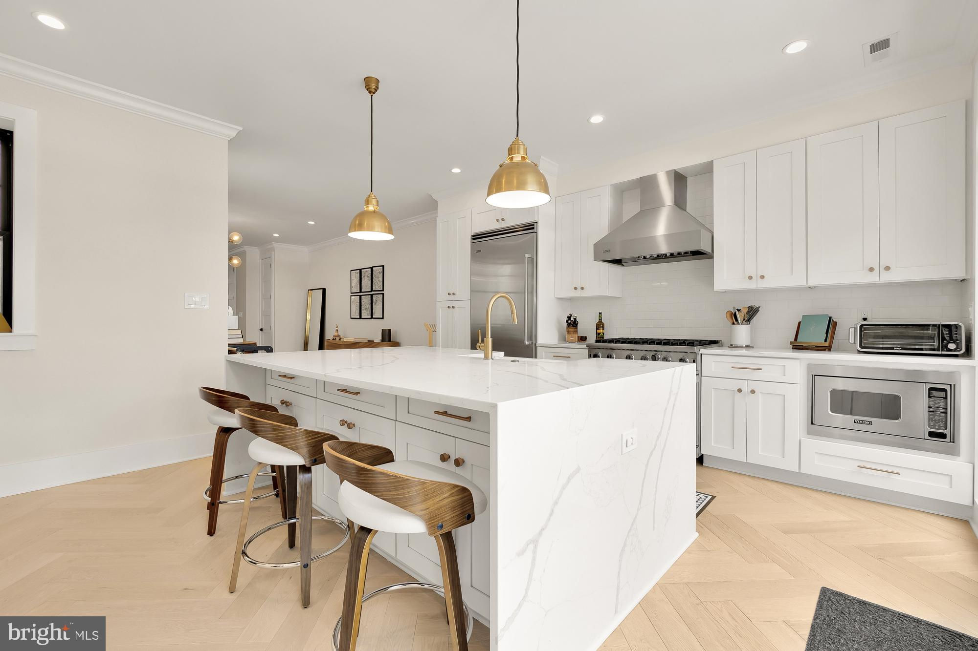 New Price! Welcome to this stunning Dilan Homes renovation, completed in 2020, nestled on a tranquil street in the heart of Shaw. This gorgeous townhouse boasts 3 bedrooms, 2.5 bathrooms, and nearly 2200 square feet of luxurious living space spread across two levels. With an impressive 18-foot width, this home offers an open floor plan featuring high-end finishes throughout, including custom herringbone white oak floors, Circa lighting, and a 2-zoned HVAC system. As you step inside, you’ll be greeted by a sunlit living room adorned with bay windows that flood the space with natural light. This inviting area flows seamlessly into the dining room and gourmet kitchen. The designer kitchen features a large center island, a top-of-the-line Viking appliance package, bright white cabinetry with ample storage, open shelving for your personal touches, and dedicated wine storage. From the kitchen, step outside to a private deck and a fenced back patio/parking area, ideal for al fresco living and entertaining. Upstairs, the primary suite serves as a true retreat, offering an abundance of natural light, generous closet space, and an ensuite spa-like bathroom. This level also includes two additional spacious bedrooms, a full bathroom, and convenient in-unit laundry. Additional amenities include secure off-street parking in the rear - a driveway with a garage door. Located just moments from downtown, the metro, restaurants, grocery stores, cafes, and more, this exquisite home offers the best of city living in a serene setting. Don’t miss the opportunity to make this exceptional property your new home! All sqft is approximate and not to be used for property valuation.