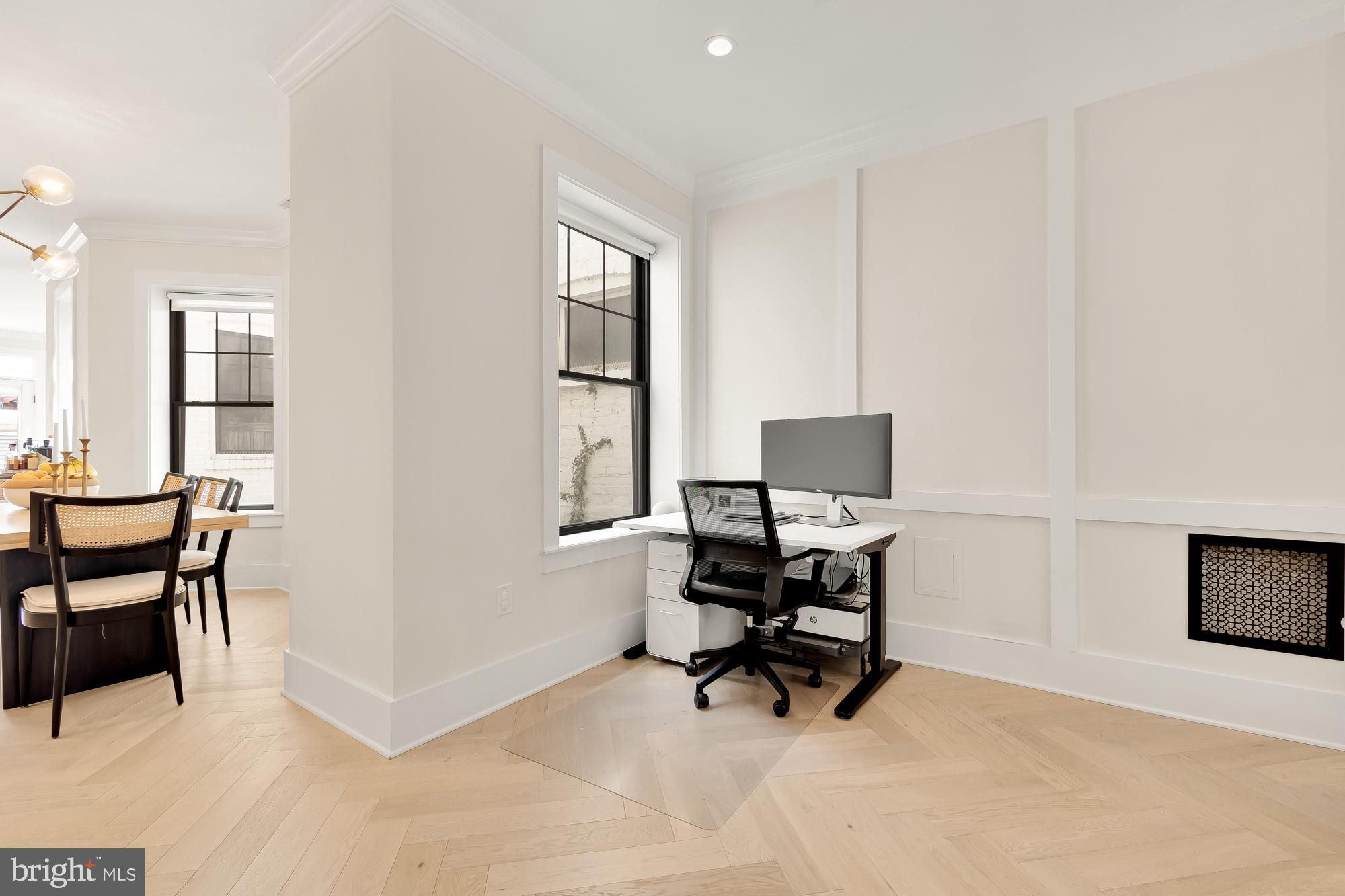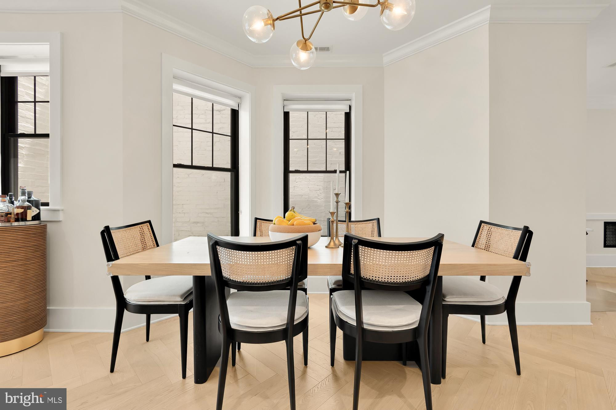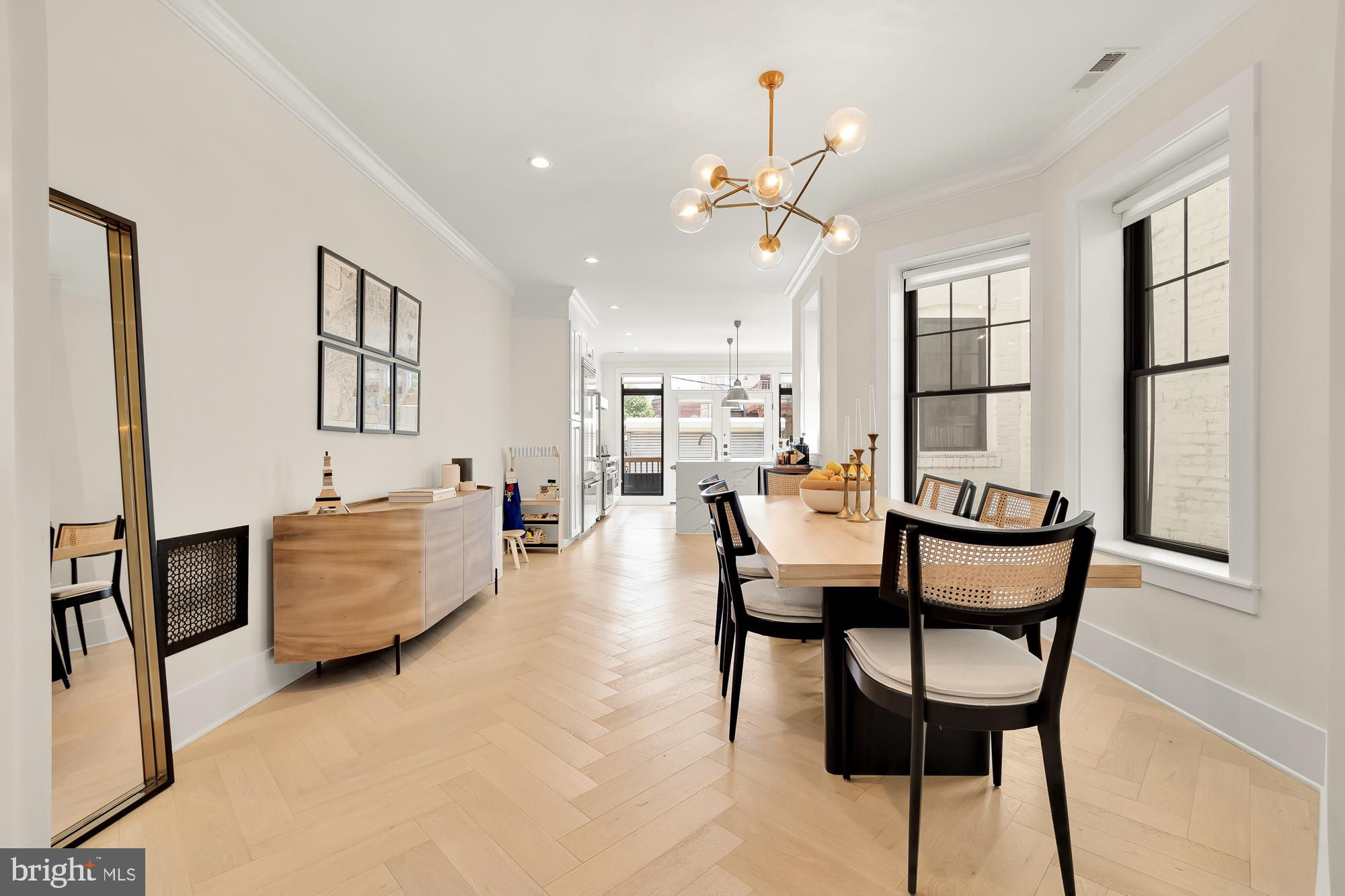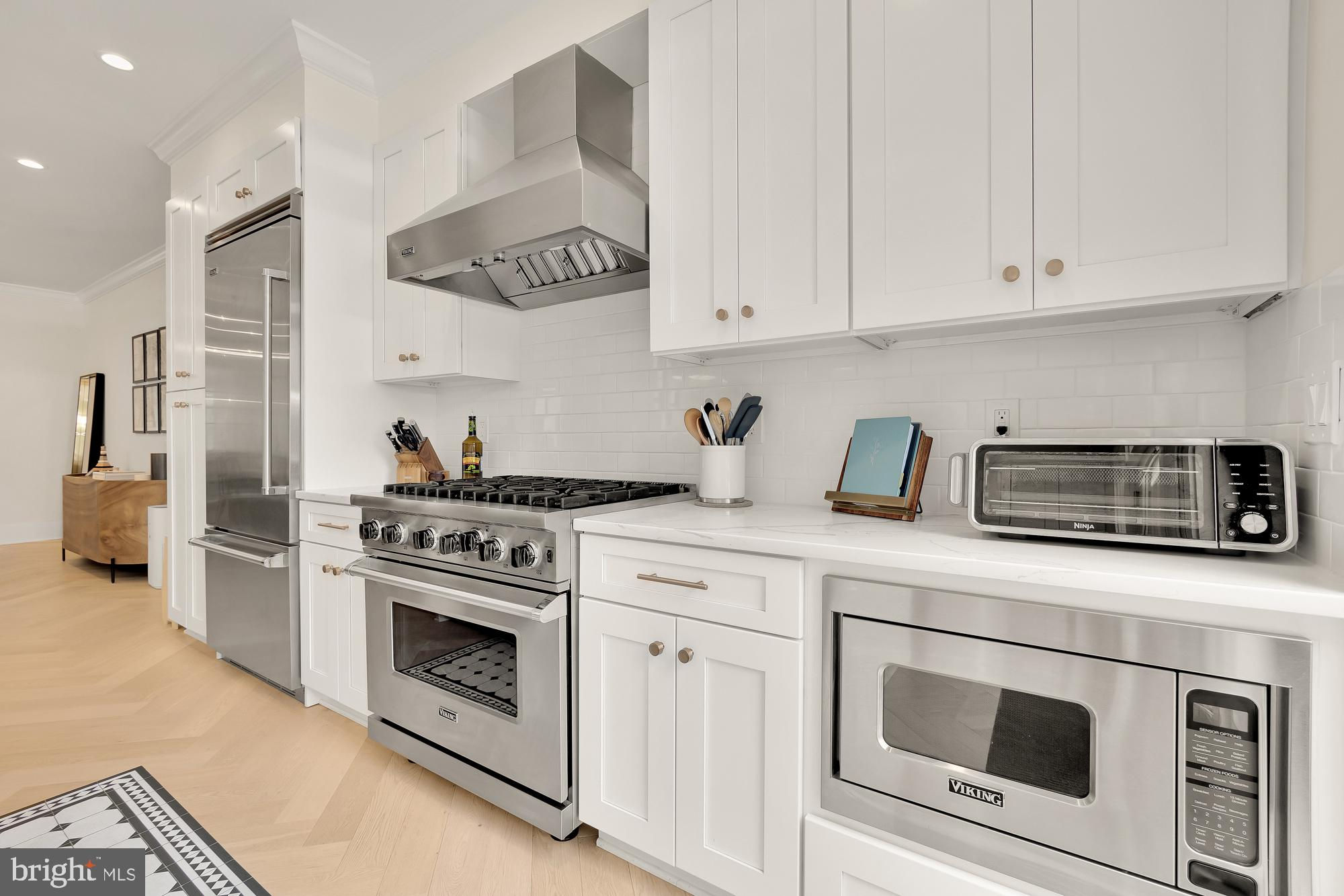 New Price! Welcome to this stunning Dilan Homes renovation, completed in 2020, nestled on a tranquil street in the heart of Shaw. This gorgeous townhouse boasts 3 bedrooms, 2.5 bathrooms, and nearly 2200 square feet of luxurious living space spread across two levels. With an impressive 18-foot width, this home offers an open floor plan featuring high-end finishes throughout, including custom herringbone white oak floors, Circa lighting, and a 2-zoned HVAC system. As you step inside, you’ll be greeted by a sunlit living room adorned with bay windows that flood the space with natural light. This inviting area flows seamlessly into the dining room and gourmet kitchen. The designer kitchen features a large center island, a top-of-the-line Viking appliance package, bright white cabinetry with ample storage, open shelving for your personal touches, and dedicated wine storage. From the kitchen, step outside to a private deck and a fenced back patio/parking area, ideal for al fresco living and entertaining. Upstairs, the primary suite serves as a true retreat, offering an abundance of natural light, generous closet space, and an ensuite spa-like bathroom. This level also includes two additional spacious bedrooms, a full bathroom, and convenient in-unit laundry. Additional amenities include secure off-street parking in the rear - a driveway with a garage door. Located just moments from downtown, the metro, restaurants, grocery stores, cafes, and more, this exquisite home offers the best of city living in a serene setting. Don’t miss the opportunity to make this exceptional property your new home! All sqft is approximate and not to be used for property valuation.