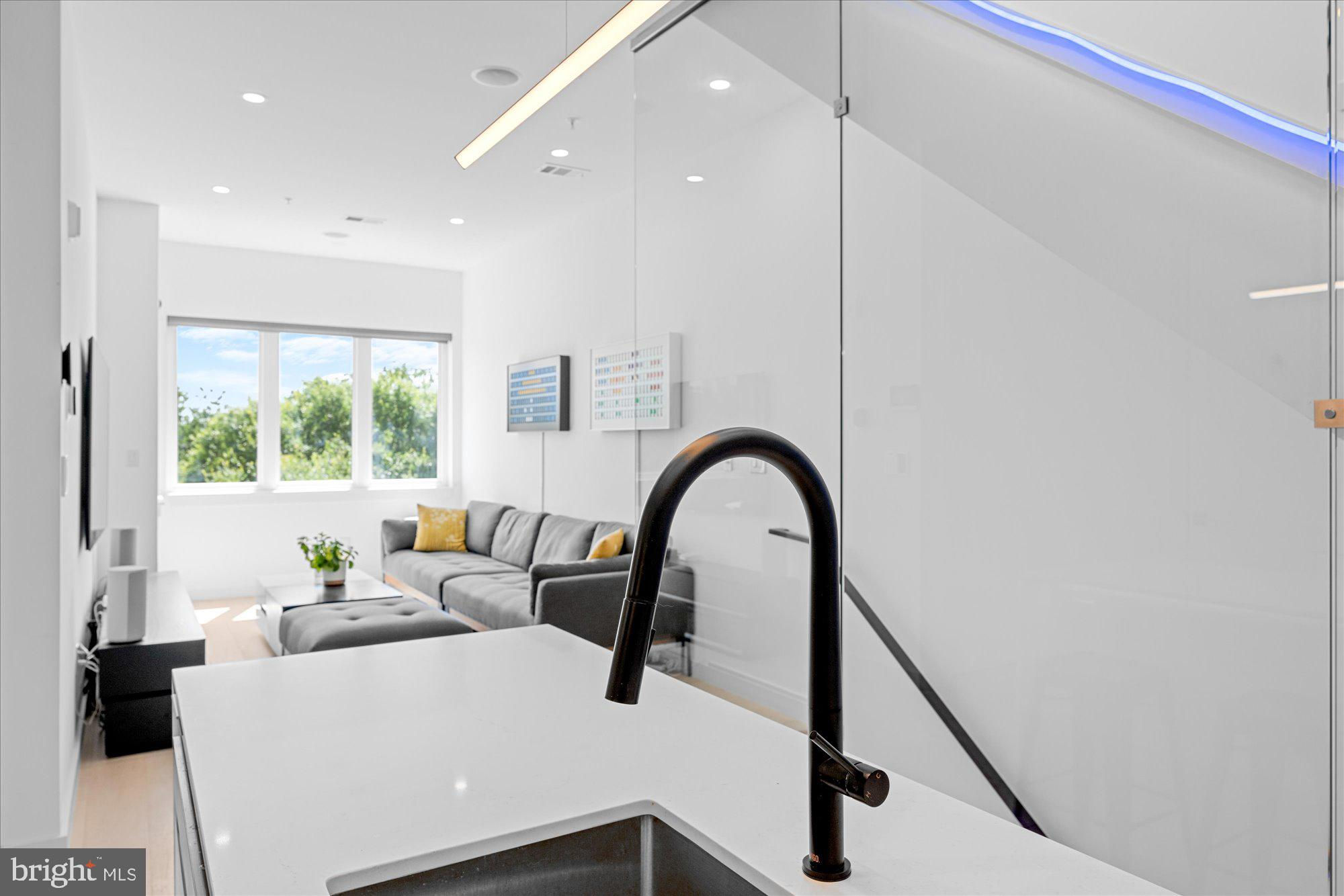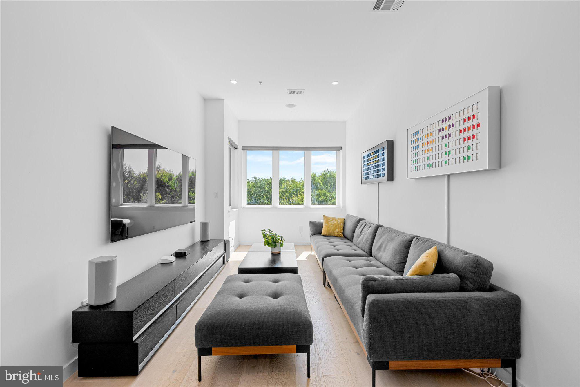 Stunning penthouse featuring a spacious private outdoor roof deck. This newly built 2-bed, 2-bath unit boasts abundant natural light and a well-designed layout. The main floor's large windows flood the space with sunlight, complemented by upgraded LED ambient lighting for evening ambiance. The kitchen showcases stainless steel appliances, a 5-burner gas range, and quartz countertops. Adjacent to the living area, the second bedroom doubles as a great office space. Upstairs, discover the primary suite and access to the rooftop deck. LED lighting extends the inviting atmosphere both indoors and out, perfect for entertaining or unwinding. Complete with a full-size washer and dryer, excellent privacy, contemporary design, motorized blinds, and high ceilings, this unit includes a smart home automation system managing HVAC and lighting, and more!