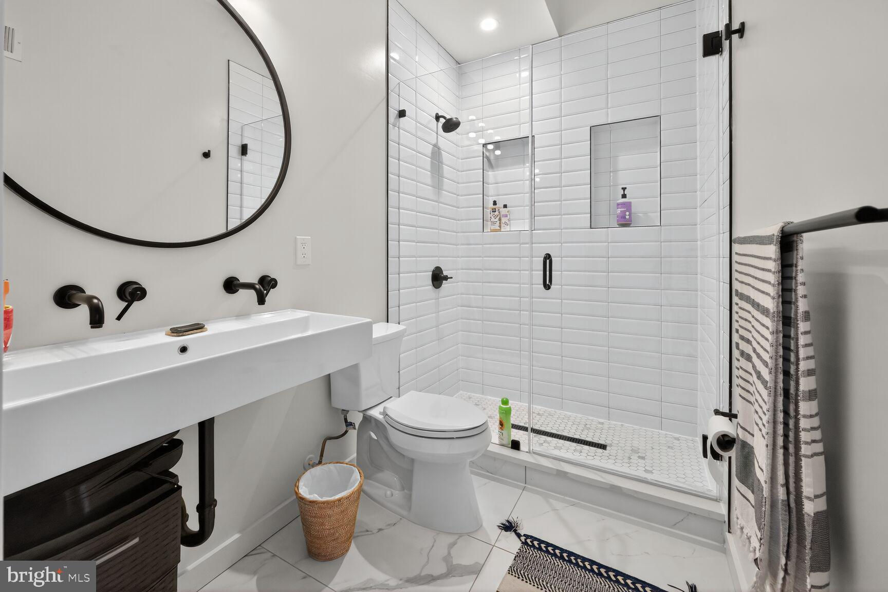 Step into the perfect blend of historic charm and modern luxury at 1719 6th Street NW, located in the heart of Shaw. Built in 1900, this fully renovated townhouse offers four bedrooms and three bathrooms across 1,524 square feet of light-filled living space. Large bay windows flood the open-concept main floor with natural light, highlighting exposed brick accents, hardwood floors, and contemporary finishes that complement the home’s historic character. The chef-ready kitchen is a true centerpiece, featuring sleek shaker cabinetry, high-end stainless steel appliances, a marble backsplash, and a stunning waterfall Carrara marble countertop island, perfect for cooking, casual dining, or entertaining. Bedrooms provide peaceful retreats with generous closet space. Bathrooms feature large subway tile, frameless glass showers, and modern fixtures for a clean, spa-inspired feel. Outside, enjoy a fully fenced backyard with a low-maintenance Trex deck, green space, and garage parking, ideal for relaxing, hosting, or convenient off-street access. Additional amenities include central air, in-unit laundry, energy-efficient lighting, smart home security features, and abundant storage. This home sits at the center of the recently completed S Street revitalization, featuring added trees, expanded sidewalks, and improved rainwater management that enhance both beauty and functionality. Life in Shaw puts everything within reach. Grab a coffee or dinner along the U Street Corridor or in Blagden Alley, catch a show at the historic Howard Theatre, or enjoy several nearby parks. Local shops, Whole Foods, and Giant are all within walking distance. With a Walk Score of 96 and a Bike Score of 93, getting around by foot, bike, or via the Shaw–Howard University Metro is effortless. 1719 6th Street NW combines timeless elegance, modern upgrades, and a prime location for buyers seeking a stylish, move-in ready home in one of DC’s most vibrant neighborhoods.