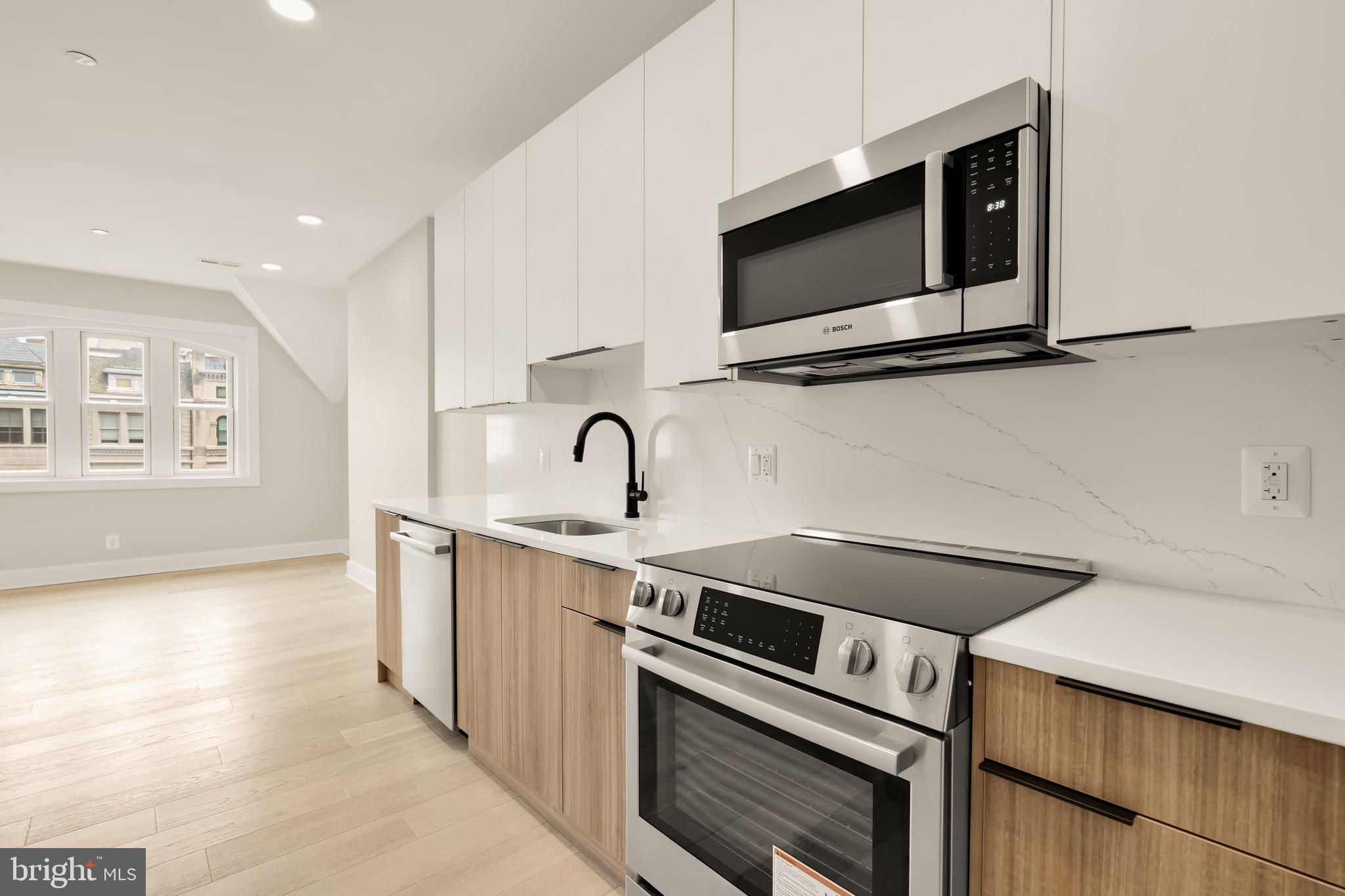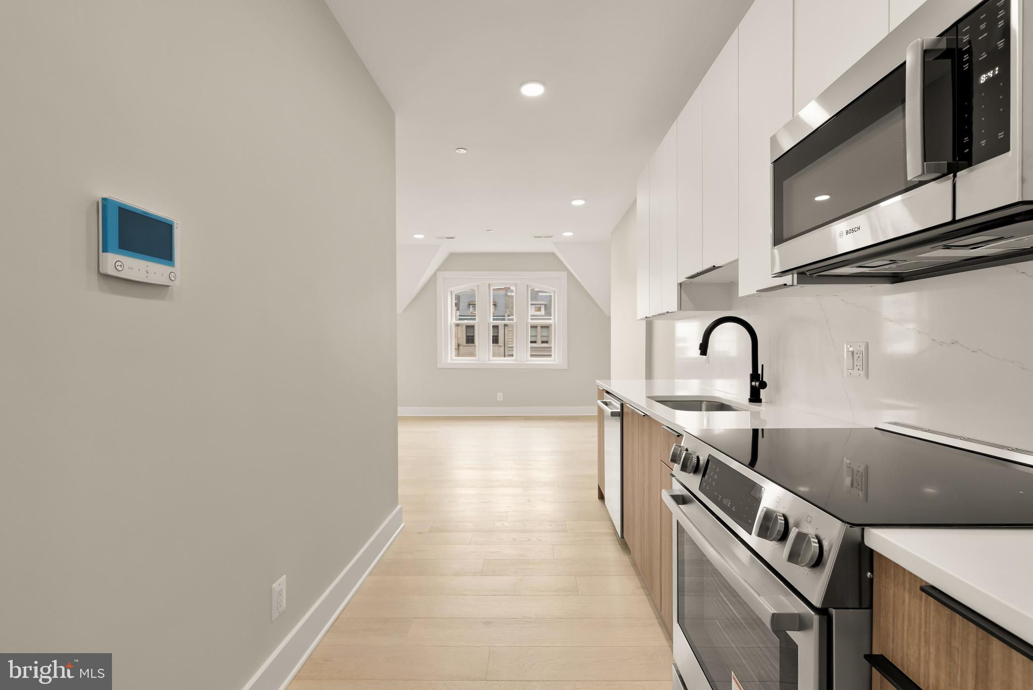 Settlements have just begun! New Construction comes to Dupont Circle! Welcome to the Nobela Condominiums, a new 9-unit boutique community offering 2-bedroom, 2-bedroom, and 2-bedroom residences with modern finishes and bright, inviting spaces - all in the heart of the sought-after Dupont Circle neighborhood. Interior features throughout each home include: AIPHONE intercom system, Two-tone kitchen cabinetry, Bosch stainless steel kitchen appliances including a 30" induction range and 36" french door refrigerator, Front-loading Bosch washer and dryer, Matte black Delta kitchen and bath fixtures, French white oak wide plank engineered hardwood flooring throughout, White quartz countertops and full-height backsplash in kitchen, Oversized porcelain tile in the bathrooms, Vented kitchen exhaust, Recessed LED lighting, Elfa custom closet systems, smart-touch home entry system and more. This particular residence is a 2 bedroom, 2 bath home that spans 929 square feet and delivers high style and smart design in a compact footprint. Located just moments to the Dupont Circle Metro and surrounded by an abundance of top-rated restaurants, cafés, and neighborhood favorites, Nobela places you at the center of one of DC’s most vibrant and accessible/walkable communities.