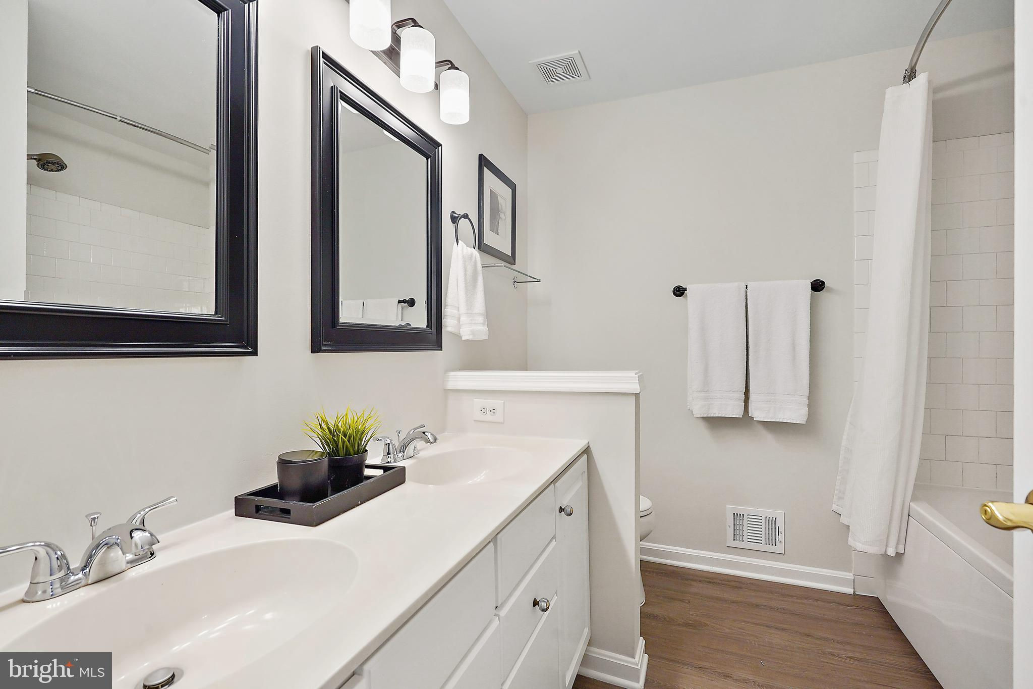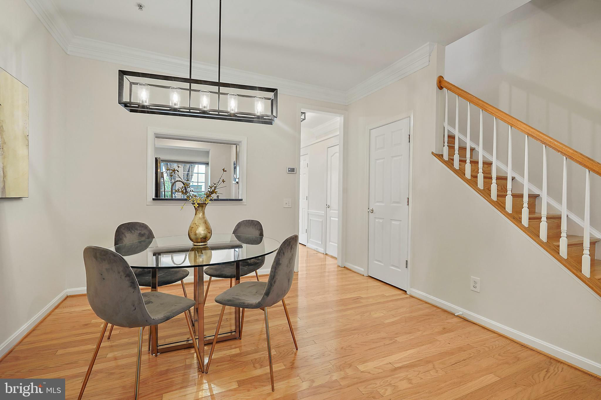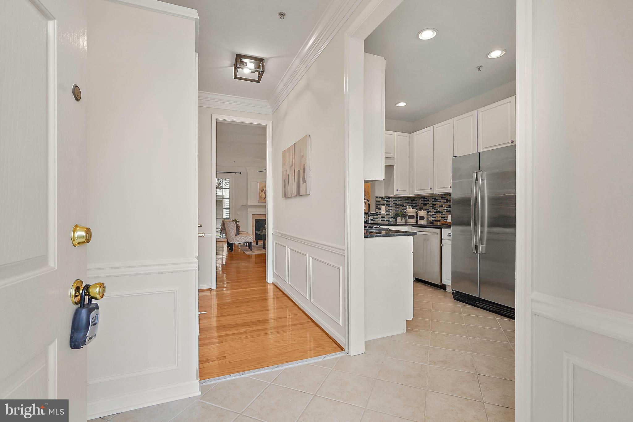 In a prime location in Alexandria, this beautiful and well-maintained townhome, with parking space #105 right outside the front door, is in the very popular and sought-after Kingsgate front landscaping of Hostas, perennials and boxwood and a brick front with decorative key over the front door and fluted surround give a polished look to the home. With easy living on two levels, the well-designed main level layout is perfect for both everyday living and for entertaining. The foyer has space for a nice piece of furniture. Tile flooring leads to the updated kitchen with matching tile, white cabinetry, stainless steel appliances and granite countertops complimented by an attractive tile backsplash. There is an opening to the living area, a pantry and plenty of storage! A convenient coat closet, a half bath and a large storage area under the stairway line the foyer and lead to the open living and dining areas. Light filters through the south-facing glass doors onto a large extended private patio. With privacy fence and towering crepe myrtles, it offers a private retreat from the hustle and bustle of everyday life. The upper-level features two-bedroom suites! The primary suite features a bath with shower, tub and vanity with two sinks. There are two closets in the master, one being a walk-in. South-facing glass doors lead to the private deck for relaxing in the morning or at the end of a long day! Like the primary bath, the second bath features attractive mirrors and lighting and the bedroom features a nook with shelving! Upgrades galore include fresh paint throughout (2025), HVAC (2025), programmable thermostat with upper-level temperature sensor (2023) The