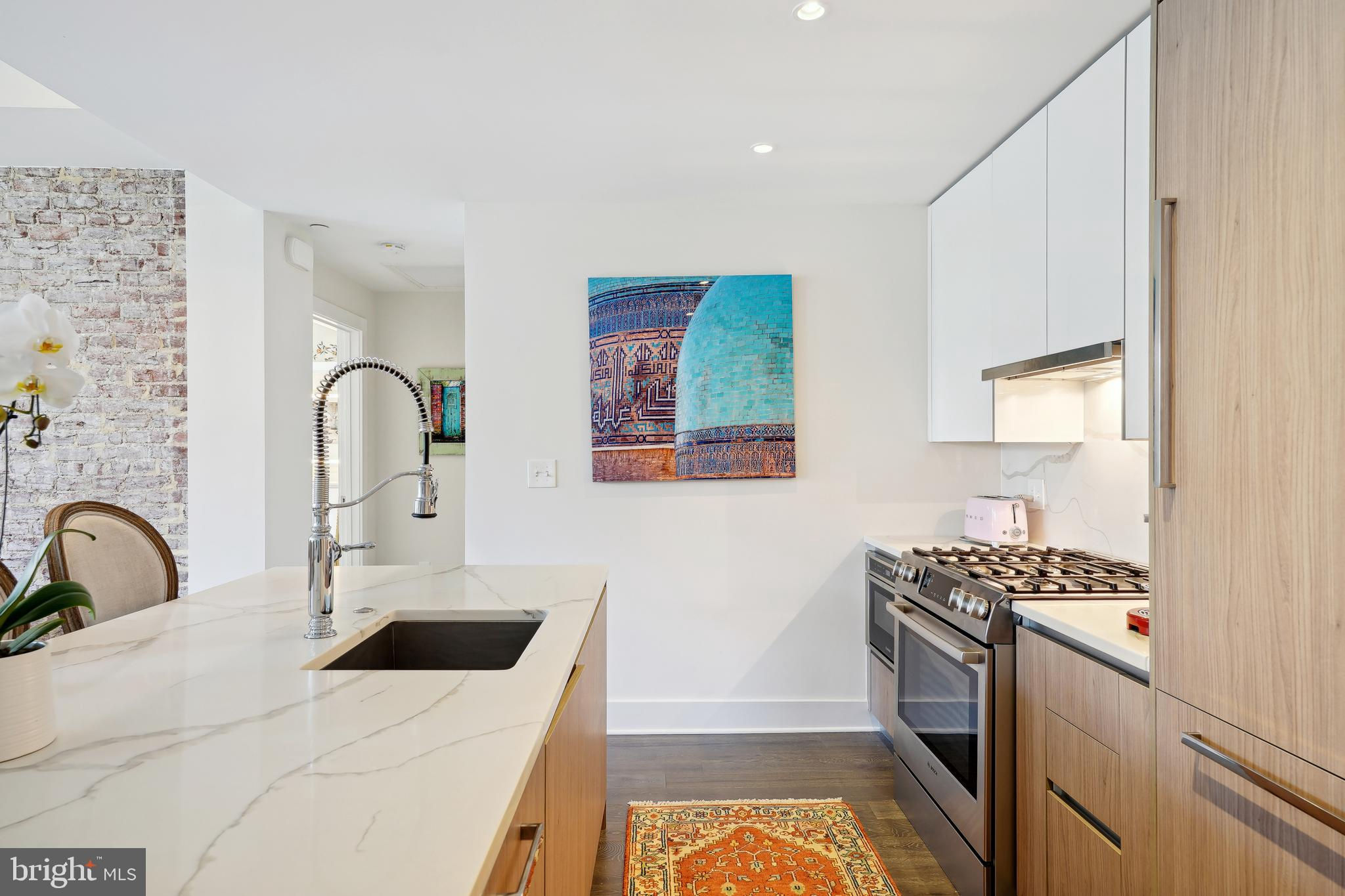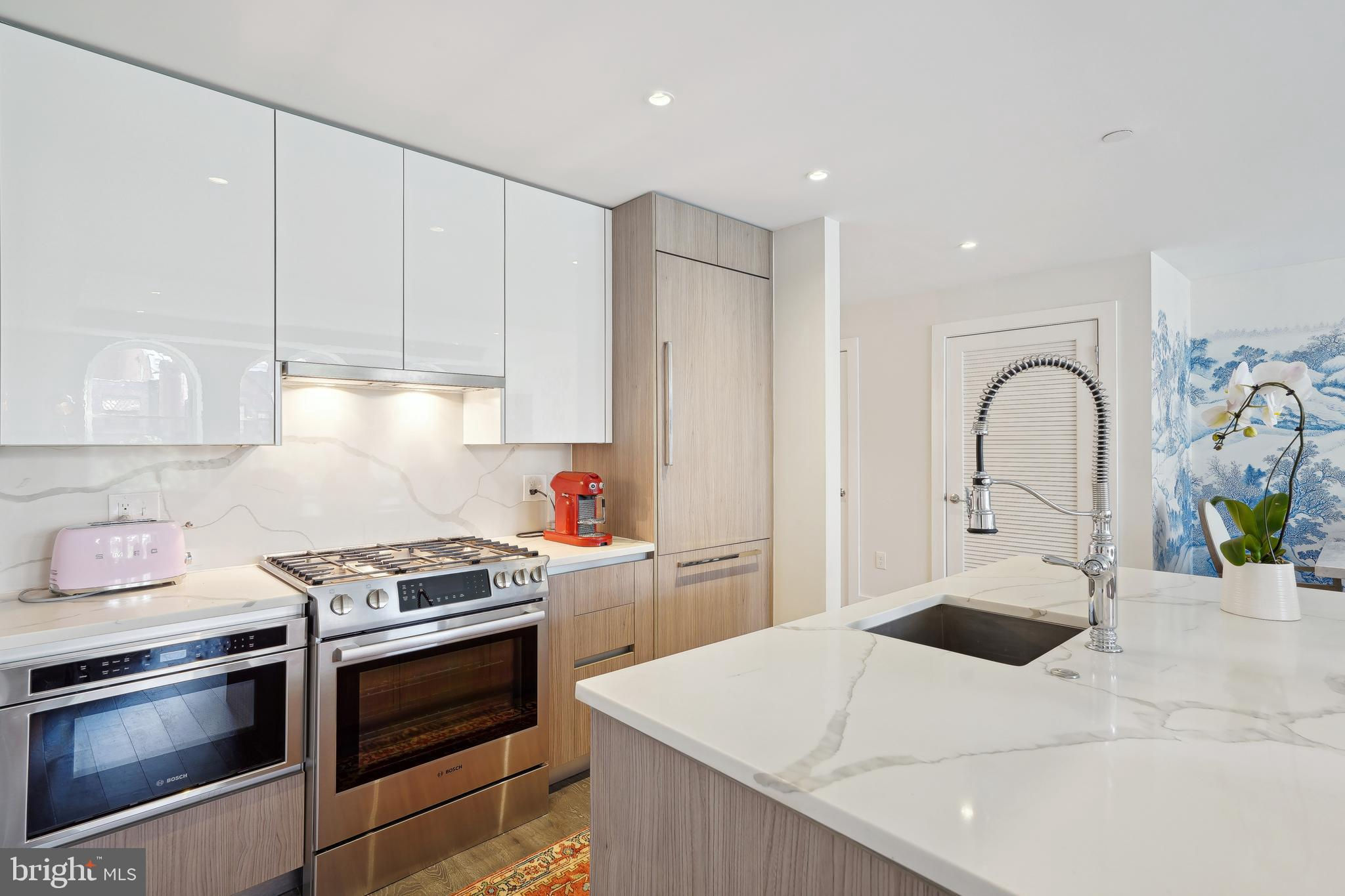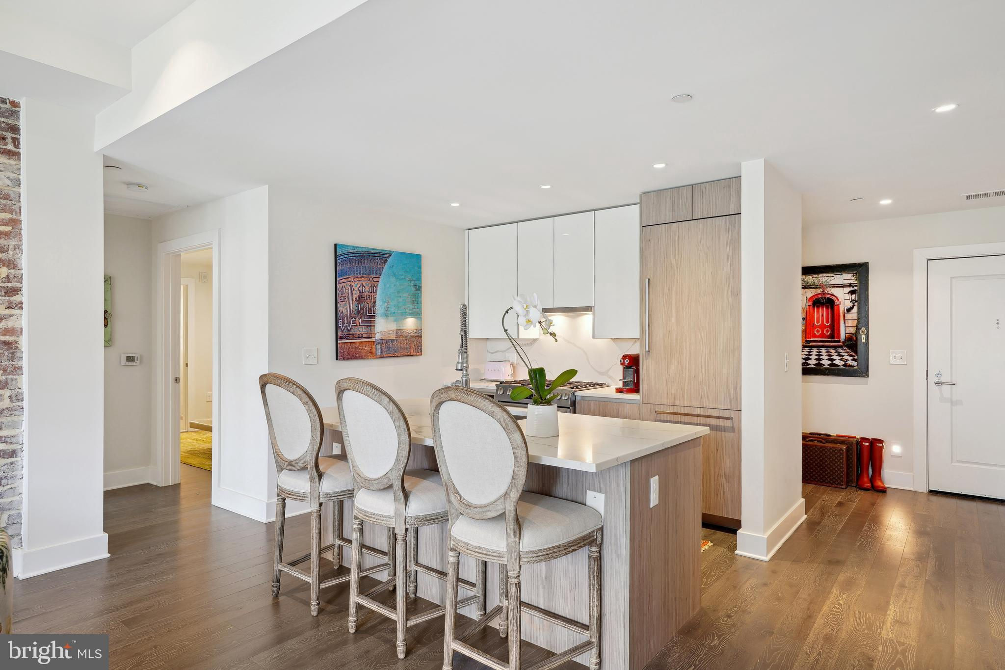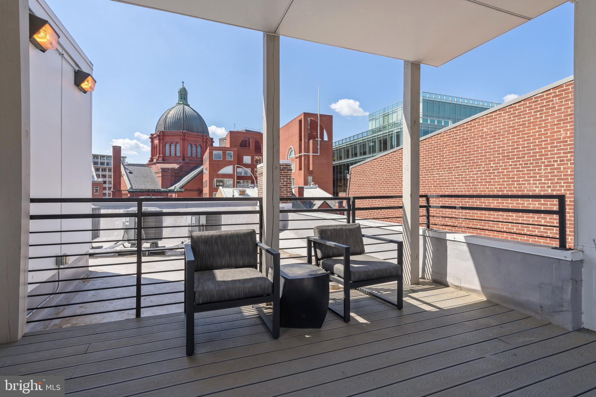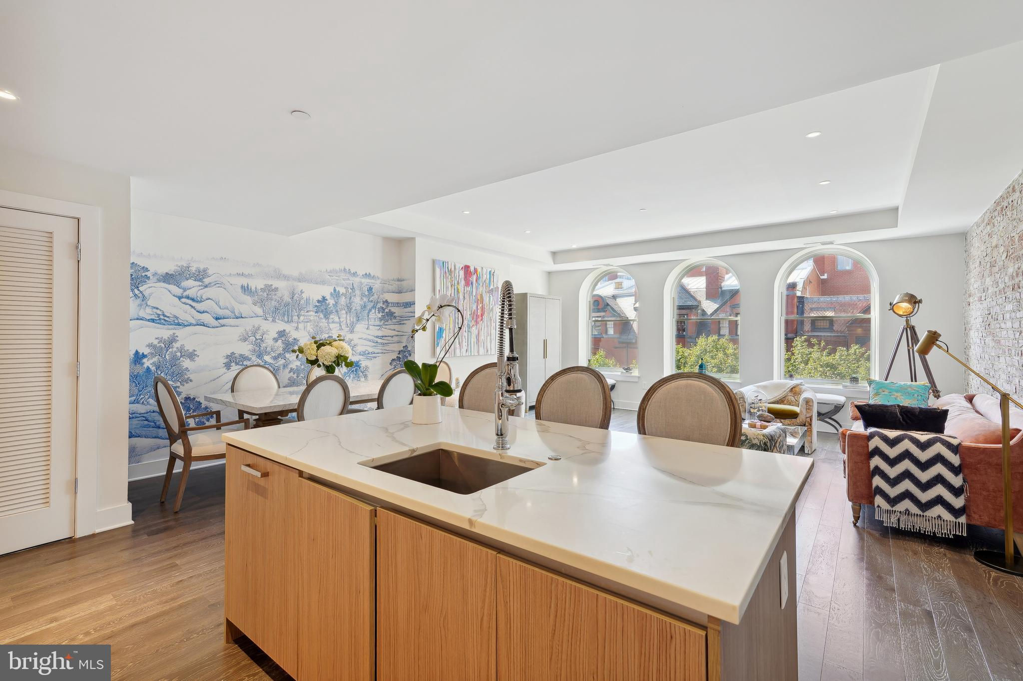 NEW PRICE! See 3D Walkthrough Tour! Residence 410 in the Historic Row at 1745N is nestled in the heart of Dupont Circle. This distinguished one-level designer home boasts premium size and beyond exceptional views. A blend of historic charm and modern sensibilities await a new owner. Step into this architecturally distinct sanctuary and be greeted by the warmth of exposed brick and the elegance of arched windows. As you cross the threshold into the foyer, you'll immediately sense the craftsmanship and attention to detail that permeates every inch of this one-bedroom with large den and attached second full bath. An additional powder room bath in entry foyer of this 1,466 SF home. Southern sunlight beaming through the expansive windows creates a captivating living space, offering breathtaking views of the historic Cathedral of St. Matthews, charming Italianesque row homes, and delicate cherry blossoms. It's not just a home; it's a canvas for an artistic vision of urban beauty. Inside, the finer details await your discovery: Bosch stainless steel appliances, including gas cooking, quartz countertops, and custom cabinetry adorn the spacious kitchen. Live like Yves Saint Laurent with designer chinoiserie wallpaper inspired by his apartment in Paris. Wide-plank premium hardwood flooring leads you through the open floor plan, while custom built-in closets provide ample storage space. But the perks don't end there. Residence 410 comes complete with concierge service, secure deliveries, a convenient bike room, and a tranquil outdoor courtyard plus a rooftop with city views, ensuring both luxury and convenience at your fingertips. Any worries about parking vanish with an included reserved underground garage space. Embrace the vibrant energy of downtown DC, with parks, museums, and renowned eateries just moments away. And when you're ready to unwind, return to the tranquility of your elegant home, surrounded by the rich history and cultural allure of Dupont Circle. Experience the seamless blend of historic charm and modern luxury at the Historic Row at 1745N Dupont. Your new chapter awaits!