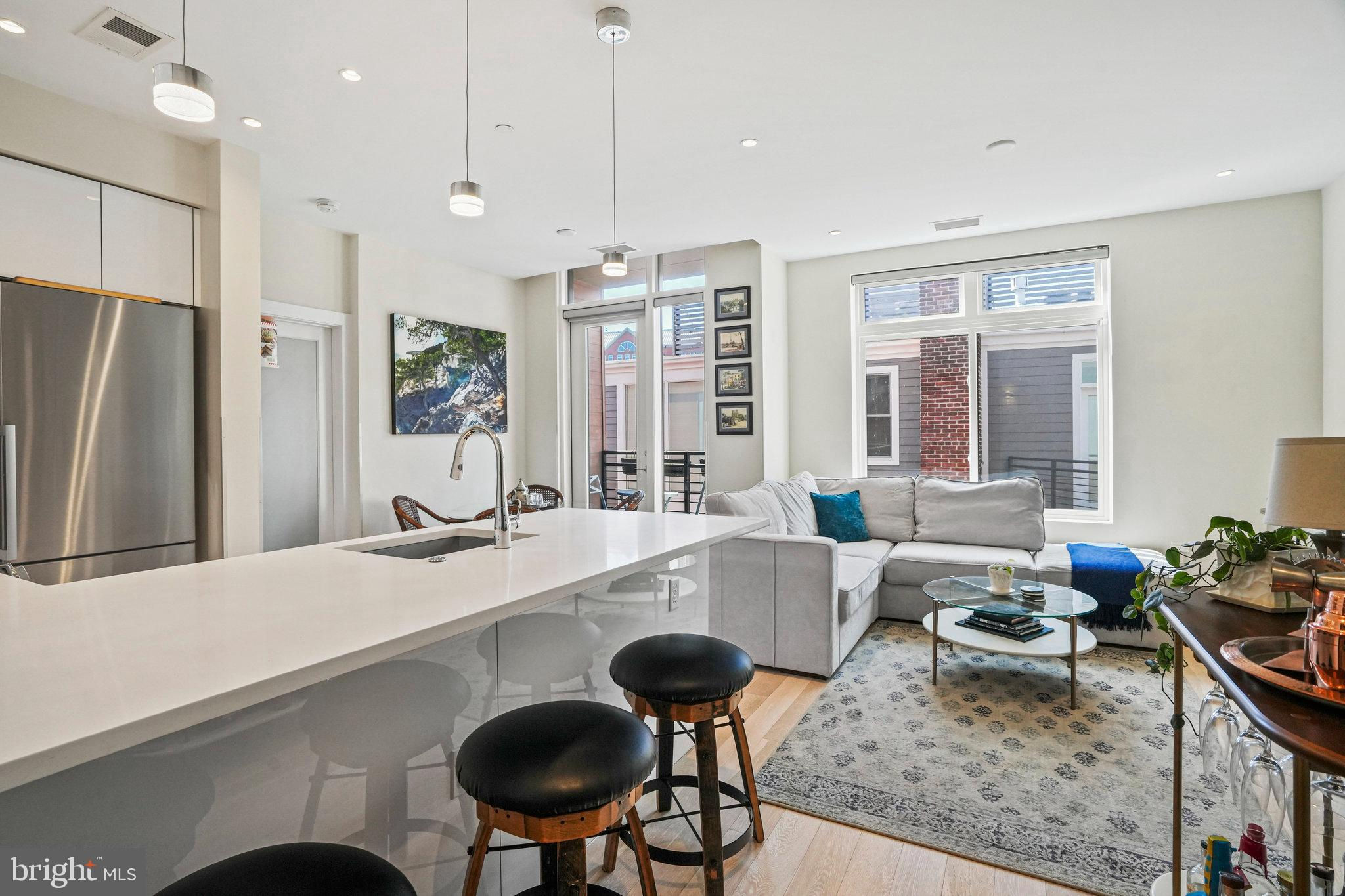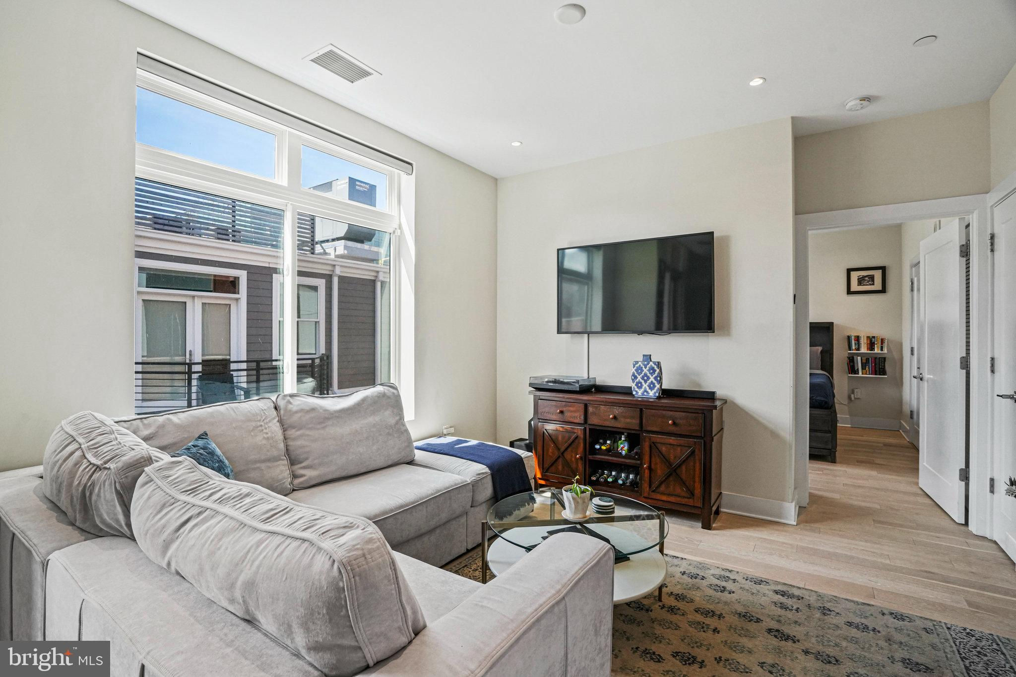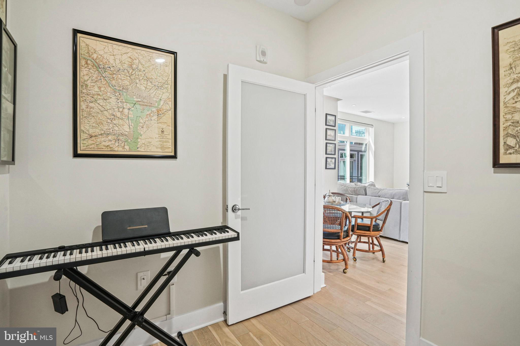 Welcome to urban living at its finest in this meticulously crafted condo located at 1745 N St NW, Washington, DC. Step into this exceptional 1 bedroom plus den, 1.5 bathroom unit, where contemporary elegance meets convenience in the heart of Dupont Circle. Unit 506 offers a coveted south-facing exposure, ensuring an abundance of natural light throughout the day. As you enter, be greeted by stunning 5-inch plank hardwood floors and recessed lighting, setting the stage for modern living. The gourmet kitchen is a chef’s delight, featuring Bosch stainless steel appliances, gas cooking, quartz counters and timeless Italian cabinetry. Enjoy a cup of coffee on the balcony perfect for soaking in the vibrant city atmosphere. The bright bedroom boasts a wall length closet with automatic blinds, in unit laundry closet and an en-suite bathroom adorned with Italian cabinetry, custom tile, and Kohler water fixtures. Need extra space for guests or a home office? Look no further than the unique den, offering built-in cabinetry and desk. Building Amenities include Concierge Service, Elevator, Serene courtyard with gas fire pit, Pet-Friendly environment, and bike room for residents. Located just 2 blocks from Dupont Circle metro, commuting is a breeze. Indulge in morning coffee at Tatte Bakery, steps away from your doorstep. With fine dining, retail, and entertainment options within minutes, experience the best of DC living at your fingertips.