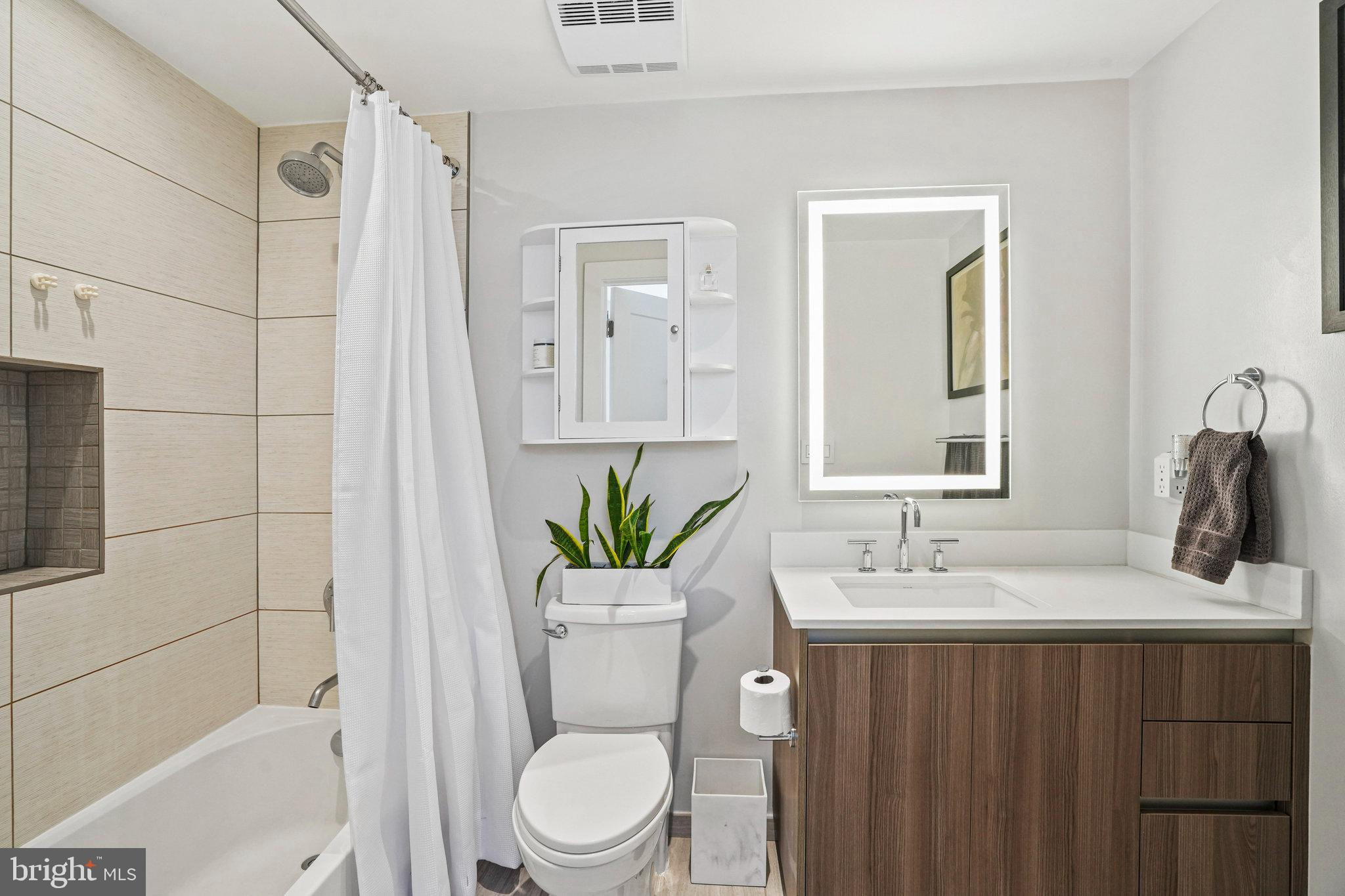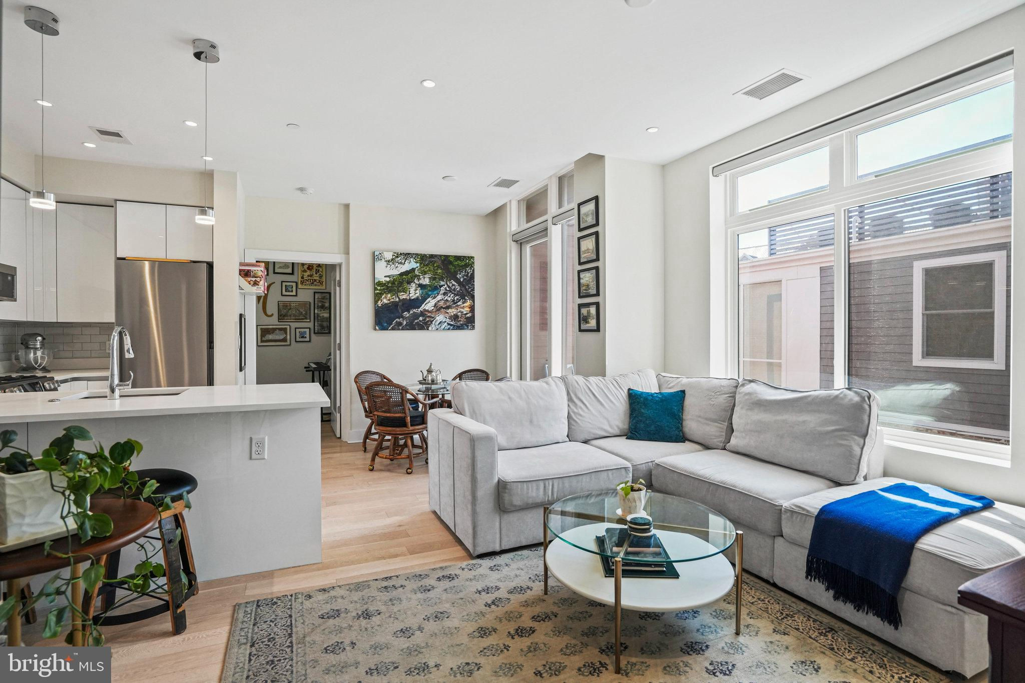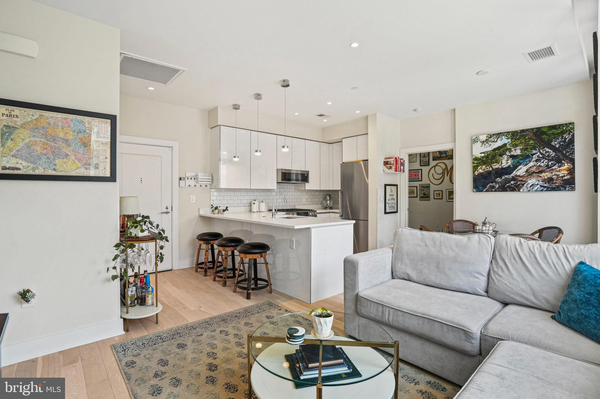 Welcome to urban living at its finest in this meticulously crafted condo located at 1745 N St NW, Washington, DC. Step into this exceptional 1 bedroom plus den, 1.5 bathroom unit, where contemporary elegance meets convenience in the heart of Dupont Circle. Unit 506 offers a coveted south-facing exposure, ensuring an abundance of natural light throughout the day. As you enter, be greeted by stunning 5-inch plank hardwood floors and recessed lighting, setting the stage for modern living. The gourmet kitchen is a chef’s delight, featuring Bosch stainless steel appliances, gas cooking, quartz counters and timeless Italian cabinetry. Enjoy a cup of coffee on the balcony perfect for soaking in the vibrant city atmosphere. The bright bedroom boasts a wall length closet with automatic blinds, in unit laundry closet and an en-suite bathroom adorned with Italian cabinetry, custom tile, and Kohler water fixtures. Need extra space for guests or a home office? Look no further than the unique den, offering built-in cabinetry and desk. Building Amenities include Concierge Service, Elevator, Serene courtyard with gas fire pit, Pet-Friendly environment, and bike room for residents. Located just 2 blocks from Dupont Circle metro, commuting is a breeze. Indulge in morning coffee at Tatte Bakery, steps away from your doorstep. With fine dining, retail, and entertainment options within minutes, experience the best of DC living at your fingertips.