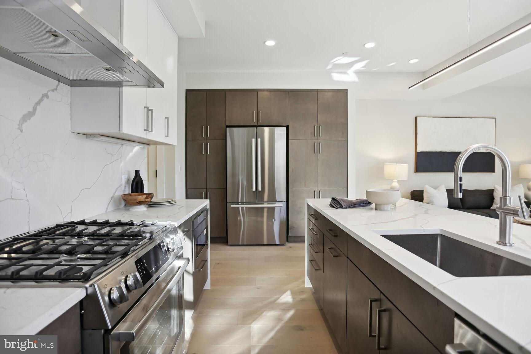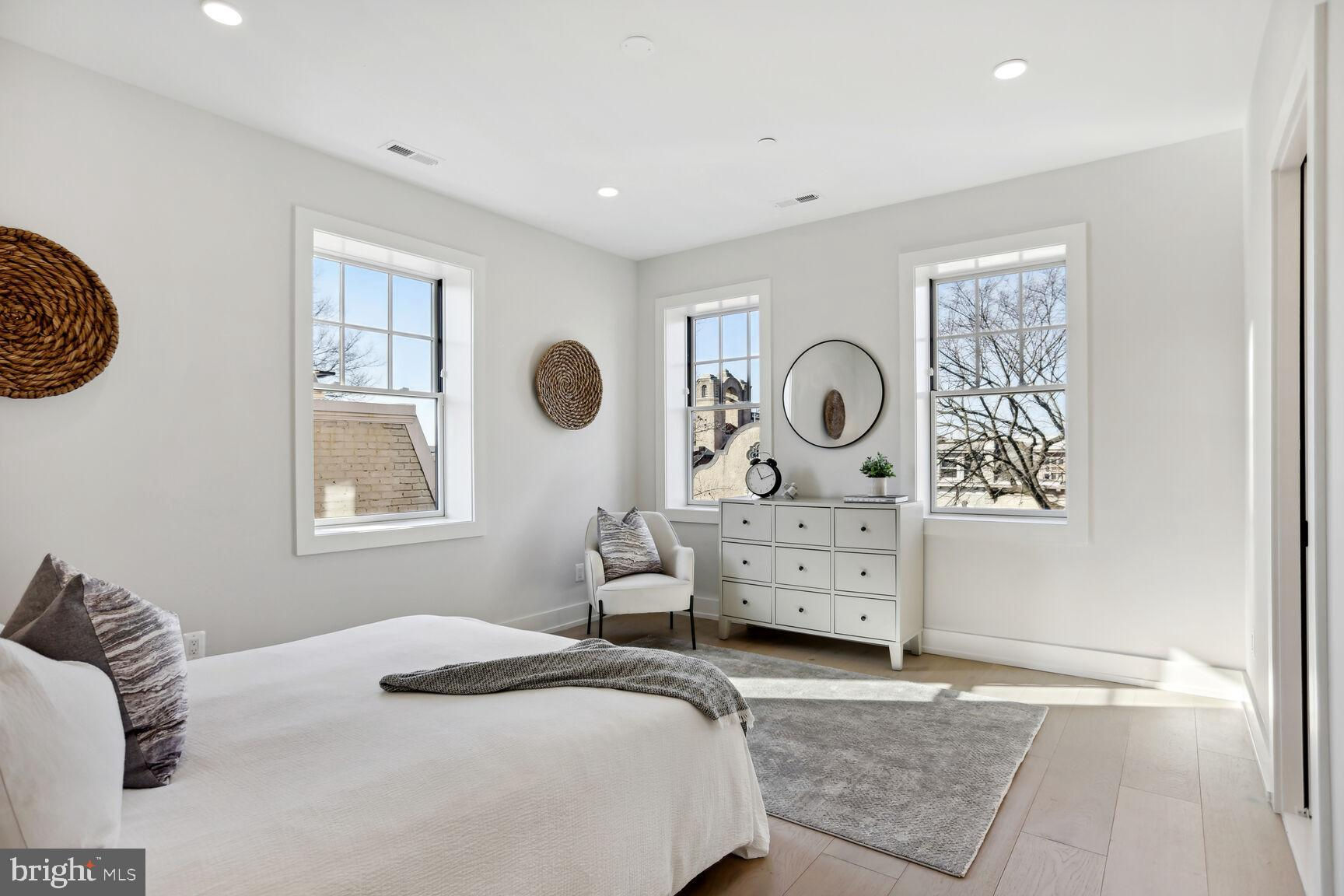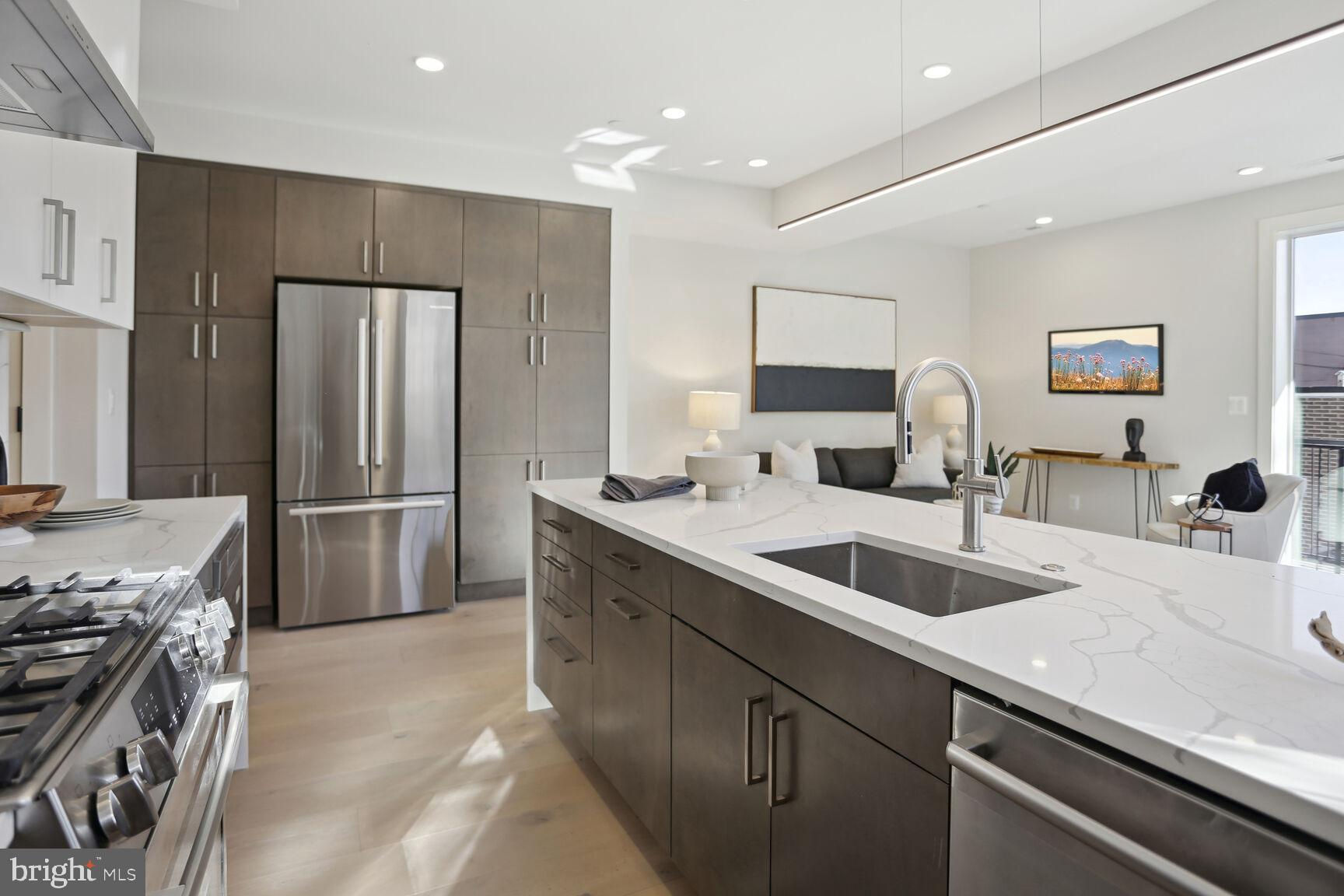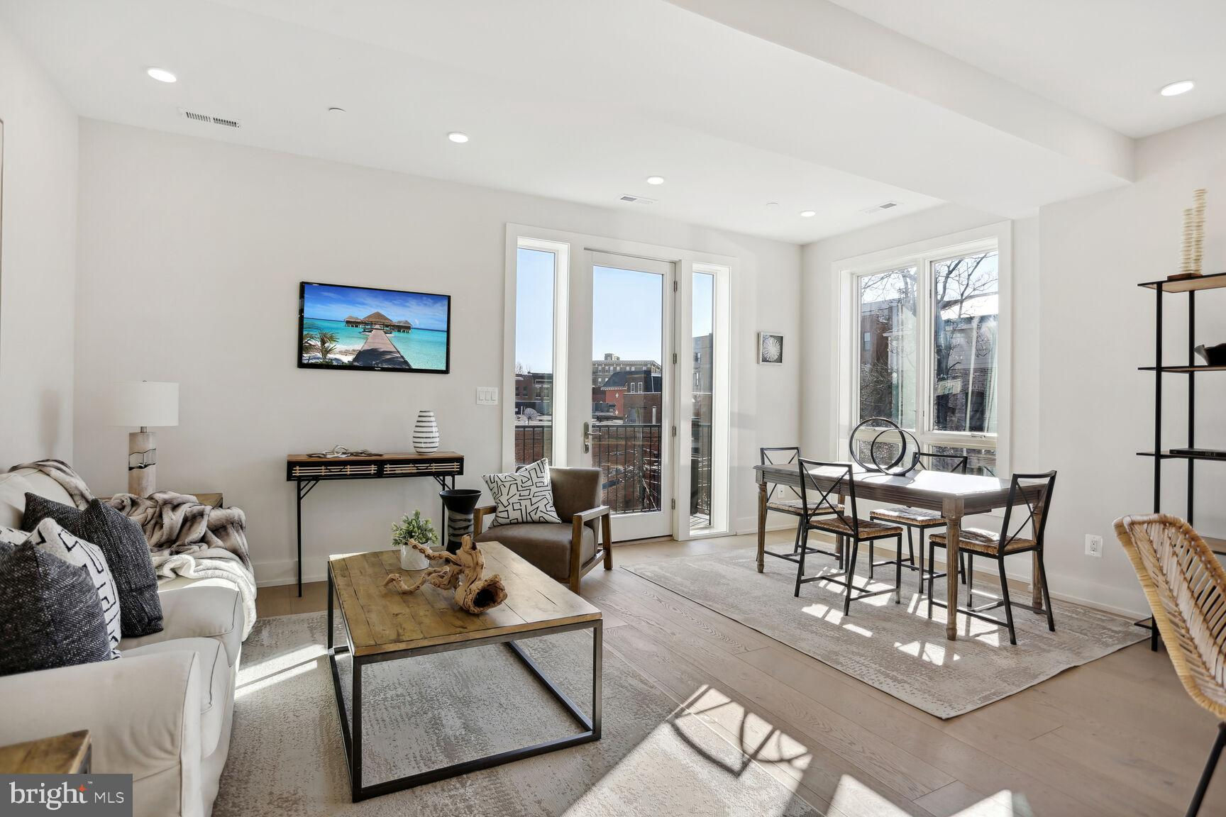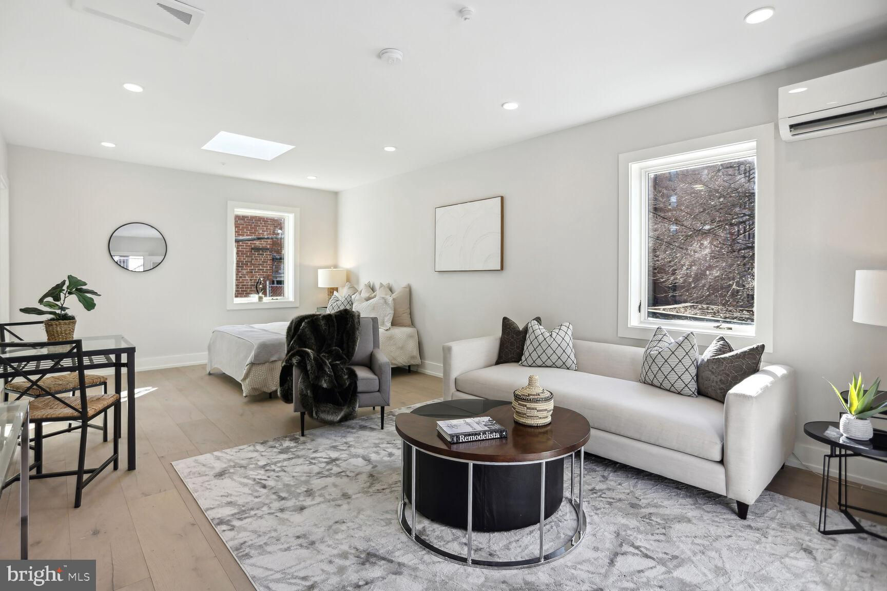 . Located in the heart of vibrant Adams Morgan but on a quiet tree lined street, these units offer the perfect blend of modern amenities and historic charm. This 2nd floor unit provides an elegant 1300 sq ft 2 bedroom/2bath flat splashed with light from 3 exposures and huge windows throughout.! Fine features include 6 inch wide plank hardwood floors throughout, high ceilings, a stunning gourmet kitchen with awesome cabinet & counter space, white quartz counters, and top of the line appliances! Custom fit closets, large well proportioned bedrooms, and inviting custom tiled baths are a few other wonderful aspects to appreciate. The icing on the cake - a large bonus carriage house studio above the parking garage providing a 3rd bedroom or optional au-pair or in-law space literally steps from the flat. It's like getting a huge 2br/2ba for $1,100,000 + a spacious carriage house unit for $249,000. A great buy!!!! other units are available & all have stunning gourmet kitchens, 6 inch hardwood flooring, custom ceramic tiled baths and flooring, private outdoor spaces, wonderful light, Pella windows, custom fitted closets, and reasonable condo fees! This project boasts green roofs on all of the buildings, solar power, eye-catching landscaped grounds, and an open central courtyard with environmentally conscious water retention wells making it a sustainable and eco-friendly living space.