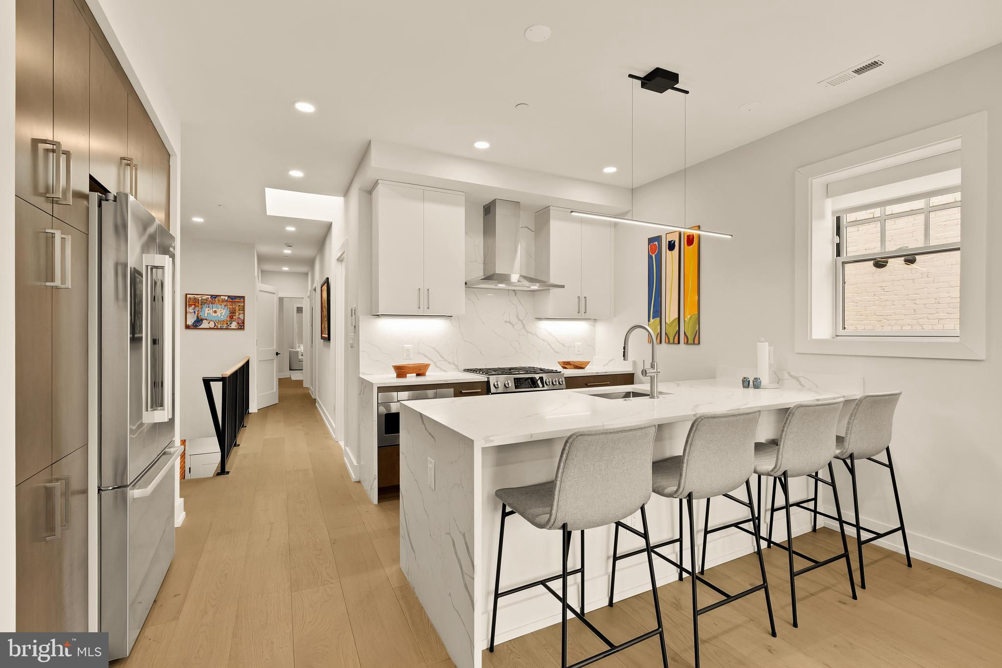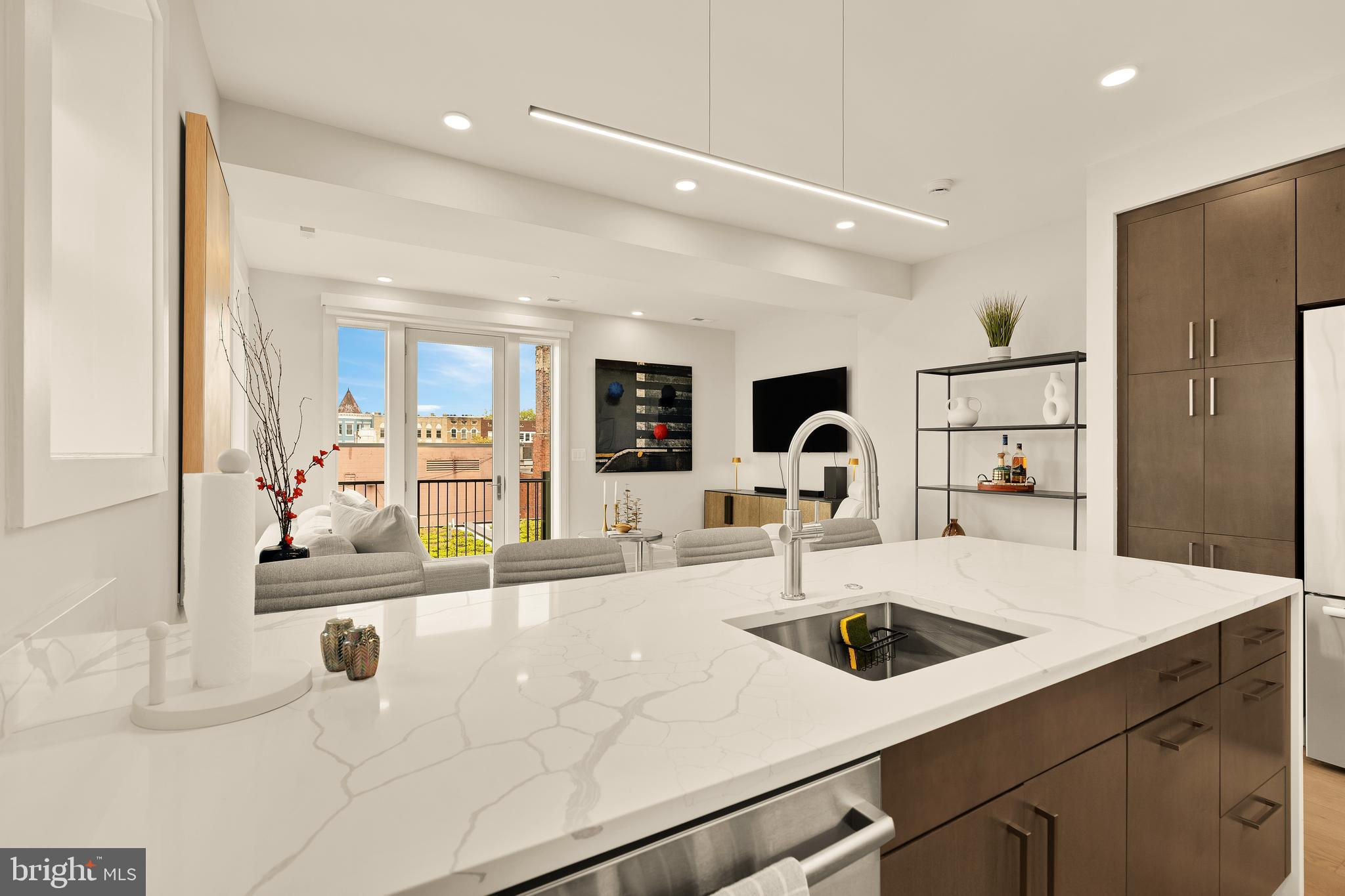 Discover this luxury penthouse retreat where historic charm meets modern sophistication. Nestled on a quiet, tree-lined street in a semi-detached townhouse, this 3-bedroom, 2-bath residence offers an elevated living experience with curated details and thoughtful design throughout. Step inside to a sunlit sanctuary with expansive windows and a skylight above, creating a welcoming ambiance that showcases wide-plank hardwood floors and character rich exposed brick. The chef’s kitchen is the centerpiece of the home, featuring high-end stainless steel appliances, a gas range stove, and an oversized island with bar seating — perfect for casual dining or entertaining guests. Retreat to the primary suite, with room for a king bed and nightstands on each side, complemented by sweeping street views. The spa-inspired ensuite bath showcases a double vanity and a stunning glass-enclosed shower. A second bedroom with access to a Jack-and-Jill bathroom featuring a shower-tub combination is ideal for guests, while the third bedroom offers a versatile haven for work, nursery or creativity. A private balcony and rooftop deck extend your living space outdoors, ideal for al fresco dining or evening gatherings under the city lights. Every detail is designed with convenience in mind, from the full-size stacked washer/dryer to abundant closet space with custom storage solutions. Sustainability is seamlessly woven into the lifestyle here — with green roofs, solar-powered common areas, EV charging, and eco-conscious landscaping. This home includes a secure garage parking space with EV charging for modern city living. With a Walk Score of 97 and a Bike Score of 97, daily life is effortless. Stroll to acclaimed dining such as Tail of Goat and Lapis, morning coffee at Soleluna, or nearby grocers including Harris Teeter and Safeway. The Red Line Metro at Woodley Park is just minutes away, with easy access to Rock Creek Parkway for commuters.