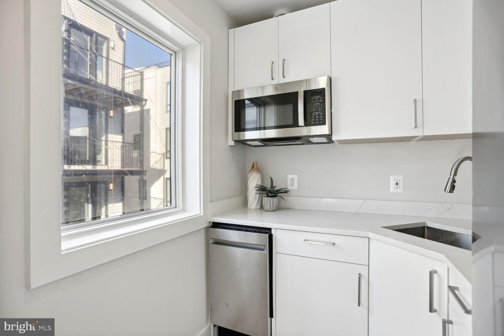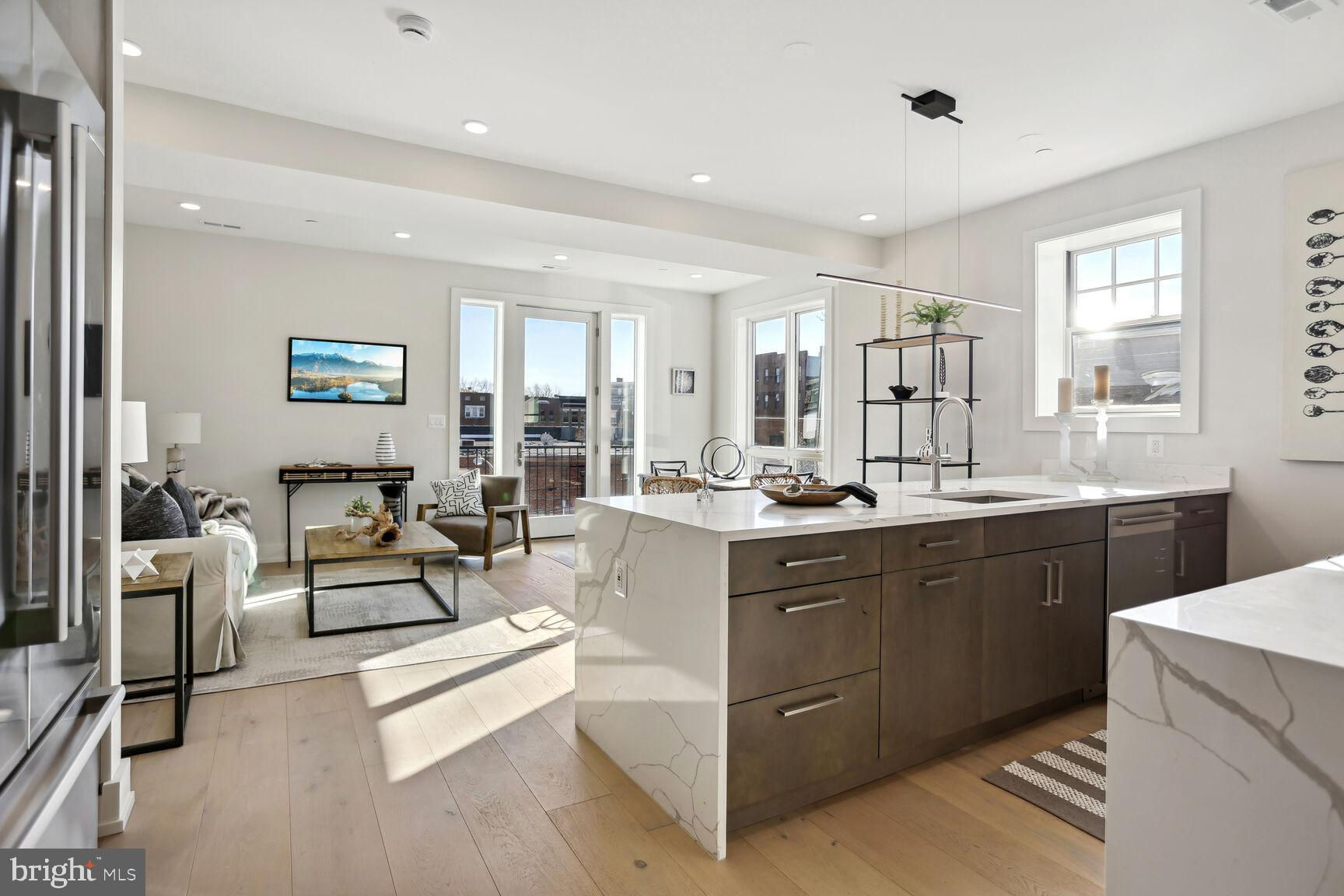 . Located in the heart of vibrant Adams Morgan but on a quiet tree lined street, these units offer the perfect blend of modern amenities and historic charm. This 2nd floor unit provides an elegant 1300 sq ft 2 bedroom/2bath flat splashed with light from 3 exposures and huge windows throughout.! Fine features include 6 inch wide plank hardwood floors throughout, high ceilings, a stunning gourmet kitchen with awesome cabinet & counter space, white quartz counters, and top of the line appliances! Custom fit closets, large well proportioned bedrooms, and inviting custom tiled baths are a few other wonderful aspects to appreciate. The icing on the cake - a large bonus carriage house studio above the parking garage providing a 3rd bedroom or optional au-pair or in-law space literally steps from the flat. It's like getting a huge 2br/2ba for $1,100,000 + a spacious carriage house unit for $249,000. A great buy!!!! other units are available & all have stunning gourmet kitchens, 6 inch hardwood flooring, custom ceramic tiled baths and flooring, private outdoor spaces, wonderful light, Pella windows, custom fitted closets, and reasonable condo fees! This project boasts green roofs on all of the buildings, solar power, eye-catching landscaped grounds, and an open central courtyard with environmentally conscious water retention wells making it a sustainable and eco-friendly living space.