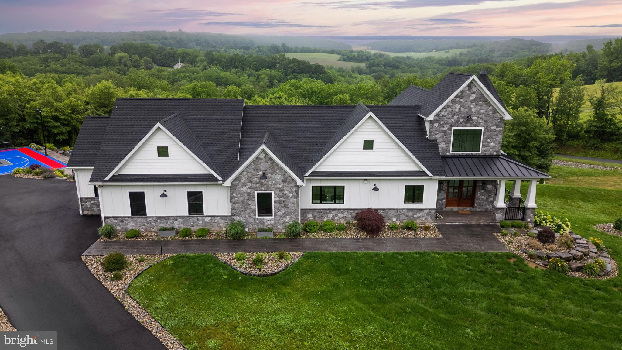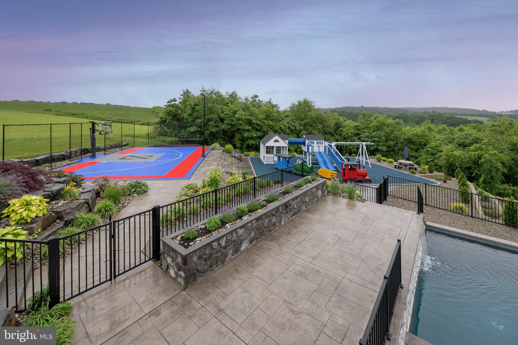 Experience unparalleled luxury in this custom-built Contemporary estate, perfectly sited on 2.42 acres of serene Pennsylvania countryside in Kutztown. Spanning 5,841 square feet of exquisitely designed living space, this residence artfully combines modern sophistication with resort-style amenities. Floor-to-ceiling windows frame sweeping vistas while ceramic tiled floors and high-end finishes flow seamlessly throughout. A chef’s dream, the gourmet kitchen features top-tier appliances, custom cabinetry, and an expansive island for effortless entertaining. Relax in the sumptuous great room beside a sleek, linear fireplace, or step outside to discover your private oasis: a heated in-ground saltwater pool, integrated spa, custom fire-pit lounge, children’s playground, and professional-grade basketball court. Unique amenities include an exercise room wired for the latest fitness equipment, a mudroom with built-in laundry and pet-shower station, and a three-car garage with abundant storage. Lower level offers five bedrooms and 3 baths, while the main floor provides the primary bedroom, ensuite bath featuring one of the two fireplaces in the home. Do not miss the 2nd full kitchen on the lower level! Comfort is assured year-round with central air and forced-air heating. This luxury executive home offers an unmatched lifestyle of refinement and recreation. Schedule your private showing today.