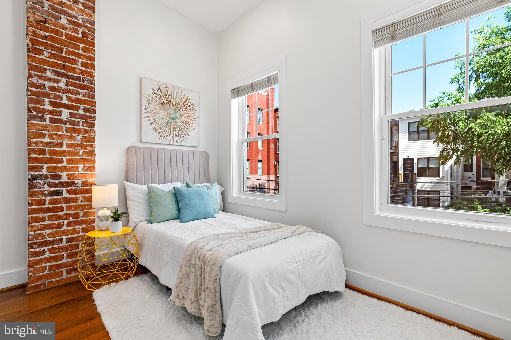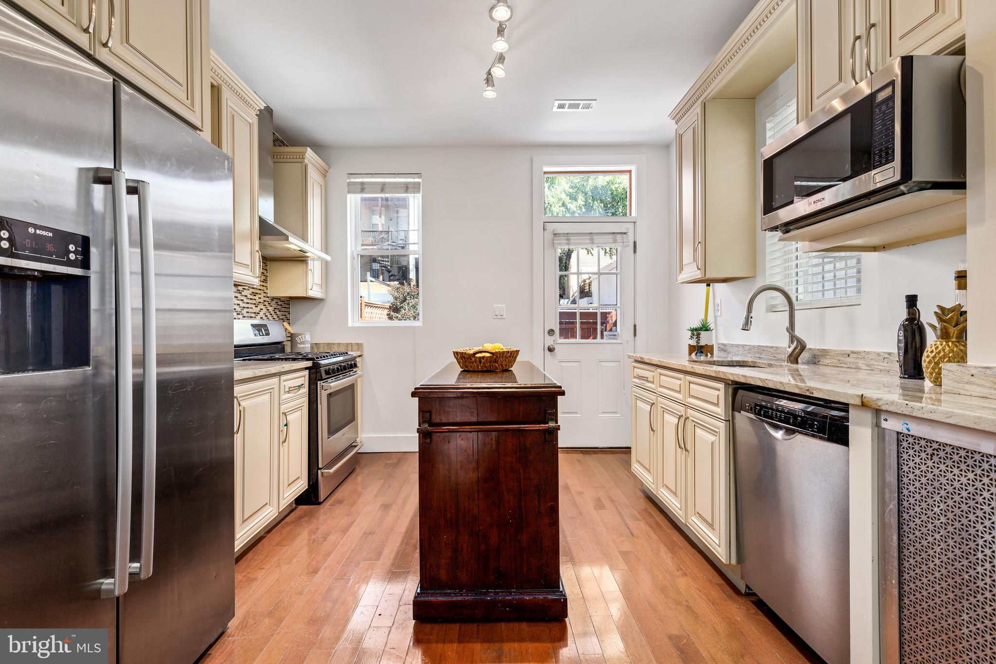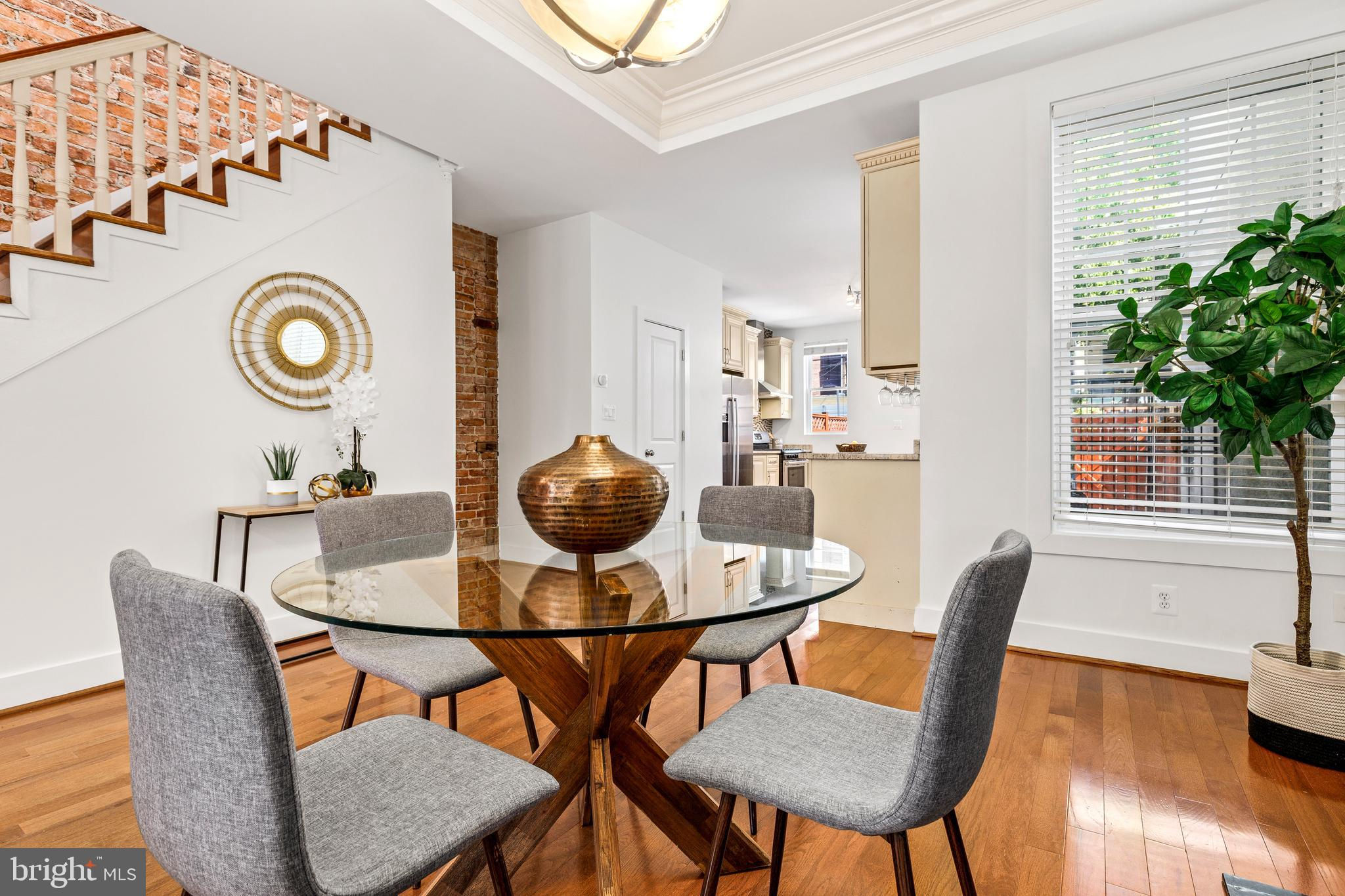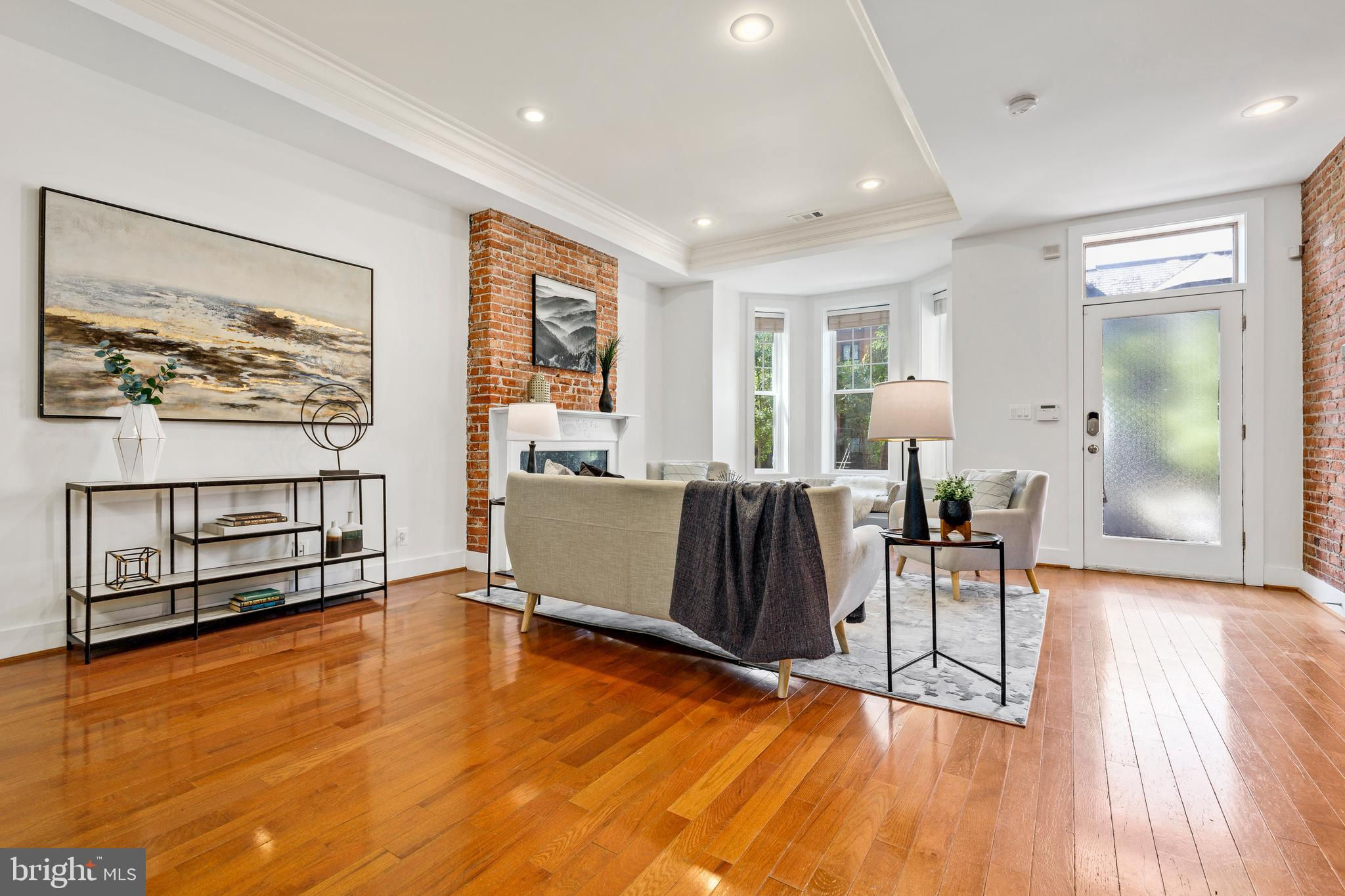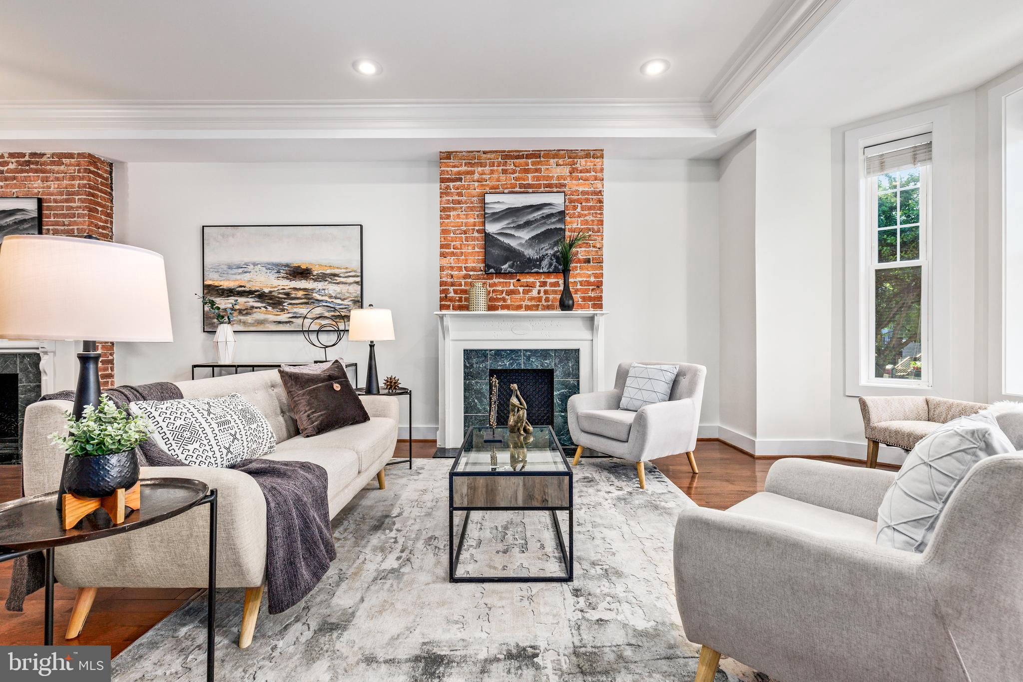 On an enchanting, tree-lined street in Eckington, this delightful row house offers three floors of living space. Historic details fill this lovely home with charm, from the exposed brick to the bay windows. Hardwood floors sweep through the open floor plan, with two fireplaces anchoring the main floor and a powder room for guests. Three windows fill the open kitchen with natural light, and a door leads to the back patio and gated parking pad. Home chefs will love the full suite of Bosch stainless-steel appliances, ample cabinet space and prep island. Upstairs, soaring ceilings will immediately catch the eye. The primary bedroom is filled with light from the bay windows, which create the perfect reading nook. Double closets with organizers offer plenty of storage, and the marble, en suite bath boasts a double vanity and glass shower. The finished lower level with exposed brick and a wet bar is an ideal family room, while the bedroom and full bath create a welcoming in-law suite for visiting guests. Every detail in this stunning home has been beautifully renovated, from the marble baths to the skylights. Enjoy all this blossoming neighborhood has to offer, including the food stalls of Union Market, a bouldering gym, upcoming Right Proper Brewhouse, award-winning restaurants like The Red Hen and music venues like Songbyrd. Shop at nearby Trader Joe’s and Harris Teeter. The metro is just over a mile away.