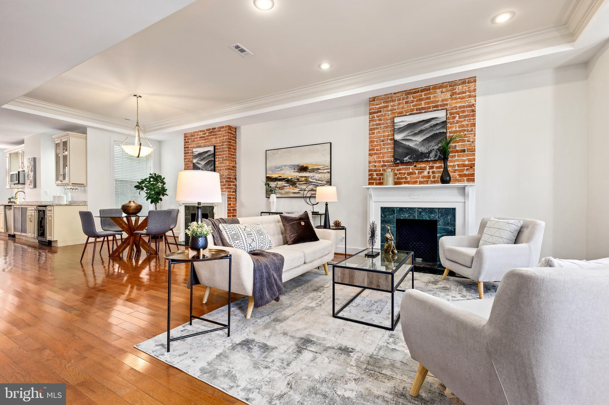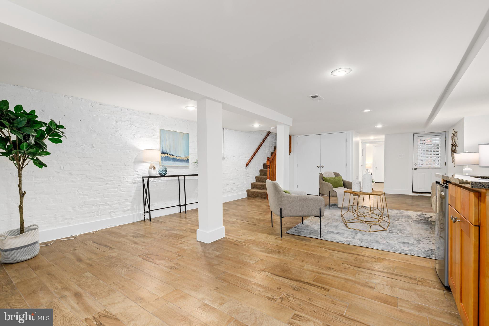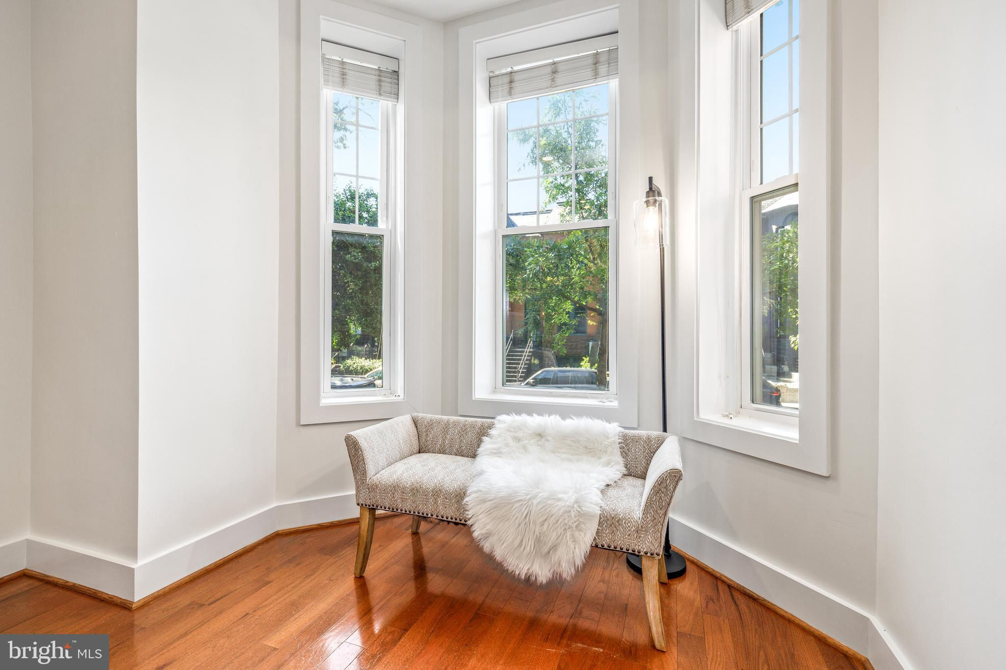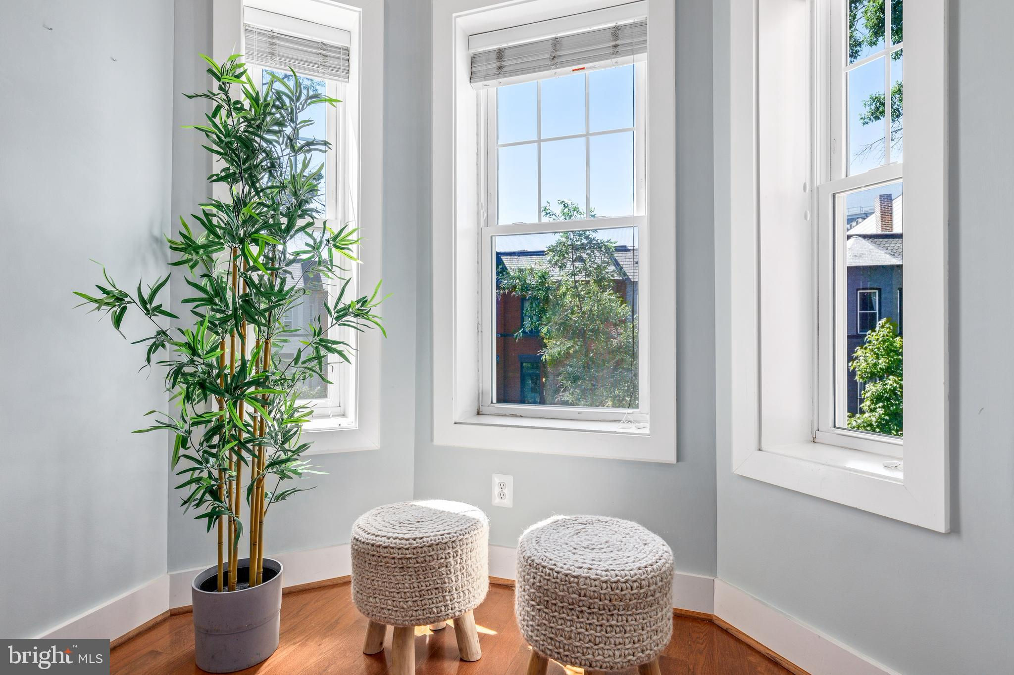 On an enchanting, tree-lined street in Eckington, this delightful row house offers three floors of living space. Historic details fill this lovely home with charm, from the exposed brick to the bay windows. Hardwood floors sweep through the open floor plan, with two fireplaces anchoring the main floor and a powder room for guests. Three windows fill the open kitchen with natural light, and a door leads to the back patio and gated parking pad. Home chefs will love the full suite of Bosch stainless-steel appliances, ample cabinet space and prep island. Upstairs, soaring ceilings will immediately catch the eye. The primary bedroom is filled with light from the bay windows, which create the perfect reading nook. Double closets with organizers offer plenty of storage, and the marble, en suite bath boasts a double vanity and glass shower. The finished lower level with exposed brick and a wet bar is an ideal family room, while the bedroom and full bath create a welcoming in-law suite for visiting guests. Every detail in this stunning home has been beautifully renovated, from the marble baths to the skylights. Enjoy all this blossoming neighborhood has to offer, including the food stalls of Union Market, a bouldering gym, upcoming Right Proper Brewhouse, award-winning restaurants like The Red Hen and music venues like Songbyrd. Shop at nearby Trader Joe’s and Harris Teeter. The metro is just over a mile away.