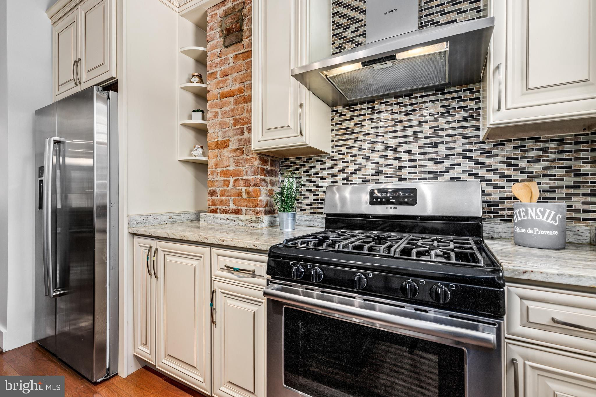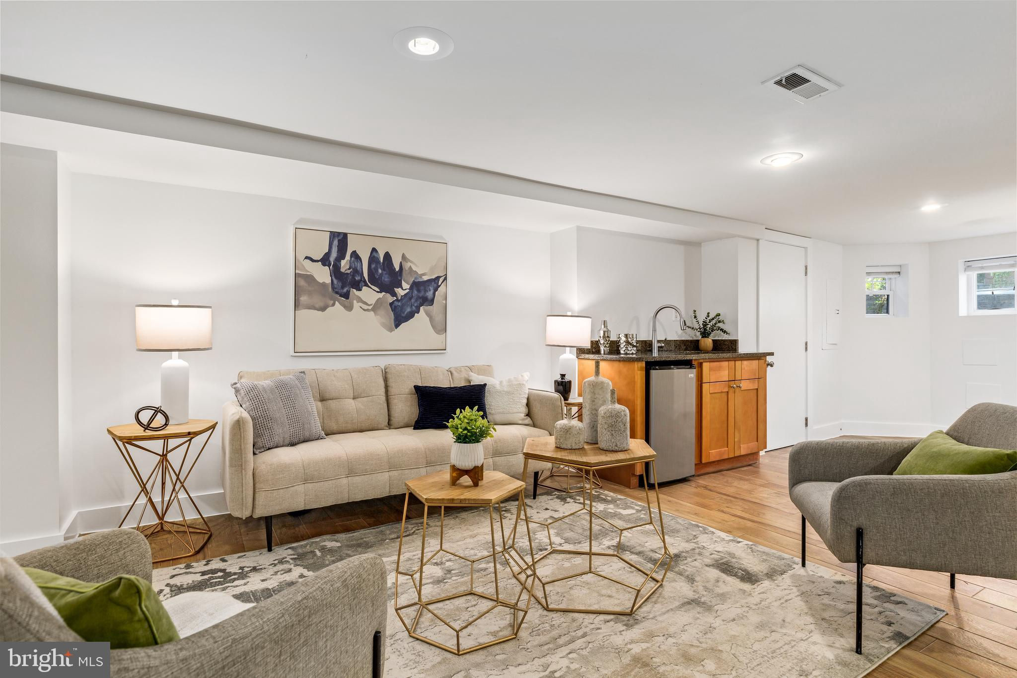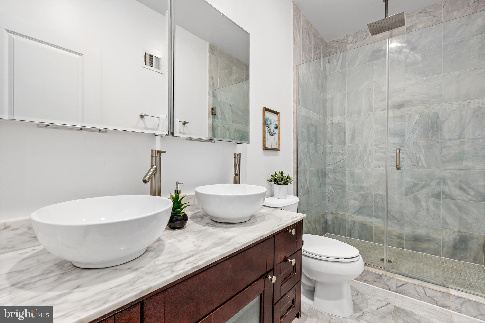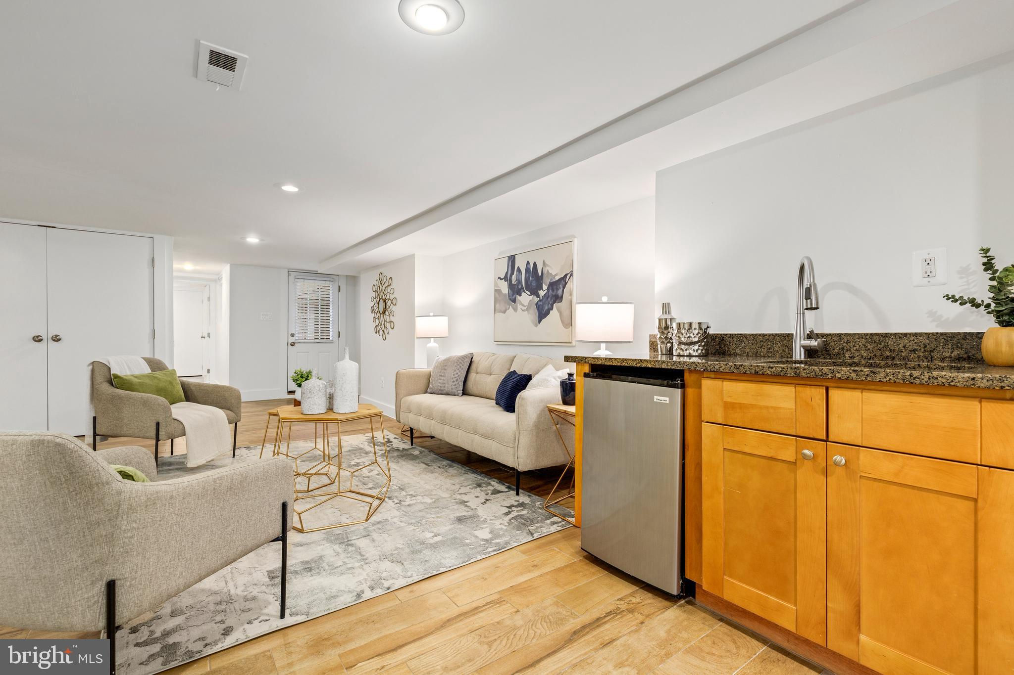 On an enchanting, tree-lined street in Eckington, this delightful row house offers three floors of living space. Historic details fill this lovely home with charm, from the exposed brick to the bay windows. Hardwood floors sweep through the open floor plan, with two fireplaces anchoring the main floor and a powder room for guests. Three windows fill the open kitchen with natural light, and a door leads to the back patio and gated parking pad. Home chefs will love the full suite of Bosch stainless-steel appliances, ample cabinet space and prep island. Upstairs, soaring ceilings will immediately catch the eye. The primary bedroom is filled with light from the bay windows, which create the perfect reading nook. Double closets with organizers offer plenty of storage, and the marble, en suite bath boasts a double vanity and glass shower. The finished lower level with exposed brick and a wet bar is an ideal family room, while the bedroom and full bath create a welcoming in-law suite for visiting guests. Every detail in this stunning home has been beautifully renovated, from the marble baths to the skylights. Enjoy all this blossoming neighborhood has to offer, including the food stalls of Union Market, a bouldering gym, upcoming Right Proper Brewhouse, award-winning restaurants like The Red Hen and music venues like Songbyrd. Shop at nearby Trader Joe’s and Harris Teeter. The metro is just over a mile away.