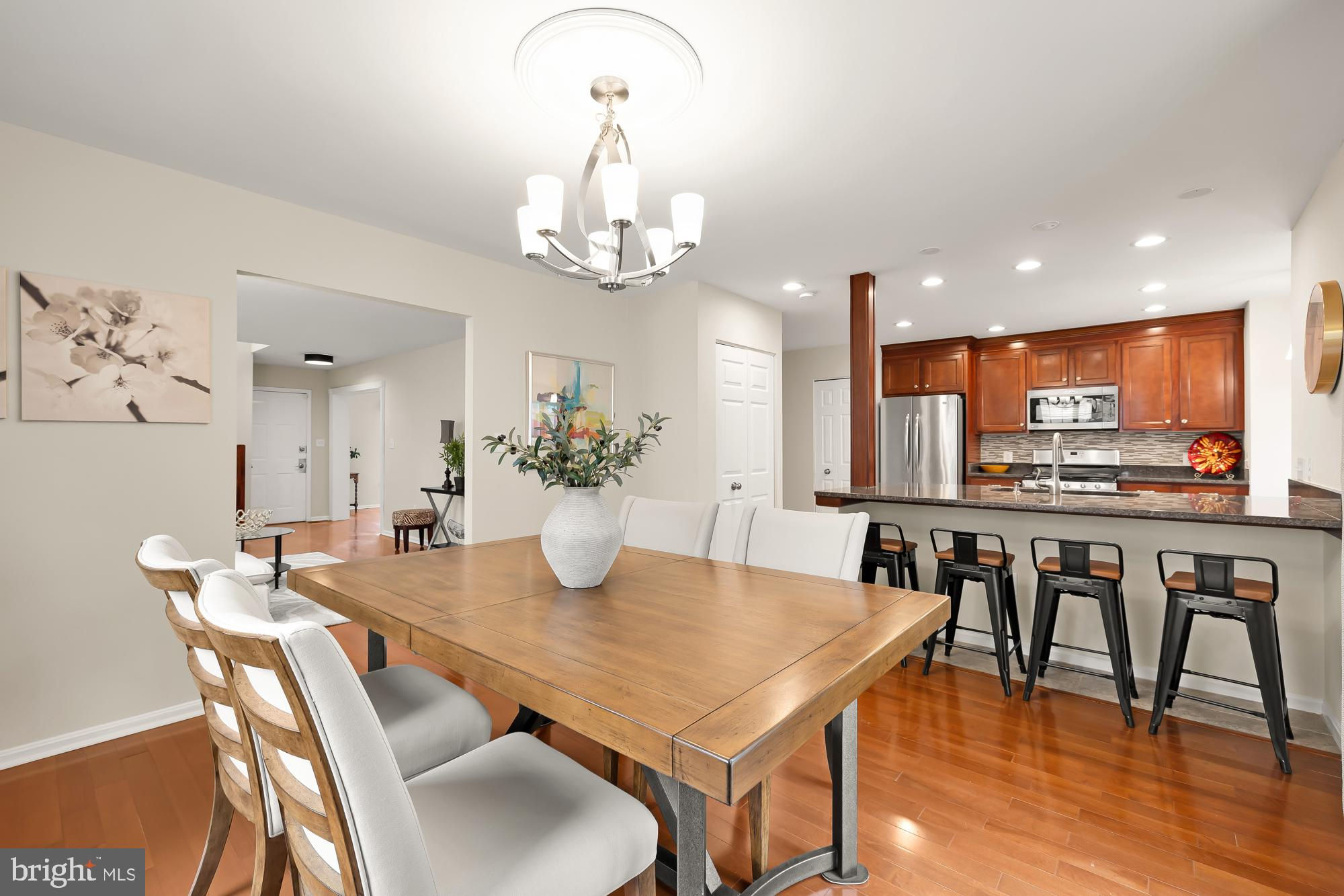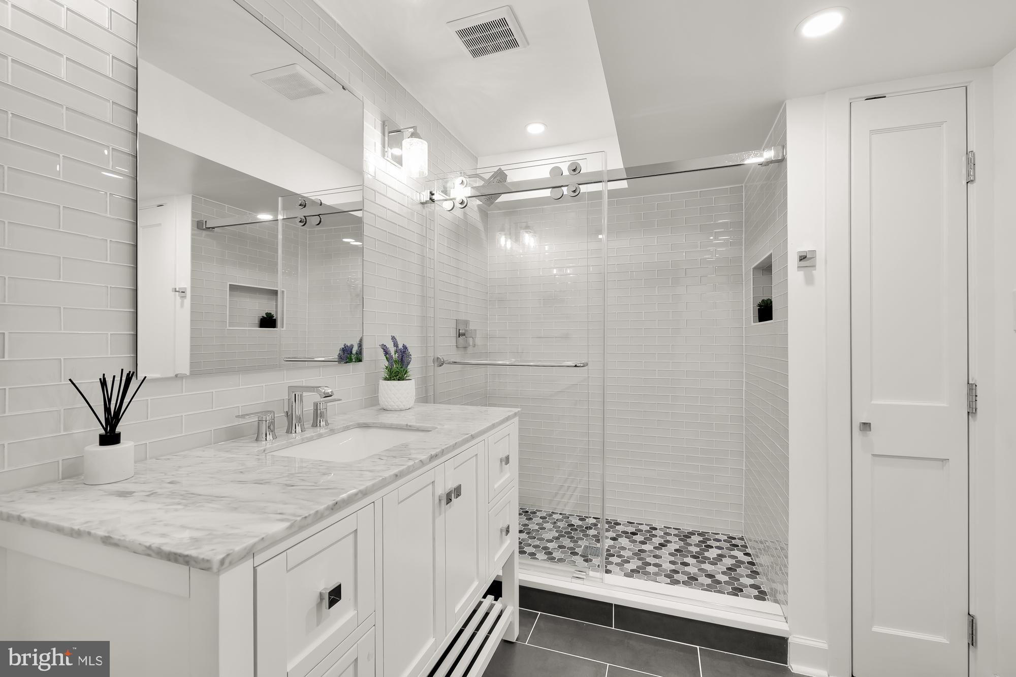 Perched on a gentle rise, this tastefully renovated 4BD/3.5BA home in beautiful Brookland is equal parts charming and glamorous—and a wonderful place to call home. The main level features rooms that are open yet still defined: a family room with wood burning fireplace, and a formal dining room perfect for elegant dinners or everyday meals alike. The modern kitchen includes dual pantries, a breakfast nook, and a kitchen island with additional seating. From there, you can see the fenced-in backyard, a jaw-dropping terraced landscape that leads up to a storage shed and parking for up to four cars. Follow the expansive stairwell to the upper level, where you’ll find a primary bedroom with an en-suite bathroom and, below skylights, a private sitting room. Two additional bedrooms offer plenty of light and storage. The recently finished basement has all the makings of a perfect in-law suite (or epic entertainment room), with private bathroom, plenty of storage, an electric fireplace, and a covered private entrance. And the laundry room, with soft-close cabinets and a luxury utility sink, makes everyday chores a little more fashionable.