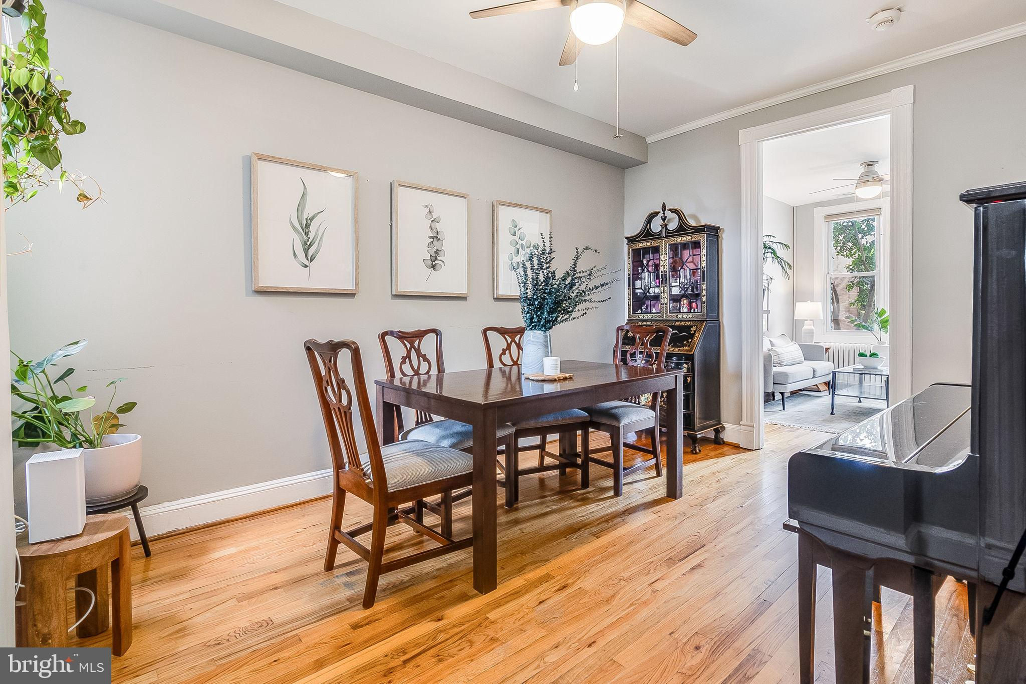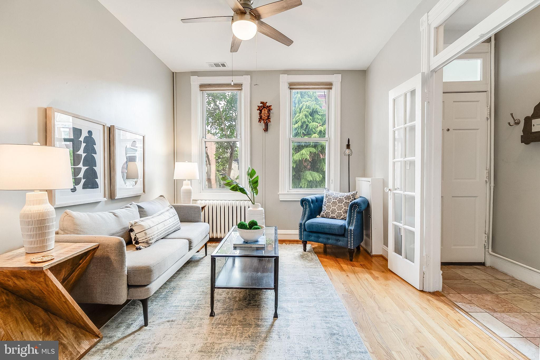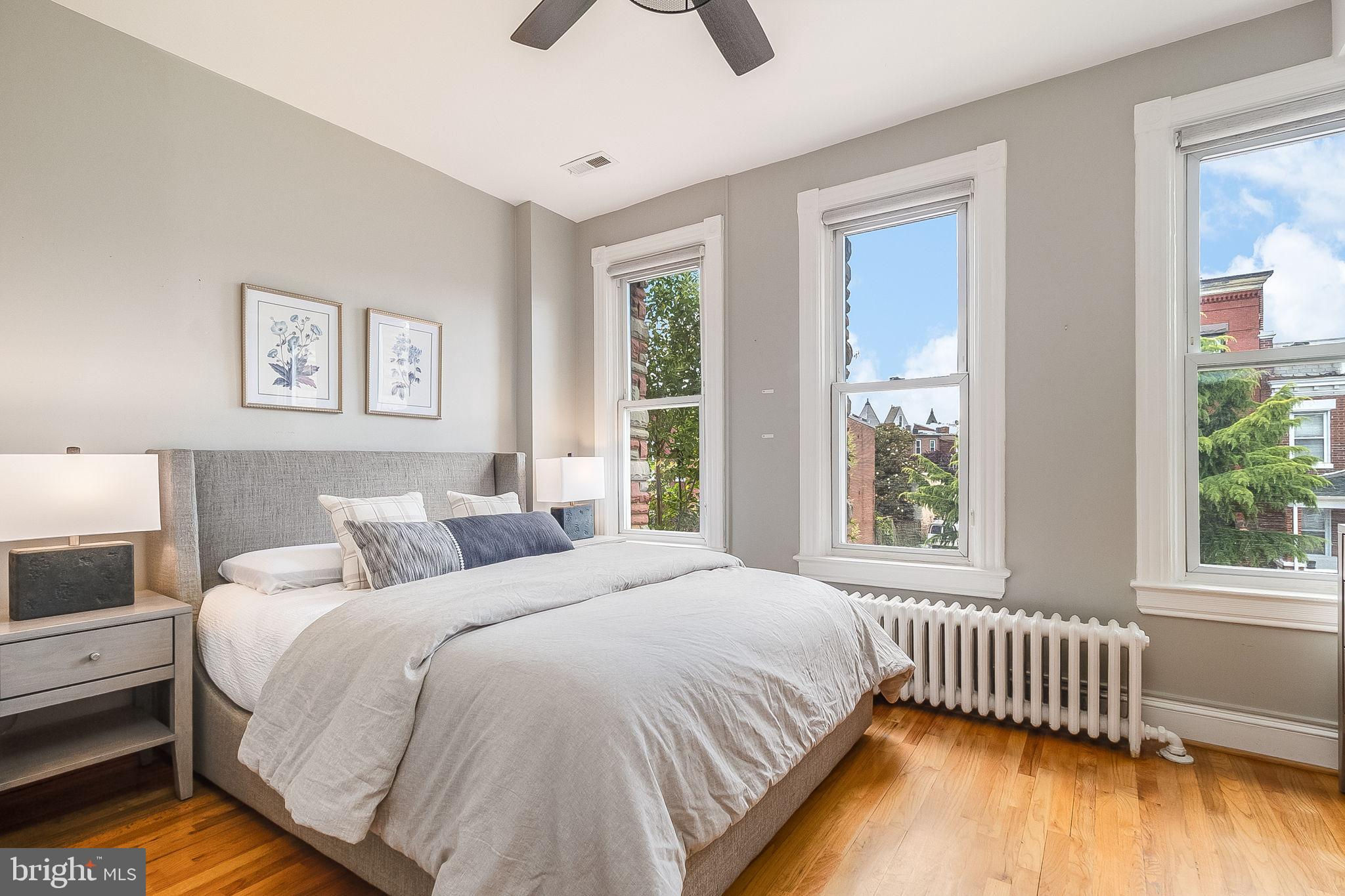 OPEN HOUSES, Saturday June 8th 1-3pm. Nestled among the tree-lined streets and historic architecture, this classic Federal row home built in the early 1900s beckons with its timeless allure. One of the few row homes of this size that has 3 bedrooms upstairs and 2 full bathrooms. This charming slice of history seamlessly blends historic charm with modern convenience spanning over 1,200 square feet. Step through the vestibule foyer into a world of character, where original features like transoms and original handrails evoke characters of year past. Inside, modern updates blend seamlessly with historic charm. Enjoy the convenience of upstairs laundry and the luxury of a primary bedroom with its own skylit bathroom, offering a tranquil oasis bathed in natural light. The newly renovated hallway bathroom ensure comfort and functionality for two additional bedrooms. Through the back bedroom, exit into one of the homes multiple outdoor living areas, perfect for enjoying the vibrant cityscape. Ascend to the incredible rooftop deck boasting 360-degree views of the city, offering an unparalleled vantage point for fireworks displays on the 4th of July. Imagine hosting unforgettable gatherings against this breathtaking backdrop! The outdoor indulgence doesn't end there. A spacious patio awaits off the kitchen, featuring garden flower beds and the a commissioned mural painted by renowed DC artist Aneikan Udofia. Home includes secure off-street parking through the back gated fence. Additionally, a deck off the third bedroom provides a private retreat for morning coffees or evening stargazing. With its prime location in Ledroit Park, you'll enjoy easy access to the city's finest dining, entertainment, and cultural attractions. With its proximity to the Yellow and Green Line Metro station (Shaw Metro Station), U Street amenities, Howard University’s Campus and Hospital, and the Park at Ledroit this residence is truly a treasure!