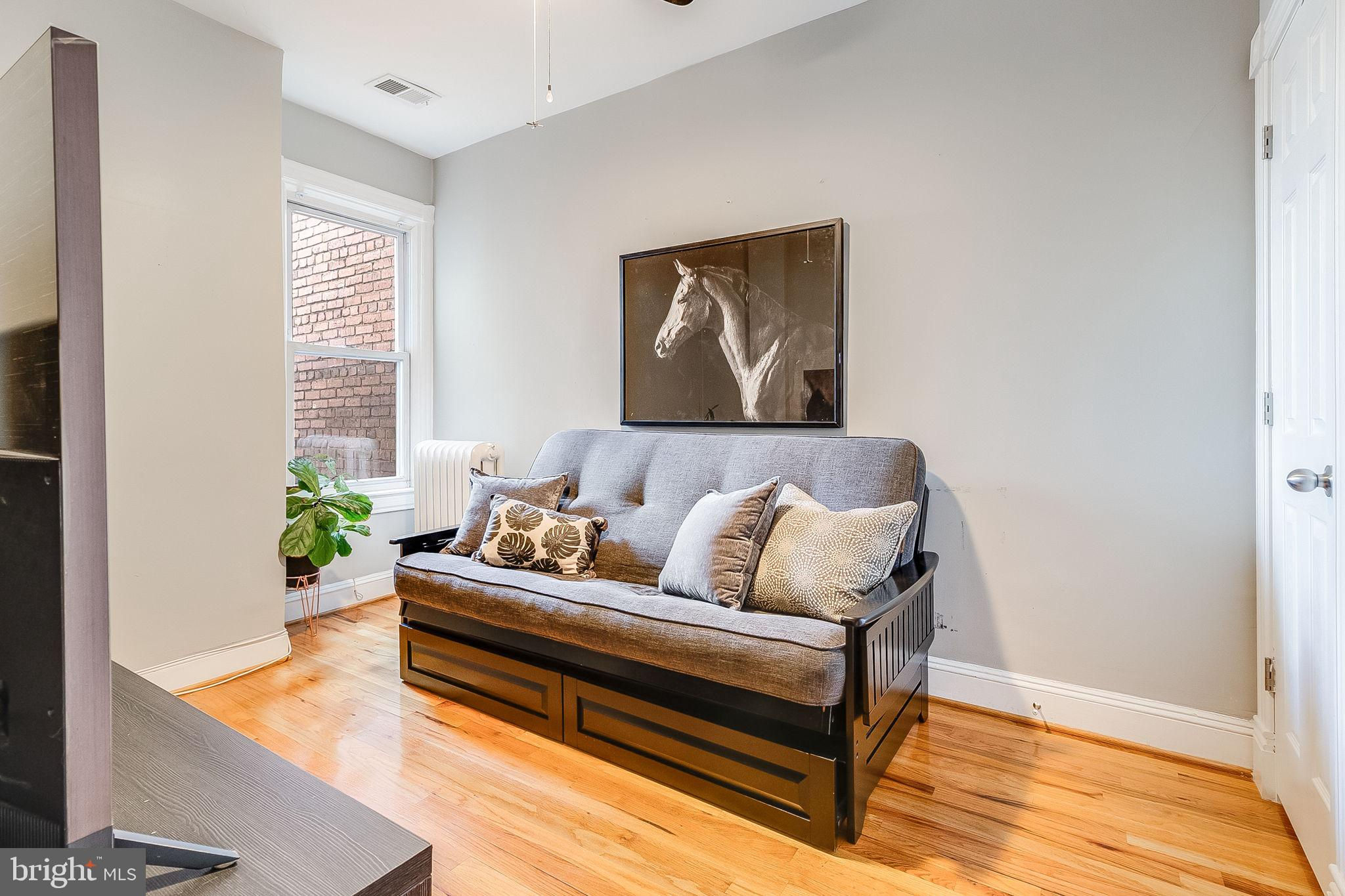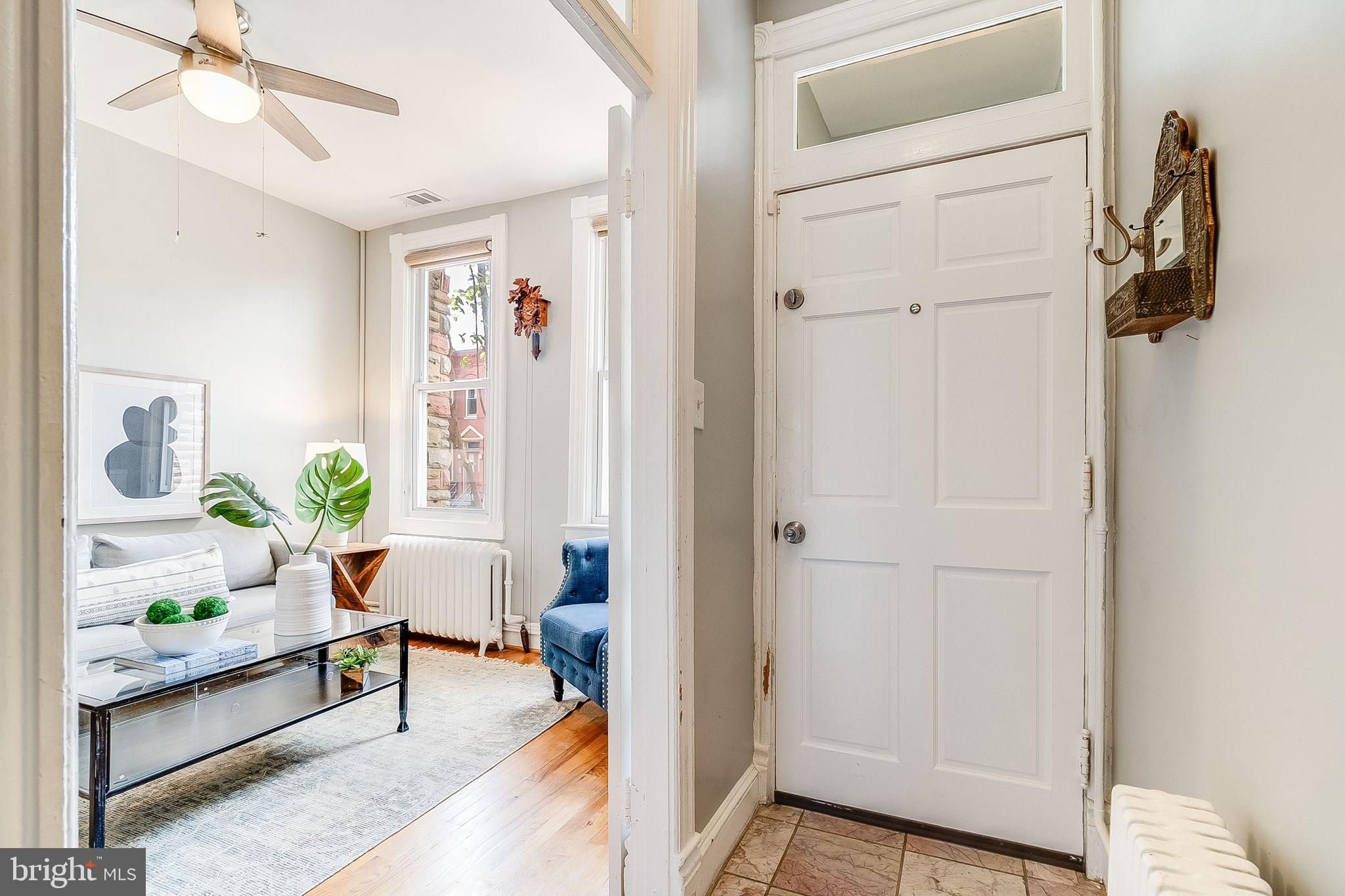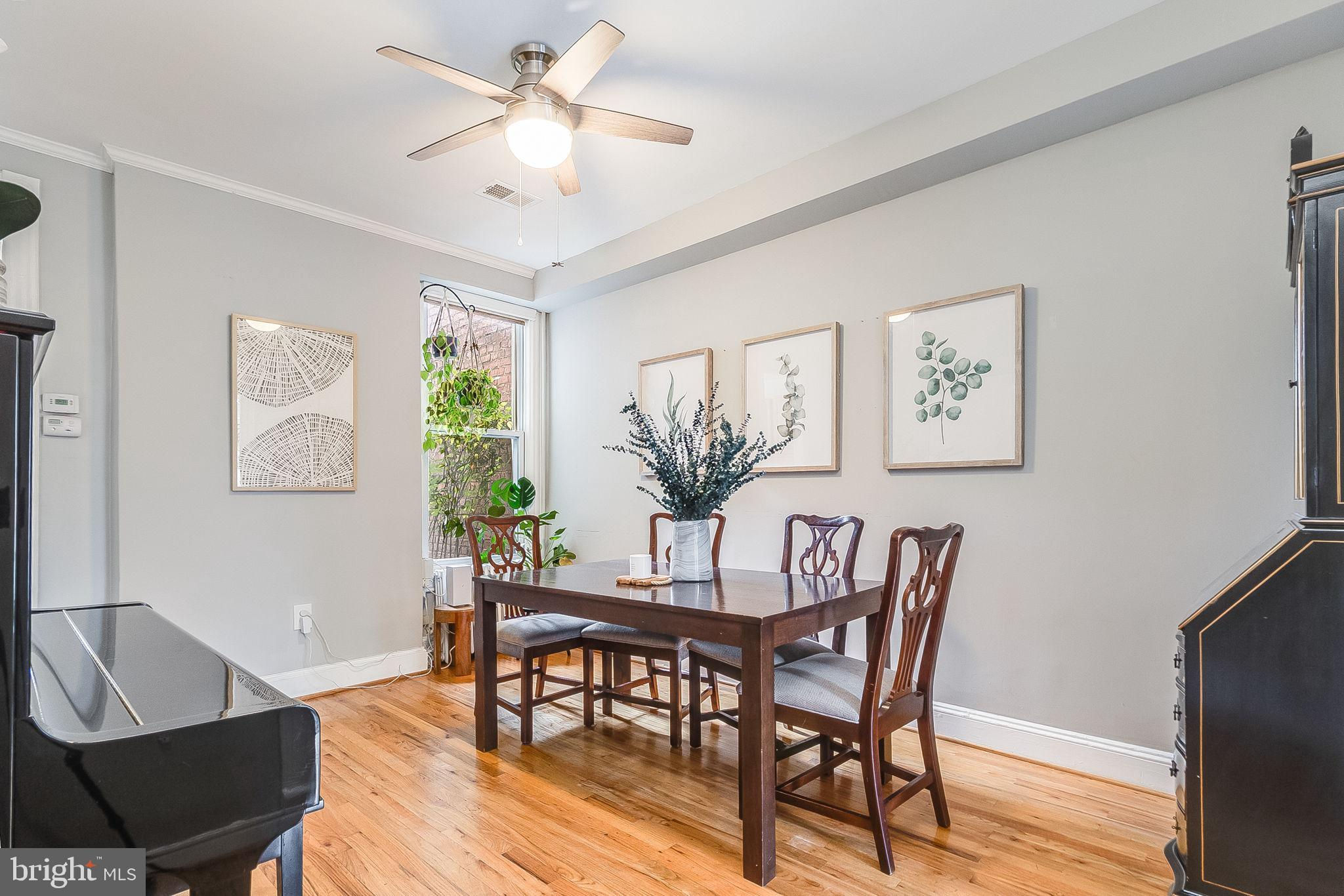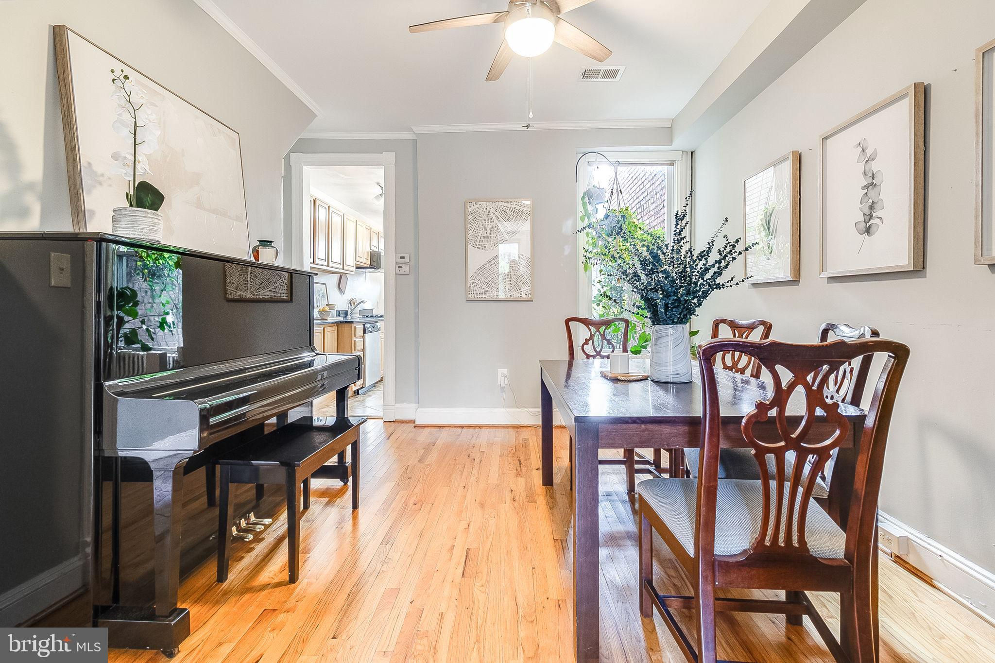 OPEN HOUSES, Saturday June 8th 1-3pm. Nestled among the tree-lined streets and historic architecture, this classic Federal row home built in the early 1900s beckons with its timeless allure. One of the few row homes of this size that has 3 bedrooms upstairs and 2 full bathrooms. This charming slice of history seamlessly blends historic charm with modern convenience spanning over 1,200 square feet. Step through the vestibule foyer into a world of character, where original features like transoms and original handrails evoke characters of year past. Inside, modern updates blend seamlessly with historic charm. Enjoy the convenience of upstairs laundry and the luxury of a primary bedroom with its own skylit bathroom, offering a tranquil oasis bathed in natural light. The newly renovated hallway bathroom ensure comfort and functionality for two additional bedrooms. Through the back bedroom, exit into one of the homes multiple outdoor living areas, perfect for enjoying the vibrant cityscape. Ascend to the incredible rooftop deck boasting 360-degree views of the city, offering an unparalleled vantage point for fireworks displays on the 4th of July. Imagine hosting unforgettable gatherings against this breathtaking backdrop! The outdoor indulgence doesn't end there. A spacious patio awaits off the kitchen, featuring garden flower beds and the a commissioned mural painted by renowed DC artist Aneikan Udofia. Home includes secure off-street parking through the back gated fence. Additionally, a deck off the third bedroom provides a private retreat for morning coffees or evening stargazing. With its prime location in Ledroit Park, you'll enjoy easy access to the city's finest dining, entertainment, and cultural attractions. With its proximity to the Yellow and Green Line Metro station (Shaw Metro Station), U Street amenities, Howard University’s Campus and Hospital, and the Park at Ledroit this residence is truly a treasure!