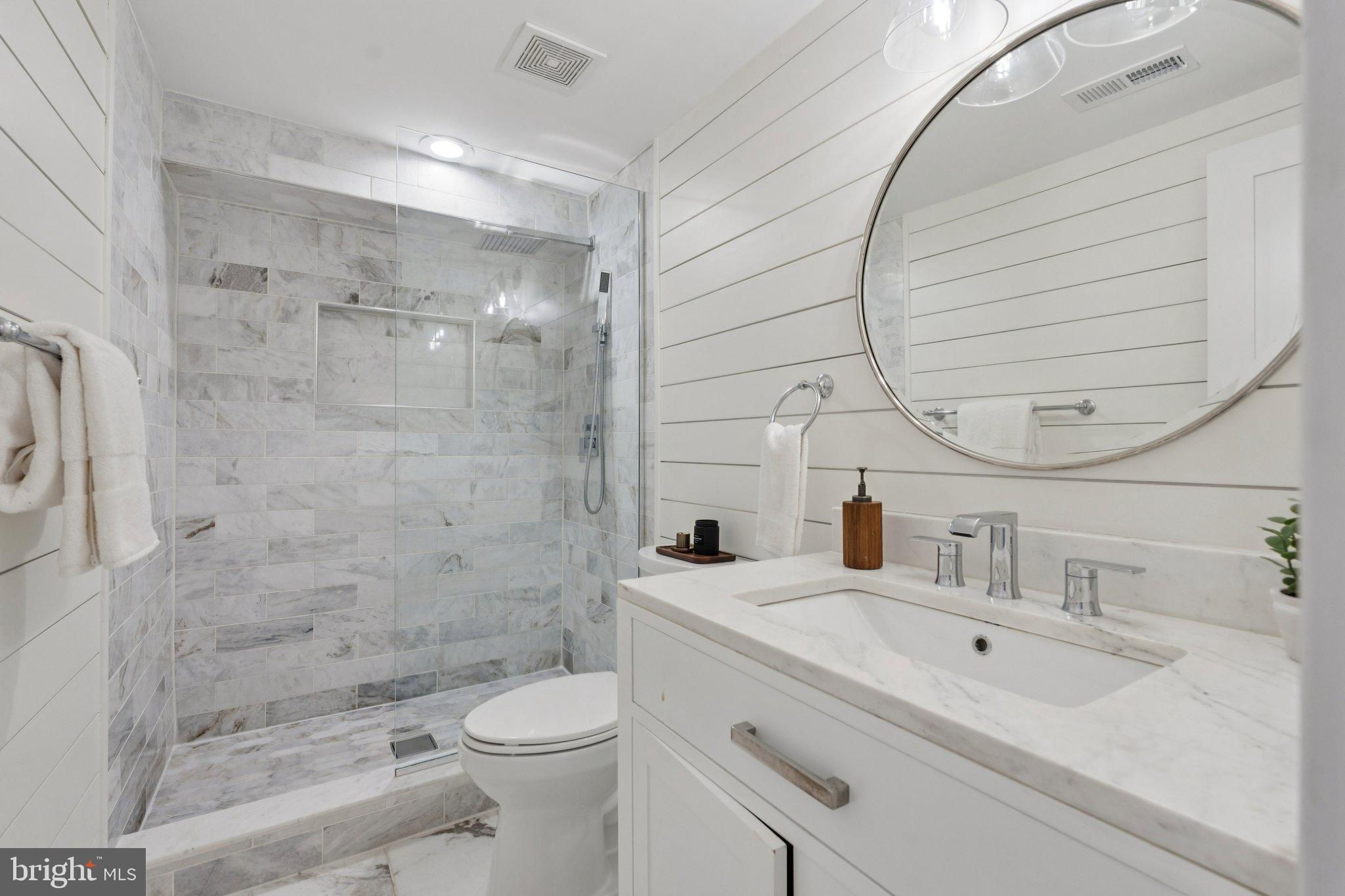 This large and elegant rowhome located in historic Bloomingdale was completely renovated in 2021 with an eye for details. The home is over 2,000 sq. ft of living space on 3 levels. The open floor plan on the main level includes hardwood floors throughout, high ceilings, half bathroom, and custom millwork. The gourmet kitchen with custom cabinetry, quartz countertops, Restoration Hardware fixtures and high quality appliances (including a large 36” Gas American Range) is ready for the next dinner party. The top floor has 3 bedrooms, 2 full baths, and a large laundry closet with Electrolux washer and dryer. In the primary bedroom you will find vaulted ceilings and tons of storage! Check out the wood work on the ceiling in the tower in the primary bedroom. The primary bathroom includes a double vanity and walk-in shower. The top floor hallway bathroom is designed as if it's ready for the next cocktail party. It's the house's little black dress. The lower level includes two egresses, living space, kitchen, 2nd laundry closet, 2 bedrooms, and one full bath. The kitchen includes a fridge, sink, and built-in microwave. The private back patio is a cozy retreat to end the day with a glass of wine or host a small dinner party. Within a matter of blocks from restaurants and cafes such as The Red Hen, Big Bear Cafe, and The Pub & The People. The house is just steps away from Creative Grounds DC for added convenience for a quick coffee. Less than a mile away is the new Reservoir District at the former McMillan Sand Filtration Site. Revitalization plans include Reservoir Park Recreation Center, children's playground, 6-acres of public park space, neighborhood retail, preserved historic structures, and a world-class center for healthcare and research.