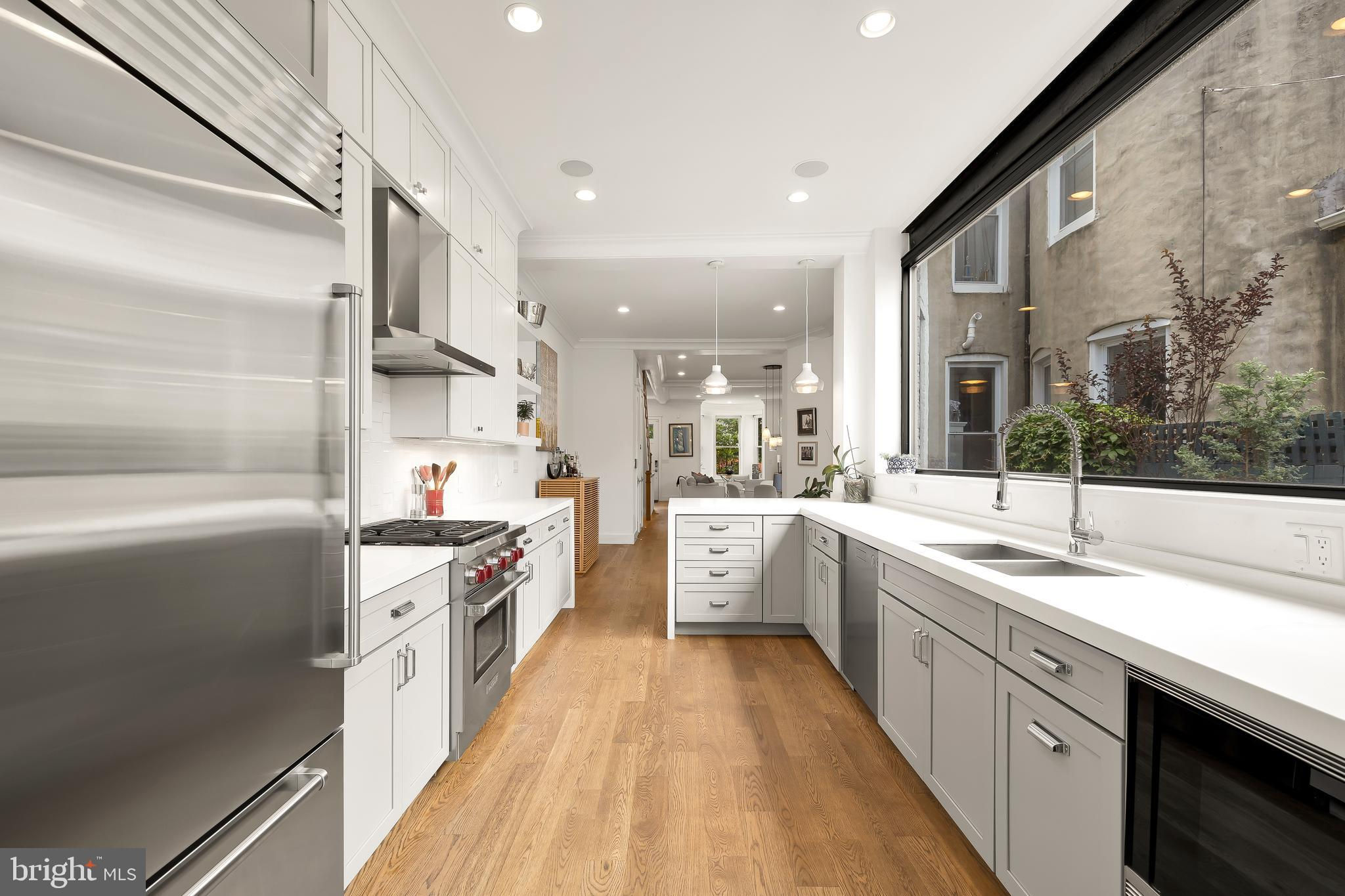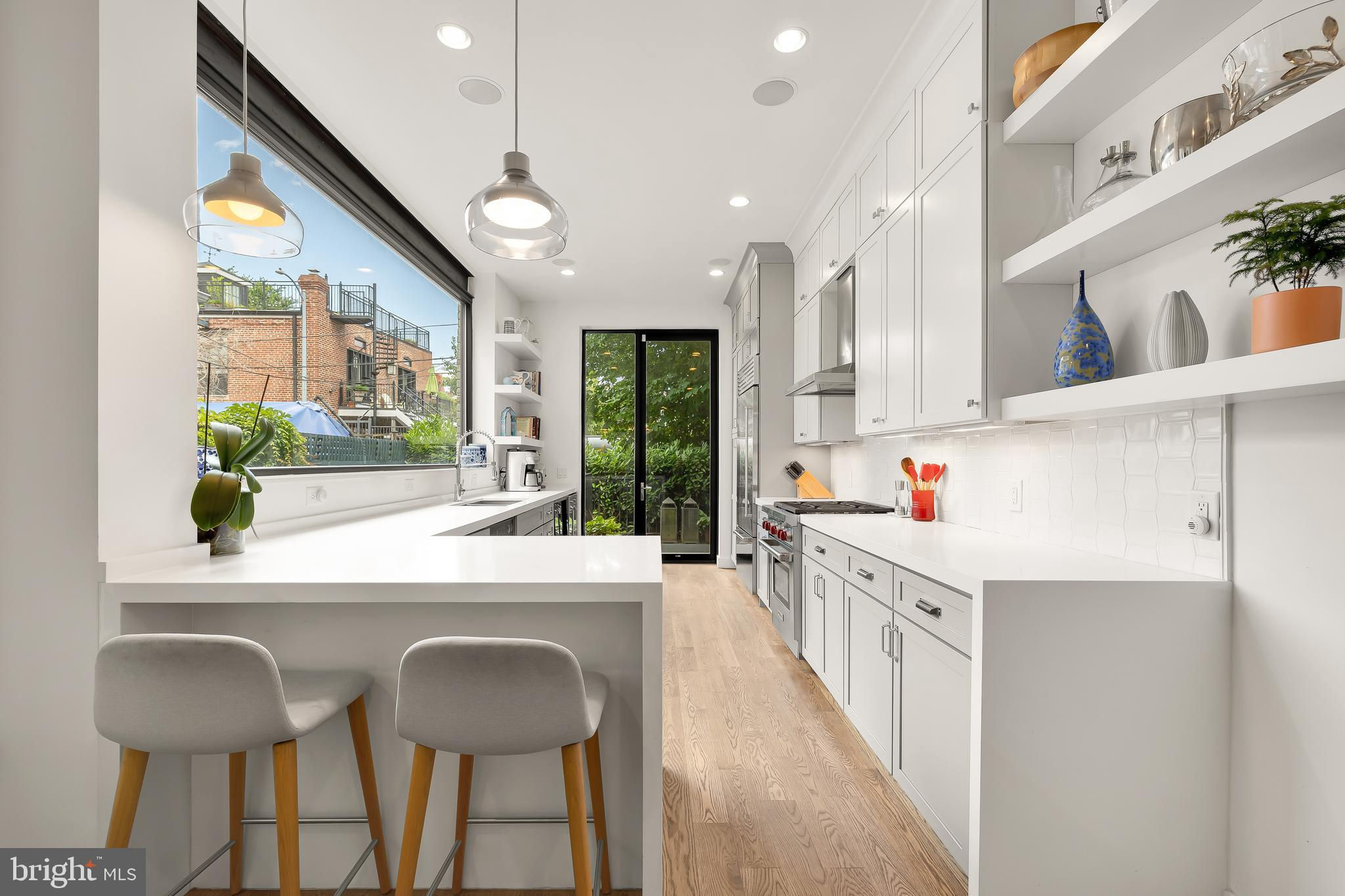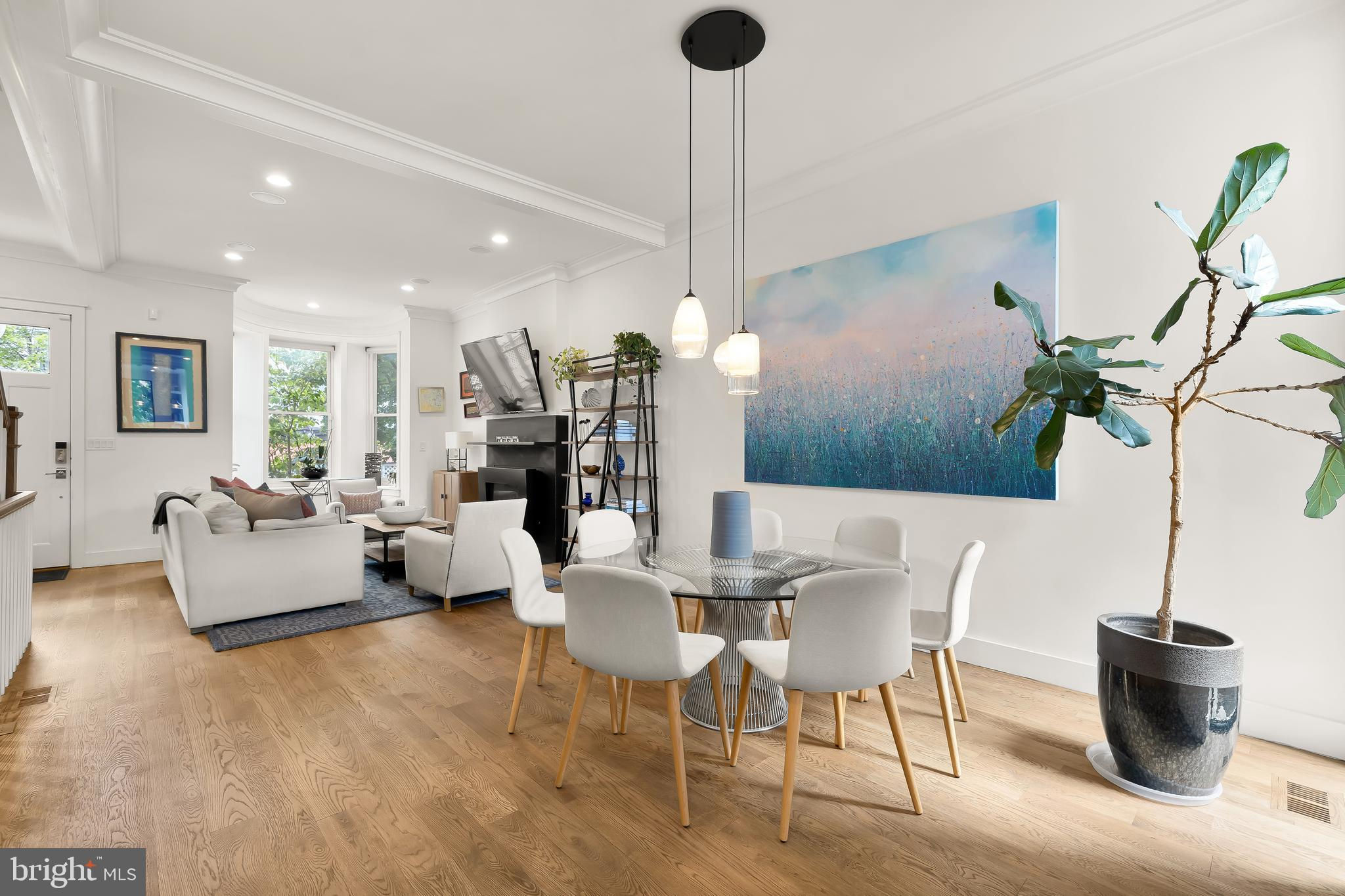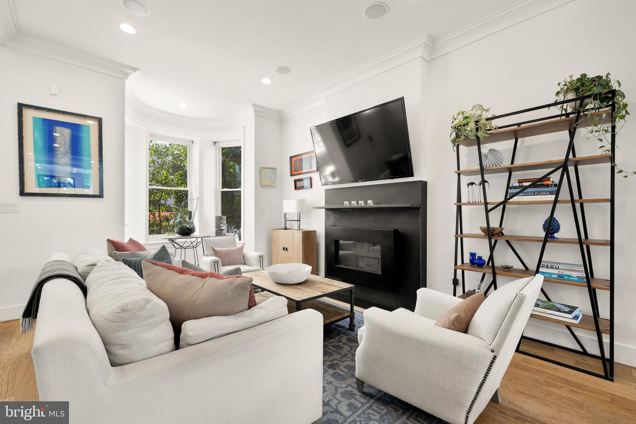 Welcome to this stunning townhouse at 1831 5th St NW, Washington, DC. This immaculate property offers over 3000 SF of luxurious living space, perfectly blending old-world charm with today's updated finishes. Conveniently located in the historic neighborhood of LeDroit Park, a sought-after area in the heart of Washington DC. This townhouse offers access to various dining, shopping, and entertainment options. With its modern design, spacious layout, and prime location, this property presents an exceptional opportunity for sophisticated urban living. This home boasts four bedrooms and 4.5 bathrooms throughout four sprawling levels, providing ample space for comfortable living and entertaining. As you step inside, you'll be greeted by a spacious and bright open interior featuring a seamless flow from room to room. The main level showcases a large living room with a gas fireplace, a dining area fitting a large table to fit eight and a modern kitchen with high-end appliances, sleek countertops, large picture frame window letting the inside in and an open layout that seamlessly transitions to the outdoors through the floor to ceiling glass doors, making it perfect for hosting gatherings and dinner parties. On the third level, discover a bedroom with its own rooftop deck and a convenient hall bath, while the second bedroom boasts a spacious walk-in closet and ensuite bathroom. Completing this level is a laundry closet. Ascend to the fourth level, where the primary suite awaits, complete with a delightful dress room overlooking the sprawling deck. Indulge in the luxurious full bathroom with its inviting tub and shower, and enjoy the bedroom's custom closet systems and delightful window accents. The walk-up lower level, offering additional living space and a minibar, is perfectly suited for a cozy family room, a welcoming guest bedroom, and an extra full bathroom for added convenience and comfort. Two private parking spaces in the rear of the home complete this spectacular home. Don't miss the chance to make this exquisite townhouse your new home!