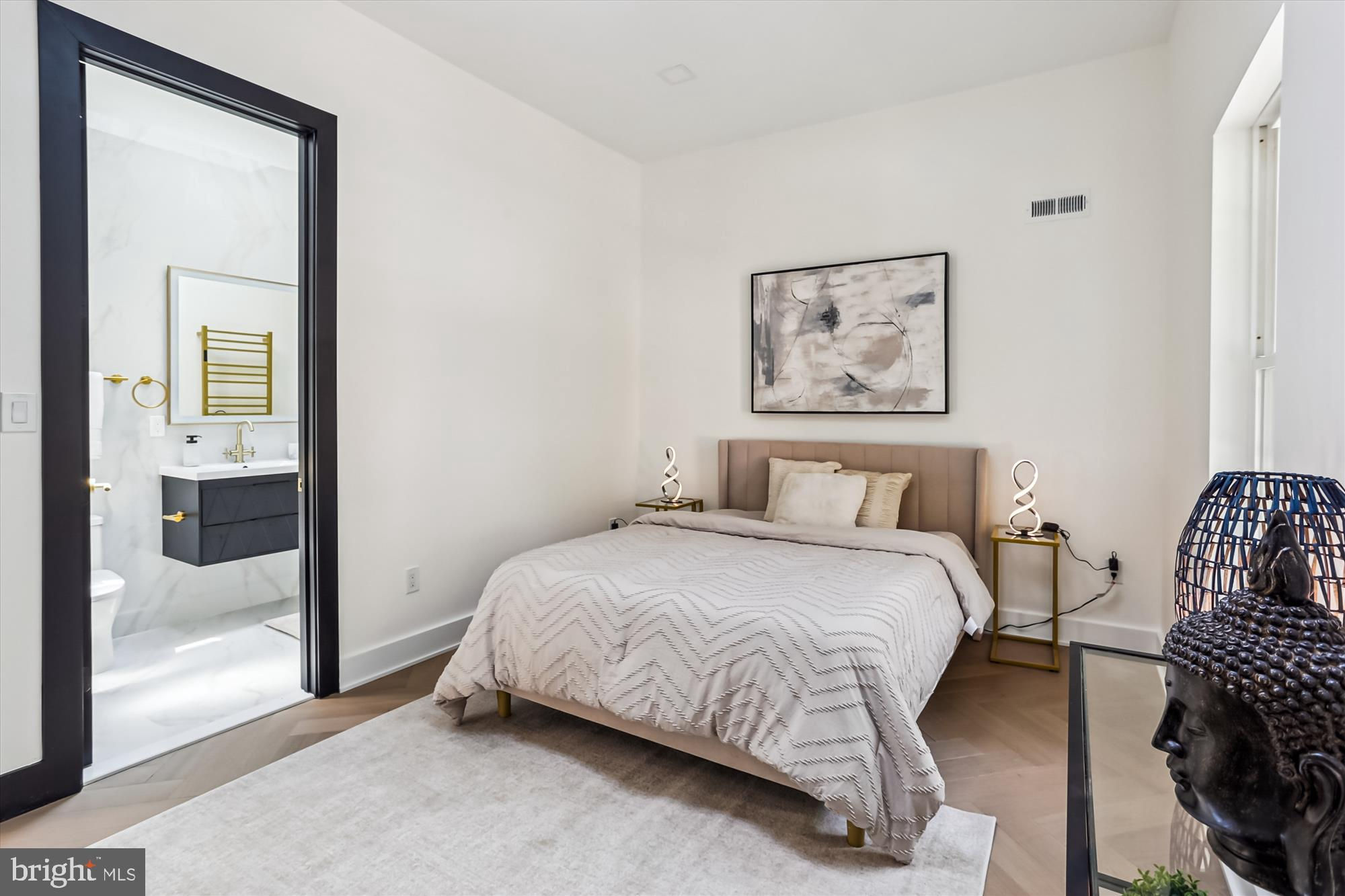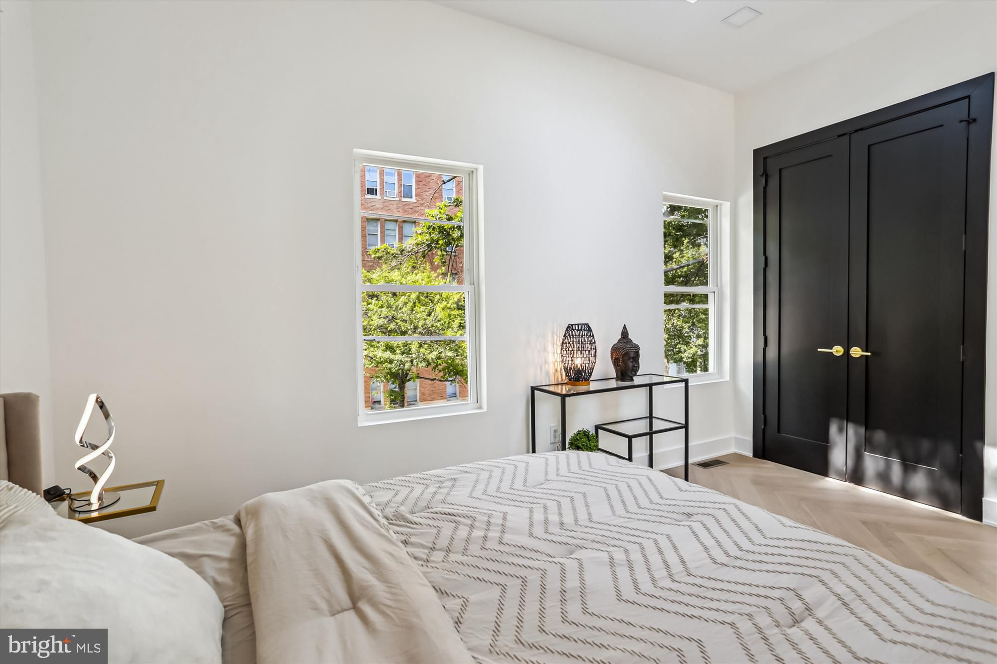 Experience the pinnacle of urban luxury at 1832 Florida Ave NW, a fully rebuilt and masterfully expanded rowhome boasting three expansive levels, NO HOA, and two coveted off-street parking spaces. Encompassing 1,951 square feet of designer-crafted living space, this residence features a dramatic penthouse-level suite that opens to an exclusive 140 sq ft penthouse patio with sweeping city views—perfect for grand-scale entertaining or tranquil sunset evenings. Every inch of this home exudes high-end refinement: the gourmet kitchen showcases sleek Bosch appliances, best-in-class quartzite countertops, and statement custom gold hardware. Impeccable herringbone French white oak flooring flows throughout, complementing the marble baths with full floor-to-ceiling tile. A roll-up garage door leads to private parking with EV charging, while energy-efficient systems ensure modern comfort. This is a rare Dupont offering blending timeless elegance with top-tier finishes and cutting-edge design—set to captivate from the moment it hits the market. The project is now fully completed and ready for sale.