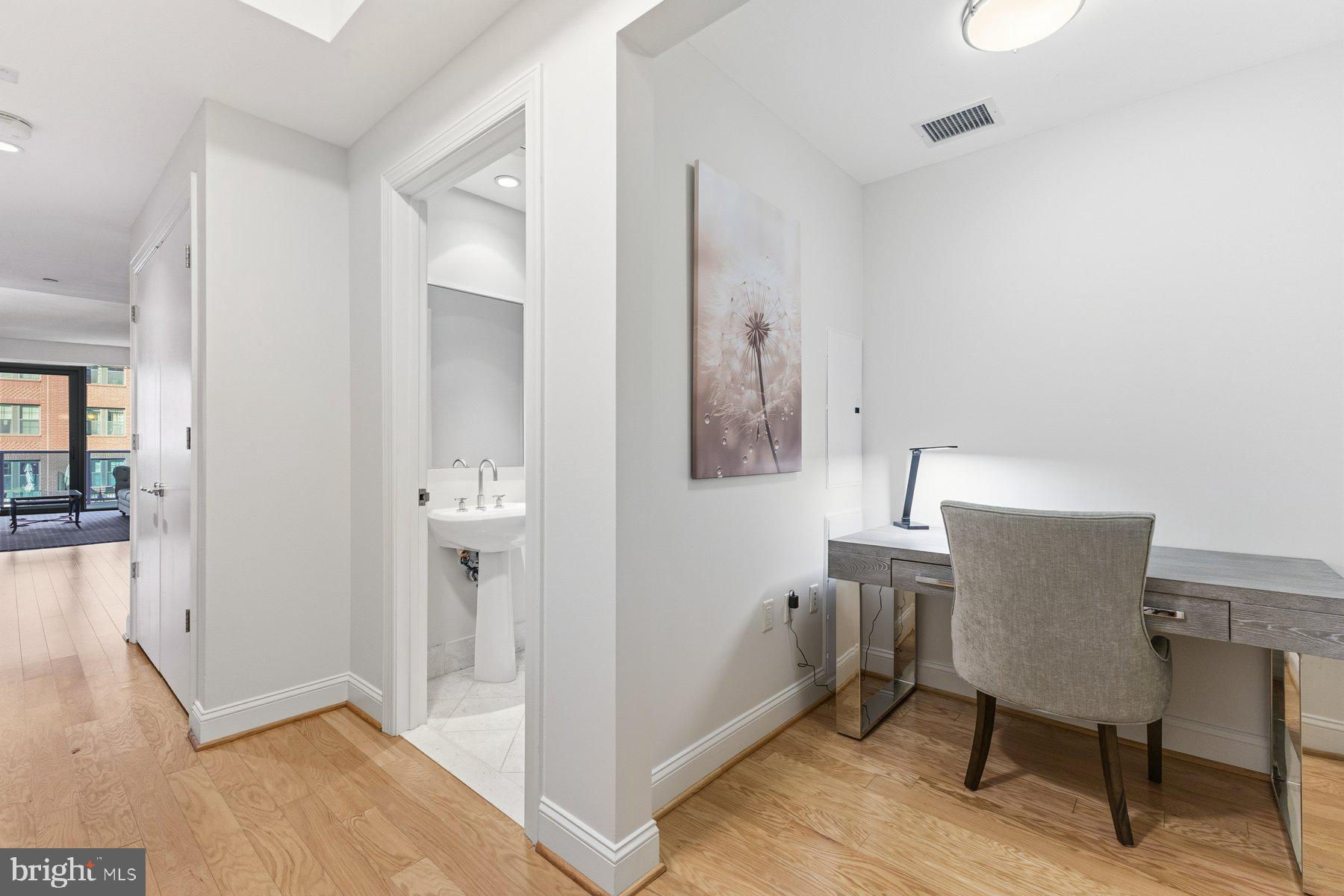 Welcome to Turnberry Tower, one of the most prestigious addresses in Arlington! Experience luxury, convenience, and sophistication in this beautifully maintained one-bedroom home combines world-class amenities with an unbeatable location; an exceptional opportunity to live in one of Northern Virginia’s premier buildings. This spacious one-bedroom, one-and-a-half-bath residence offers luxurious living throughout. The open floor plan features a light-filled living and dining area with 9-foot ceilings, floor-to-ceiling triple-pane windows for exceptional quietness, and beautiful hardwood floors. The modern kitchen showcases Italian Cabinetry, granite countertops, and top-of-the-line Miele Cook Top and Sub-Zero appliances perfect for both everyday living and entertaining.The welcoming foyer flows into the main living area and includes a stylish powder room for guests. A versatile area off the entry way provides the perfect space for a desk or can easily be enclosed for additional storage, adding functionality and flexibility to the home. The generous primary suite offers a walk-in closet with custom built-ins, custom blackout drapes, and a spa-like marble bathroom complete with dual vanities, Dornbracht Faucets, a separate 6-foot Jacuzzi soaking tub, and a walk-in shower. Step outside to your expansive 32-foot private terrace, ideal for morning coffee or evening unwinding. The terrace looks out over the quiet courtyard fountain and adds a wonderful outdoor area that feels like an extension of your home.Turnberry Tower offers 24-hour concierge and free valet service, on-site management, an indoor heated pool and hot tub with an adjoining sun patio for soaking up warm days, a fully equipped fitness center, and elegant social and theater rooms. A business center is available to residents for all your printing and shredding needs, and a dedicated storage unit conveys. The monthly condo fee includes cable TV, internet, water, gas, sewer, trash, building maintenance, and full-service amenities.Perfectly situated in the heart of Rosslyn, just two blocks from the Metro and minutes to downtown D.C., Georgetown, and National Landing, this location provides the best of luxury urban living with easy commuter access. Surrounded by restaurants, shops, and scenic trails along the Potomac River, you’ll love the convenience and lifestyle this address offers. One assigned bike slot conveys with the unit. Schedule your private showing today!