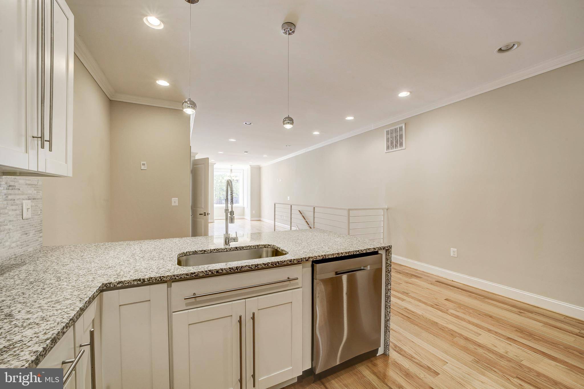 Nestled in the charming LeDroit Park neighborhood, the Reagan is a 1901 rowhouse that was converted in 2017 into a boutique 2-unit condominium. Unit 1 is a lower unit - 3 en-suite bedrooms with one on the main floor, modern kitchen with a peninsula, granite countertops, stainless steel appliances, natural hardwood floors on the main level, and one parking spot in the rear of the house. Brand new high quality luxury vinyl plank ( LVP) flooring on the lower level. Enjoy the ease of city living with an easy commute to Downtown with just half a mile to the Shaw-Howard University Metro, bus lines, and bike routes. The tree-lined streets are adorned with classic DC rowhouses, creating an inviting atmosphere. Embrace the culinary delights of the area with a myriad of top-rated eateries just steps away. Reagan Condominium offers a spacious and convenient lifestyle. This is a self-managed condo with minimal fees.
