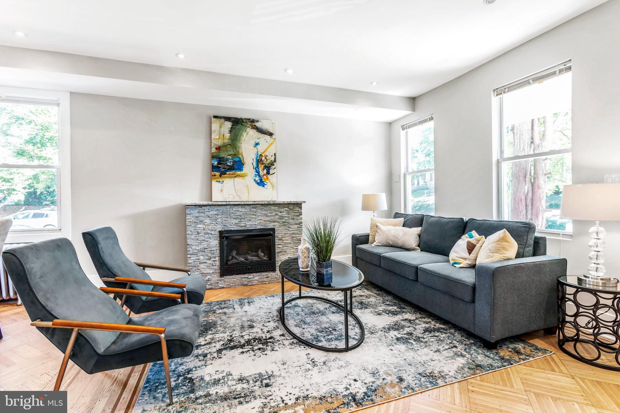 *Brand new 25-year roof* Nestled in the heart of the vibrant Eckington neighborhood, this exquisite residence brilliantly captures the essence of modern comfort while retaining its historic charm. Demonstrating unparalleled craftsmanship, this end-unit boasts 1776 square feet of sun-drenched interiors, courtesy of its generous windows on three sides. The meticulous renovation in 2014, down to the studs, saw an exquisite transformation, with modern upgrades like waterproofed basements while carefully preserving the timeless beauty of original parquet floors and iconic staircases. Marvel at the radiant living spaces adorned with gas fireplace on the first floor, adjacent to a convenience-laden half bath. Revel in the luxury of the heart pine floors on the second level that holds two on-suite bedrooms, ensuring serene personal spaces. The basement, meticulously dug out and renovated, offers an additional bedroom and a full bathroom, punctuated by its own separate entrance. The culinary enthusiast will appreciate the neighborhood's proximity to trendy eateries and boutiques, including the renowned Lost Generation Brewing Company, Union Kitchen, and the Pub & the People. For those who value connectivity, the location offers unmatched convenience, strategically positioned equidistant from the NoMa Metro and Rhode Island Ave Metro. Engage in leisurely strolls to Union Market, savoring the offerings of Trader Joe's and an array of dining and shopping delights. Outdoors, relish the serenity of a front and back porch, perfect for relaxation or hosting intimate gatherings. Complementing this residence's vast appeal is an off-street parking space, marrying functionality with grandeur. Set against the backdrop of the bustling Washington, D.C., this masterpiece, a harmonious blend of historic charm and contemporary flair, is a testament to luxury living in the city.
