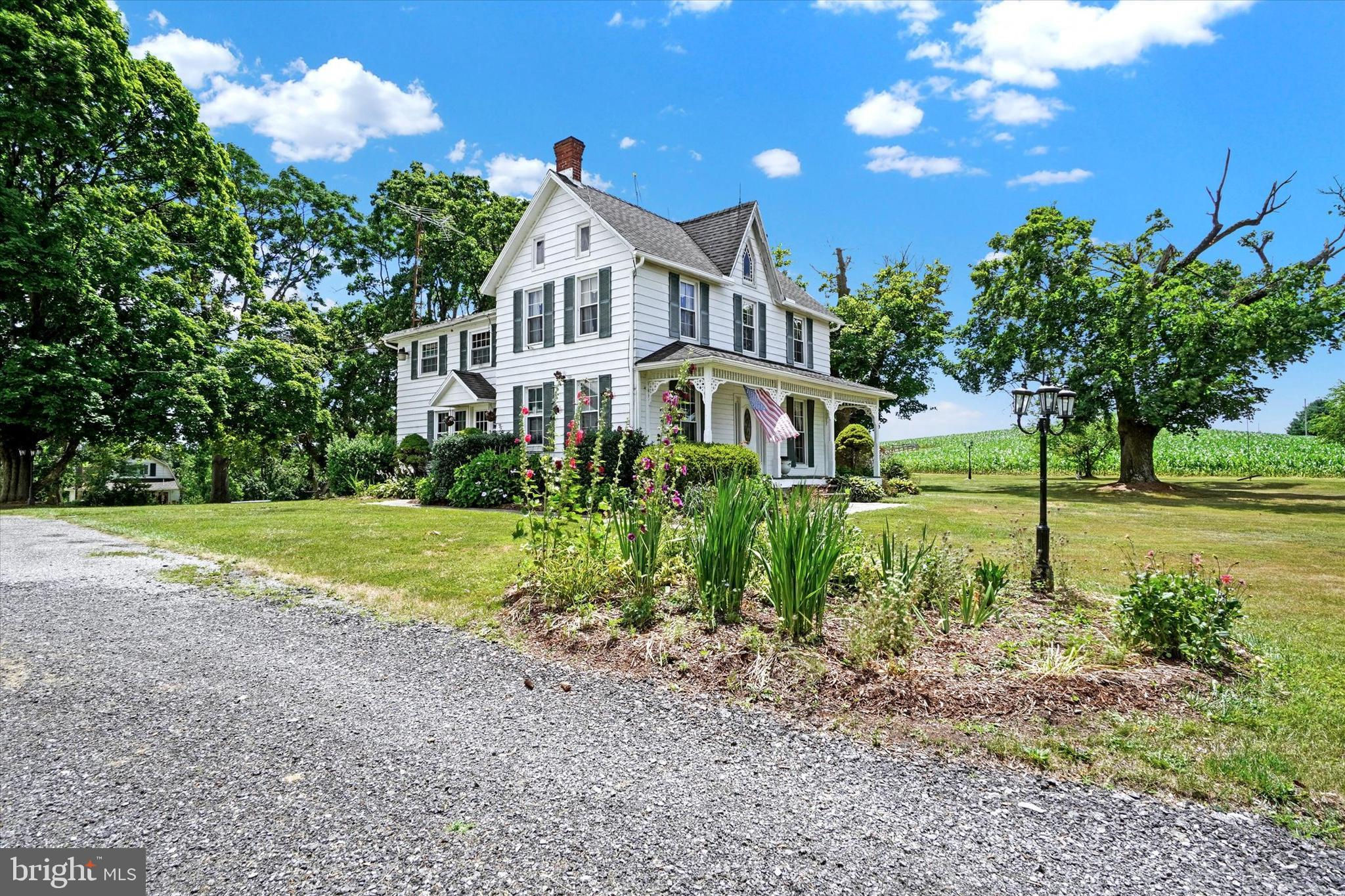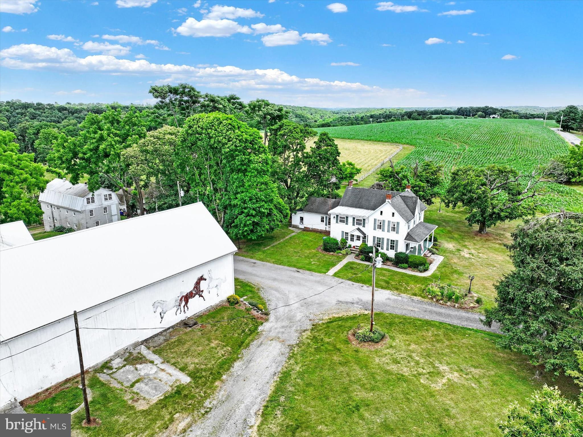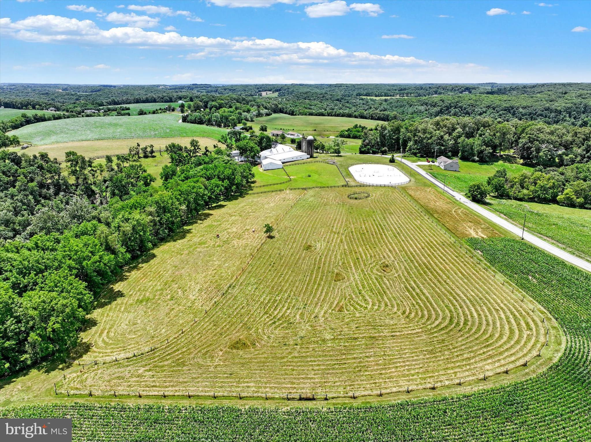 Very rare find! Hurry to view this wonderful farm near the PA/MD border known as "Ridge Meadow Horse Farm" - Explore the endless possibilities available for this picturesque working 157 acre farm, located in Hopewell Township, Southern York County. Located on the property - Multiple outbuildings including a HUGE 13-sided, 2-story bank barn, several other barns, silos, various sheds, 2-story chicken coop; and a 3-sided, 40x60 metal barn/garage with electric; rolling pastures, 2-3 miles of private riding trails, paddocks, and run-in sheds; and a lighted 120x235 outdoor riding arena filled with shock absorbing sand. Acreage consists of approximately 35 pasture acres, 25-30 fenced acres, 37 wooded acres, and 122 tillable acres currently being leased. Ebaugh Creek located on the property is used for irrigation purposes. Road frontage exists along three sides of the property, with acreage extending to the PA/MD line. Small subdivision possibility. If you are a horse lover; hobby, part-time, or professional farmer; someone looking to start a winery/brewery; or someone just looking to escape the hustle and bustle of city life.....you may have just found your heaven on earth! There are two homes on the property - A 2400 sq ft, 2.5 story, 3-4BR, 2BA Farmhouse with large rooms, tons of storage, chestnut hardwoods, primary suite, walk-up attic, with stained glass window, and basement with outside entrance. In addition, there is a currently rented 1080 sq ft, 1-2 BR, 1BA home, to the rear of the main home. Go ahead and bring your horses to this historic farm. Some of the buildings date back into the 1800's, and showcase all pegged construction. We are sure the HUGE (13-sided) modernized 2-story bank barn, is one of the largest and cleanest barns you will ever find! Currently there are 11 stalls (4-12x12, 3-15x17, and 4-20x30), with the possibility of 32 stalls total. The horse area also has a half bath, two tack rooms, a feed room, and more. The farm is currently working, offering riding lessons and boarding opportunities. Let your imagination soar on the 2nd floor! LOADS of barn space, an office, silo access, and a beautifully rehabbed open area perfect for your very own country hoe-down (at one time the owner had seating for 150 people in it, but could do 300 people). Check it out......it might be the perfect spot to hang your spurs! AGENTS - PLEASE review BRIGHT DOCS for important information, including lease information, and read Agent Remarks, BEFORE scheduling a showing for this farm.