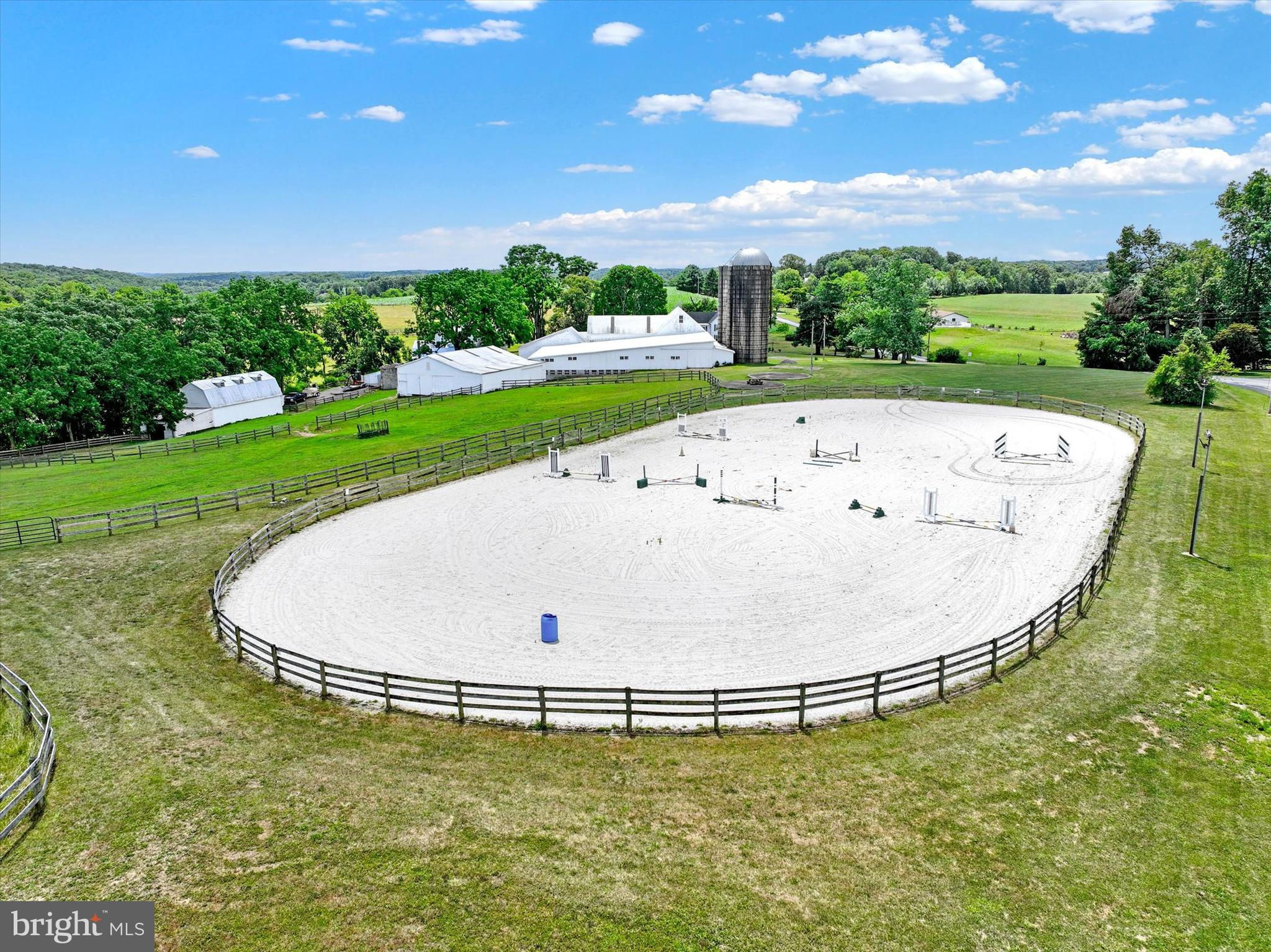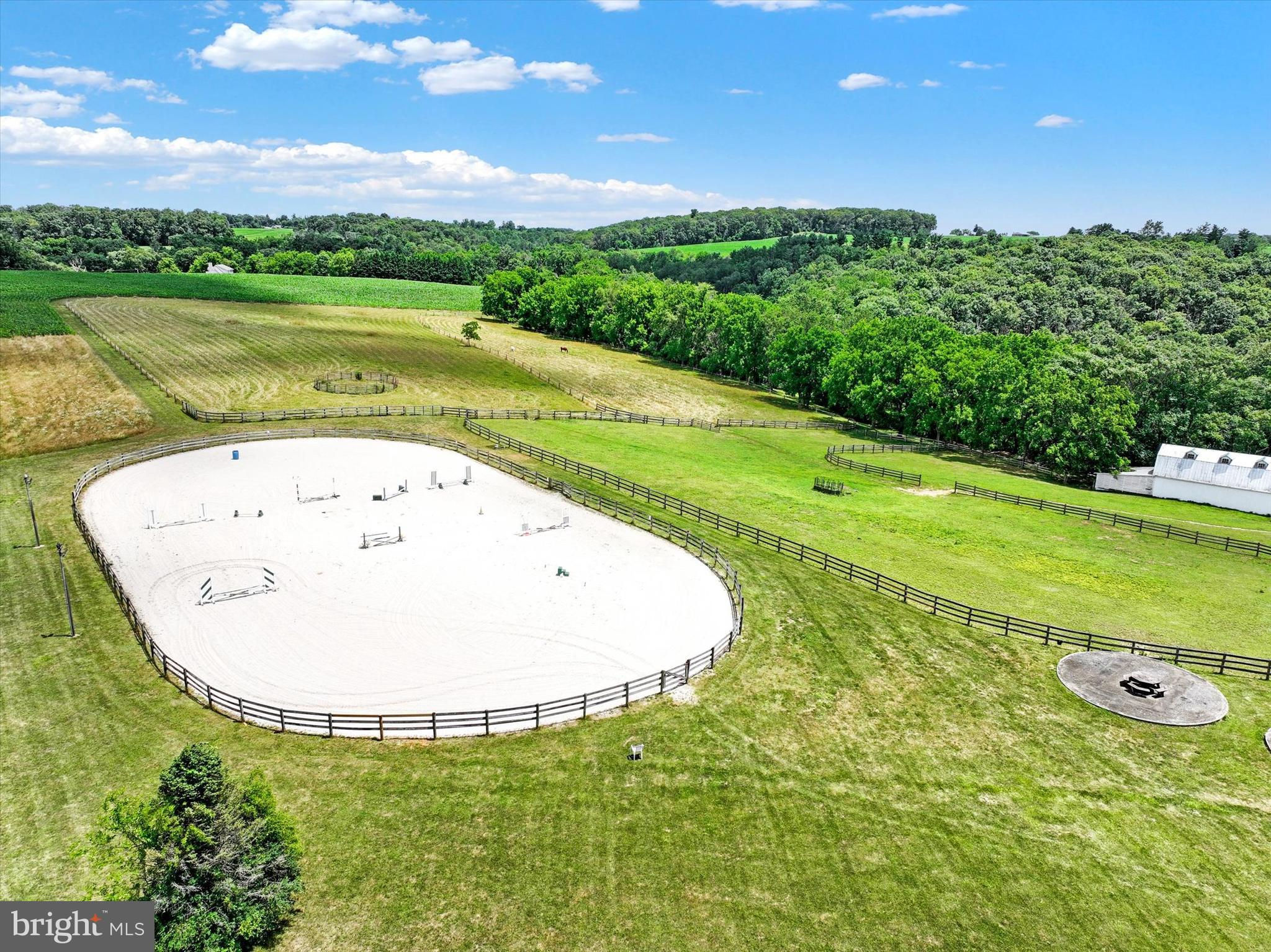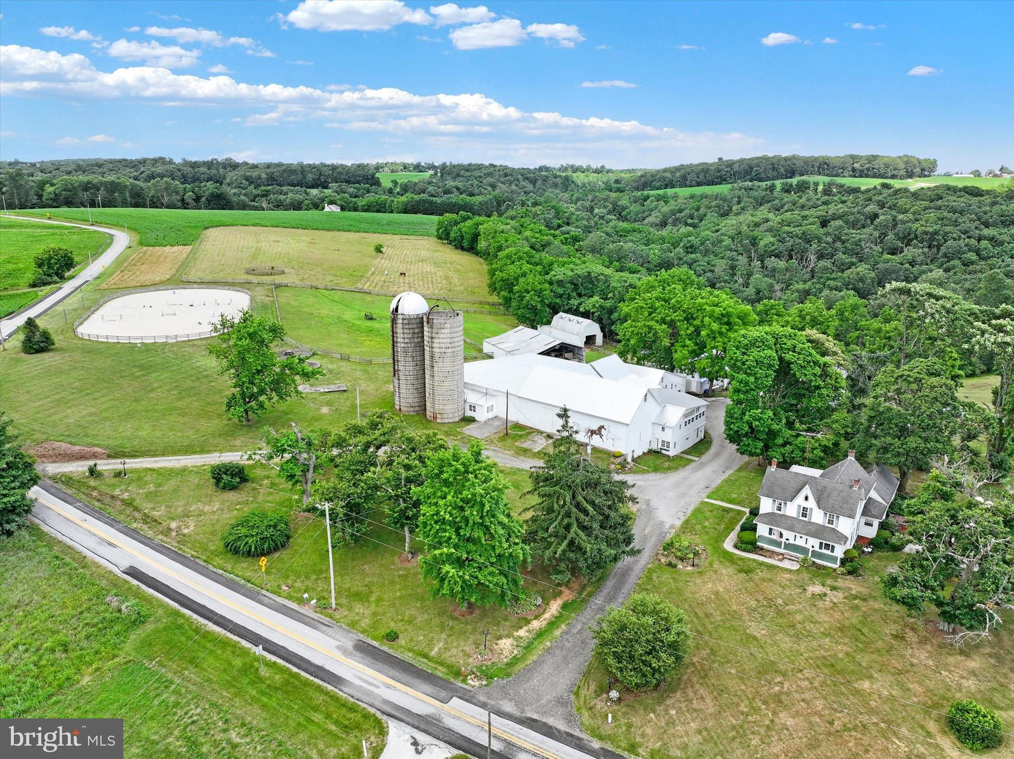 Very rare find! Hurry to view this wonderful farm near the PA/MD border known as "Ridge Meadow Horse Farm" - Explore the endless possibilities available for this picturesque working 157 acre farm, located in Hopewell Township, Southern York County. Located on the property - Multiple outbuildings including a HUGE 13-sided, 2-story bank barn, several other barns, silos, various sheds, 2-story chicken coop; and a 3-sided, 40x60 metal barn/garage with electric; rolling pastures, 2-3 miles of private riding trails, paddocks, and run-in sheds; and a lighted 120x235 outdoor riding arena filled with shock absorbing sand. Acreage consists of approximately 35 pasture acres, 25-30 fenced acres, 37 wooded acres, and 122 tillable acres currently being leased. Ebaugh Creek located on the property is used for irrigation purposes. Road frontage exists along three sides of the property, with acreage extending to the PA/MD line. Small subdivision possibility. If you are a horse lover; hobby, part-time, or professional farmer; someone looking to start a winery/brewery; or someone just looking to escape the hustle and bustle of city life.....you may have just found your heaven on earth! There are two homes on the property - A 2400 sq ft, 2.5 story, 3-4BR, 2BA Farmhouse with large rooms, tons of storage, chestnut hardwoods, primary suite, walk-up attic, with stained glass window, and basement with outside entrance. In addition, there is a currently rented 1080 sq ft, 1-2 BR, 1BA home, to the rear of the main home. Go ahead and bring your horses to this historic farm. Some of the buildings date back into the 1800's, and showcase all pegged construction. We are sure the HUGE (13-sided) modernized 2-story bank barn, is one of the largest and cleanest barns you will ever find! Currently there are 11 stalls (4-12x12, 3-15x17, and 4-20x30), with the possibility of 32 stalls total. The horse area also has a half bath, two tack rooms, a feed room, and more. The farm is currently working, offering riding lessons and boarding opportunities. Let your imagination soar on the 2nd floor! LOADS of barn space, an office, silo access, and a beautifully rehabbed open area perfect for your very own country hoe-down (at one time the owner had seating for 150 people in it, but could do 300 people). Check it out......it might be the perfect spot to hang your spurs! AGENTS - PLEASE review BRIGHT DOCS for important information, including lease information, and read Agent Remarks, BEFORE scheduling a showing for this farm.