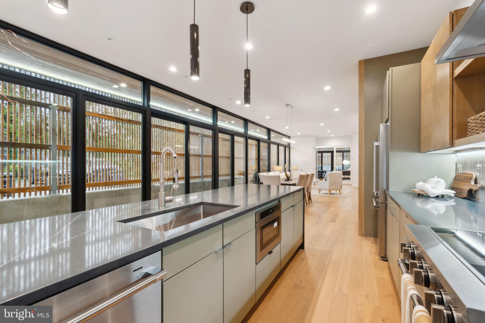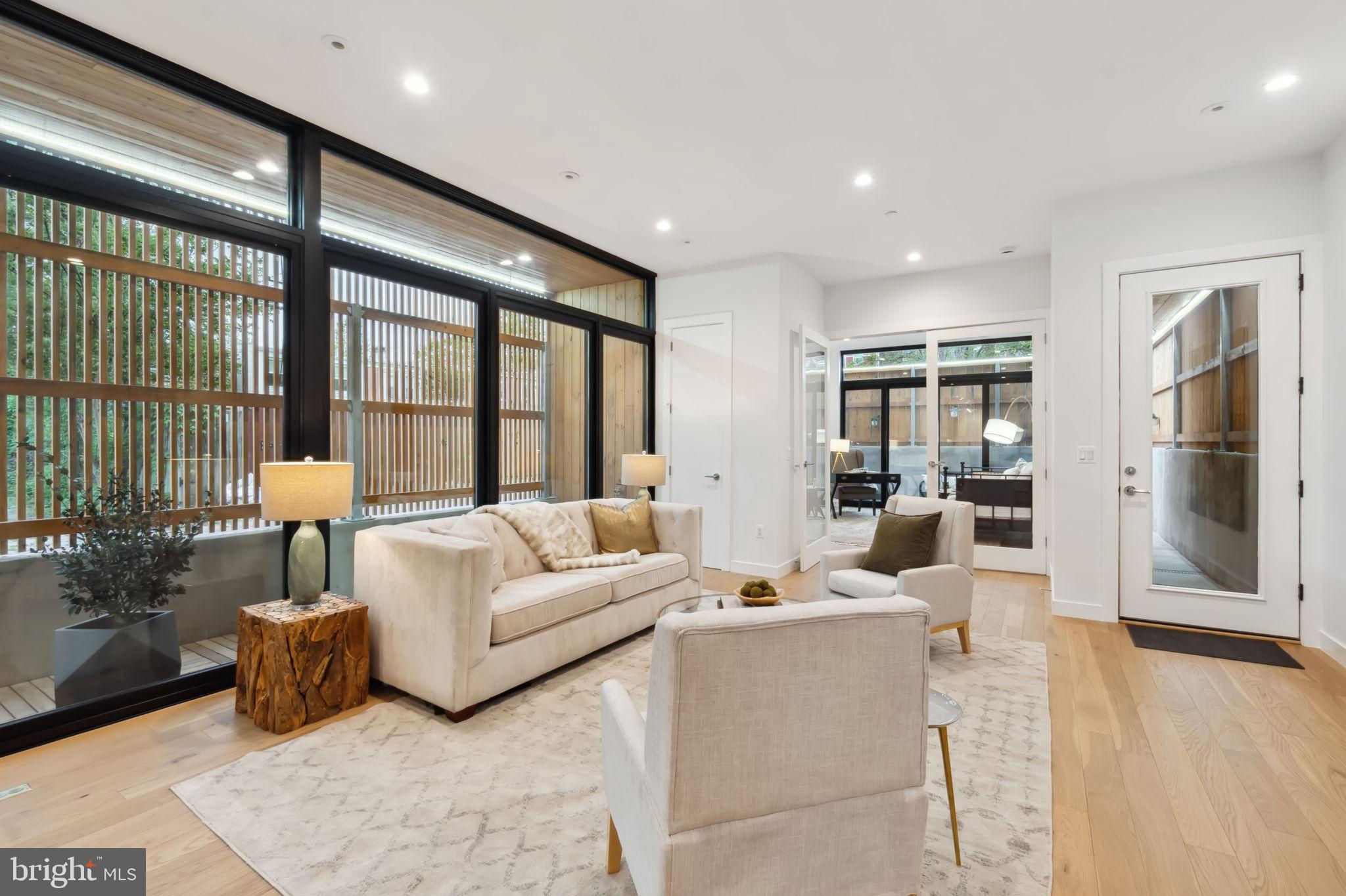 ***OPEN SUN 7/28 2-4PM***$50k price adjustment and recently featured in ArchDaily, "the world's most visited architecture platform!" This unique eco-forward DETACHED new construction home is in the heart of the city. A home of this size, quality and design significance simply cannot be built from scratch at the current list price with today's cost of acquisition, design and construction. With an estimated 3,200+ finished above-grade square footage and 588 square feet of private exterior space, this all-electric, six bedroom, five bathroom home is loaded with features you can and cannot see. The main level has 10' ceilings and the second level has 9' ceilings. The entire southern face of the massive living and dining area is made up of a Pella insulated window/wall system providing abundant natural light and three sliding door access points to the 46' long covered patio. The kitchen is styled with custom cabinetry, stainless appliances, induction range, quartz counters that mimic soapstone with a waterfall edge, counter seating for 5+, task lighting and a camouflaged pantry under the stairs. The main level also includes a full bathroom and flexible space accessed via French doors that could function as a bedroom, office or playroom. Moving to the second floor, the railings and staircase details are handcrafted from solid white oak and stained to match the oak flooring found throughout the home. An enormous skylight sends light washing down the stairwell and into the hallway. The west end of the home contains the primary suite. The primary suite provides true luxury with a spa-like bathroom with a heated floor, three huge closets, a bedroom large enough for a king bed plus a seating area and a private covered balcony. The east end of the home contains a potential ADU, nanny or guest suite with its own exterior entrance, wet bar, full bathroom and covered balcony. Between the two suites are three additional bedrooms and two full bathrooms. A mix of insulated Anderson casement and picture windows are found throughout the second level. There are numerous features that are less obvious, yet extremely important. This home was constructed using the BamCore Prime Wall framing system. This is a bamboo/Eucalyptus/wood hybrid system that is stronger than traditional 2x6 framing, reduces thermal bridges by up to 90% compared with traditional stick and frame construction and sequesters more atmospheric carbon than is emitted throughout its harvest, manufacture and construction life cycle stages per BamCore's website. Practically speaking, heavy items like art and TVs can be attached to the walls without looking for a stud! There is an efficient dual zoned high-velocity heat pump for climate control that includes a fresh air replacement system. The garage is pre-wired to accept a Level 2 vehicle charger, and the roof is a prime candidate for solar. All bedrooms are hardwired for cable and Ethernet for a more secure work-from-home experience. The home is fully sprinklered for the highest fire protection and a discount on home insurance by most providers. This home is located in a quiet alley away from the hustle and bustle. Think of it as an urban cul-de-sac! There are friendly neighbors, many of whom get together regularly and are members of the Old Soldiers Home Golf Course and Wangari Gardens. It is walkable to both the Columbia Heights and Petworth Metros. The new McMillan Reservoir development ("Reservoir District") is only about three blocks away and will have a full-service grocer, restaurants and shops. The brand new nearby DC rec center with an indoor pool, splash pads, playground and fountain has officially opened! Aurora Market is right around the corner for coffee, cocktails, light fare and pantry staples. Call Your Mother Deli and The Midlands Beer Garden are only a 5 minute walk away, as are myriad other food and drink destinations. Thanks for your interest and please contact the listing agent with questions!