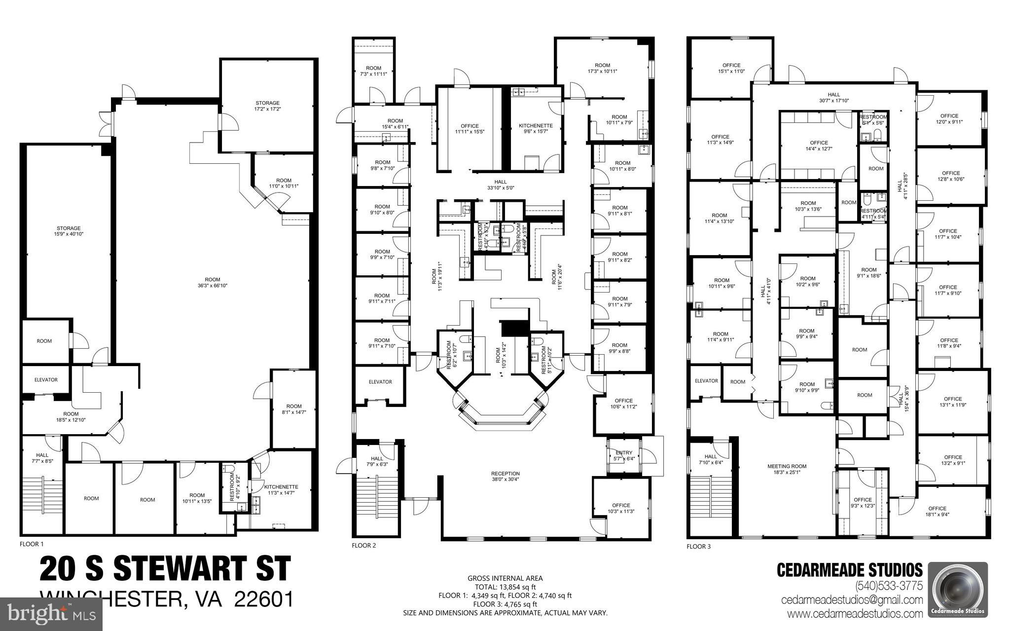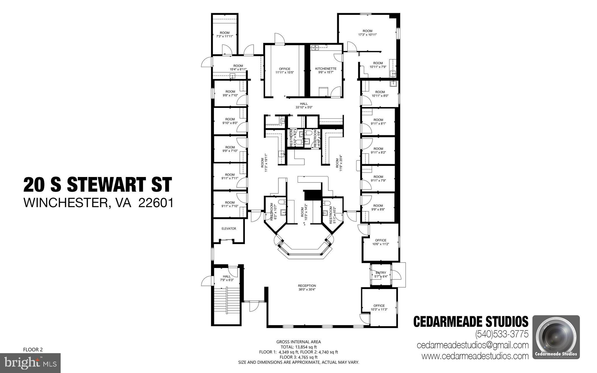 LOCATION, LOCATION! 17,000 sq feet Professional office space located in prime downtown Winchester's business district! All-brick building features 3 finished floors - the 2 above grade levels feature spacious reception areas, exam rooms, private offices, break rooms, kitchenette, bathrooms, and the finished basement provides great bull-pen / gathering space with tons of storage/shelving. Space was formally a medical office. Nice details provide lots of character throughout, including some hardwood floors, crown molding and chair rail. Elevator and multiple staircases for accessibility options. Private parking lots provides 45 parking spaces! ALSO LISTED FOR LEASE - MLS #VAWI2003440
