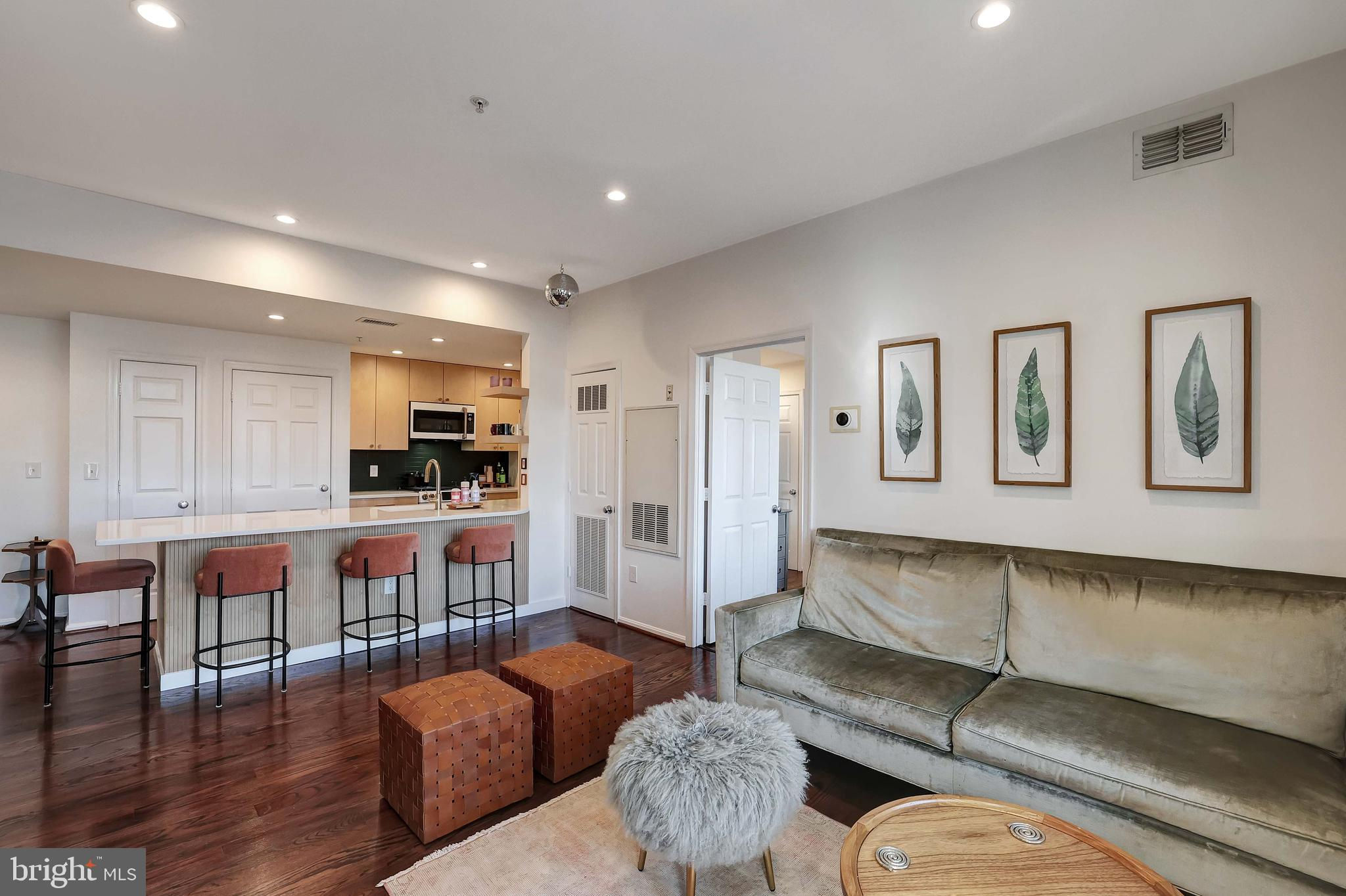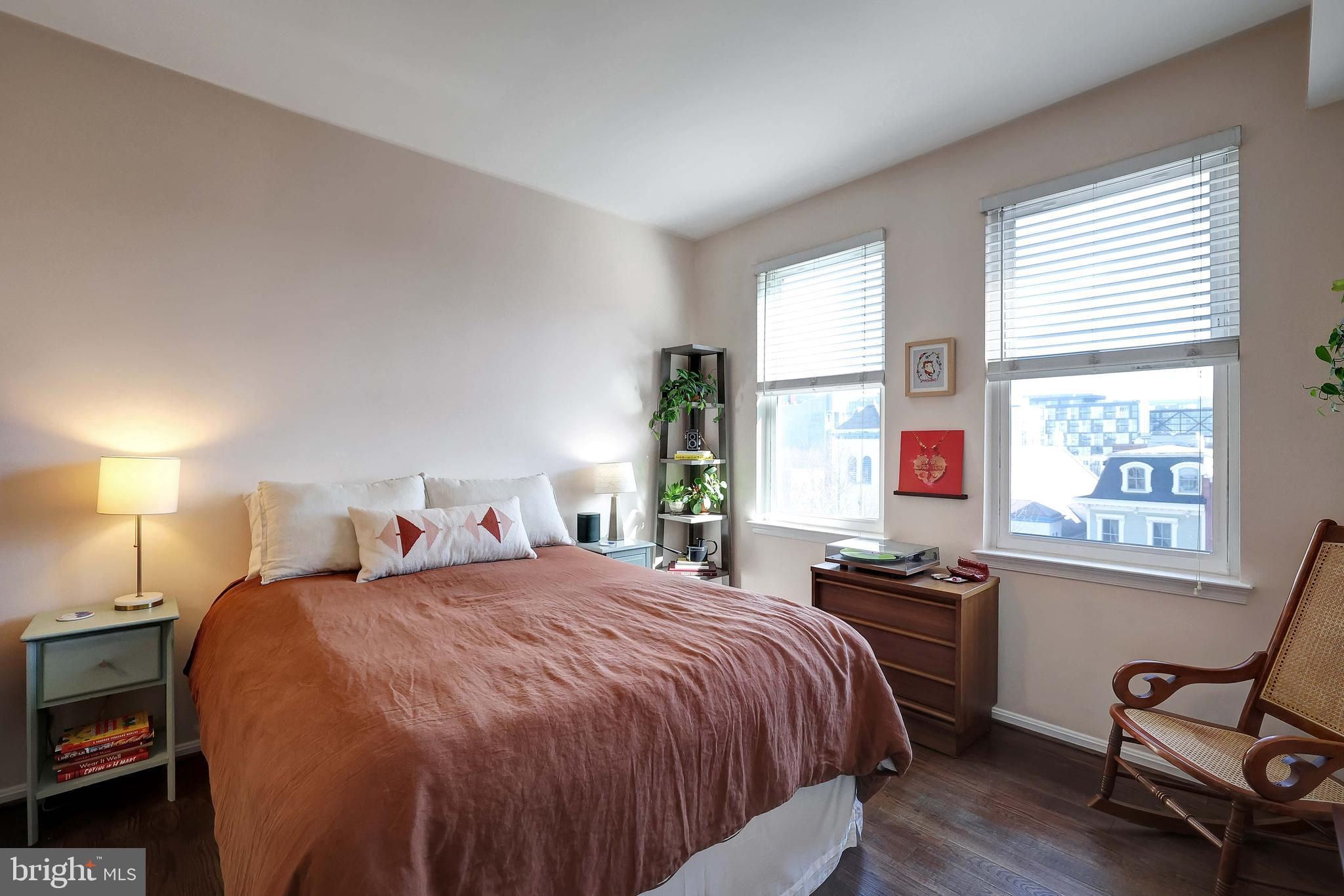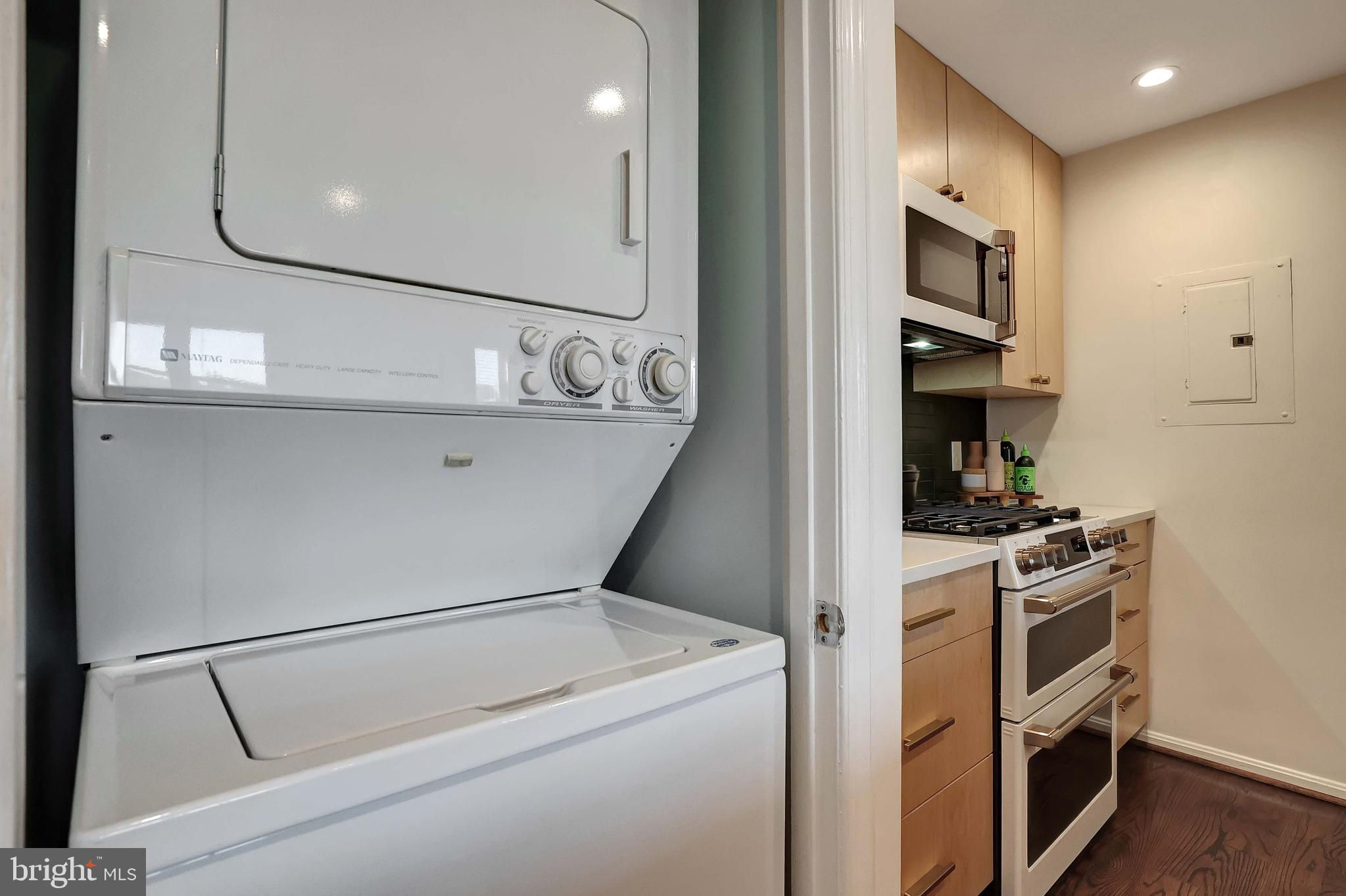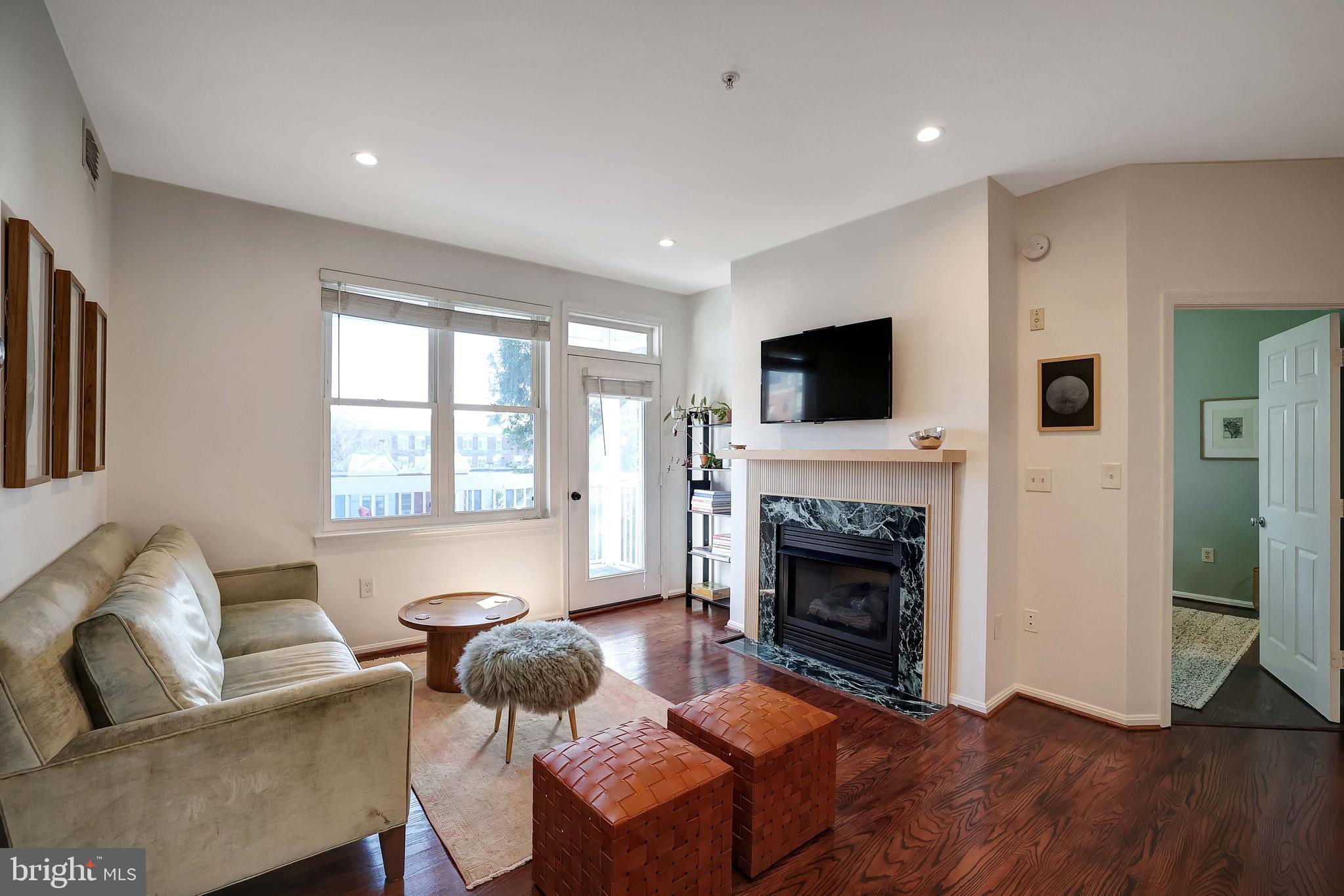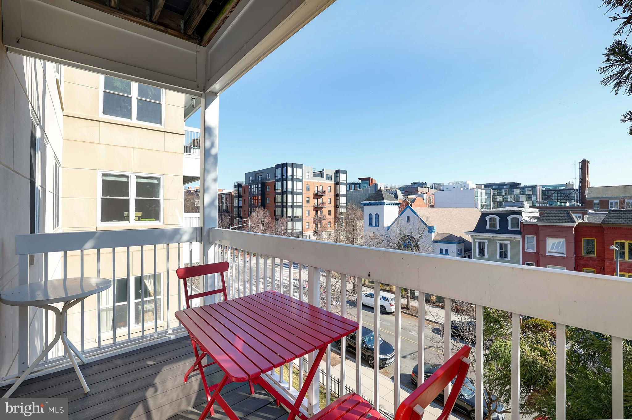 Welcome to this charming and vibrant 2-bedroom 2-bathroom residence in the heart of the U Street corridor. Spanning 877 square feet, this home effortlessly combines modern living with urban convenience. Step inside to discover a delightful space that boasts a 2021 kitchen renovation featuring top-of-the-line GE Cafe appliances, Ultracraft cabinets and a beautiful green Fireclay tile backsplash. The open-concept living area is accented by a convenient gas fireplace and Eastern exposures flooding the space with light. The in-unit washer dryer and hardwood floors throughout add to the high end feel. A split bedroom layout offers privacy and comfort while the large balcony presents the perfect spot to soak in the large shade trees and a stunning view over classic DC rowhomes. This condo also provides a suite of amenities that cater to your every need. Enjoy the convenience of a recently renovated gym with Pelotons, a media/recreation room and a huge roof deck with multiple seating areas for private moments or larger gatherings. The building also offers a fenced-in dog run for pet lovers and an on-site concierge provides an elevated experience. Do not miss the chance to tour this stunning property before someone else calls it "home".
