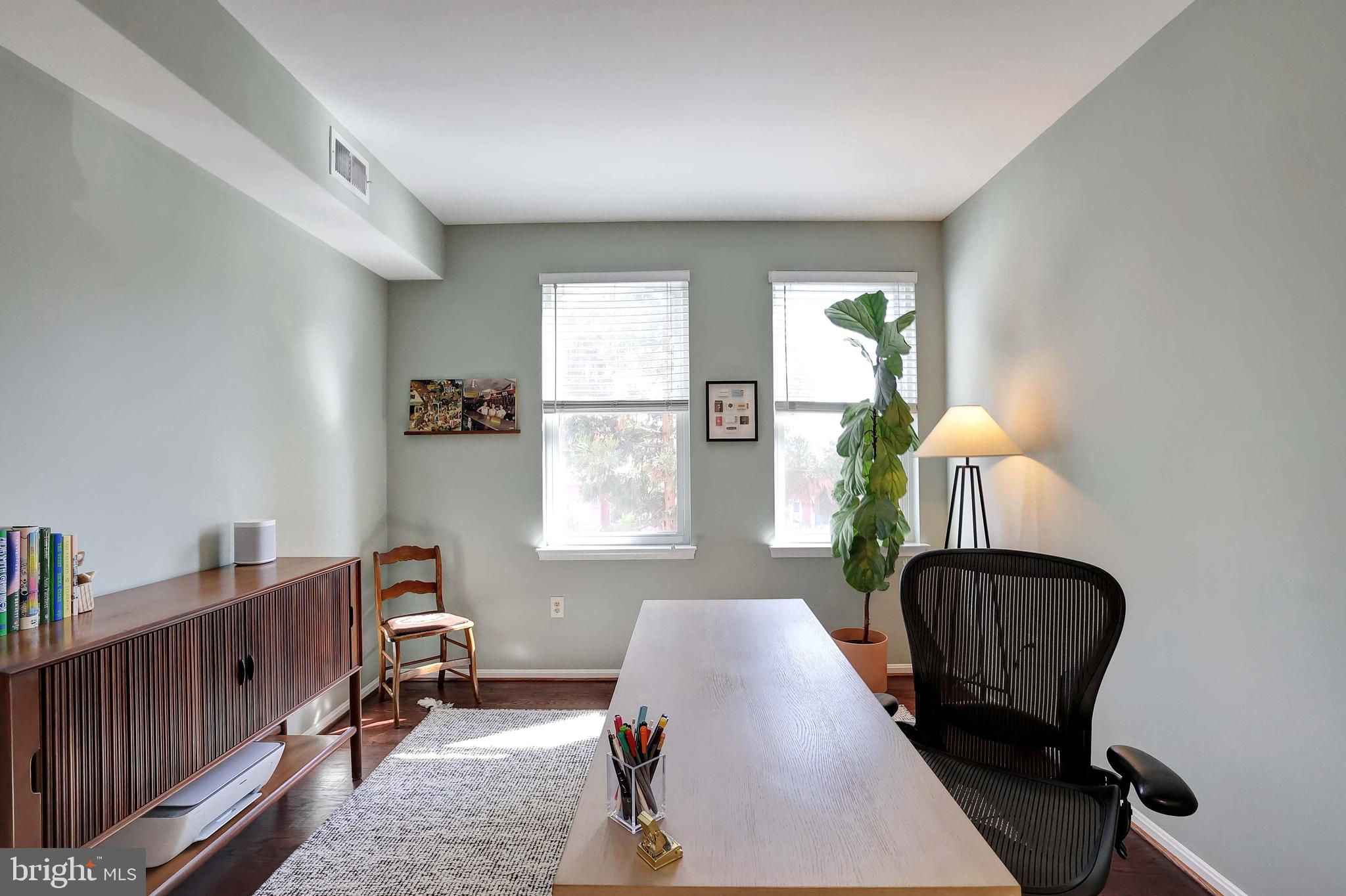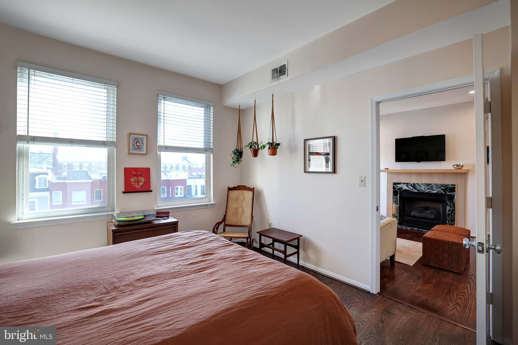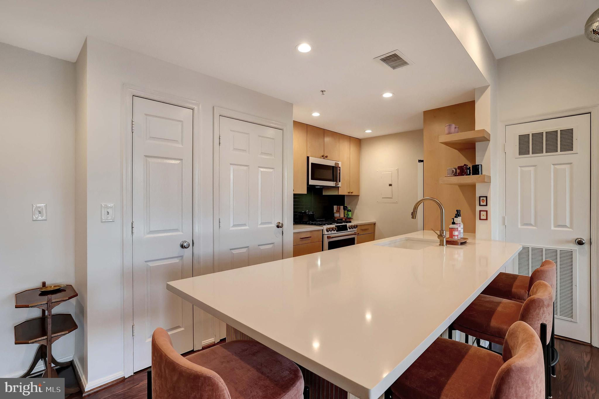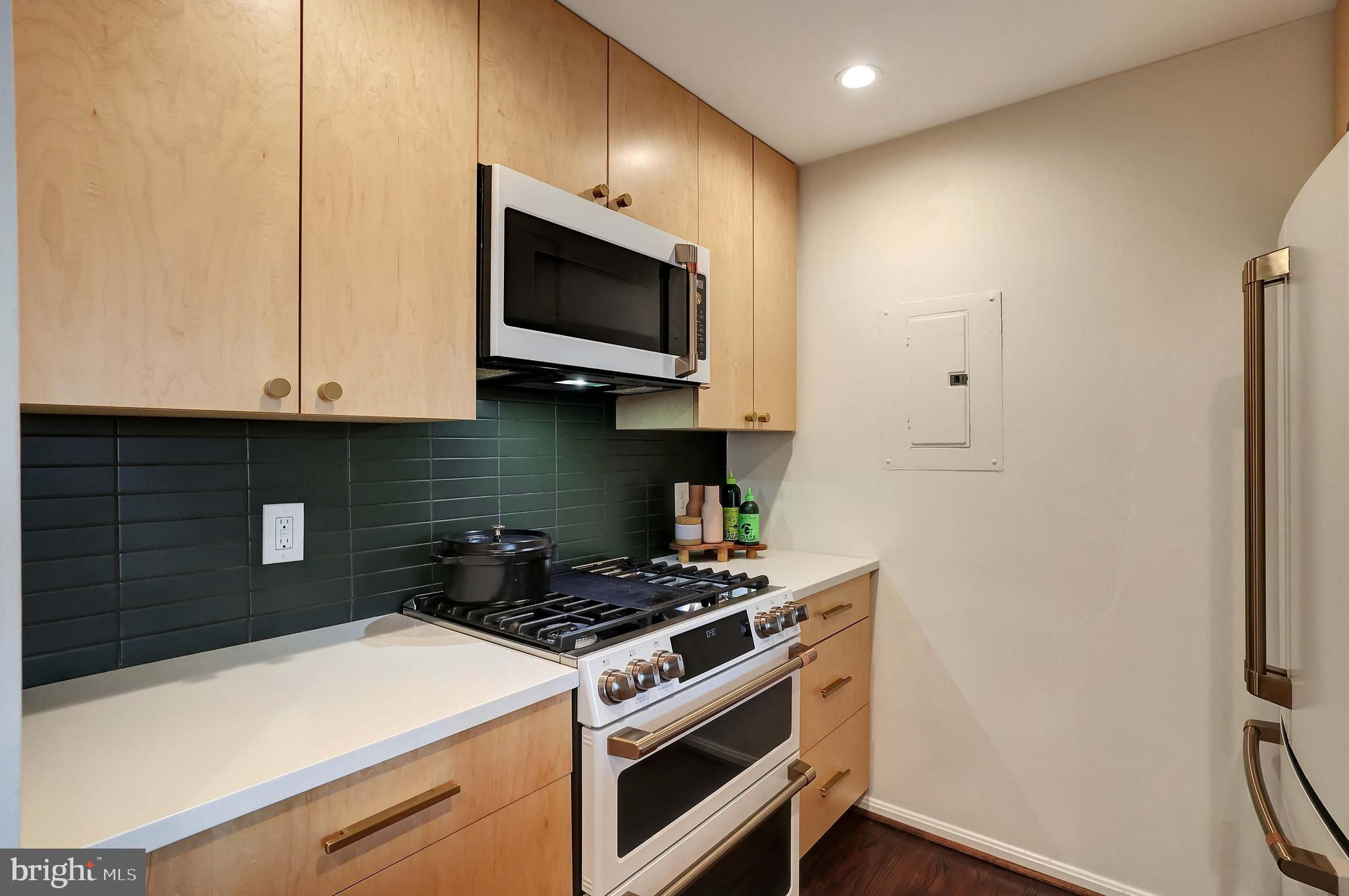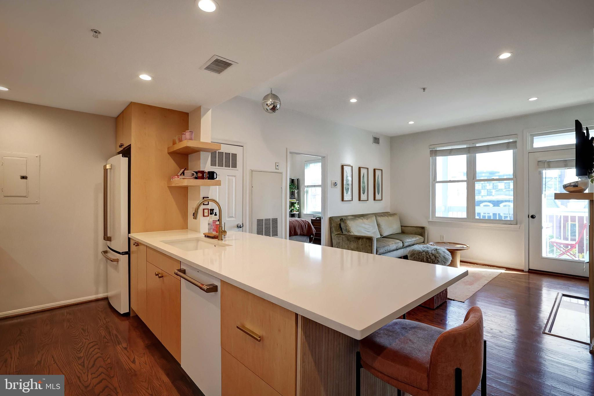 Welcome to this charming and vibrant 2-bedroom 2-bathroom residence in the heart of the U Street corridor. Spanning 877 square feet, this home effortlessly combines modern living with urban convenience. Step inside to discover a delightful space that boasts a 2021 kitchen renovation featuring top-of-the-line GE Cafe appliances, Ultracraft cabinets and a beautiful green Fireclay tile backsplash. The open-concept living area is accented by a convenient gas fireplace and Eastern exposures flooding the space with light. The in-unit washer dryer and hardwood floors throughout add to the high end feel. A split bedroom layout offers privacy and comfort while the large balcony presents the perfect spot to soak in the large shade trees and a stunning view over classic DC rowhomes. This condo also provides a suite of amenities that cater to your every need. Enjoy the convenience of a recently renovated gym with Pelotons, a media/recreation room and a huge roof deck with multiple seating areas for private moments or larger gatherings. The building also offers a fenced-in dog run for pet lovers and an on-site concierge provides an elevated experience. Do not miss the chance to tour this stunning property before someone else calls it "home".