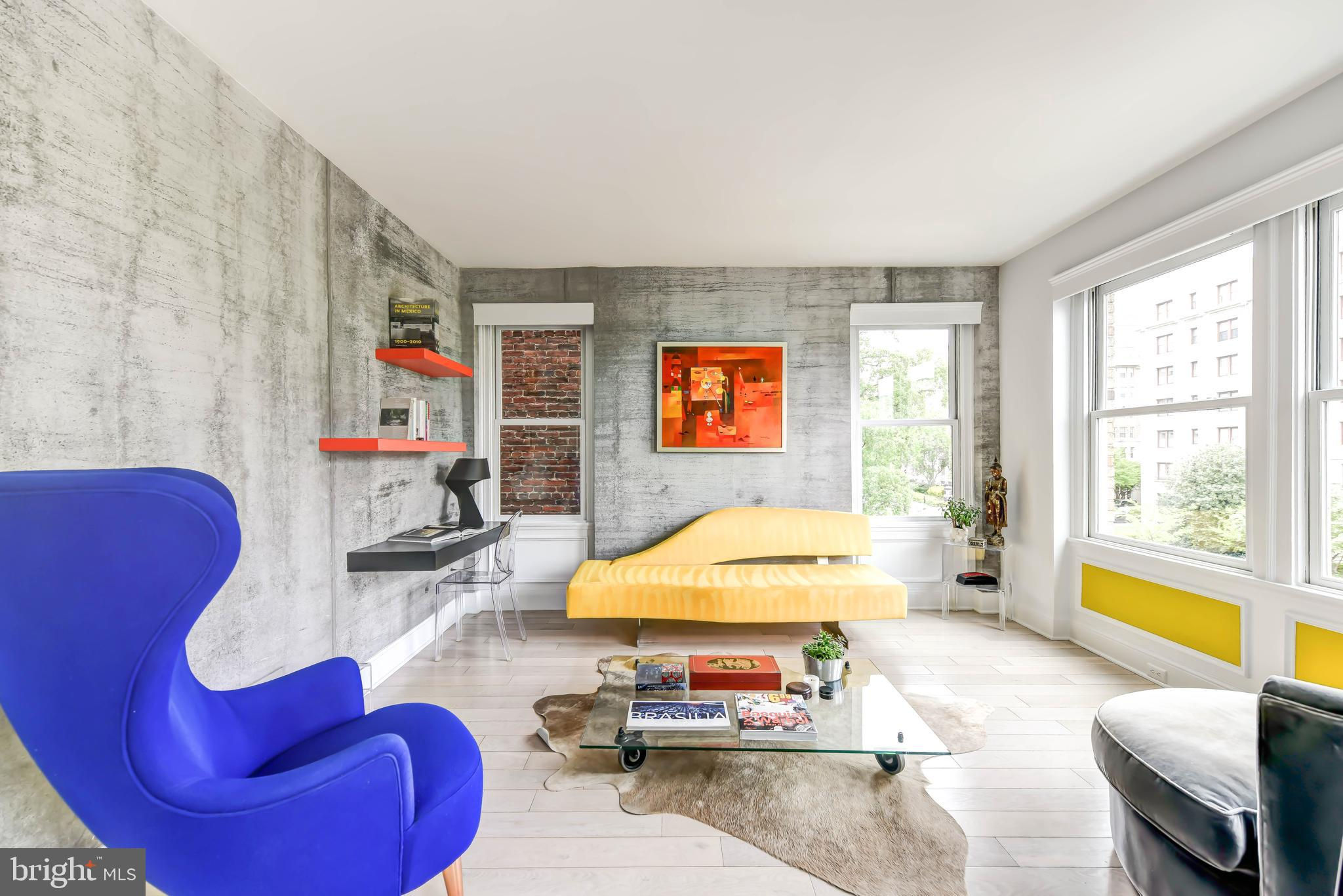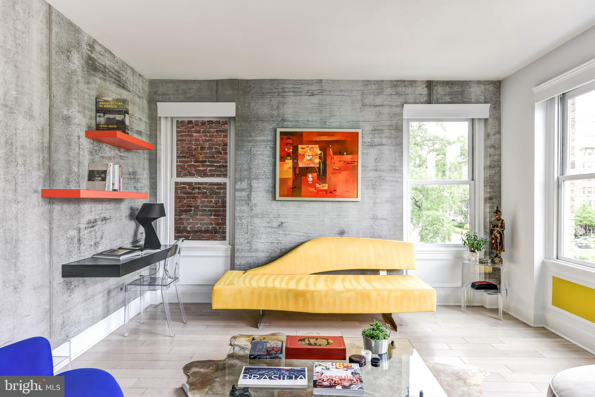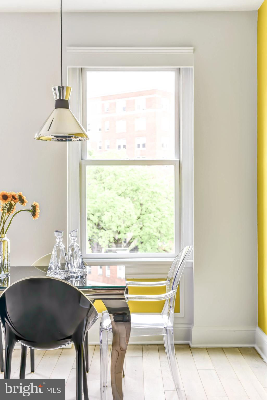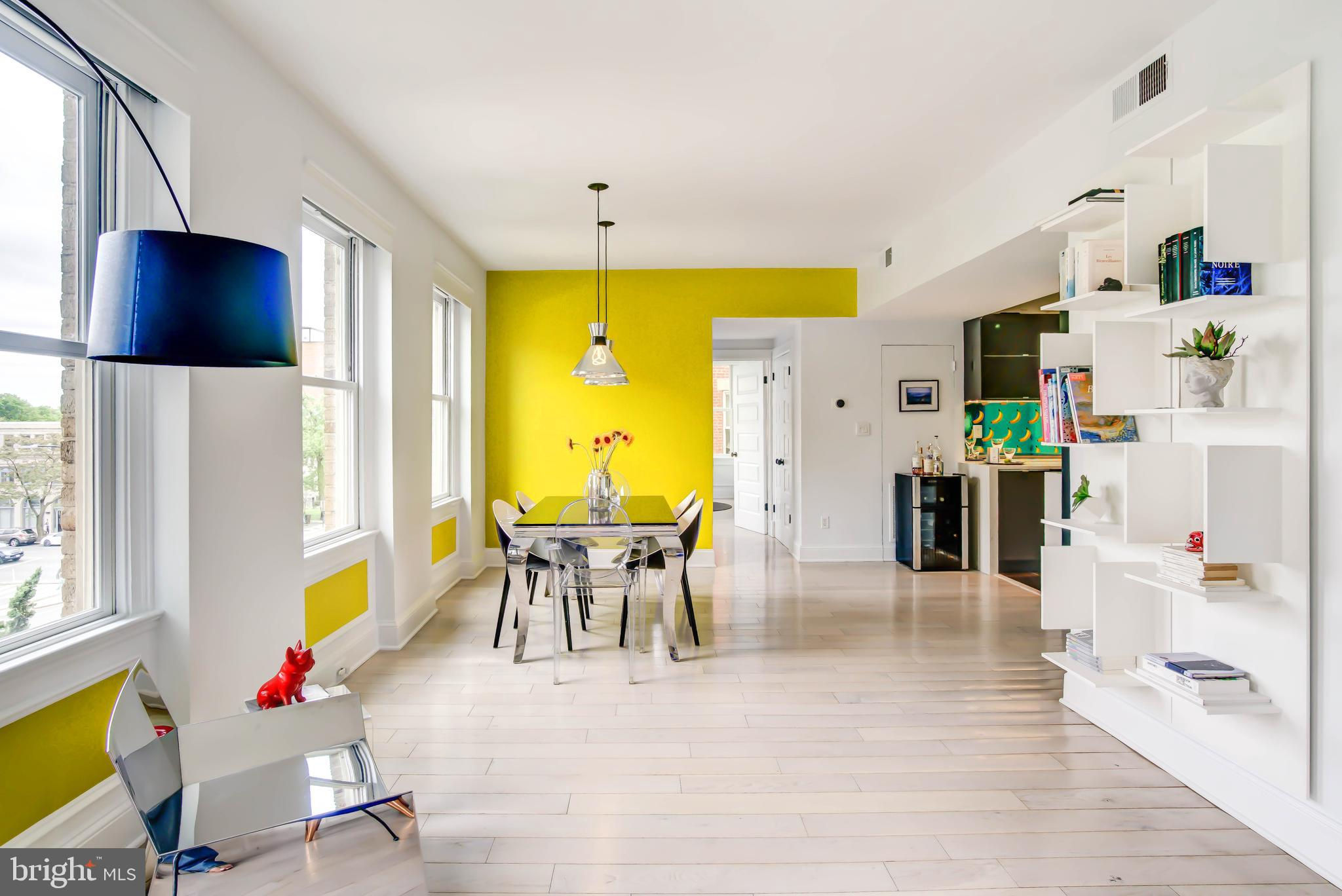 Paris meets NYC in this sensational, one-of-a-kind urban abode. Set high atop 16th Street in a Beaux Arts gem dating back to 1911, unit 300 spans this boutique building's entire eastern front facade with 14 windows capturing a panoramic view that includes the treetops of Meridian Hill Park, incredible morning sunrises and even the iconic Masonic Temple. If natural light feeds your soul, prepare to flourish here. This setting has been the muse for a series of design aficionados who have transformed this formerly two-bedroom, two-bathroom residence into a more open and elegant one-bedroom unit that still maintains the flexibility to easily convert back to a two-bedroom home should one desire it (see Documents Section for prospective 2BR plan). BRAND NEW HVAC INSTALLED. The current owner worked in collaboration with NYC design firm, Nemaworkshop, to reimagine the space once again by opening up the kitchen to the entry hall and dining area, installing 4" white oak floors throughout, adding custom wall coverings (including ConcreteWall- imported from Norway), replacing all 14 windows and adorning them with Hunter Douglas automated roller shades with blackouts in the primary, building out a fabulous mirrored wall in the primary that glides to reveal custom closets and a smartly designed, minimalist work station in the living room. Additional luxury features in the kitchen include a Wolf Induction cooktop, a Bertazzoni Wall Oven, and Quartz waterfall counters. The two spa-inspired baths feature Duravit sinks, Ann Sacks tile, and frameless glass shower enclosures set in teak wood. Every single detail of this unit has been designed to delight and this is an offering that you will not want to miss! 2008 16th Street's prime location lies at the intersection of several of the District's most sought-after neighborhoods- Dupont Circle, Adams Morgan, and the U Street, 14th Street & 17th Street Corridors. Every possible amenity is at your fingertips with exquisite restaurant and retail offerings, proximity to the grocery(Trader Joe's & Whole Foods), gyms ( 500 feet to Vida Fitness), Metro (.4mi to U Street/Green Line, and .7 to Dupont Circle/Red Line) and greenspace with majestic Meridian Hill Park just blocks away.