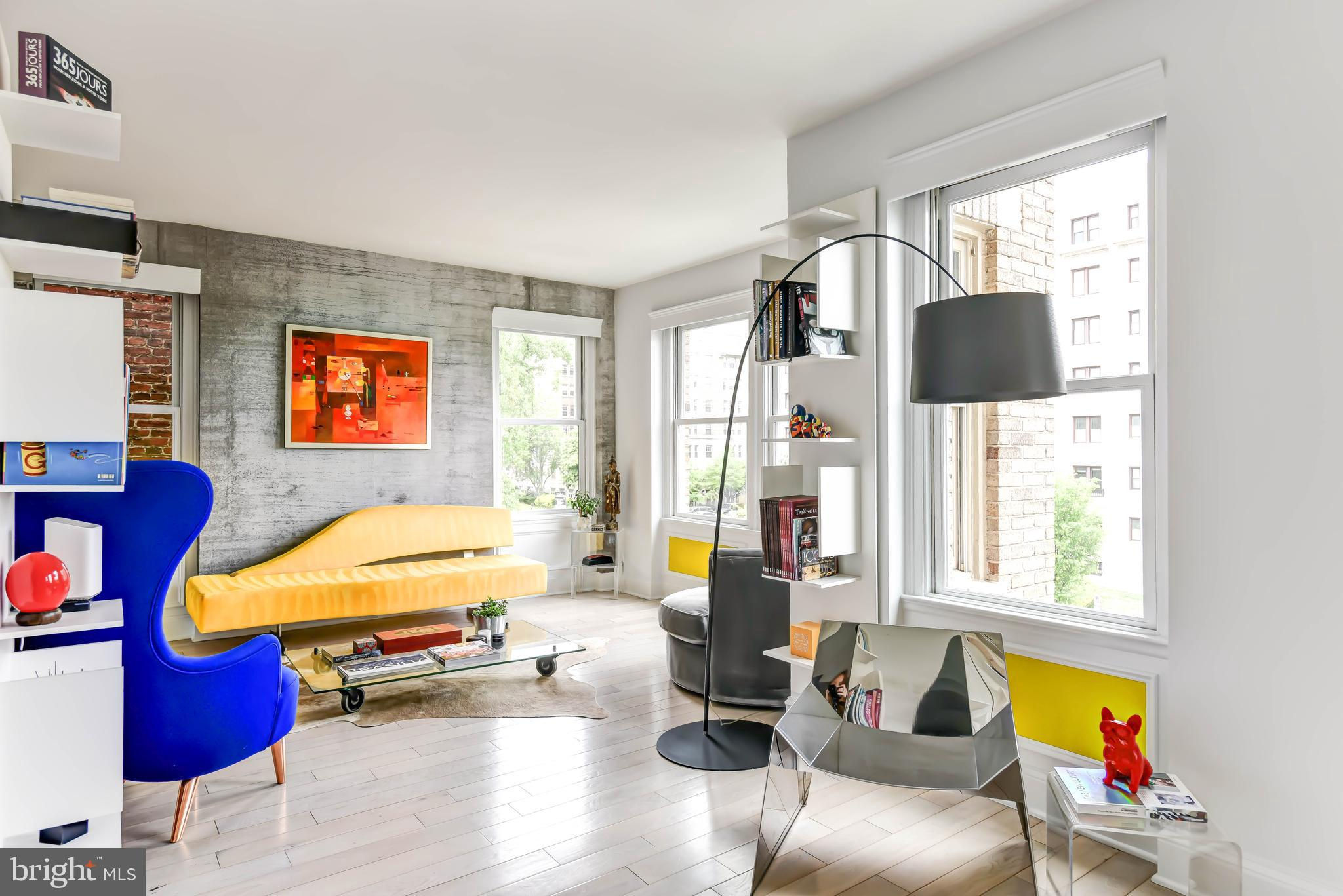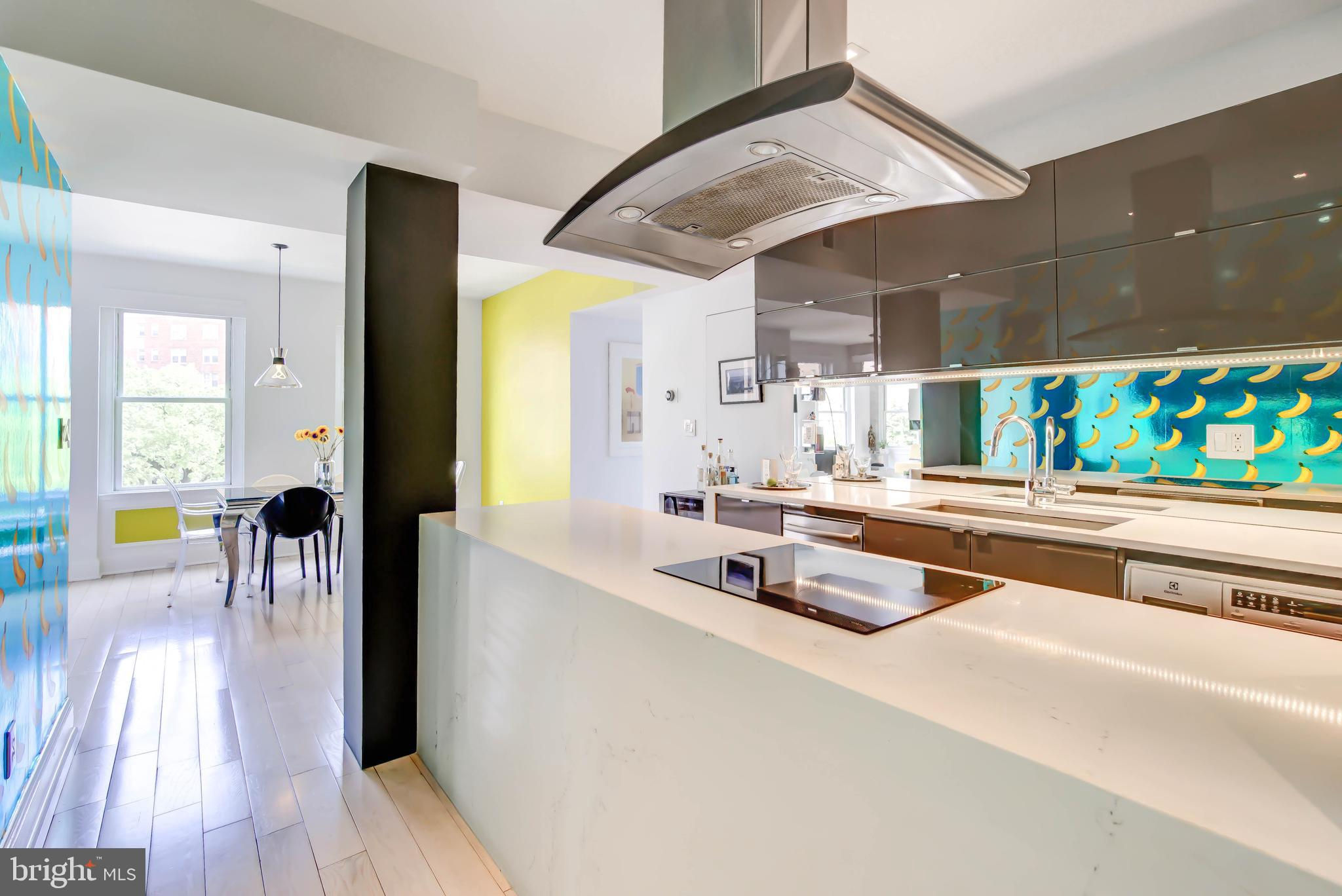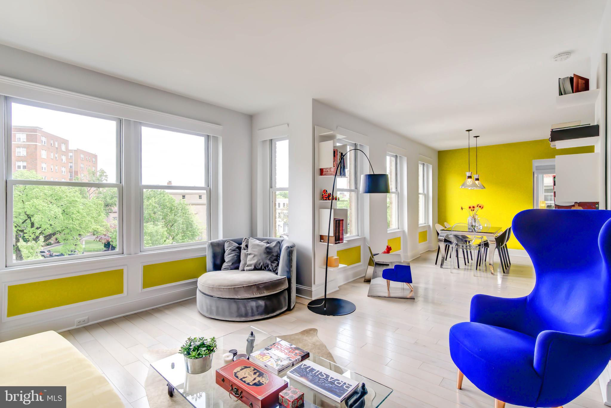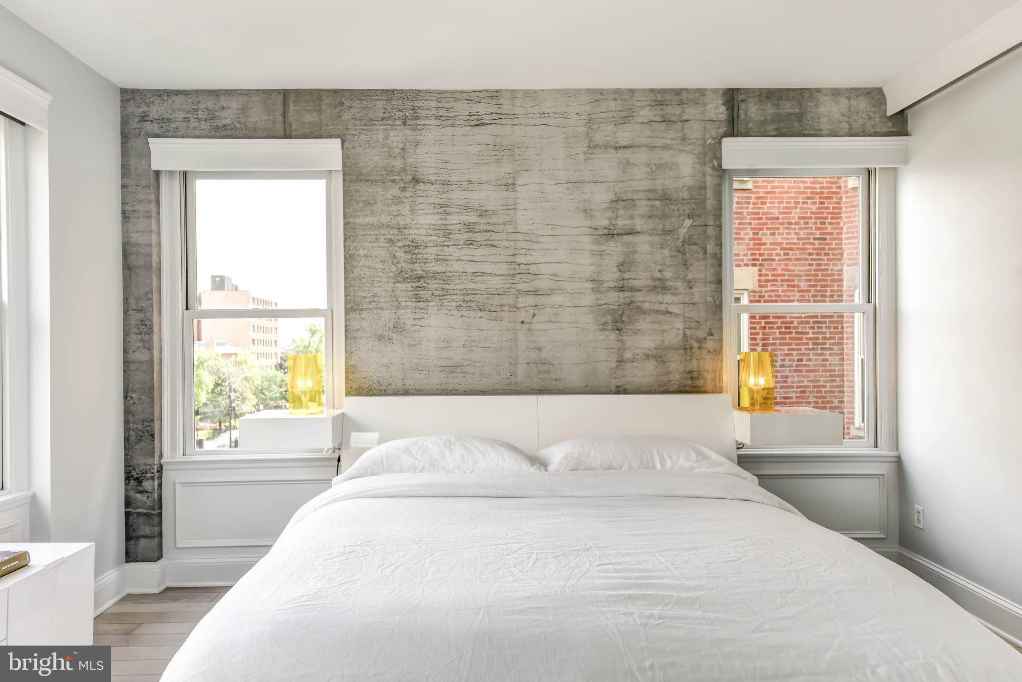 Paris meets NYC in this sensational, one-of-a-kind urban abode. Set high atop 16th Street in a Beaux Arts gem dating back to 1911, unit 300 spans this boutique building's entire eastern front facade with 14 windows capturing a panoramic view that includes the treetops of Meridian Hill Park, incredible morning sunrises and even the iconic Masonic Temple. If natural light feeds your soul, prepare to flourish here. This setting has been the muse for a series of design aficionados who have transformed this formerly two-bedroom, two-bathroom residence into a more open and elegant one-bedroom unit that still maintains the flexibility to easily convert back to a two-bedroom home should one desire it (see Documents Section for prospective 2BR plan). BRAND NEW HVAC INSTALLED. The current owner worked in collaboration with NYC design firm, Nemaworkshop, to reimagine the space once again by opening up the kitchen to the entry hall and dining area, installing 4" white oak floors throughout, adding custom wall coverings (including ConcreteWall- imported from Norway), replacing all 14 windows and adorning them with Hunter Douglas automated roller shades with blackouts in the primary, building out a fabulous mirrored wall in the primary that glides to reveal custom closets and a smartly designed, minimalist work station in the living room. Additional luxury features in the kitchen include a Wolf Induction cooktop, a Bertazzoni Wall Oven, and Quartz waterfall counters. The two spa-inspired baths feature Duravit sinks, Ann Sacks tile, and frameless glass shower enclosures set in teak wood. Every single detail of this unit has been designed to delight and this is an offering that you will not want to miss! 2008 16th Street's prime location lies at the intersection of several of the District's most sought-after neighborhoods- Dupont Circle, Adams Morgan, and the U Street, 14th Street & 17th Street Corridors. Every possible amenity is at your fingertips with exquisite restaurant and retail offerings, proximity to the grocery(Trader Joe's & Whole Foods), gyms ( 500 feet to Vida Fitness), Metro (.4mi to U Street/Green Line, and .7 to Dupont Circle/Red Line) and greenspace with majestic Meridian Hill Park just blocks away.
