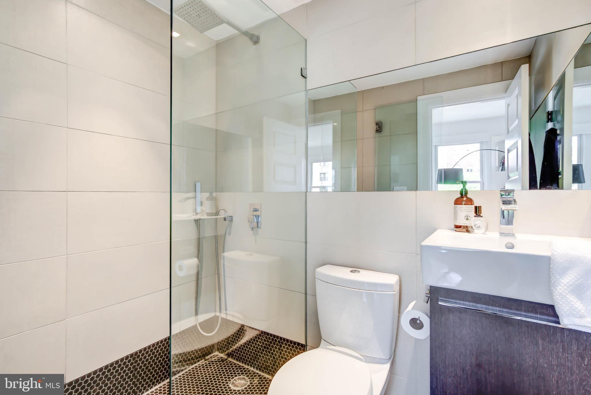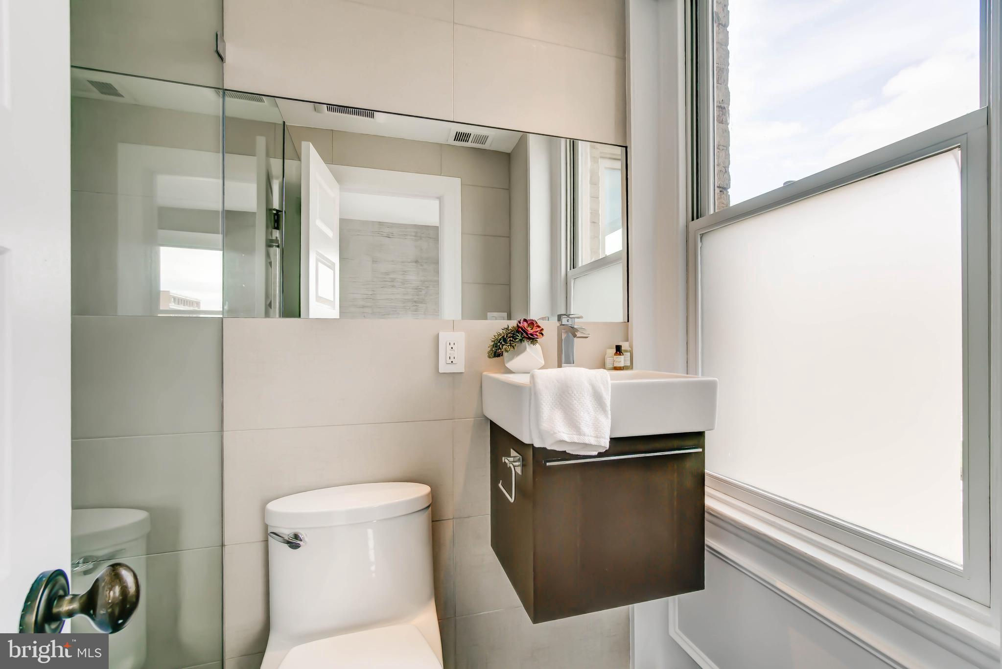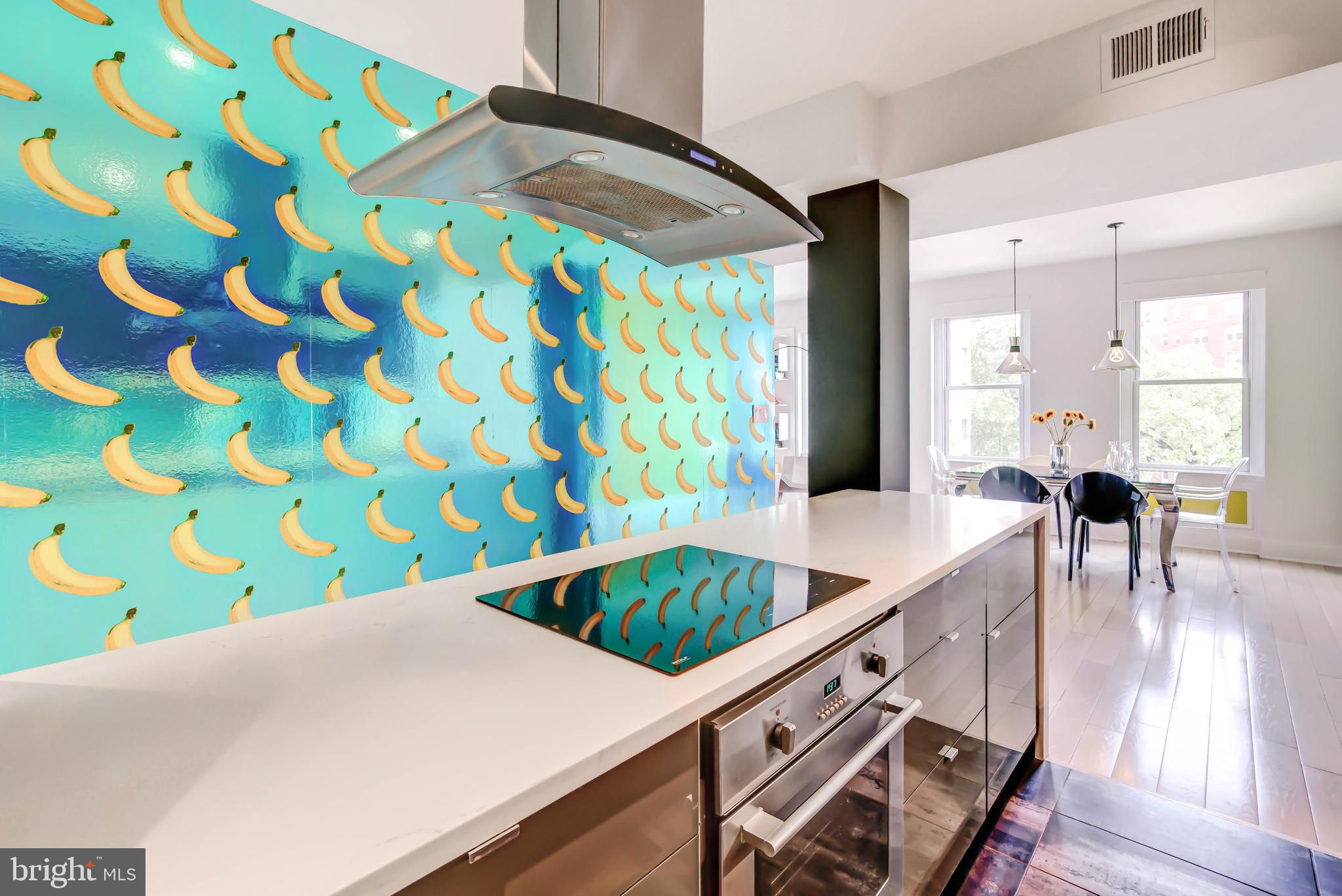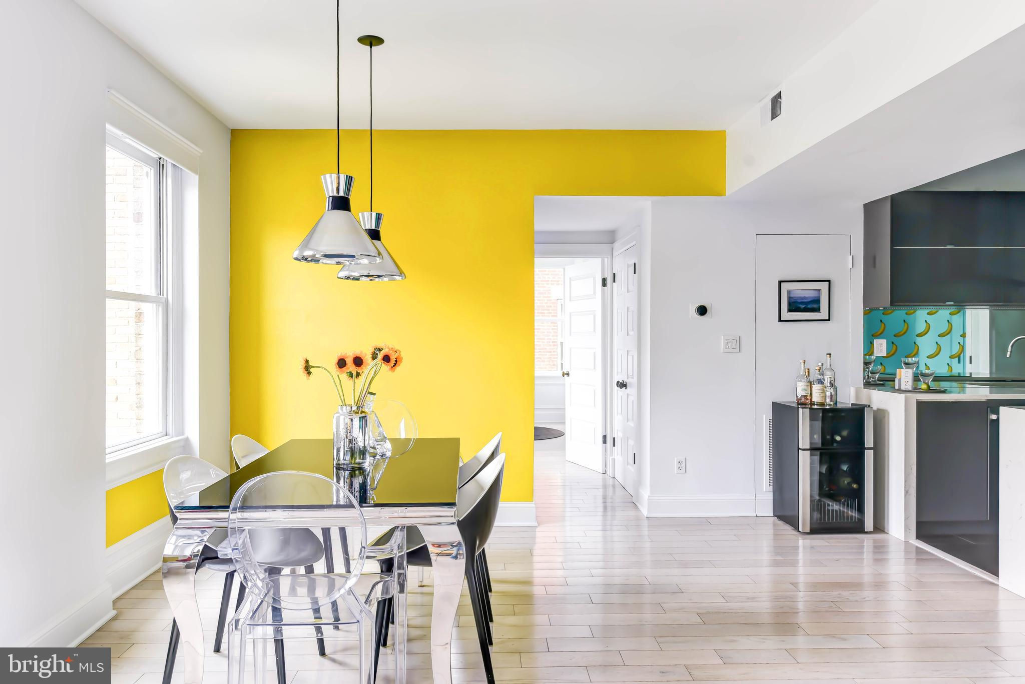 Paris meets NYC in this sensational, one-of-a-kind urban abode. Set high atop 16th Street in a Beaux Arts gem dating back to 1911, unit 300 spans this boutique building's entire eastern front facade with 14 windows capturing a panoramic view that includes the treetops of Meridian Hill Park, incredible morning sunrises and even the iconic Masonic Temple. If natural light feeds your soul, prepare to flourish here. This setting has been the muse for a series of design aficionados who have transformed this formerly two-bedroom, two-bathroom residence into a more open and elegant one-bedroom unit that still maintains the flexibility to easily convert back to a two-bedroom home should one desire it (see Documents Section for prospective 2BR plan). BRAND NEW HVAC INSTALLED. The current owner worked in collaboration with NYC design firm, Nemaworkshop, to reimagine the space once again by opening up the kitchen to the entry hall and dining area, installing 4" white oak floors throughout, adding custom wall coverings (including ConcreteWall- imported from Norway), replacing all 14 windows and adorning them with Hunter Douglas automated roller shades with blackouts in the primary, building out a fabulous mirrored wall in the primary that glides to reveal custom closets and a smartly designed, minimalist work station in the living room. Additional luxury features in the kitchen include a Wolf Induction cooktop, a Bertazzoni Wall Oven, and Quartz waterfall counters. The two spa-inspired baths feature Duravit sinks, Ann Sacks tile, and frameless glass shower enclosures set in teak wood. Every single detail of this unit has been designed to delight and this is an offering that you will not want to miss! 2008 16th Street's prime location lies at the intersection of several of the District's most sought-after neighborhoods- Dupont Circle, Adams Morgan, and the U Street, 14th Street & 17th Street Corridors. Every possible amenity is at your fingertips with exquisite restaurant and retail offerings, proximity to the grocery(Trader Joe's & Whole Foods), gyms ( 500 feet to Vida Fitness), Metro (.4mi to U Street/Green Line, and .7 to Dupont Circle/Red Line) and greenspace with majestic Meridian Hill Park just blocks away.