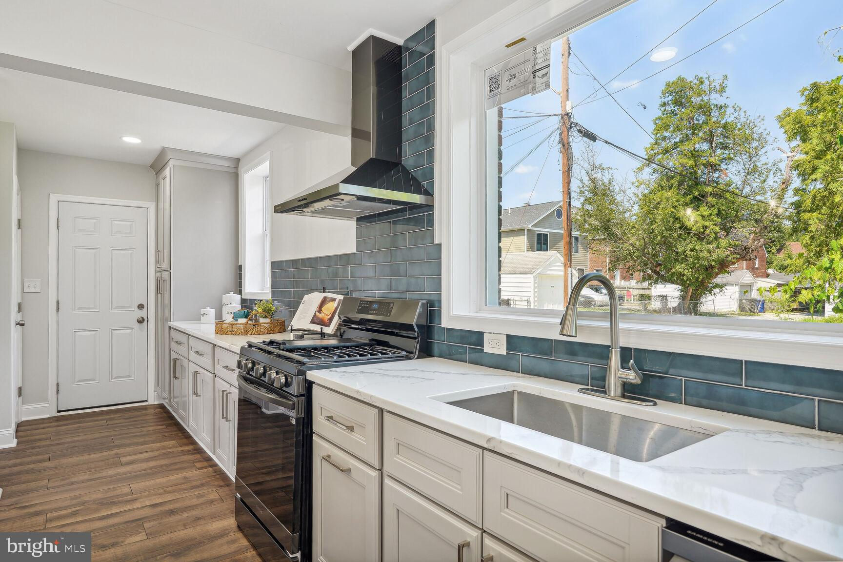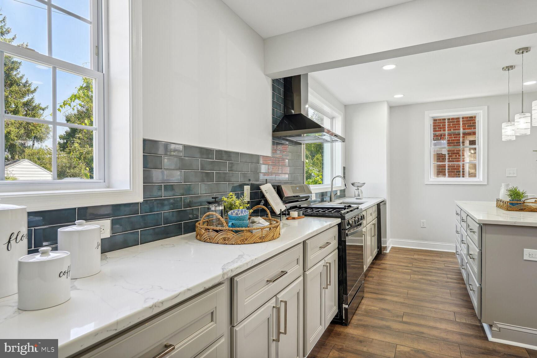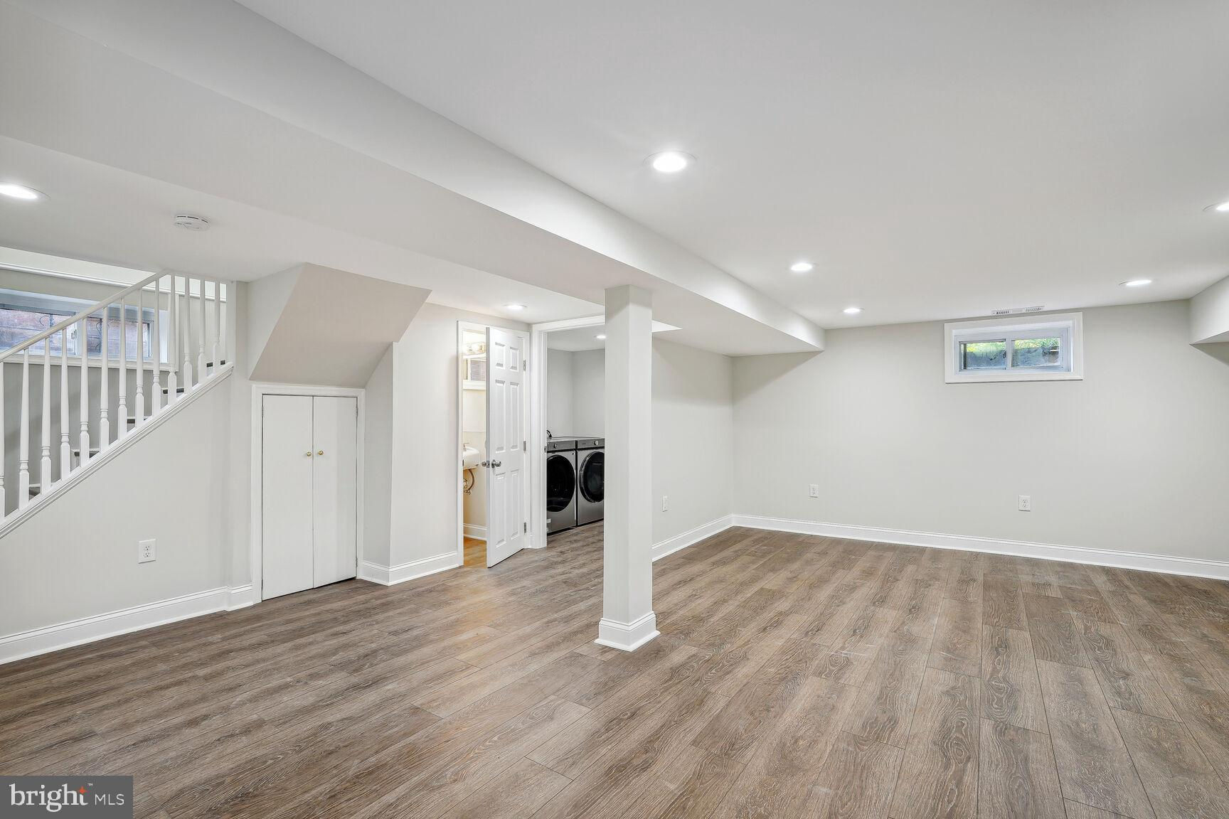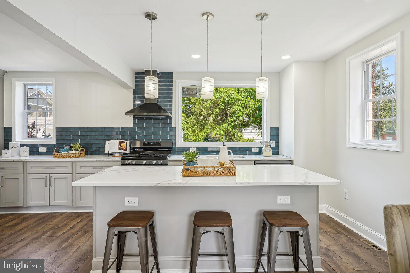 COMPLETELY RENOVATED BEAUTIFUL HOME WITH GREAT CURB APPEAL WITH DEEP YARD AND DETACHED GARAGE! Quite street with relaxing front porch * New LVP flooring throughout * Stunning open kitchen with stainless steel appliances, quartz counters with glass tile backsplash, gray cabinets with soft close hardware, kitchen island with seating and pendant lighting, views from kitchen sink to back yard, and open to the family room * Light filled family room with cozy wood fireplace * Convenient main level powder room * Main level walkout to side yard * Primary bedroom with spacious closet and private renovated bath * Two additional upper level bedrooms * Renovated upper level hall bath * Top floor fourth bedroom is a great teen suite or home office * Finished lower level recreation room with recessed lighting, windows, & convenient powder room * Laundry room with new washer and dryer with walk-out to back yard * Two storage rooms * New gas HVAC and water heater * Basement waterproofed and two new sump pumps * Great back yard with wonderful space! * Detached garage with electricity, automatic garage door opener, plus street parking * Great location with easy access to shops, restaurants, and employment areas * Plus more!!