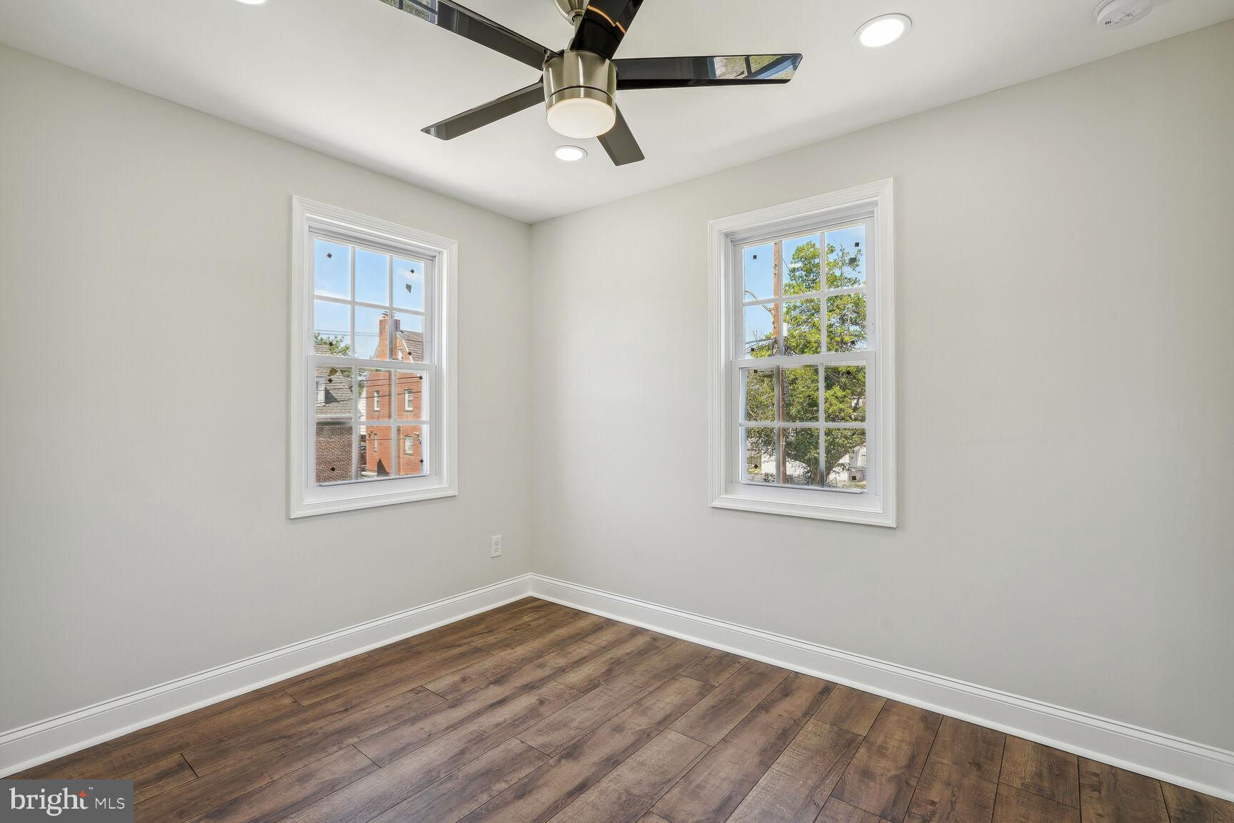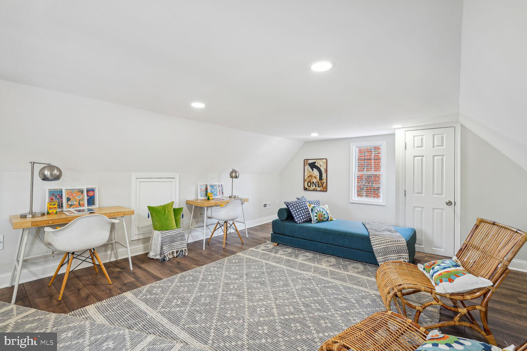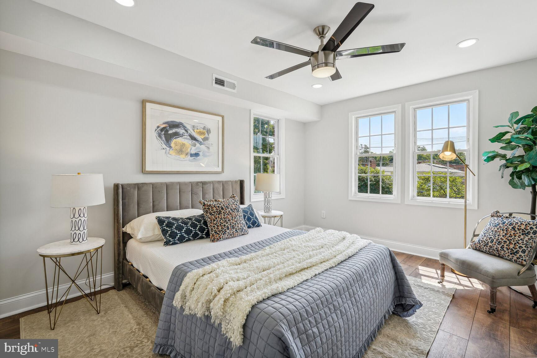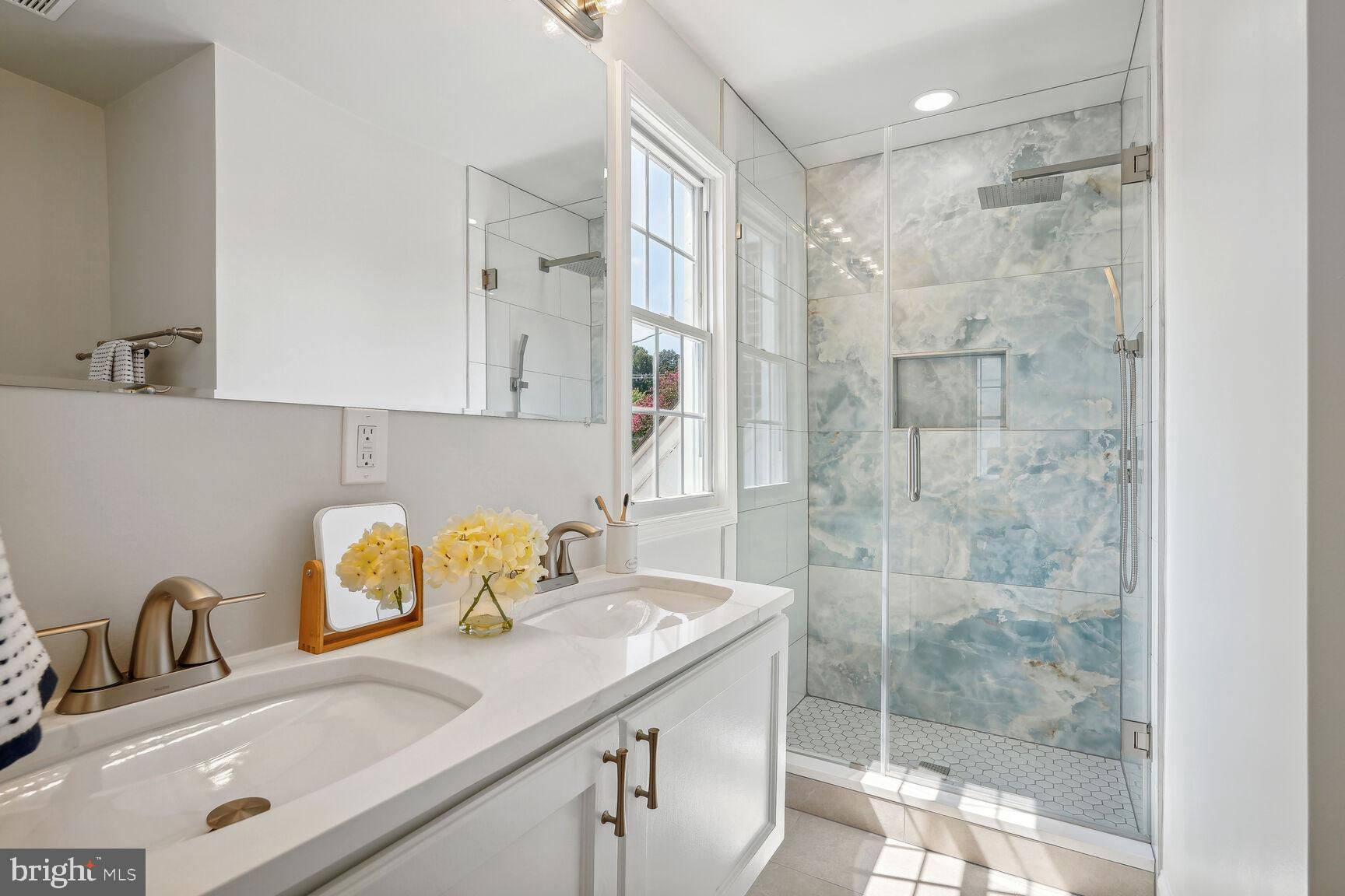 COMPLETELY RENOVATED BEAUTIFUL HOME WITH GREAT CURB APPEAL WITH DEEP YARD AND DETACHED GARAGE! Quite street with relaxing front porch * New LVP flooring throughout * Stunning open kitchen with stainless steel appliances, quartz counters with glass tile backsplash, gray cabinets with soft close hardware, kitchen island with seating and pendant lighting, views from kitchen sink to back yard, and open to the family room * Light filled family room with cozy wood fireplace * Convenient main level powder room * Main level walkout to side yard * Primary bedroom with spacious closet and private renovated bath * Two additional upper level bedrooms * Renovated upper level hall bath * Top floor fourth bedroom is a great teen suite or home office * Finished lower level recreation room with recessed lighting, windows, & convenient powder room * Laundry room with new washer and dryer with walk-out to back yard * Two storage rooms * New gas HVAC and water heater * Basement waterproofed and two new sump pumps * Great back yard with wonderful space! * Detached garage with electricity, automatic garage door opener, plus street parking * Great location with easy access to shops, restaurants, and employment areas * Plus more!!