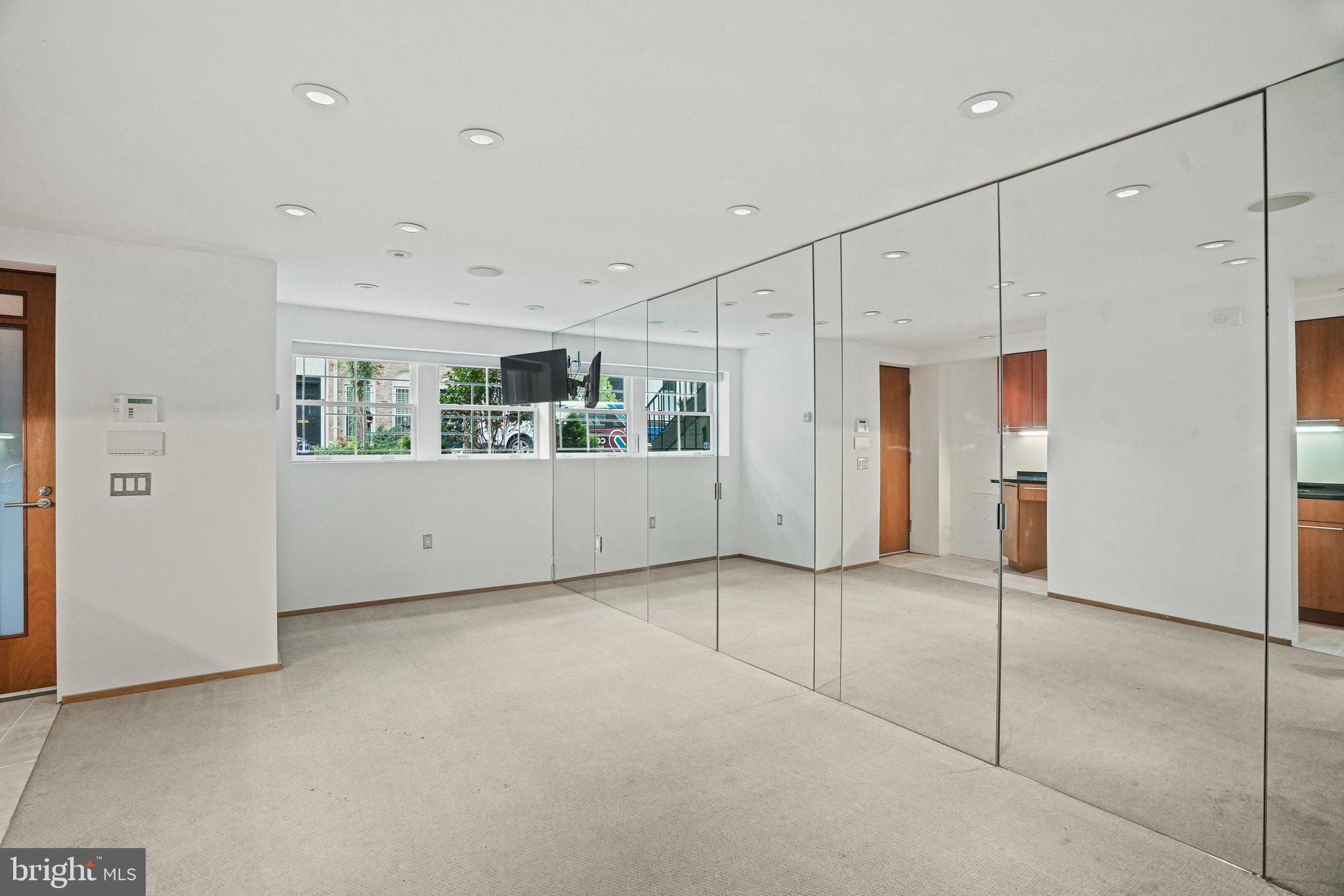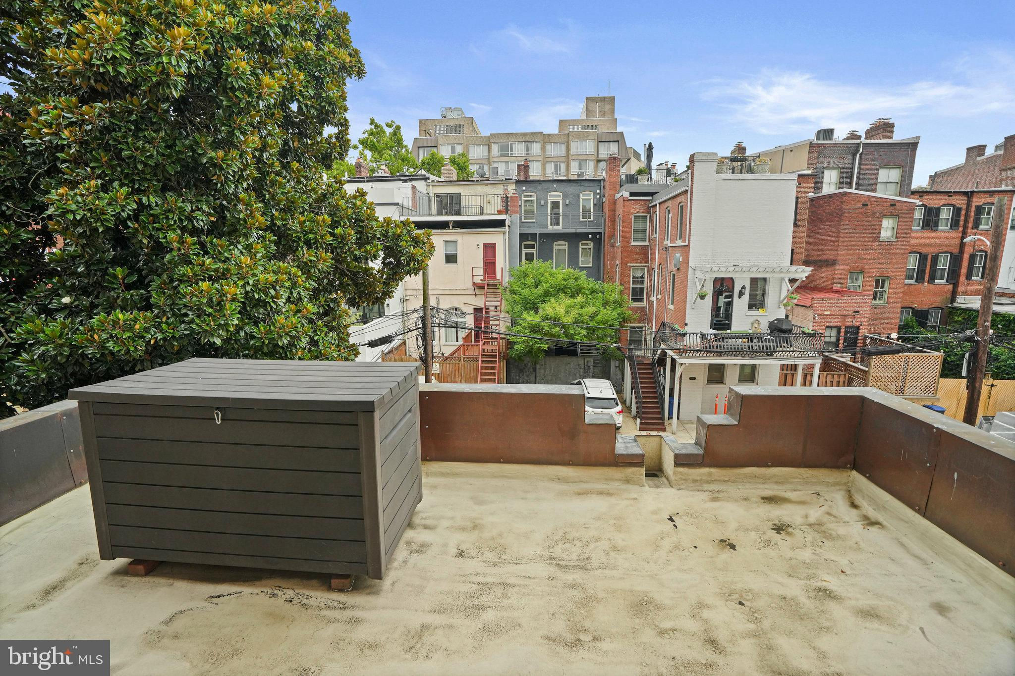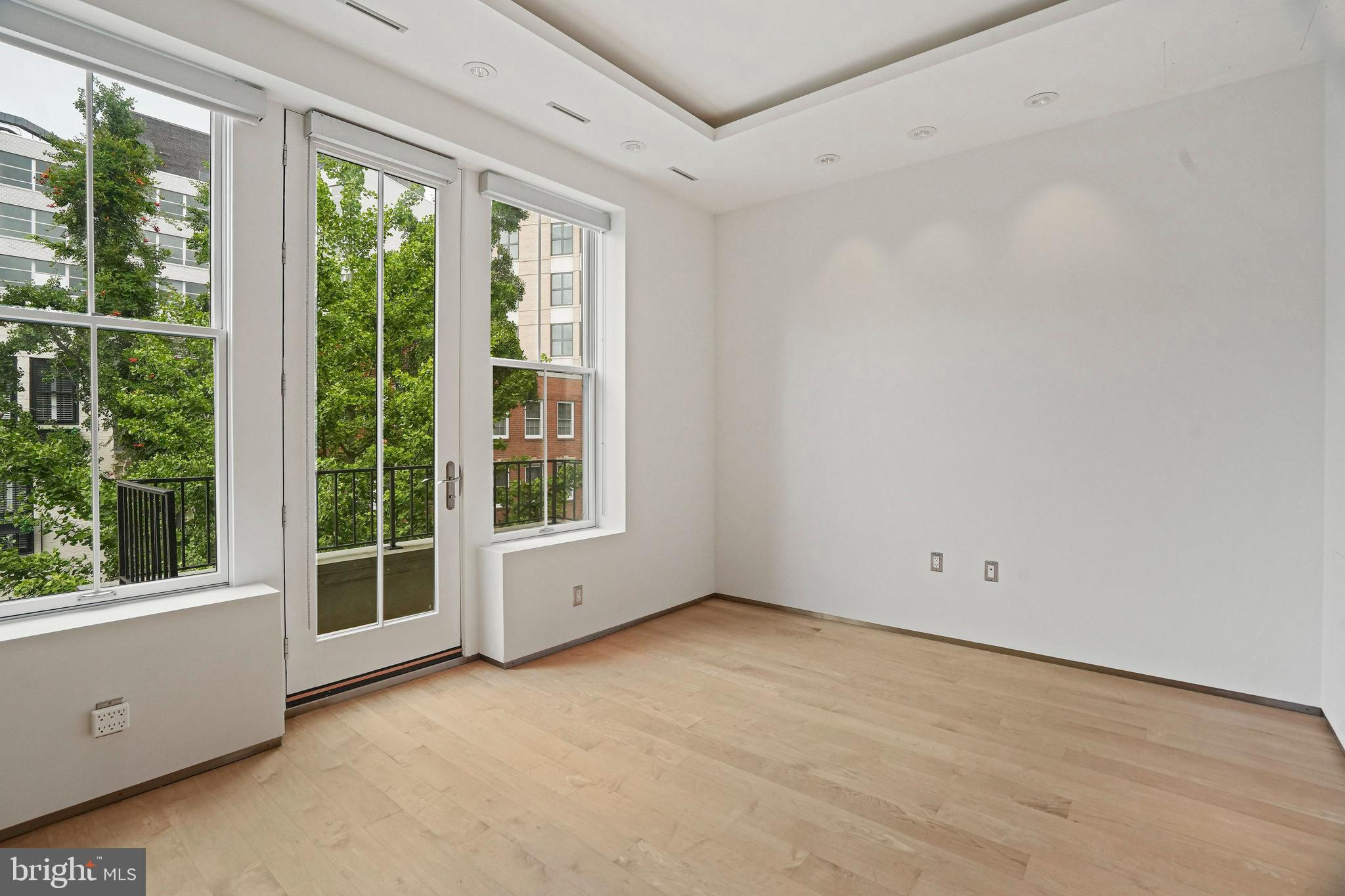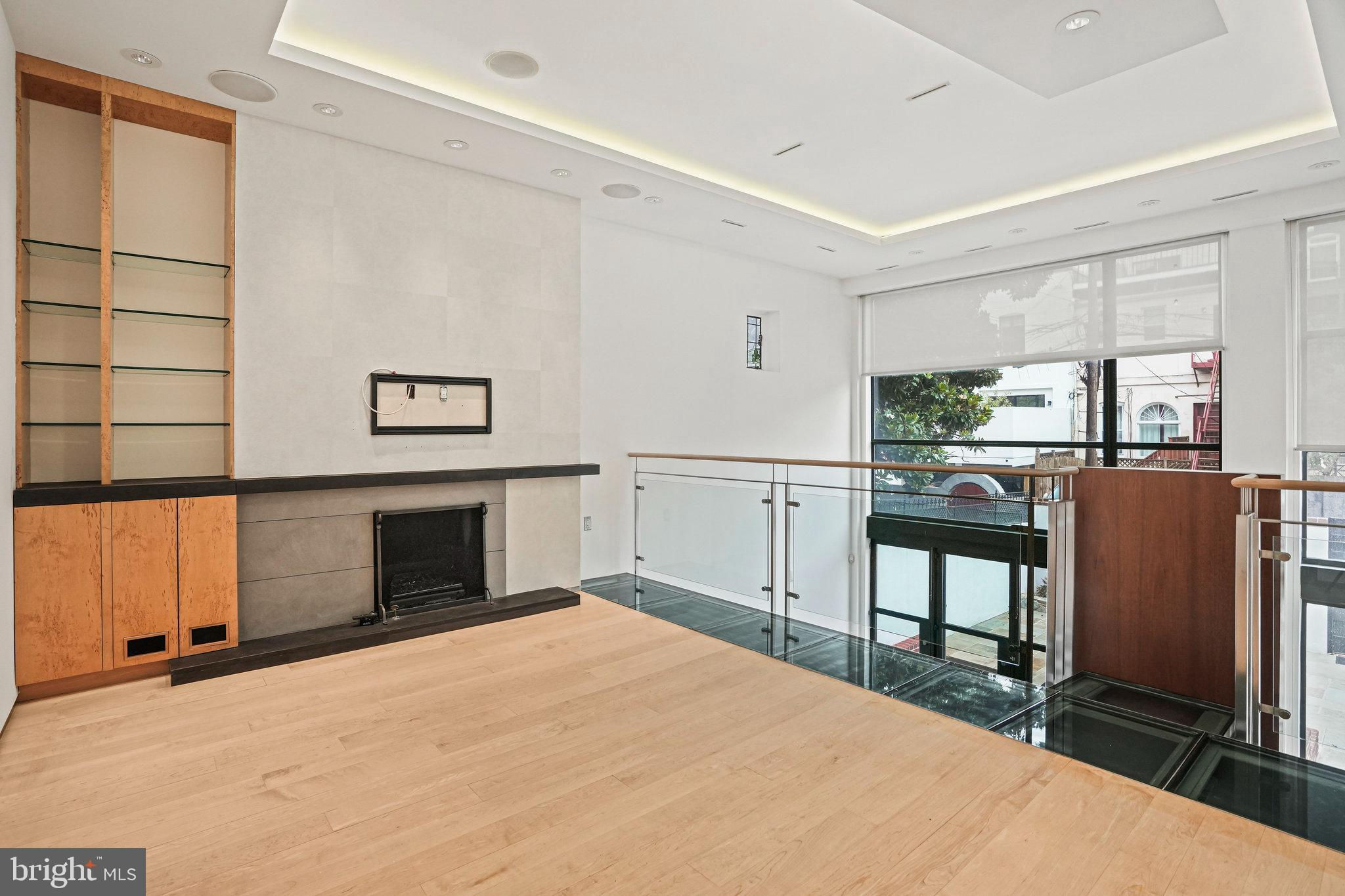 Discover a luxurious retreat at 2016 Hillyer Place, nestled in the historic Dupont Circle neighborhood. Originally built in 1897 and meticulously updated in 2005, this contemporary rowhome boasts an abundance of natural light and modern elegance. The open living room is a vision of modern design with crisp lines, wood floors, built-ins, a contemporary bay window, and custom blinds. A dramatic steel and glass staircase, crowned with an enormous skylight, adds a breathtaking element to the home. The family room, with its built-ins, gas fireplace, and wood floors overlooks a stunning kitchen and dining area. The sleek Poggenpohl kitchen is a chef's dream, featuring a Gaggenau gas cooktop with grill, wall oven, Miele coffee/espresso maker and dishwasher, Subzero refrigerator, granite and stainless counters, and a gas fireplace. The two-story dining area opens onto an expansive slate patio with a gas line for grilling and access to rear parking, offering a private urban oasis. This level also includes a gym with mirrored closets, a kitchenette, lots of additional storage, and laundry facilities. Upstairs, the home features three bedrooms. The primary suite is a tranquil haven with extensive closet space, a built-in bed, a large bath with a skylight, and a gas fireplace. The second bedroom offers an en-suite bathroom, wall of closets, and Juliet balcony. The third bedroom includes a gas fireplace, built-in shelving and desk, and a terrace. This exquisite home is located just steps from Dupont Circle for convenient access to shopping, dining, retail and the Dupont Circle metro station. The home has been freshly painted and has a brand new dual zone HVAC system. One off-street parking space is included.