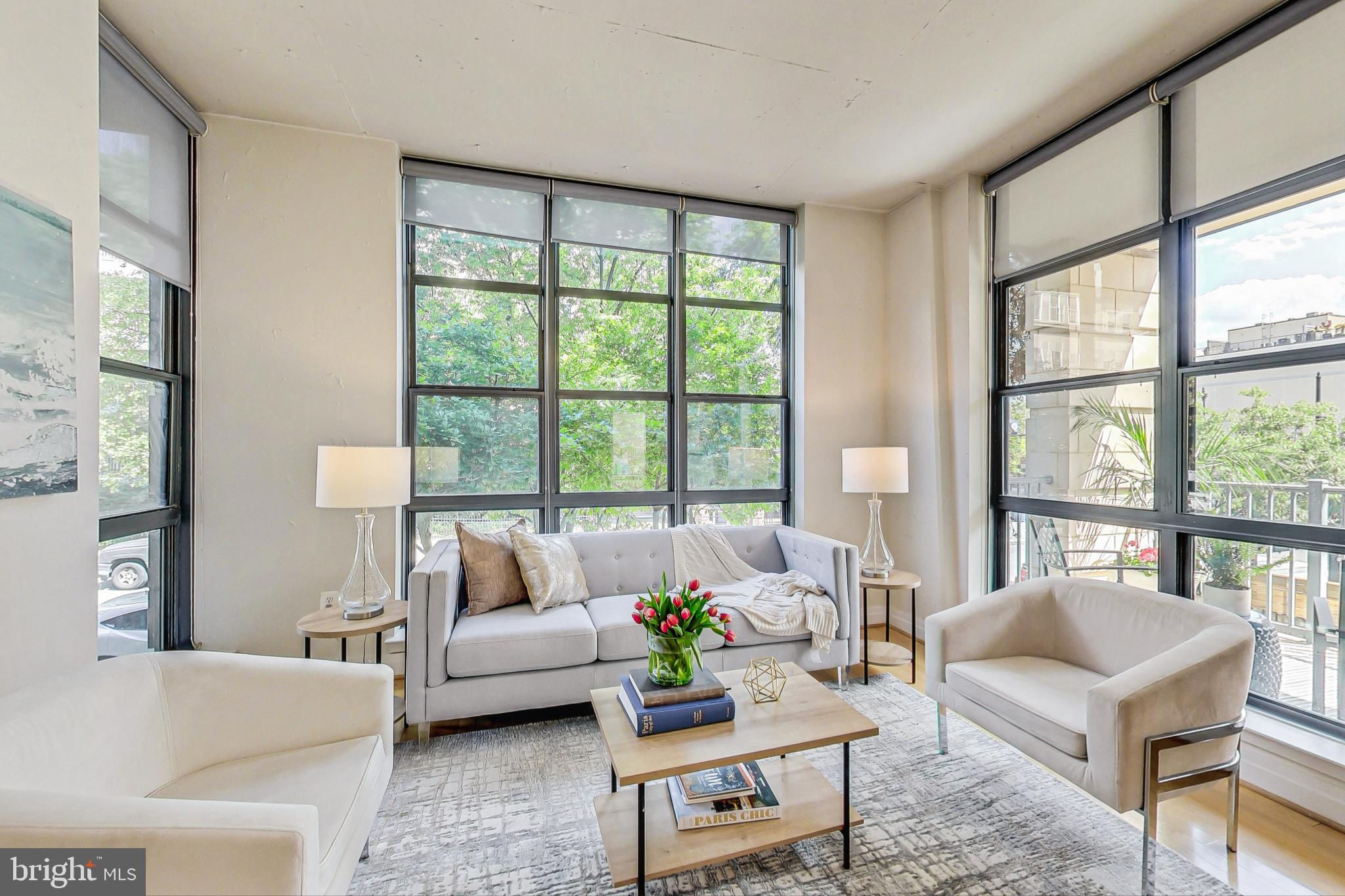 UNIT IS ON THE SECOND FLOOR! Make U Street your street with this beautifully designed 2BR/2BA condo. With a chef-style kitchen complete with granite countertops and gas range and 2 bedroom suites separated by an open-concept dining room/ living room, this condo is perfect for entertaining guests. Tranquility awaits in the details: floor-to-ceiling windows, gleaming hardwood floors, great closets and a large private balcony. Amenities include a fitness center, full-time front desk, and a separately deeded garage parking spot. Pets are welcome, too! Walk to a Green Line Metro station, acclaimed bars and restaurants, and so much more. With this condo, you make no compromises in your urban adventure!