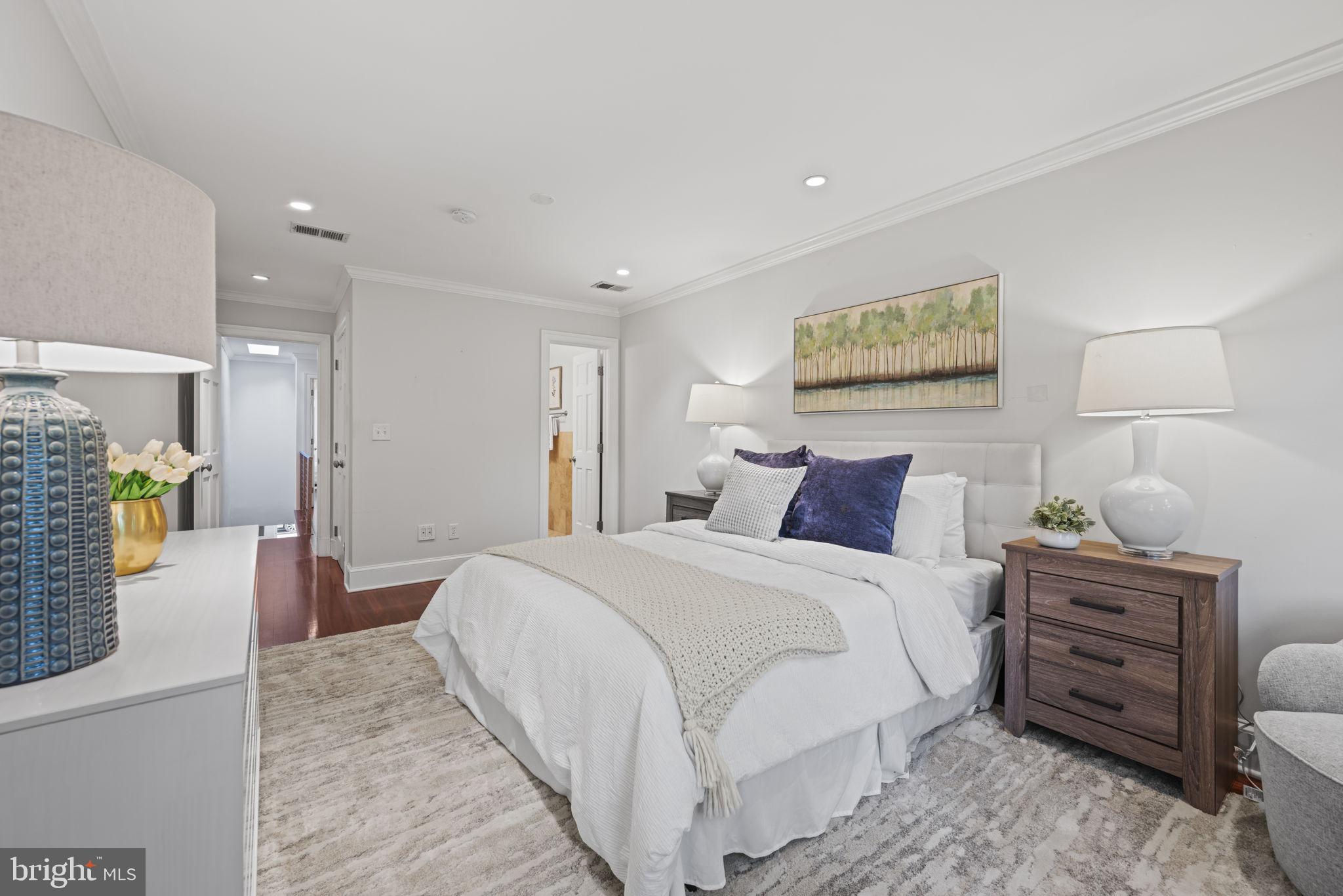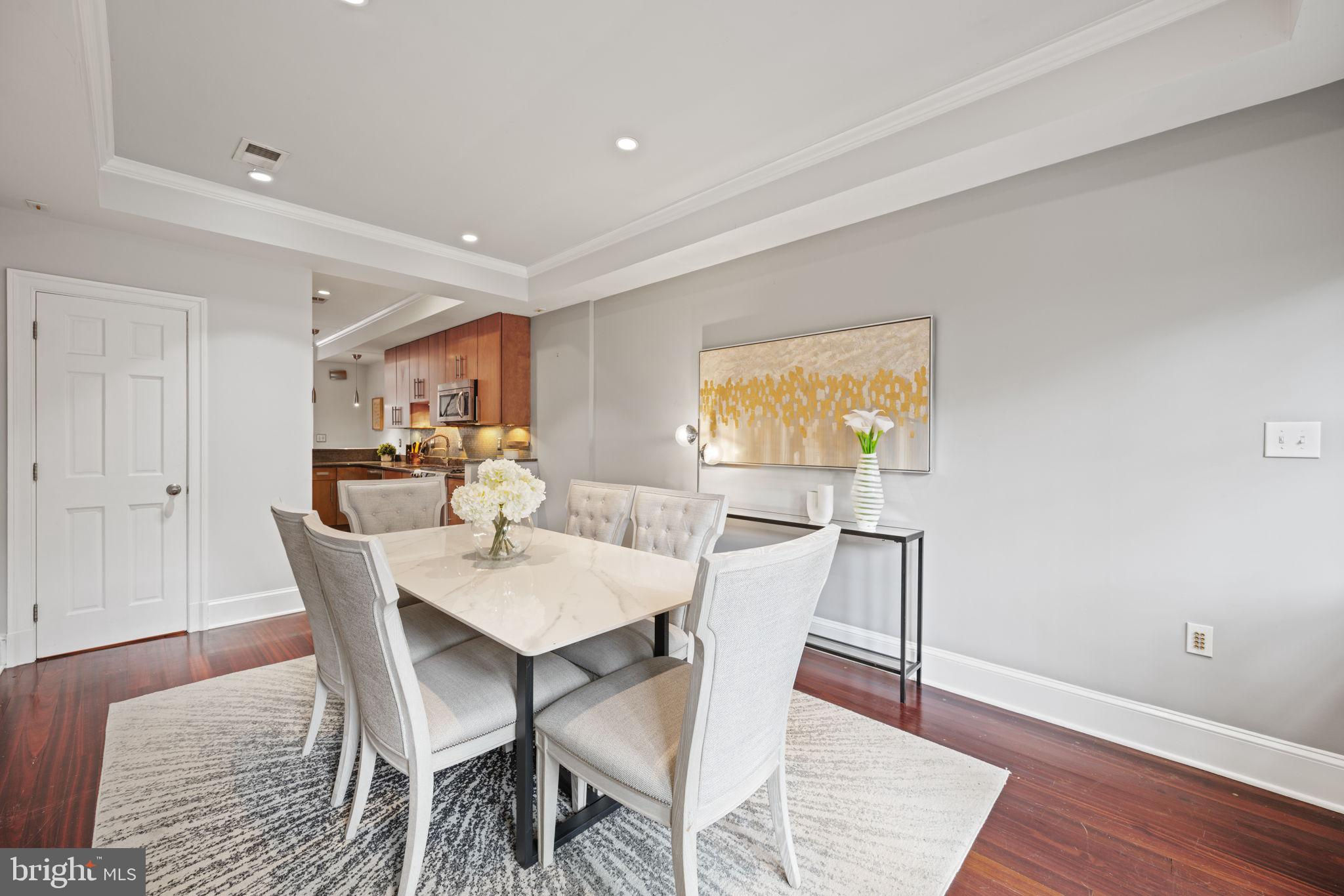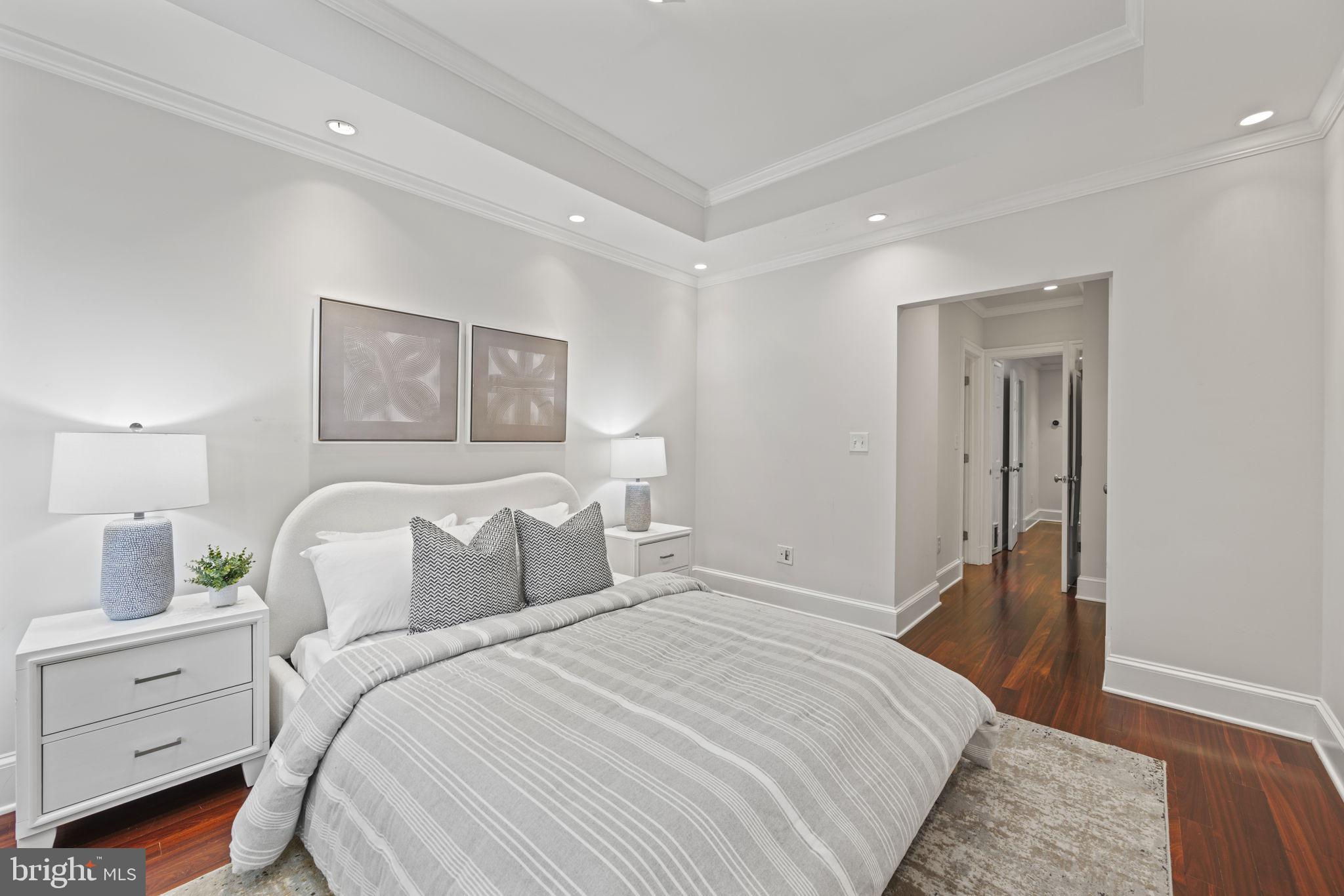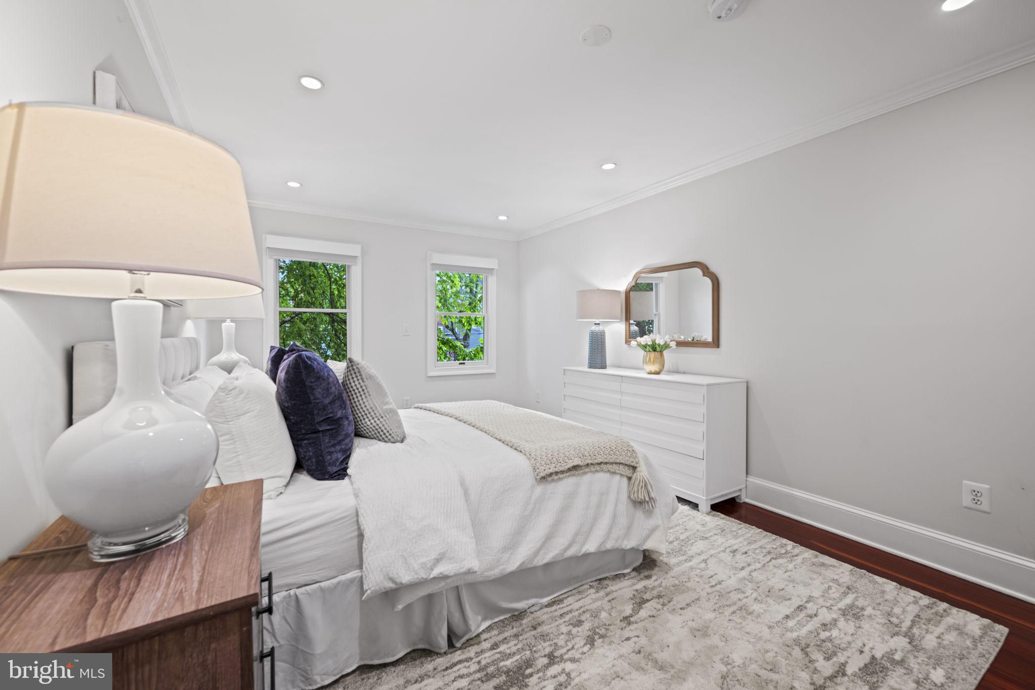 Originally built in 1880 and reconstructed to meticulous standards, this stunning two-bedroom, two-and-a-half-bathroom residence now boasts a contemporary 21st-century design behind a historic Federal facade from the turn of the century. Situated on an exceptionally deep lot spanning 99 feet, the property allows for an impressive open floor plan, lofty ceiling heights, and generously proportioned rooms. Its East/West orientation welcomes ample morning sunlight to the front of the home and lovely sunsets enjoyed from the rear garden and flagstone terrace. Among its notable features are a chef's kitchen with granite countertops and breakfast bar, stainless steel appliances including a gas range, and a dining area featuring an exposed brick accent wall. There is a convenient first-floor powder room, and a spacious family room/den with French doors opening to the rear garden, terrace, and private parking area. The second level comprises two expansive bedrooms and two full bathrooms, including the owner's suite which offers ample space for a king-sized bed, and an ensuite bath adorned with travertine marble tile and an oversized shower. The front bedroom is equally spacious, accentuated by a coffered ceiling with dual skylights. A new roof was installed in 2022, as well as a tankless hot water heater in 2023, and commercial-grade Carrier HVAC system in late 2020, both of which contribute to high efficiency and reduced energy consumption. With a front garden enclosed by a historic wrought iron fence and a newly landscaped garden, as well as a flagstone terrace and gated parking area at the rear, this home presents an attractive, private alternative to luxury condominium living. Positioned less than half a block from the METRO station, just two blocks from Whole Foods Market, and steps from the shops and restaurants along the vibrant U Street Corridor, this property offers a rare opportunity for refined urban living .